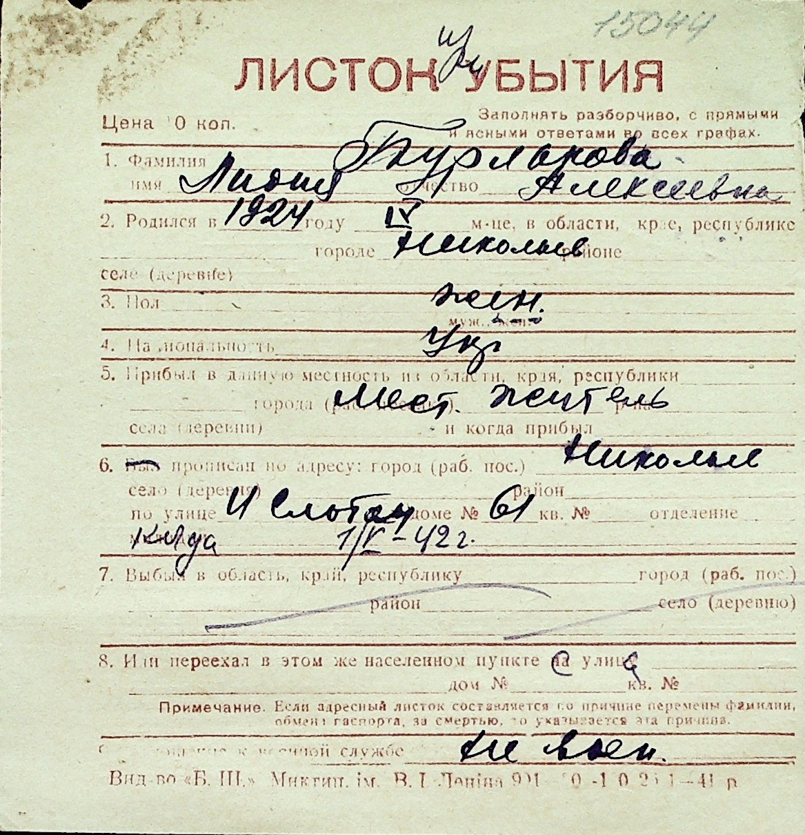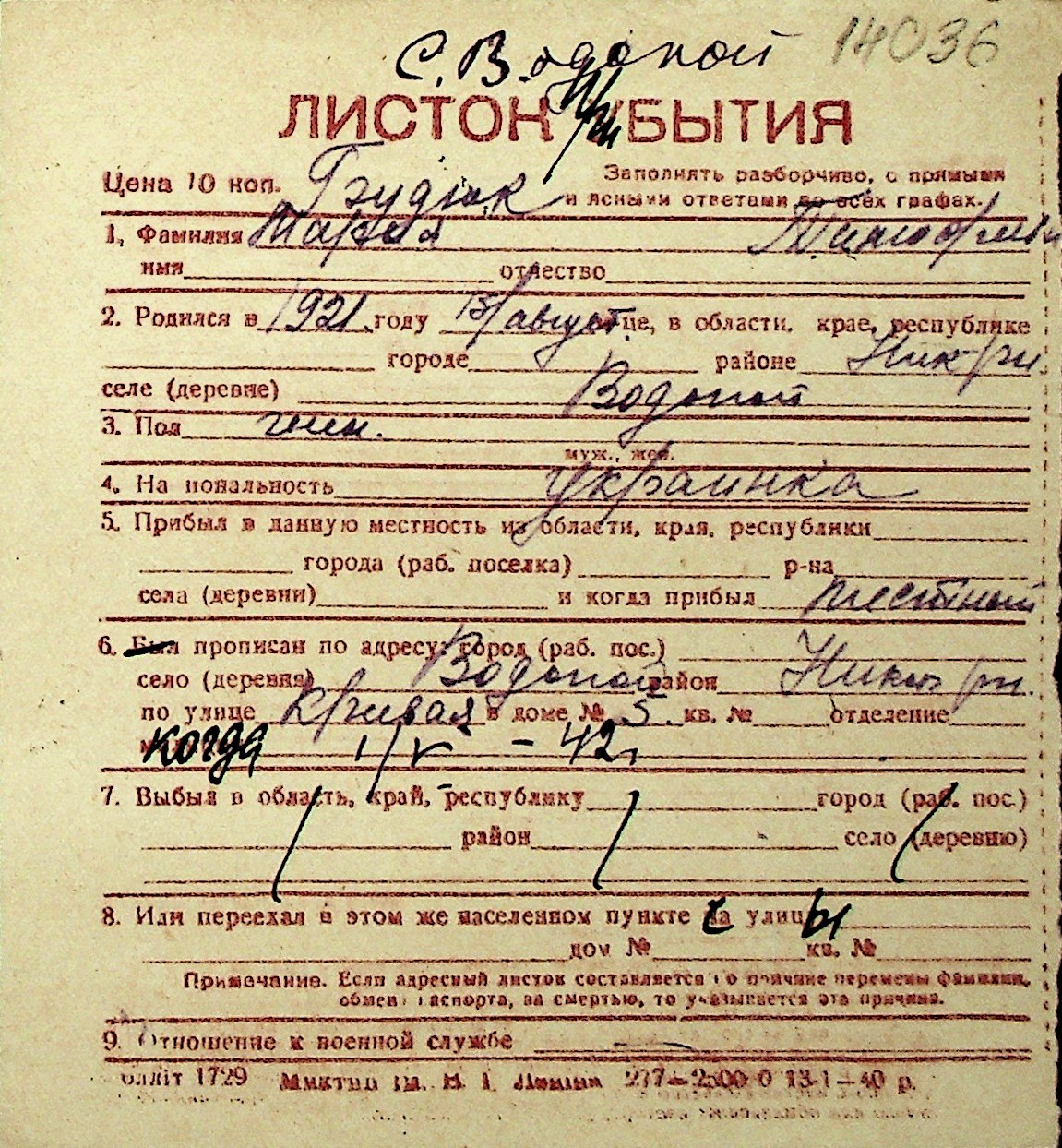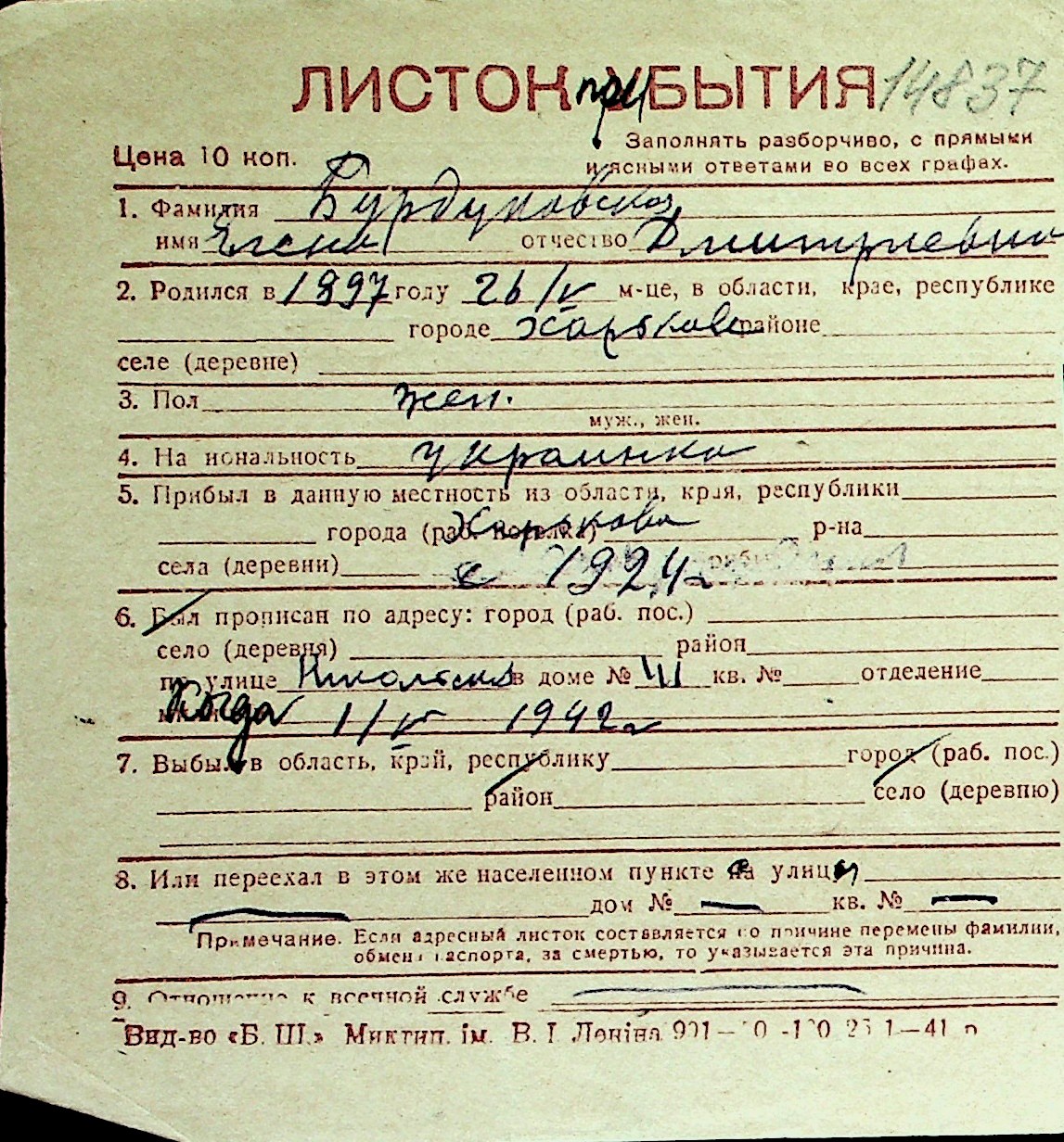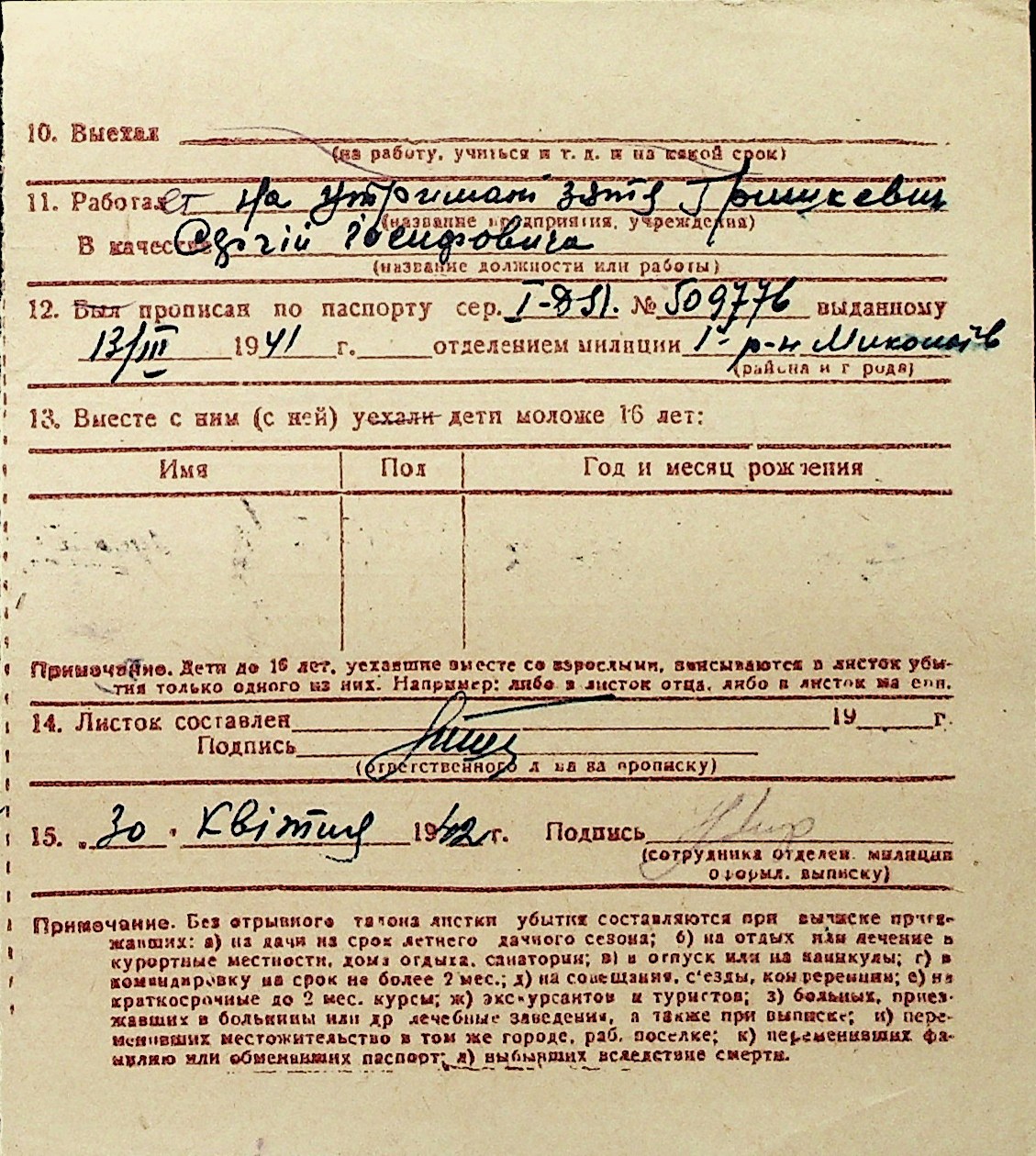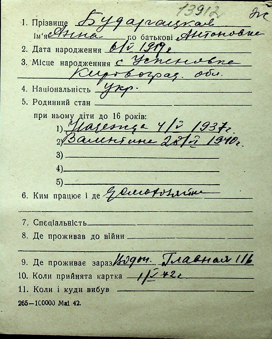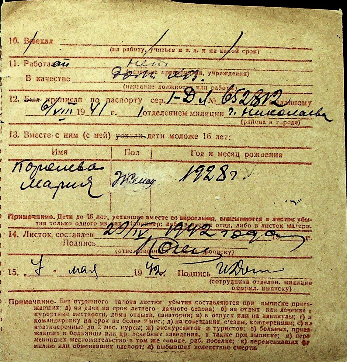 ◦ ◦ Перелік карток на осіб, які мешкали у м. Миколаїв у період окупації 1941–1944 років