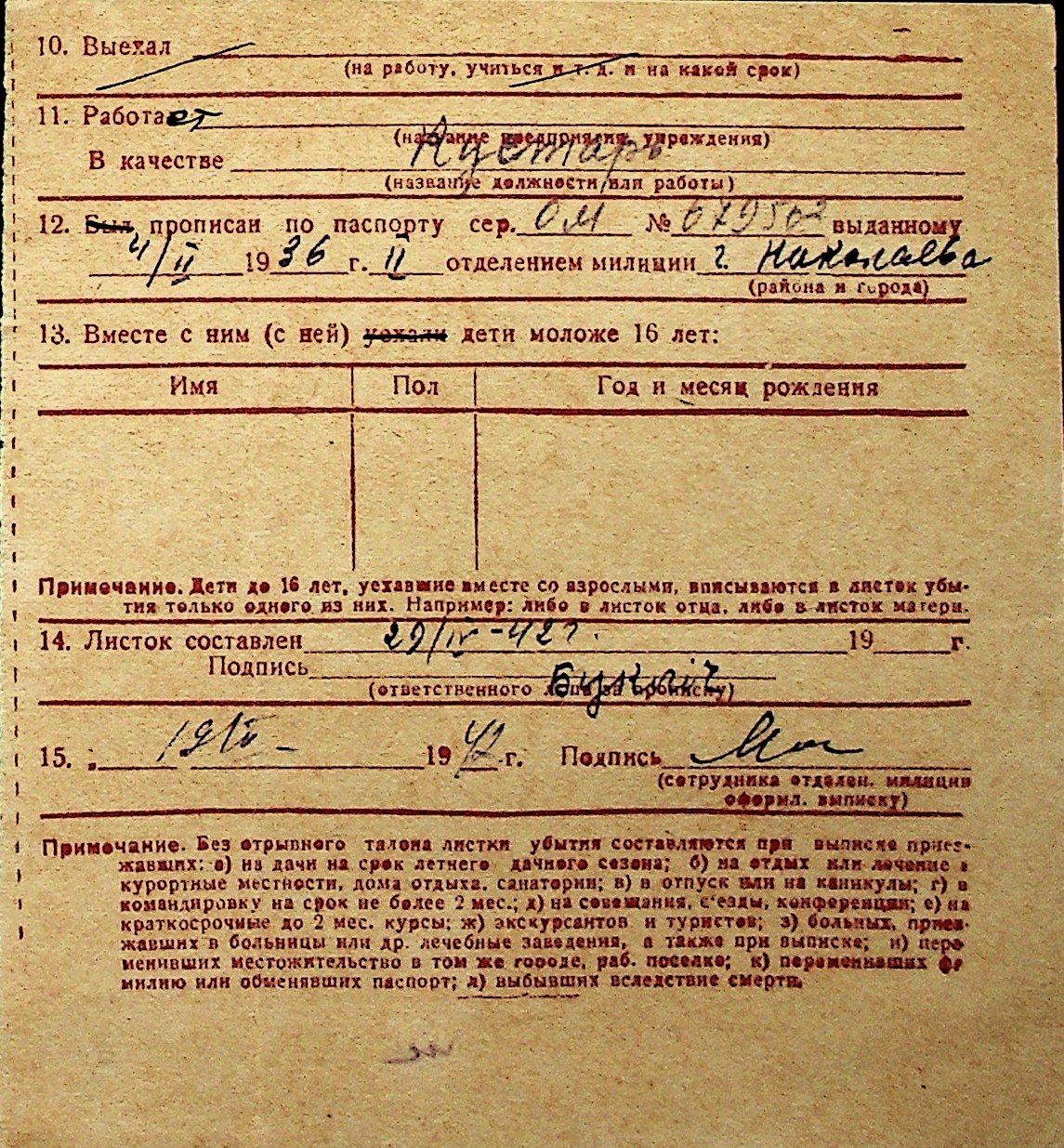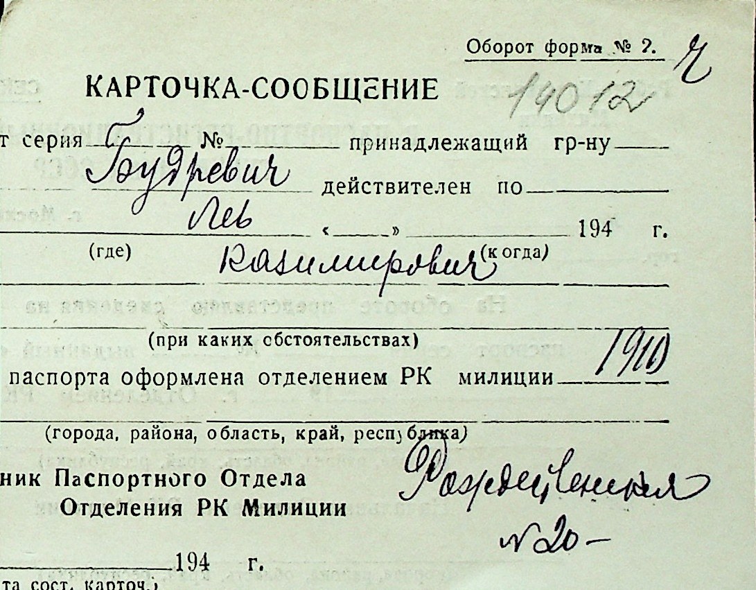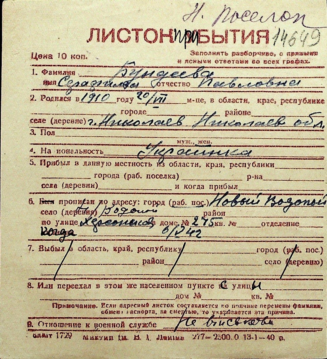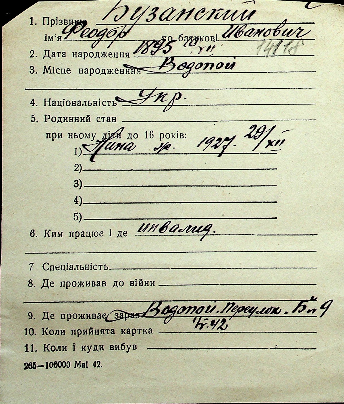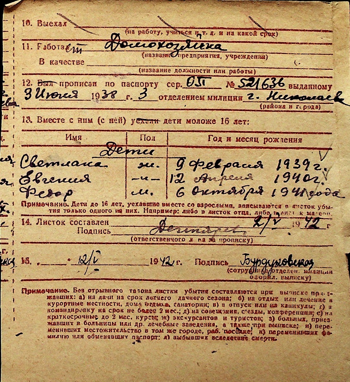 ◦ ◦ Перелік карток на осіб, які мешкали у м. Миколаїв у період окупації 1941–1944 років