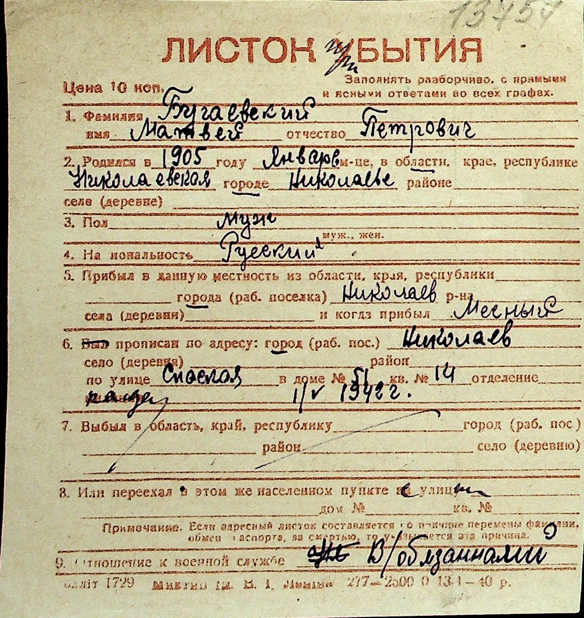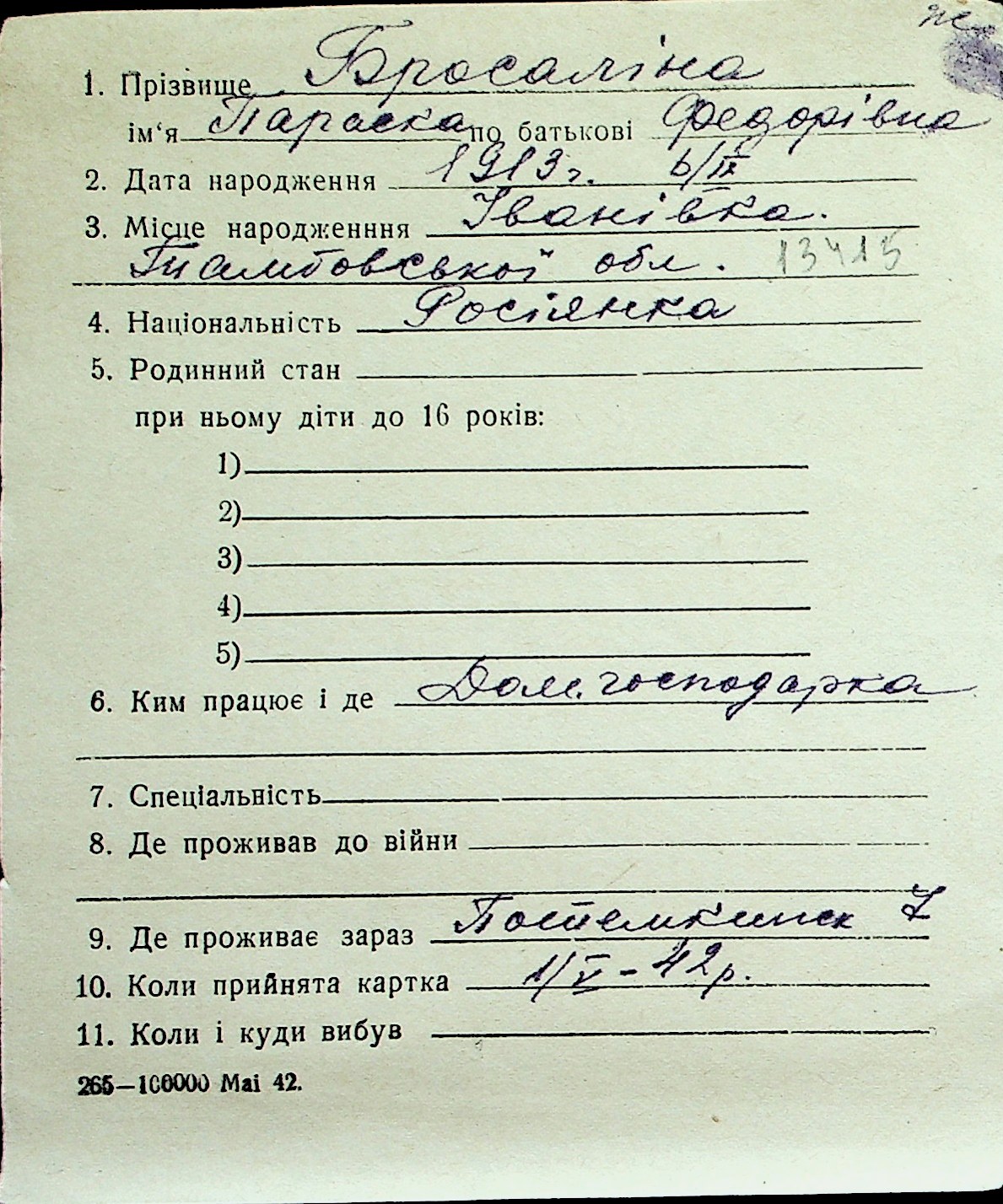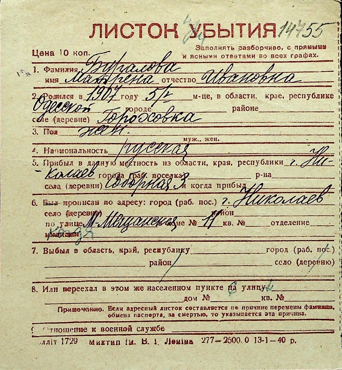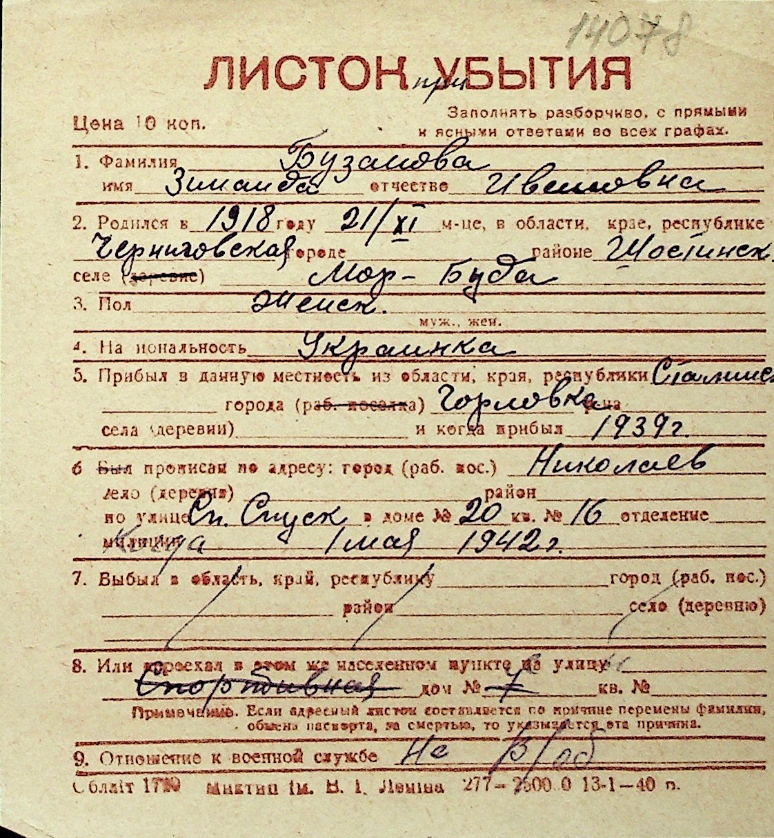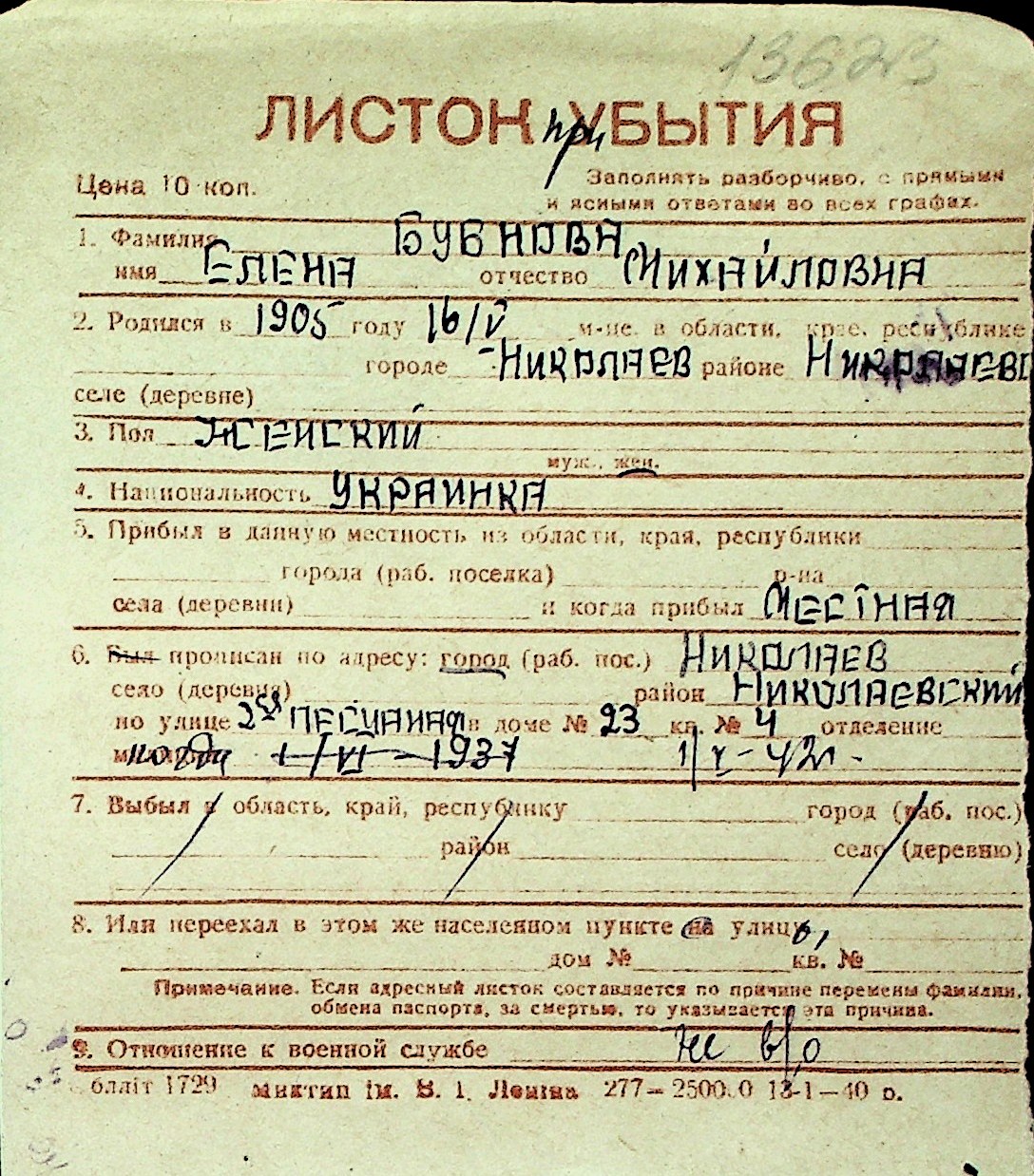 ◦ ◦ Перелік карток на осіб, які мешкали у м. Миколаїв у період окупації 1941–1944 років