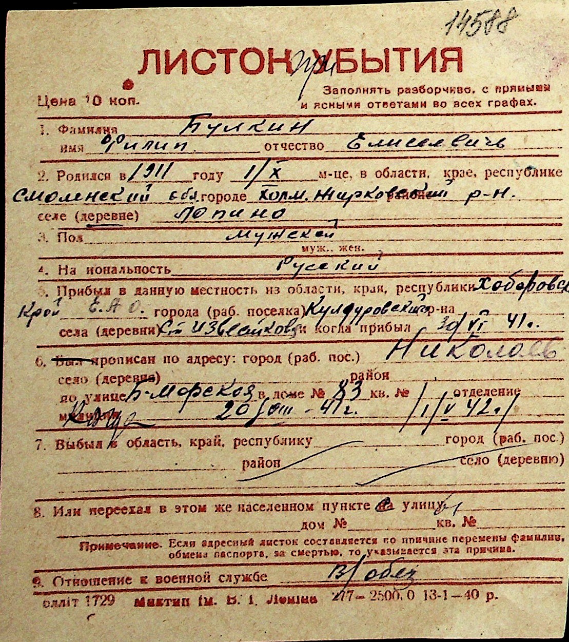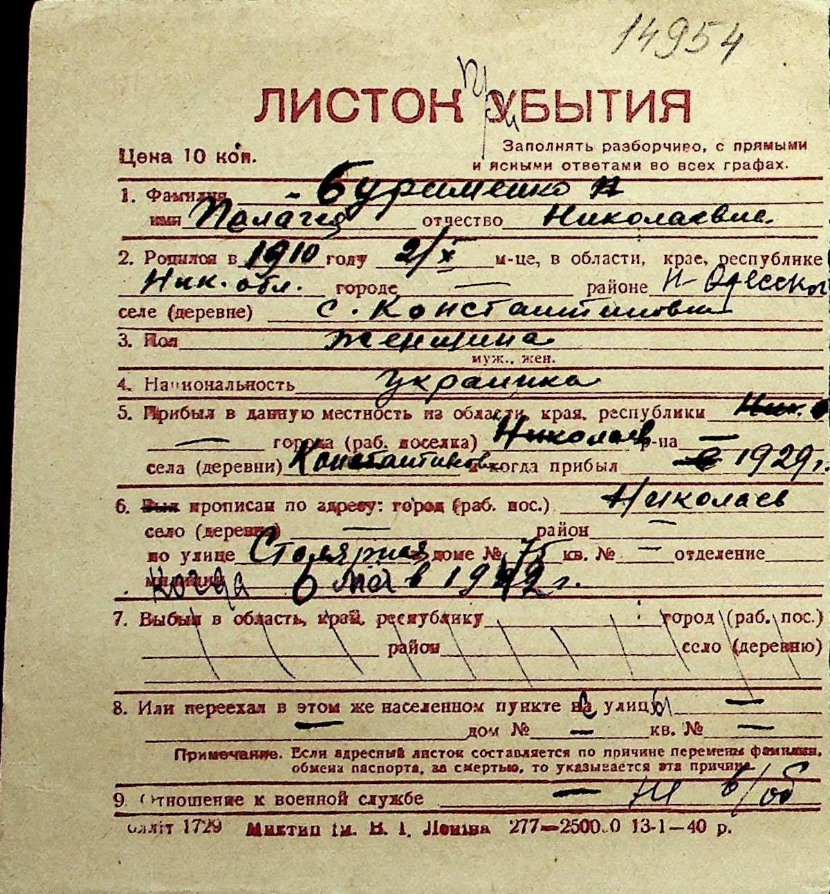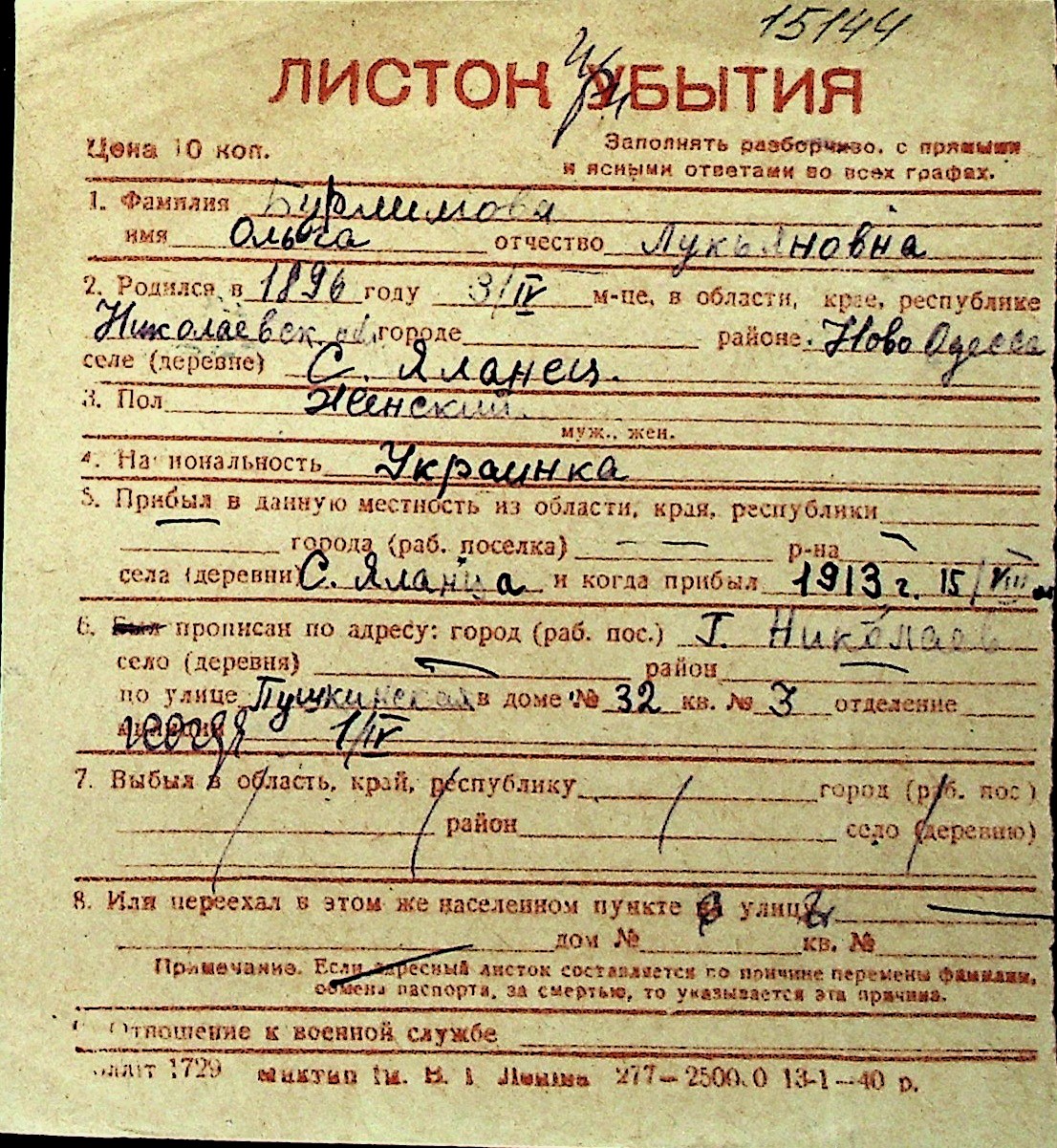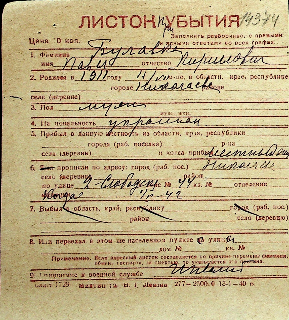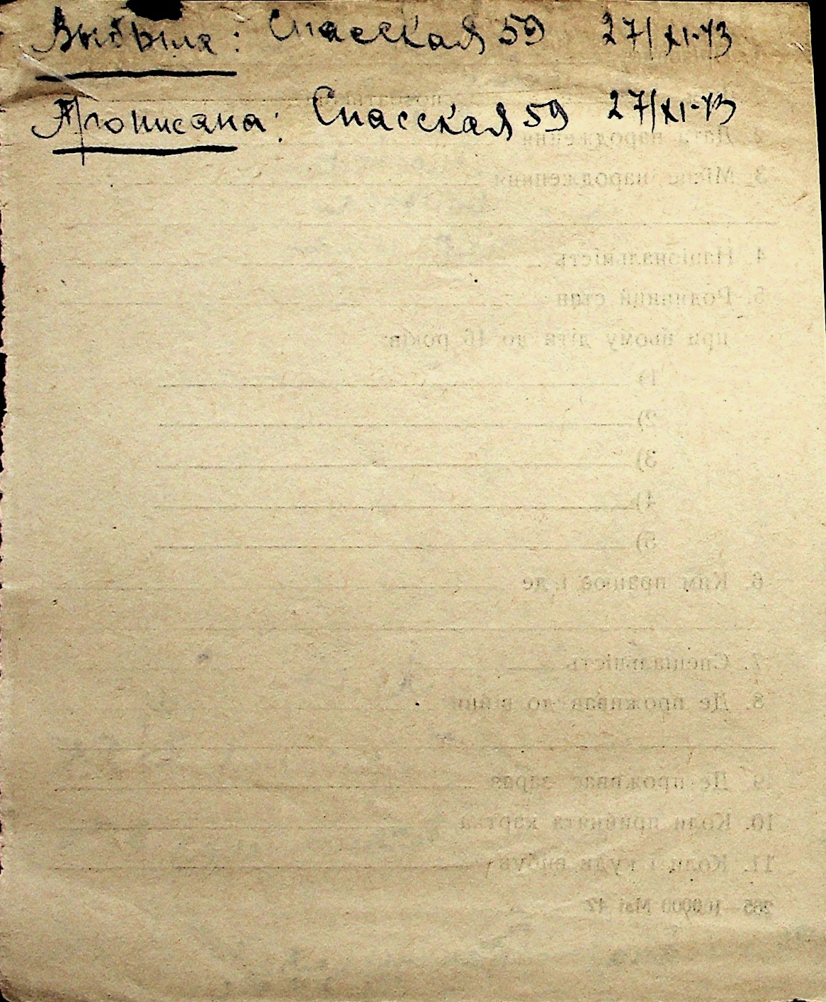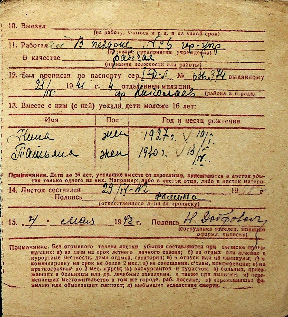 ◦ ◦ Перелік карток на осіб, які мешкали у м. Миколаїв у період окупації 1941–1944 років
