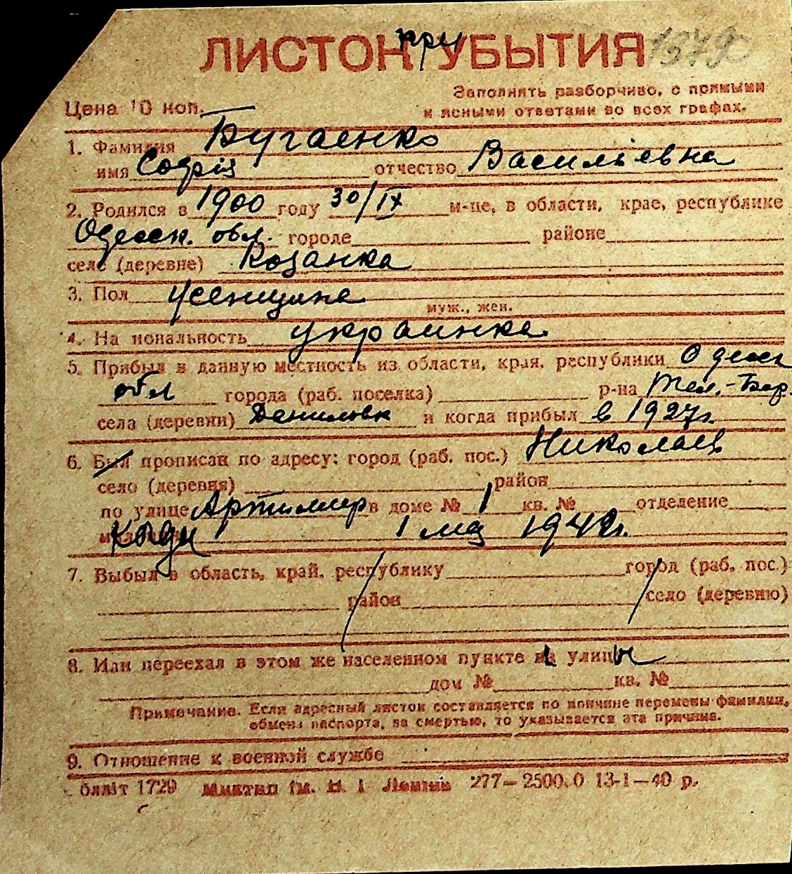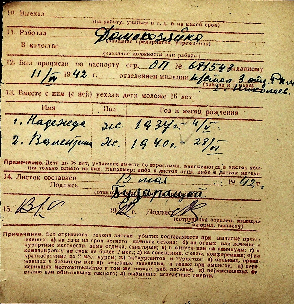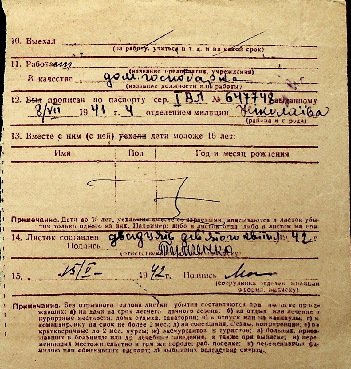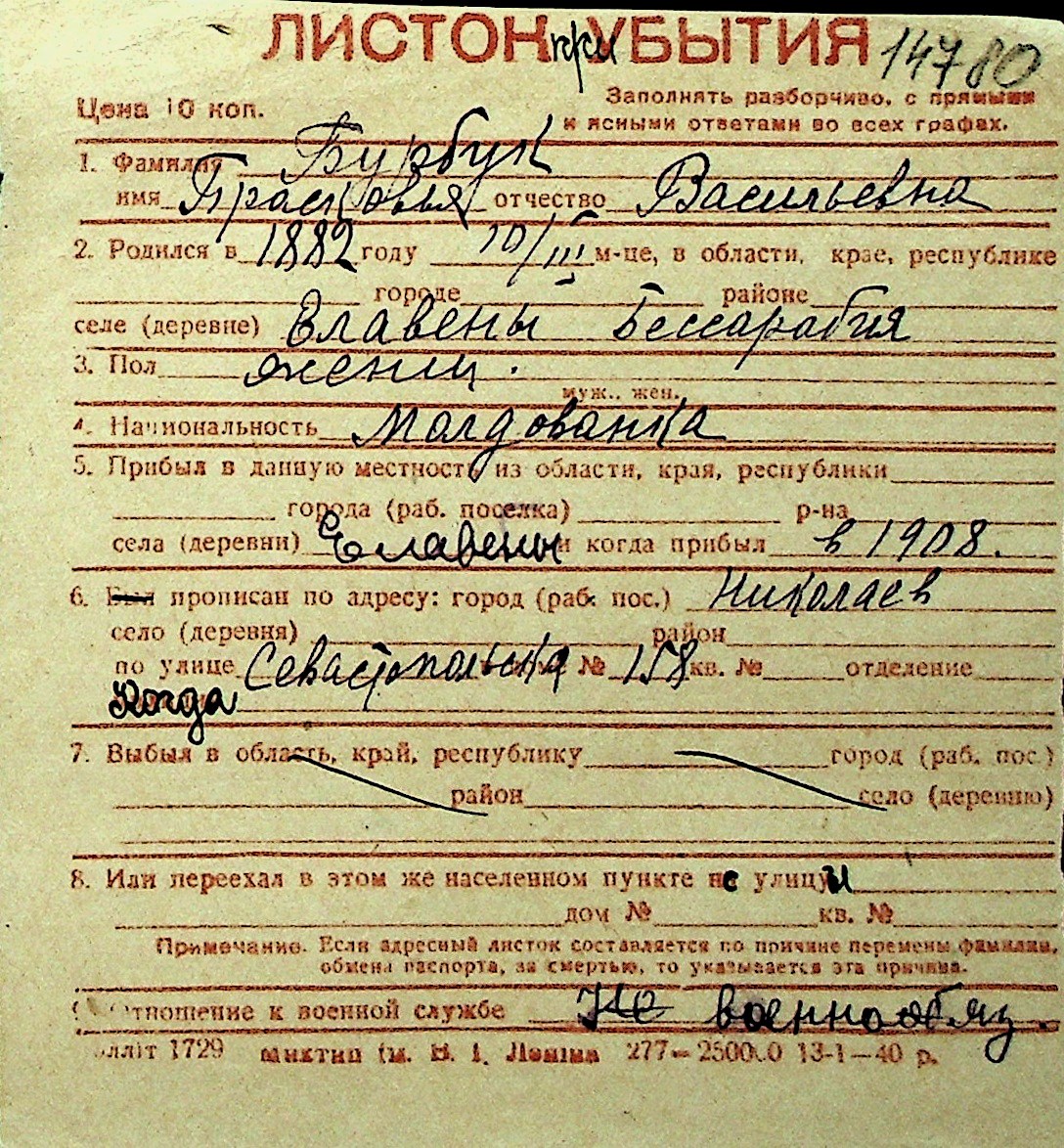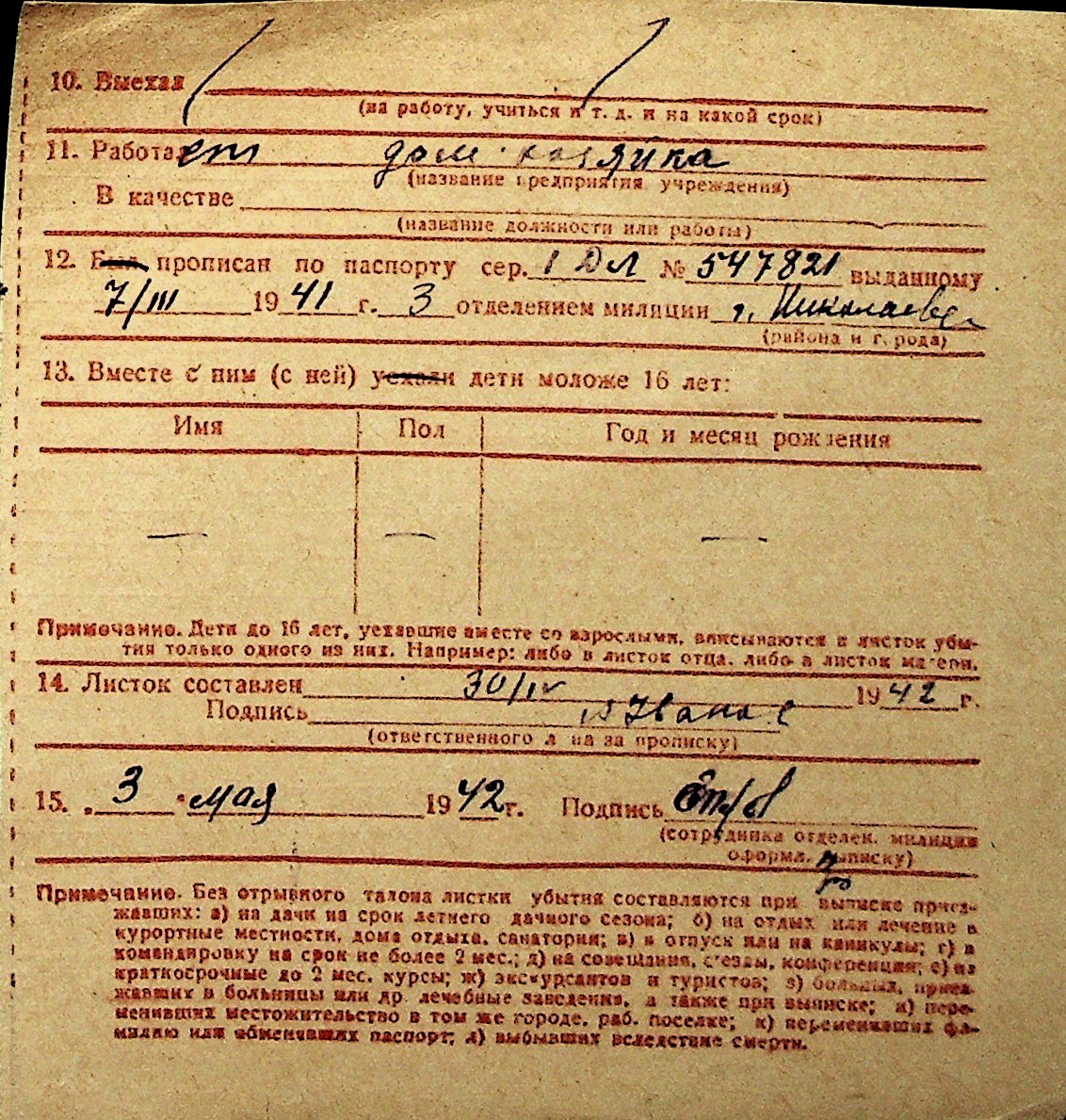 ◦ ◦ Перелік карток на осіб, які мешкали у м. Миколаїв у період окупації 1941–1944 років