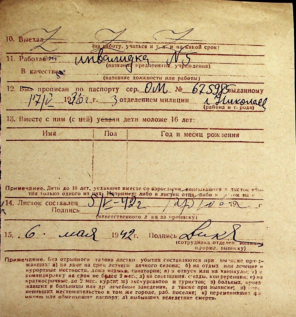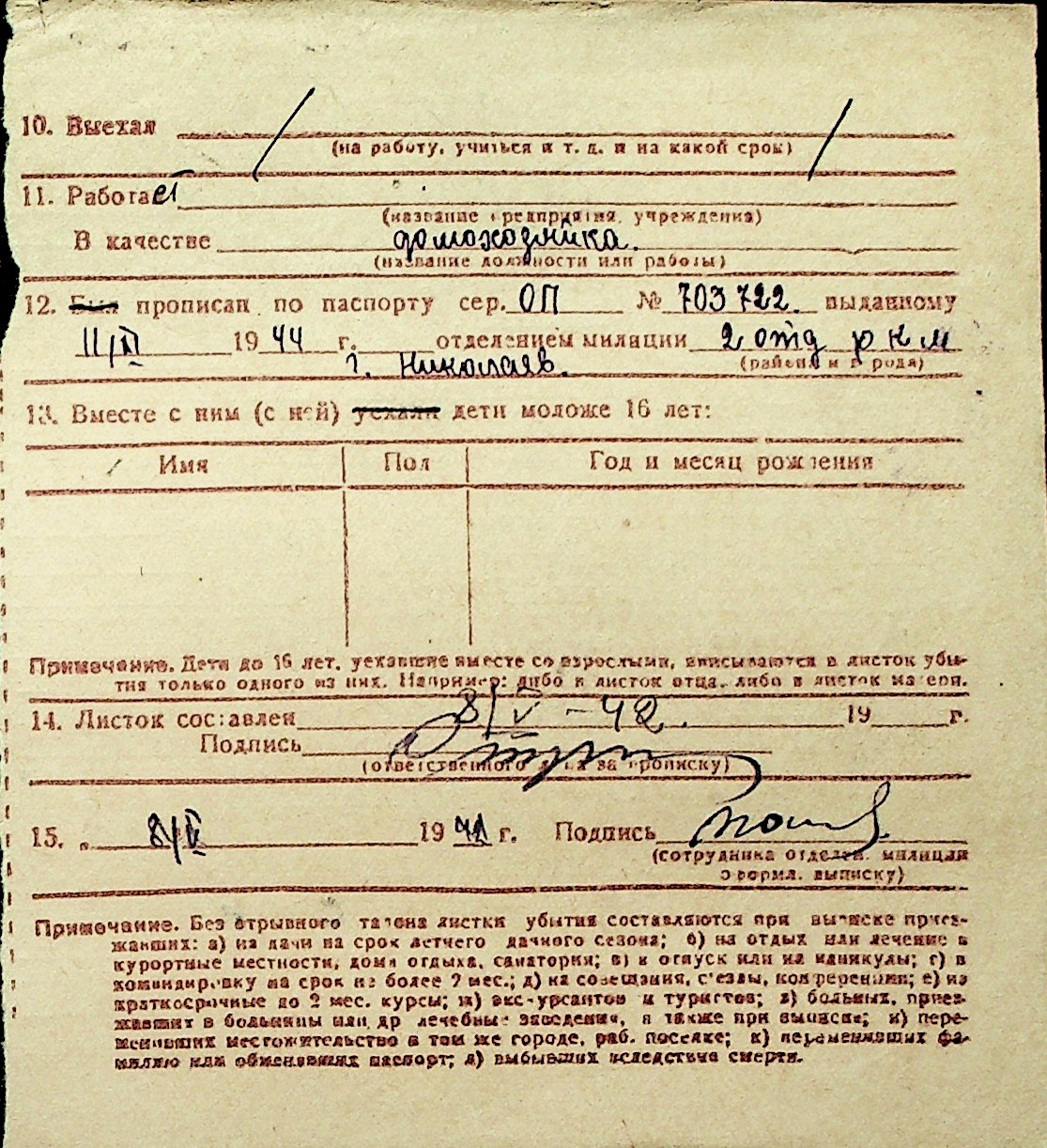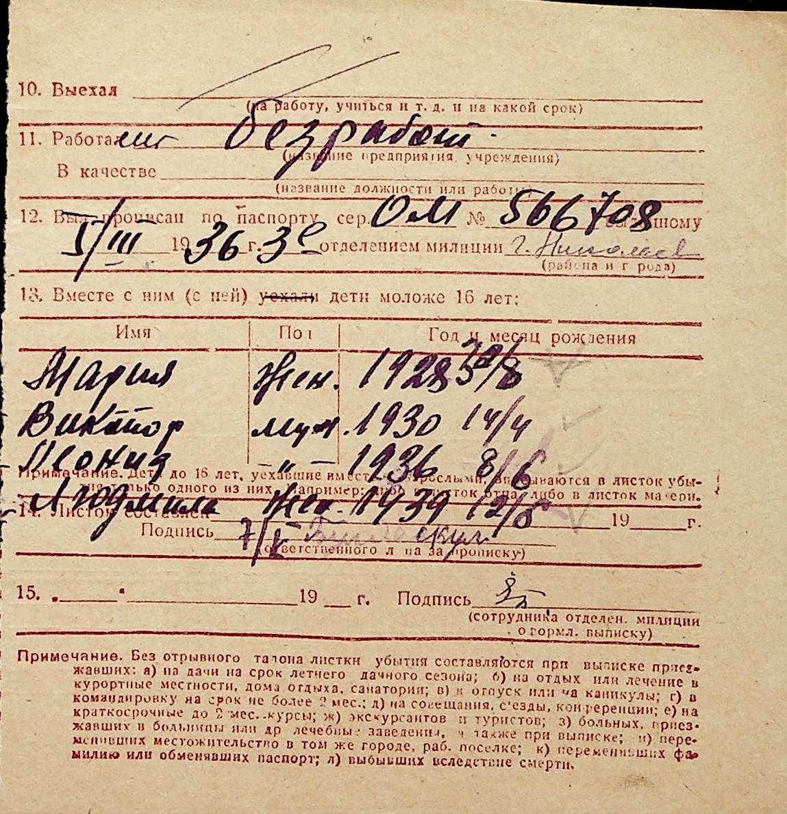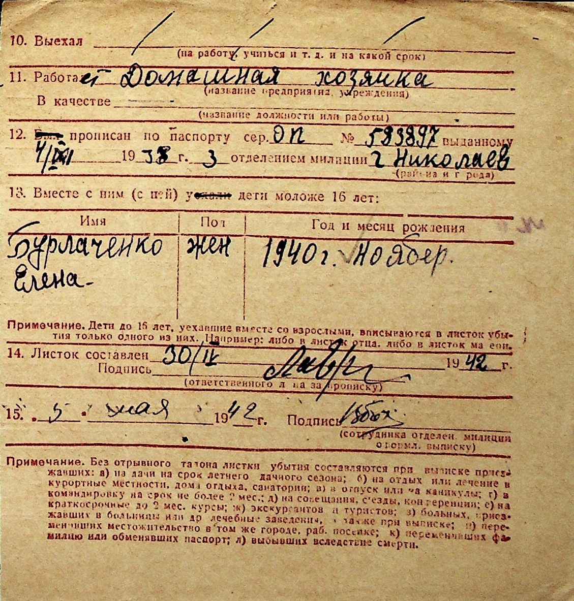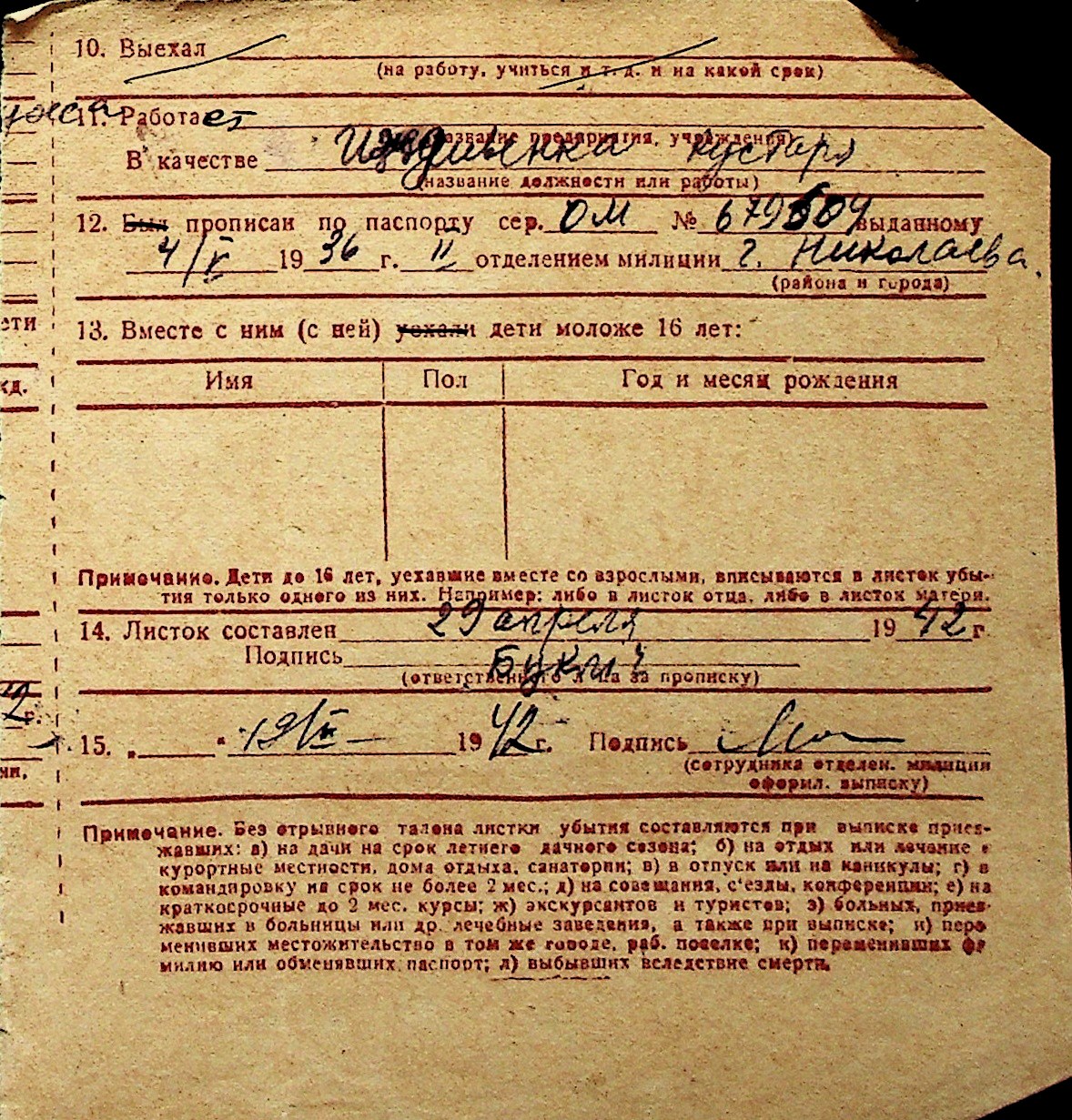◦ ◦ Перелік карток на осіб, які мешкали у м. Миколаїв у період окупації 1941–1944 років