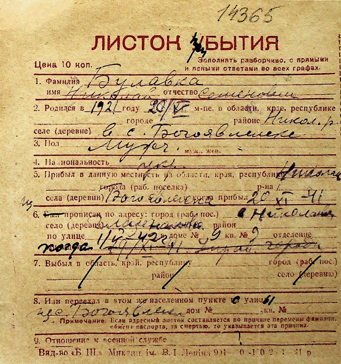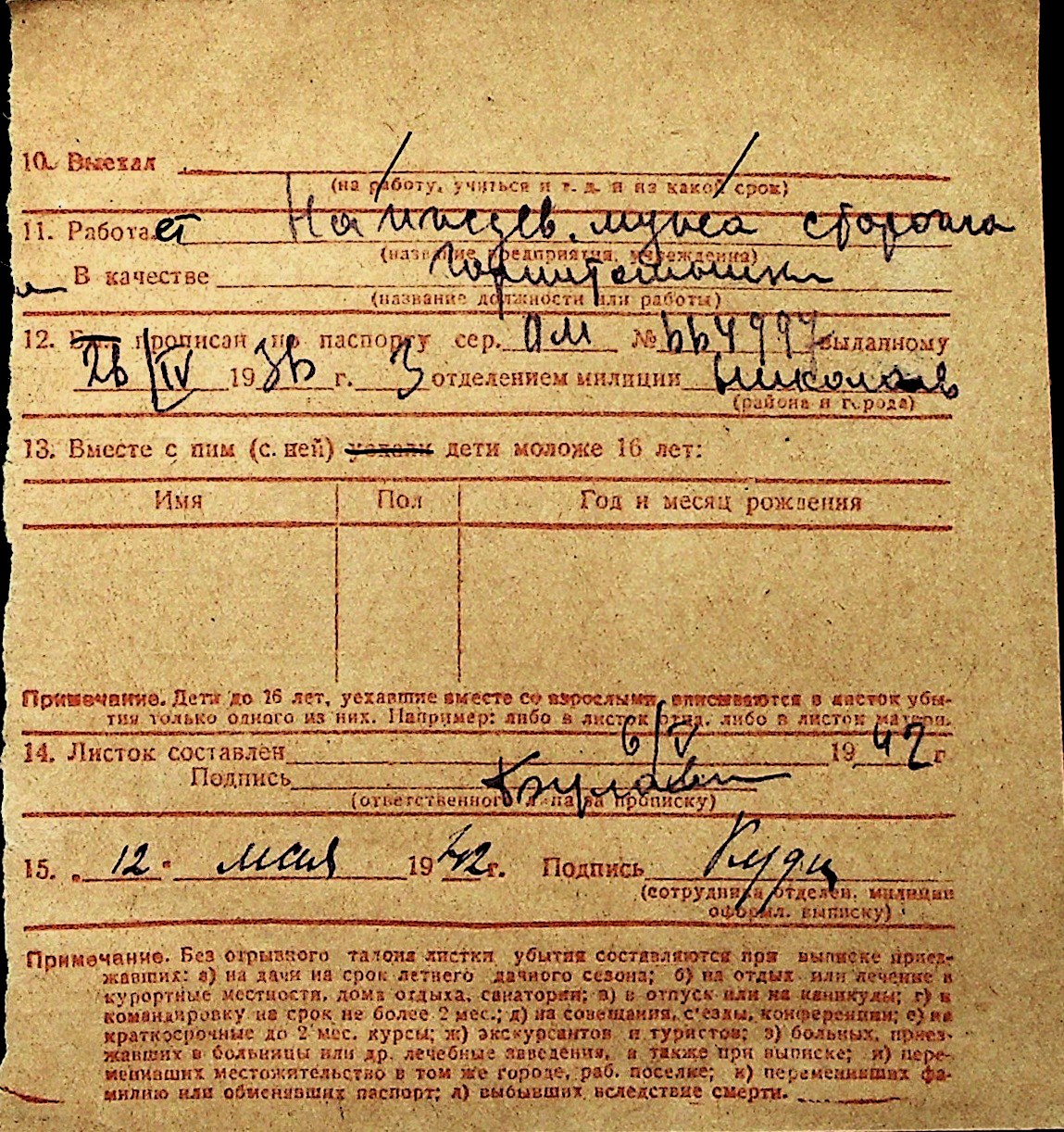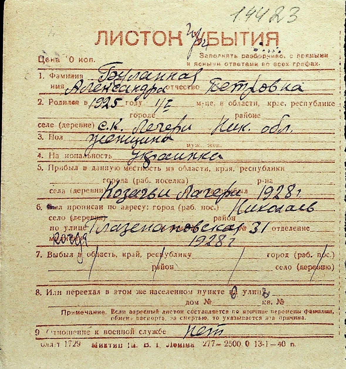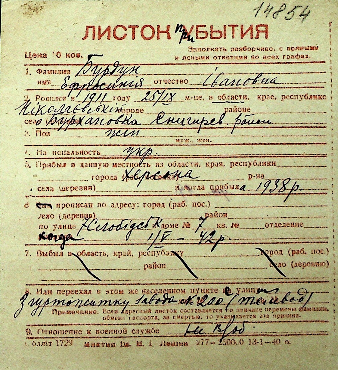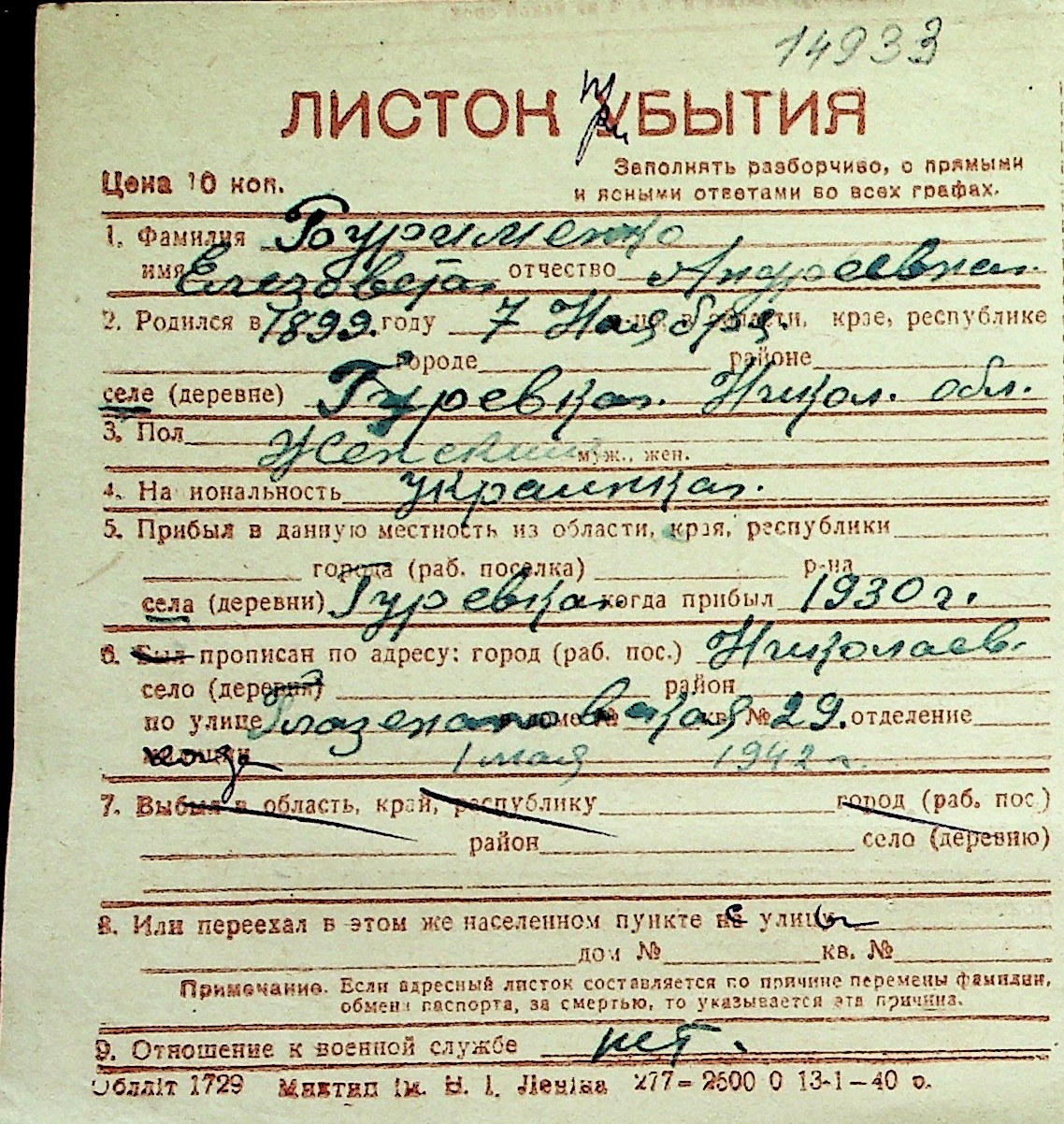 ◦ ◦ Перелік карток на осіб, які мешкали у м. Миколаїв у період окупації 1941–1944 років
