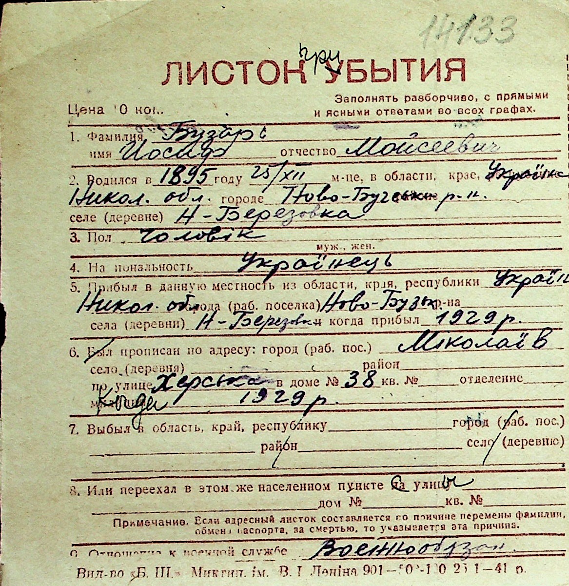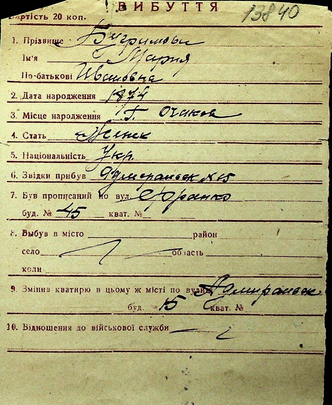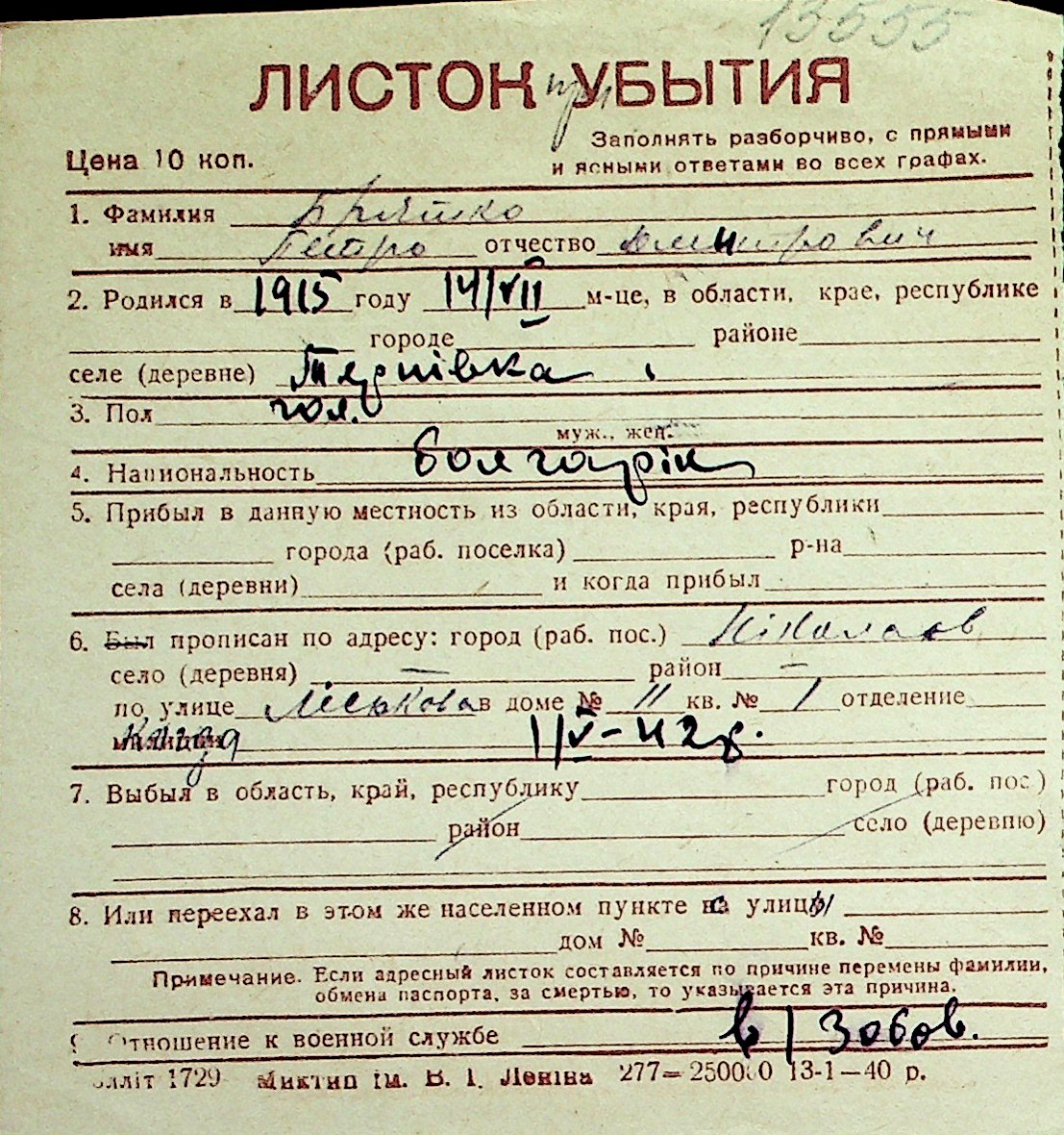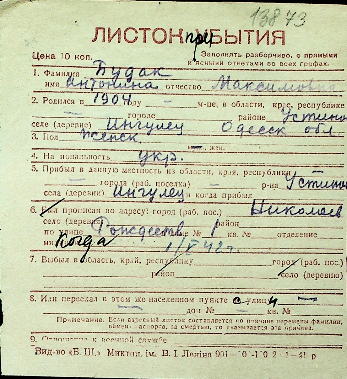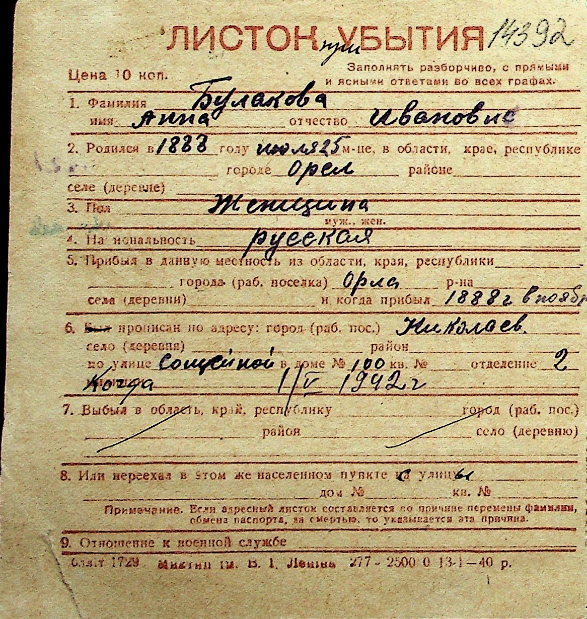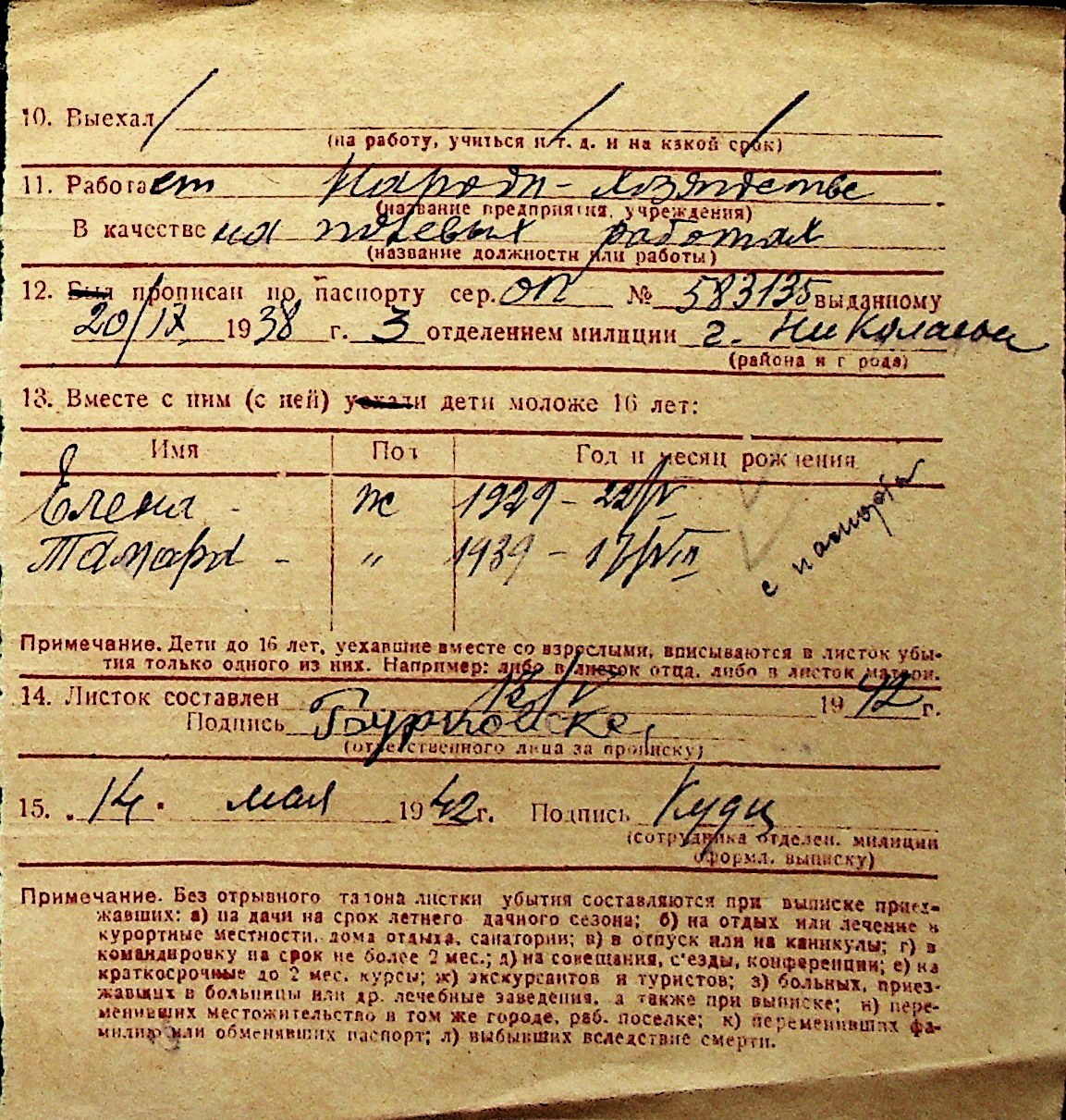 ◦ ◦ Перелік карток на осіб, які мешкали у м. Миколаїв у період окупації 1941–1944 років
