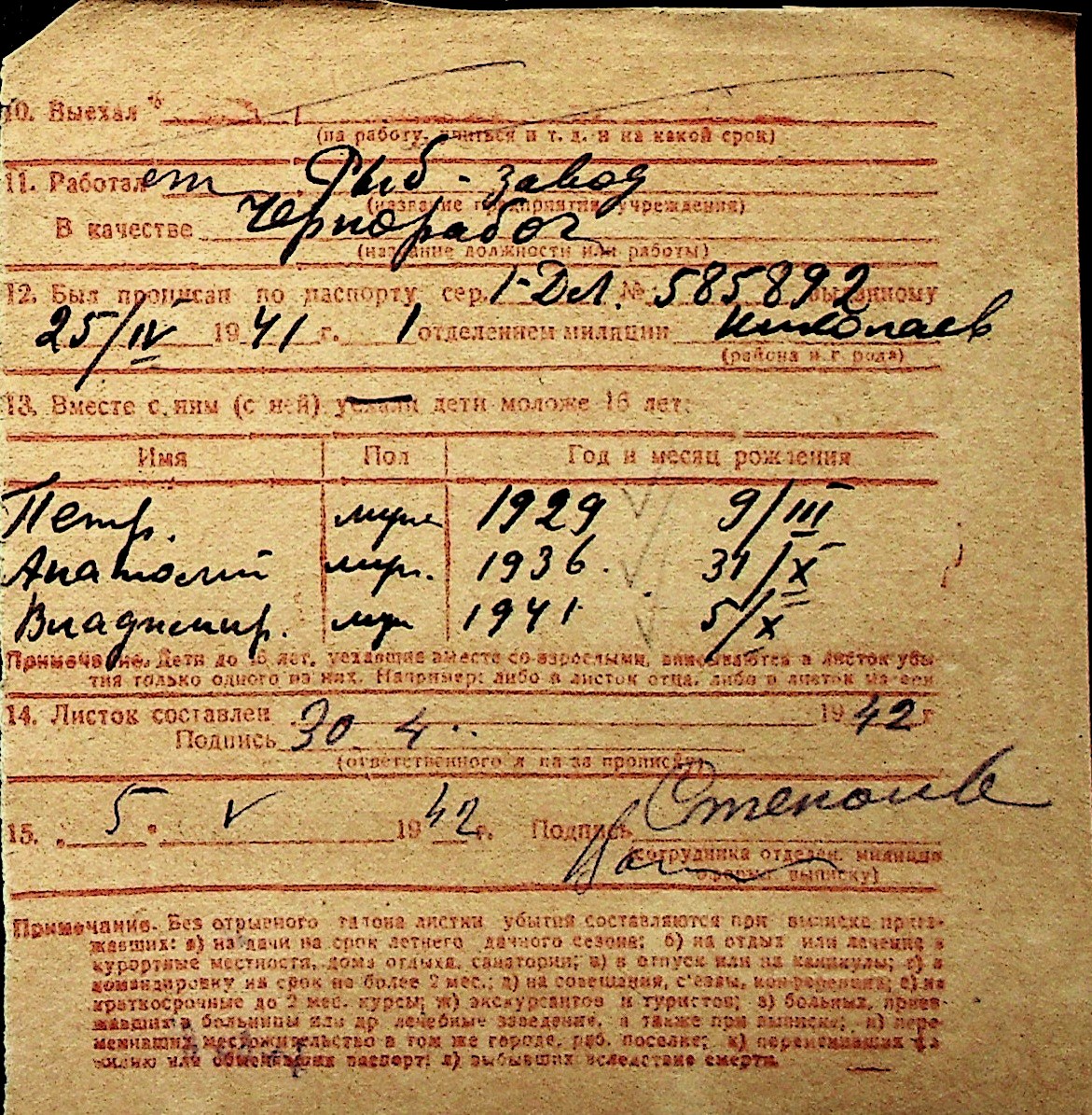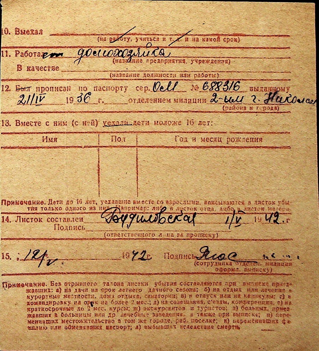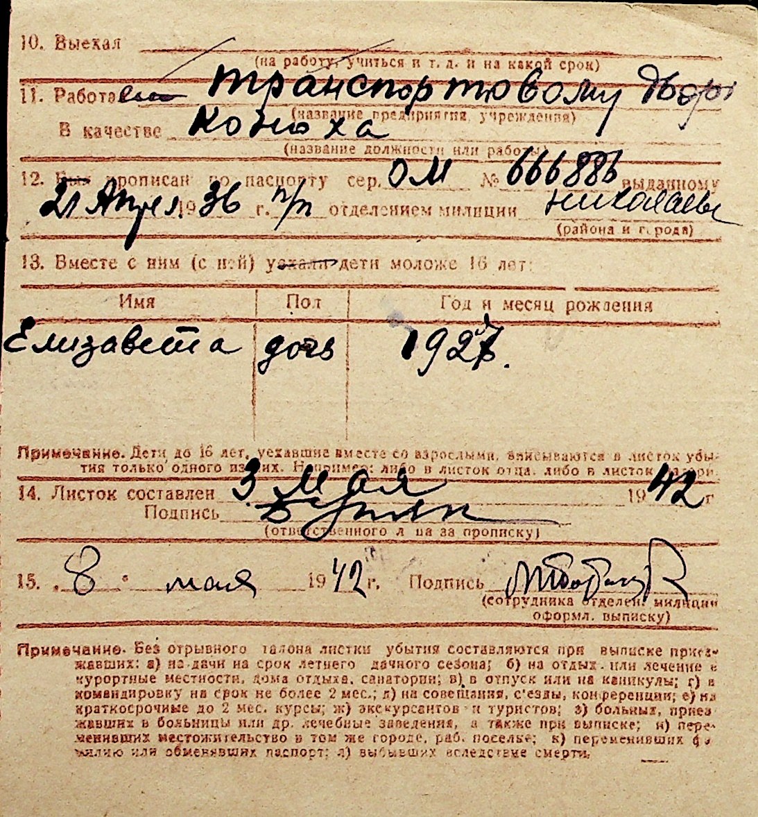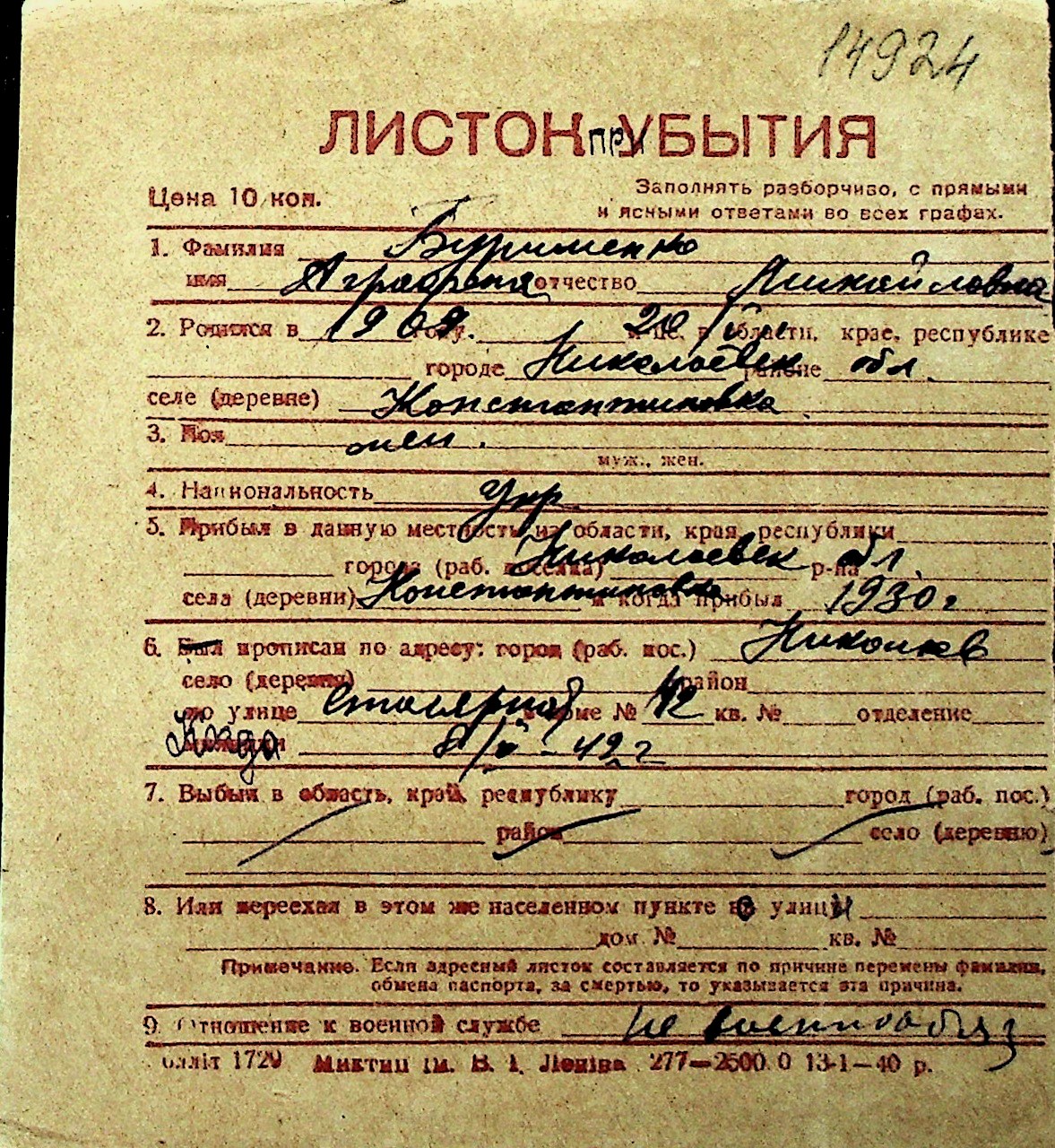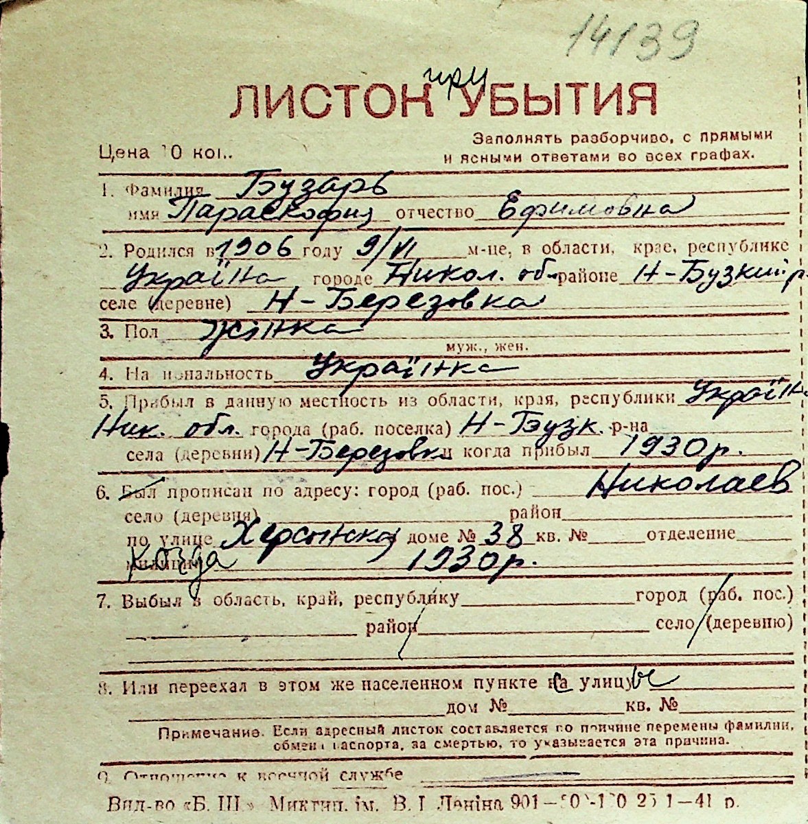 ◦ ◦ Перелік карток на осіб, які мешкали у м. Миколаїв у період окупації 1941–1944 років
