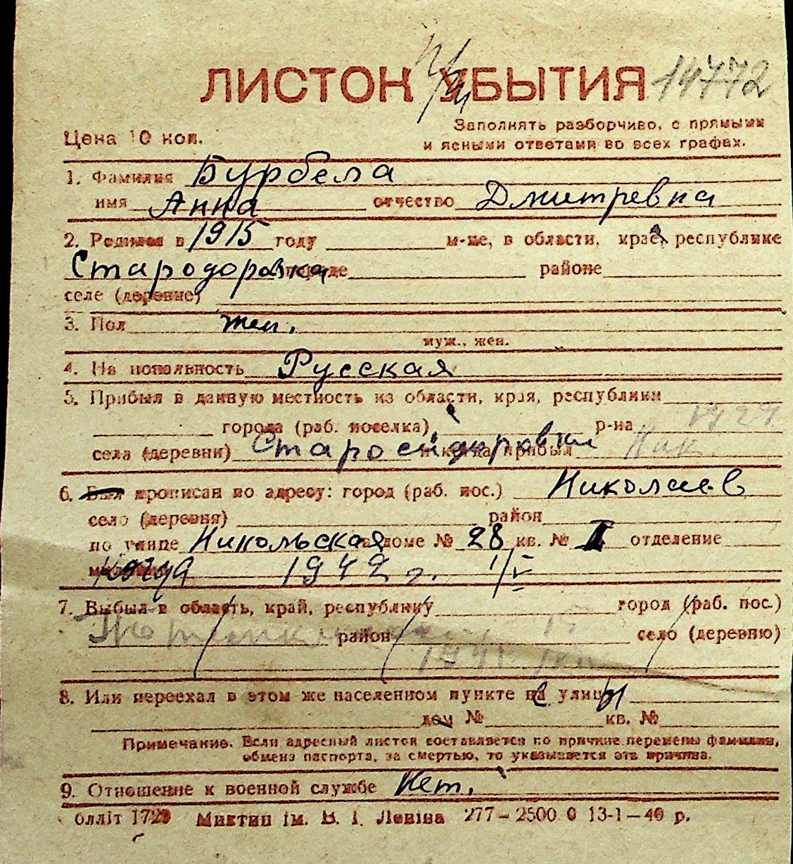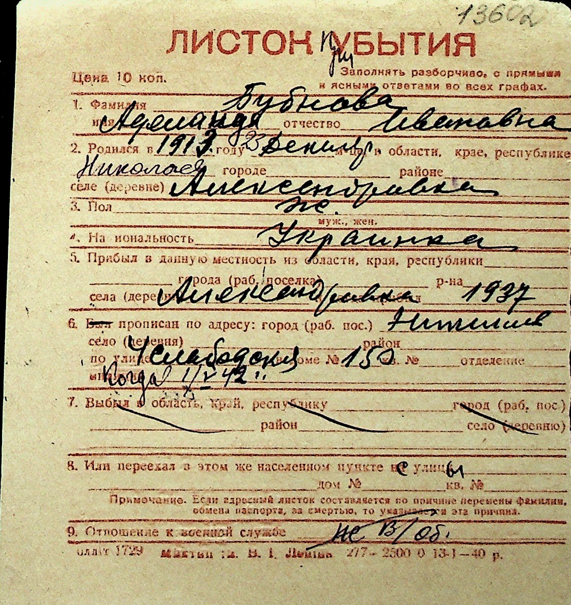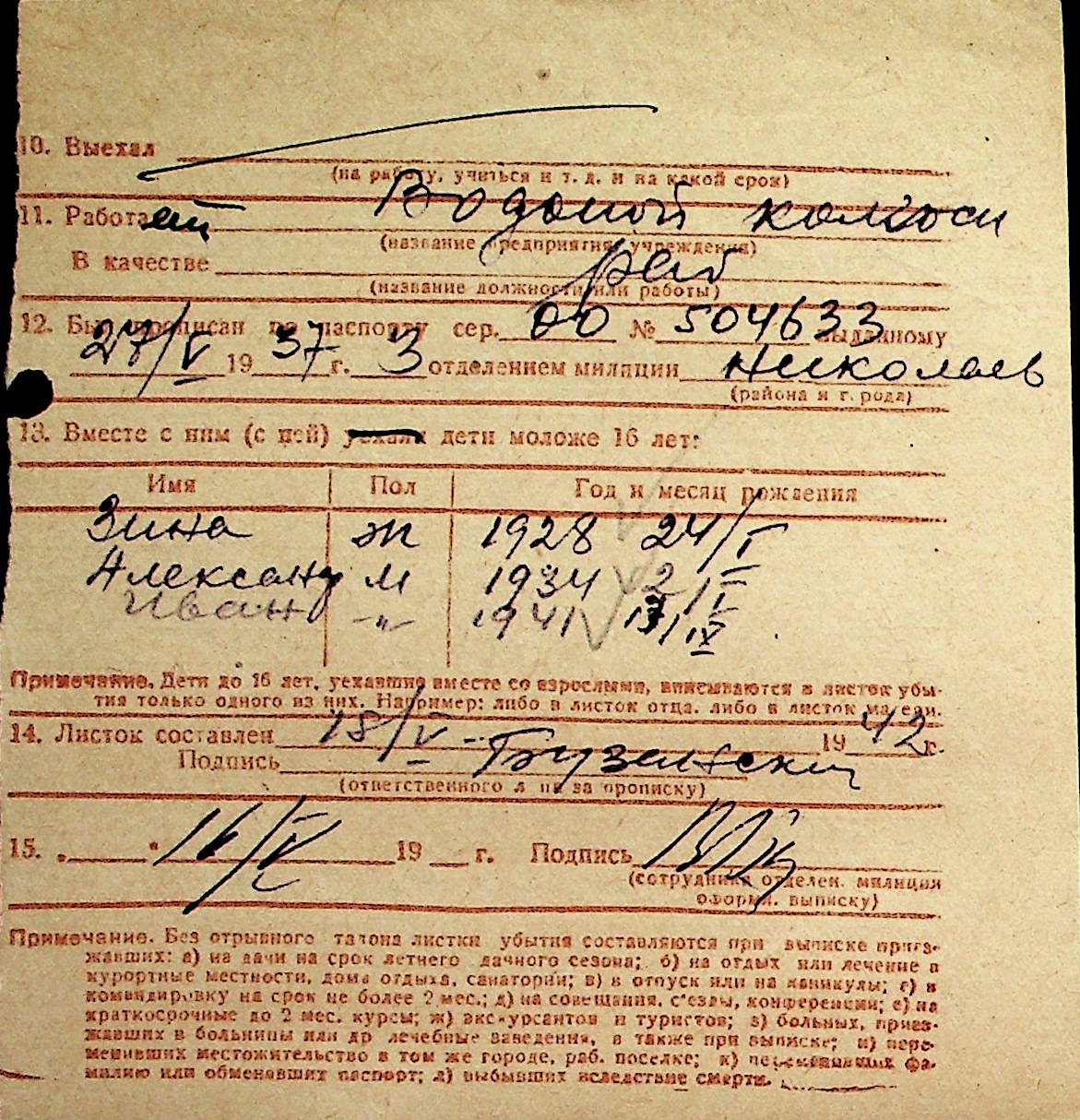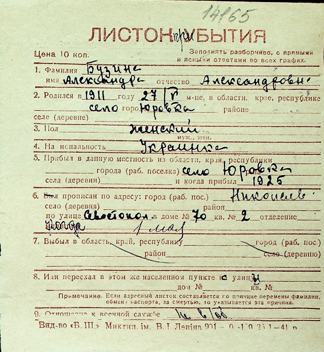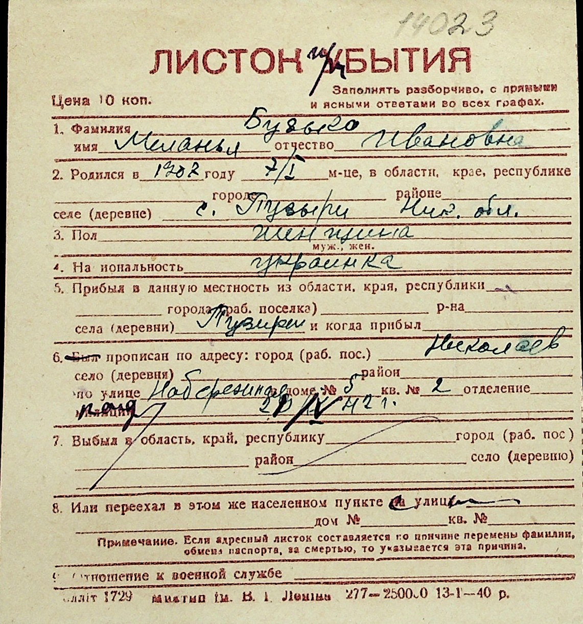 ◦ ◦ Перелік карток на осіб, які мешкали у м. Миколаїв у період окупації 1941–1944 років