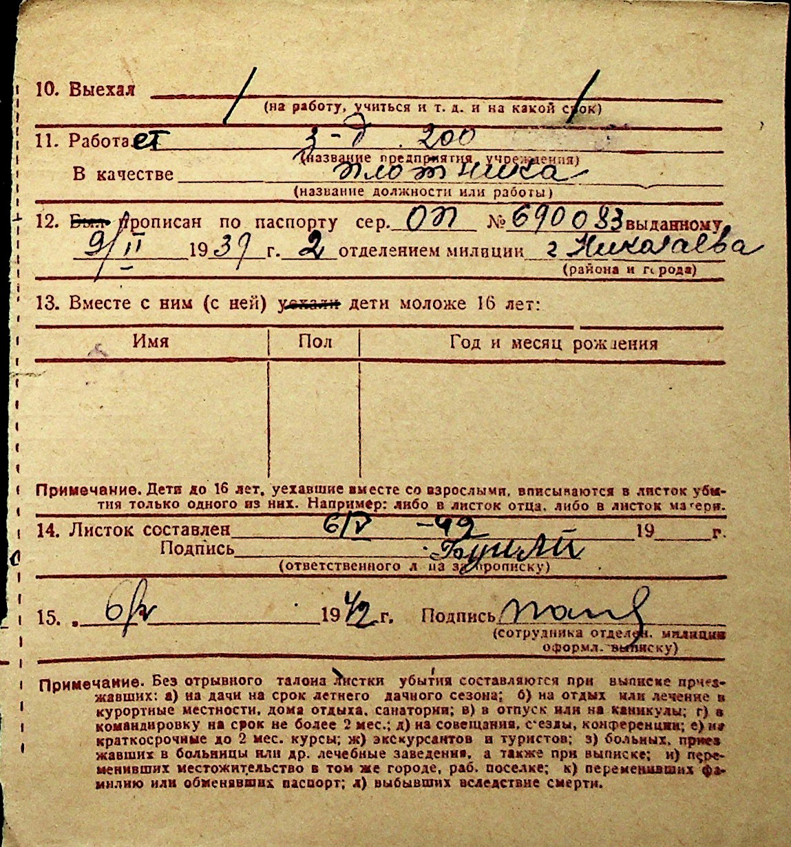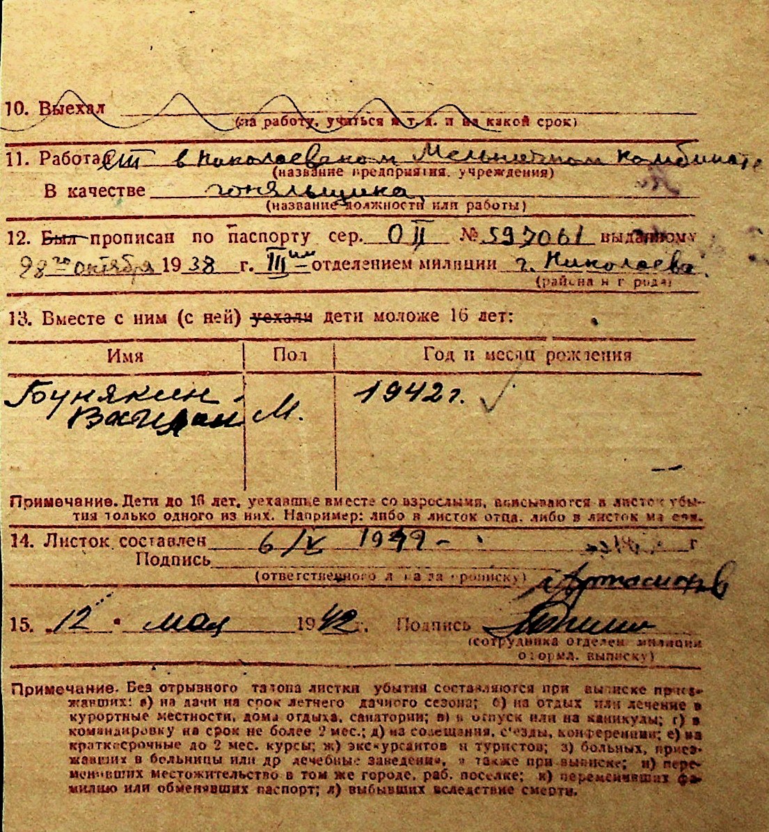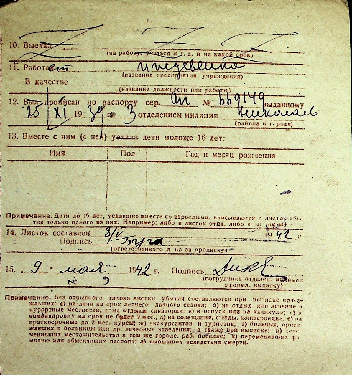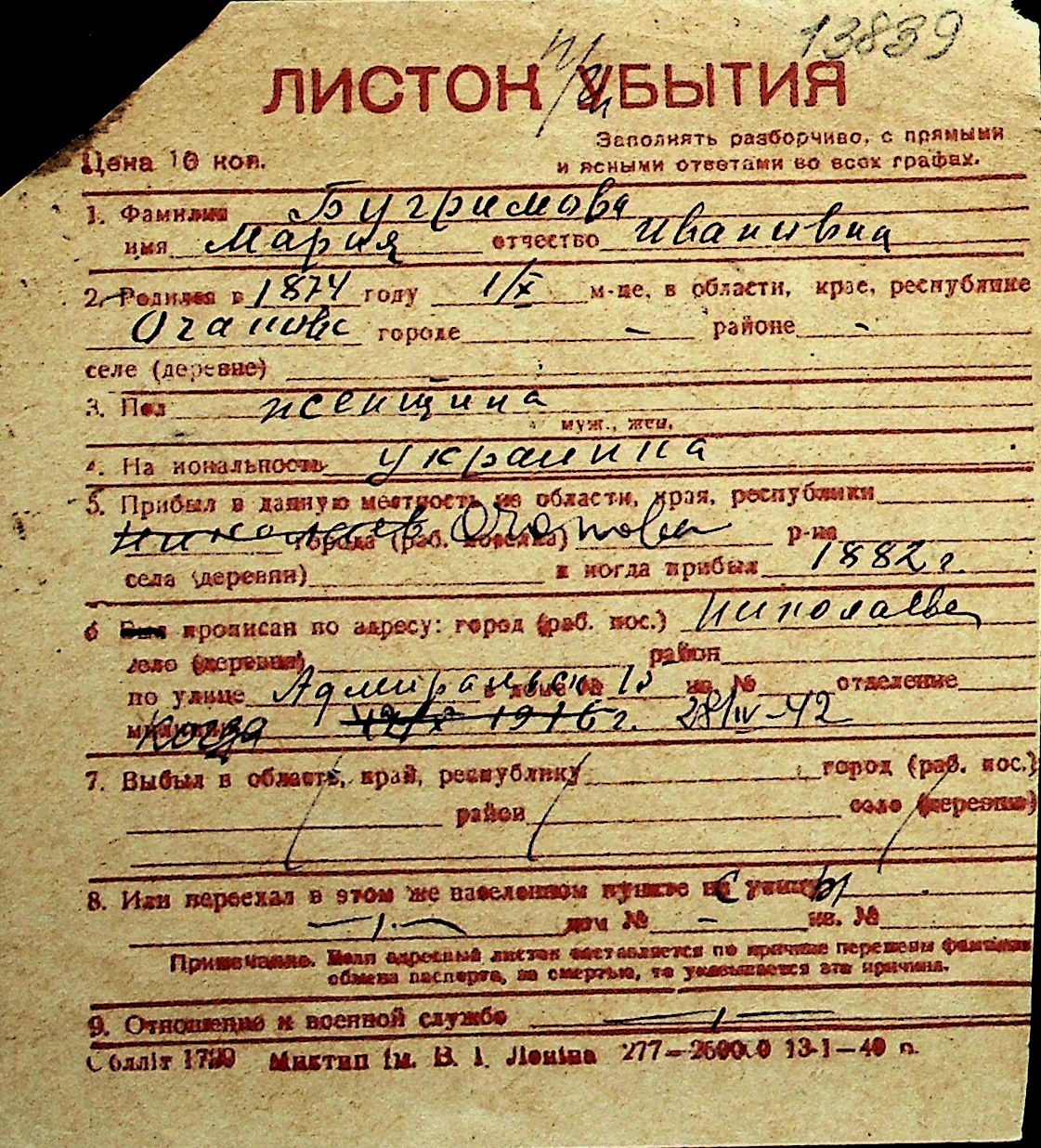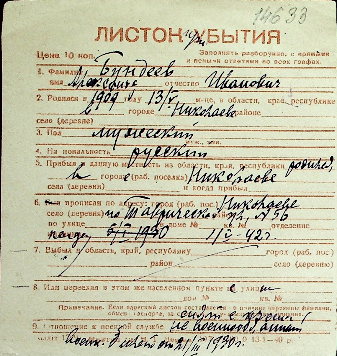 ◦ ◦ Перелік карток на осіб, які мешкали у м. Миколаїв у період окупації 1941–1944 років