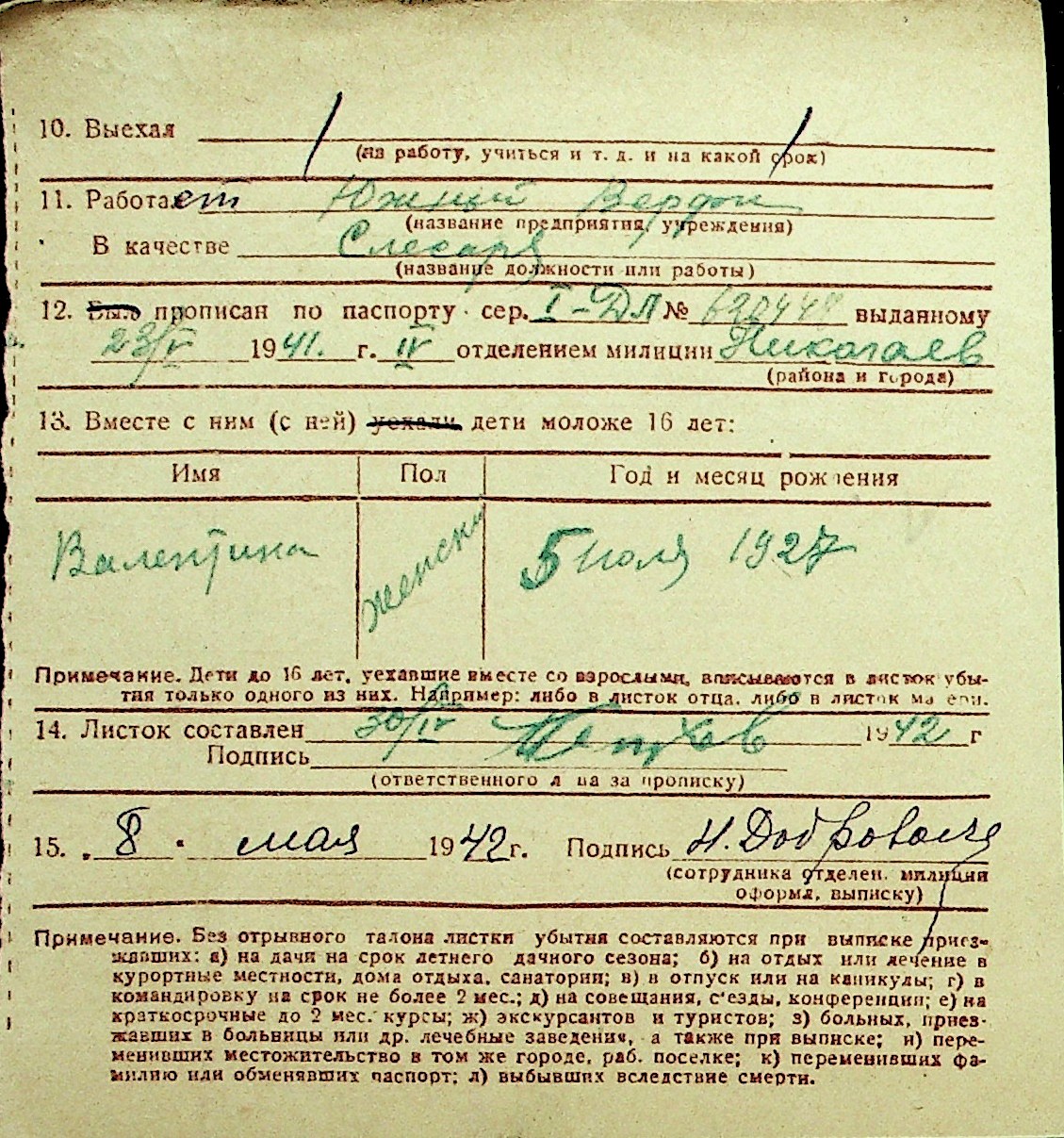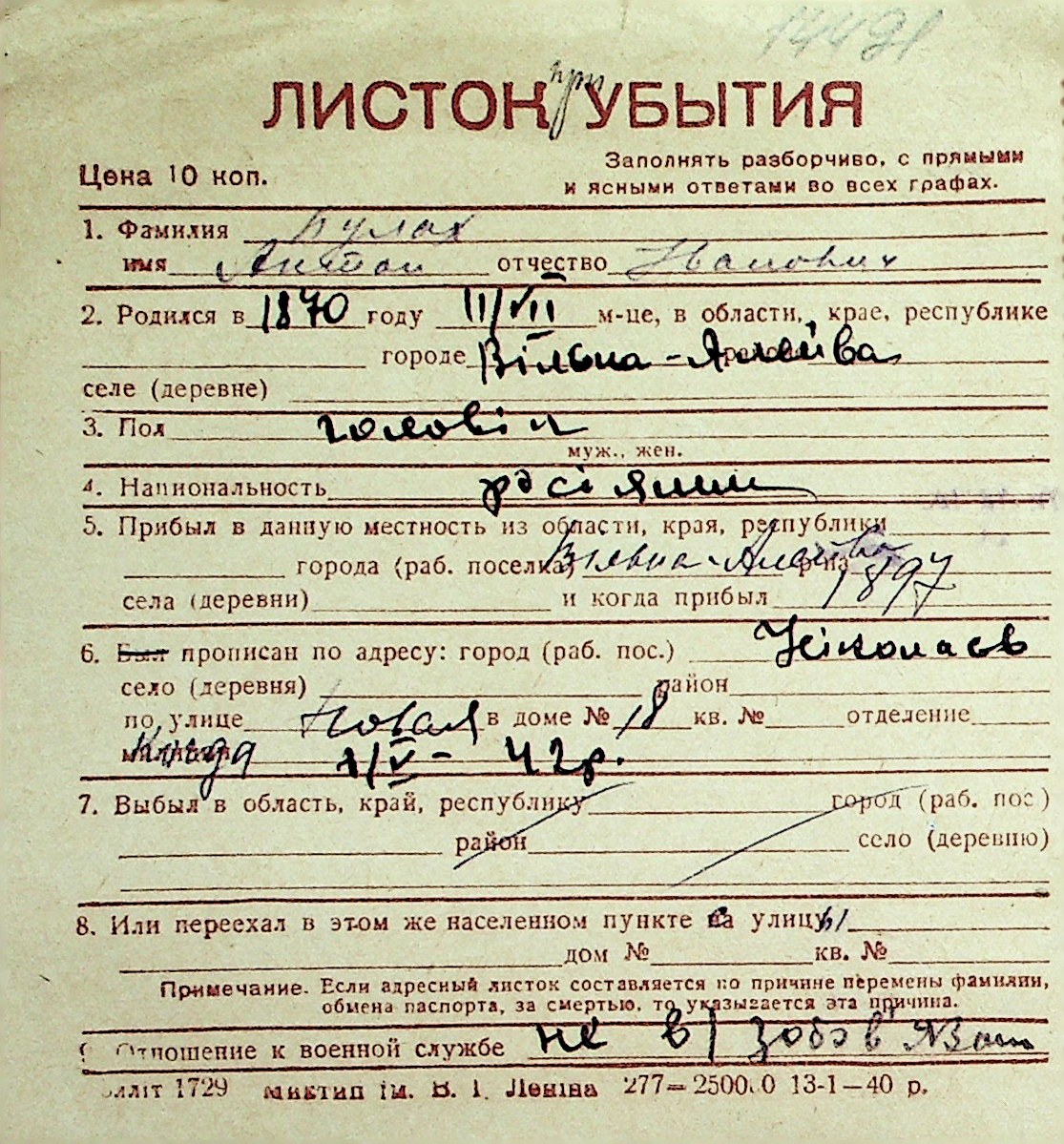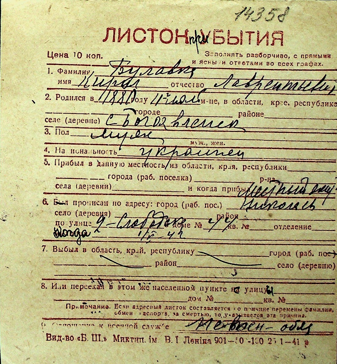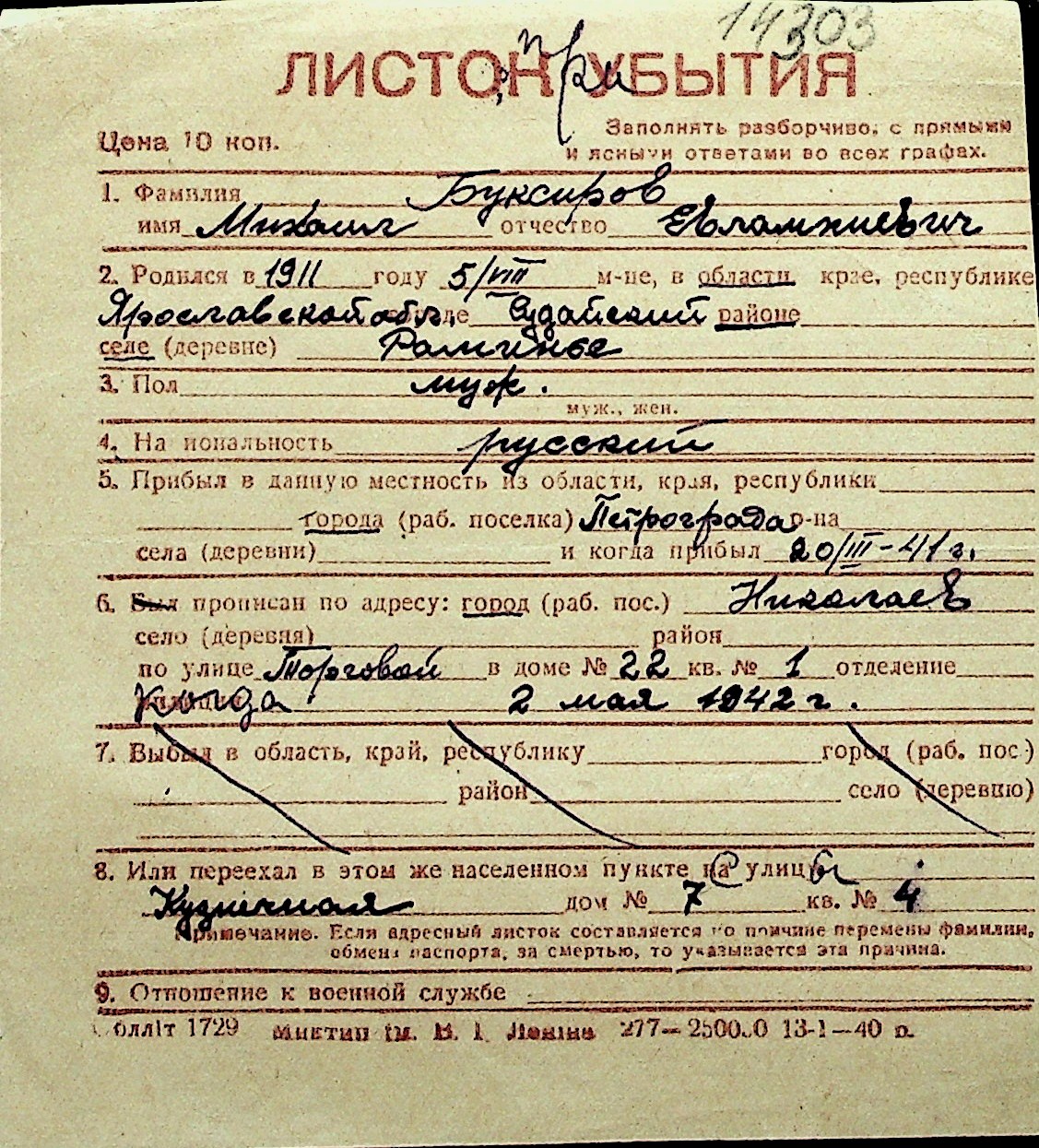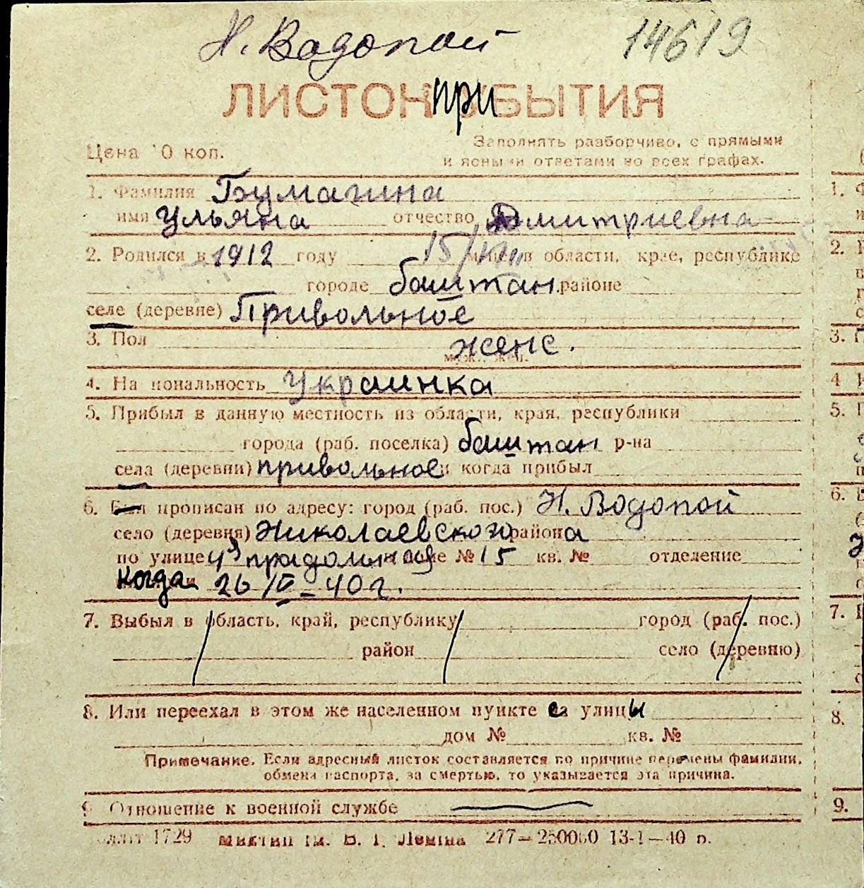 ◦ ◦ Перелік карток на осіб, які мешкали у м. Миколаїв у період окупації 1941–1944 років