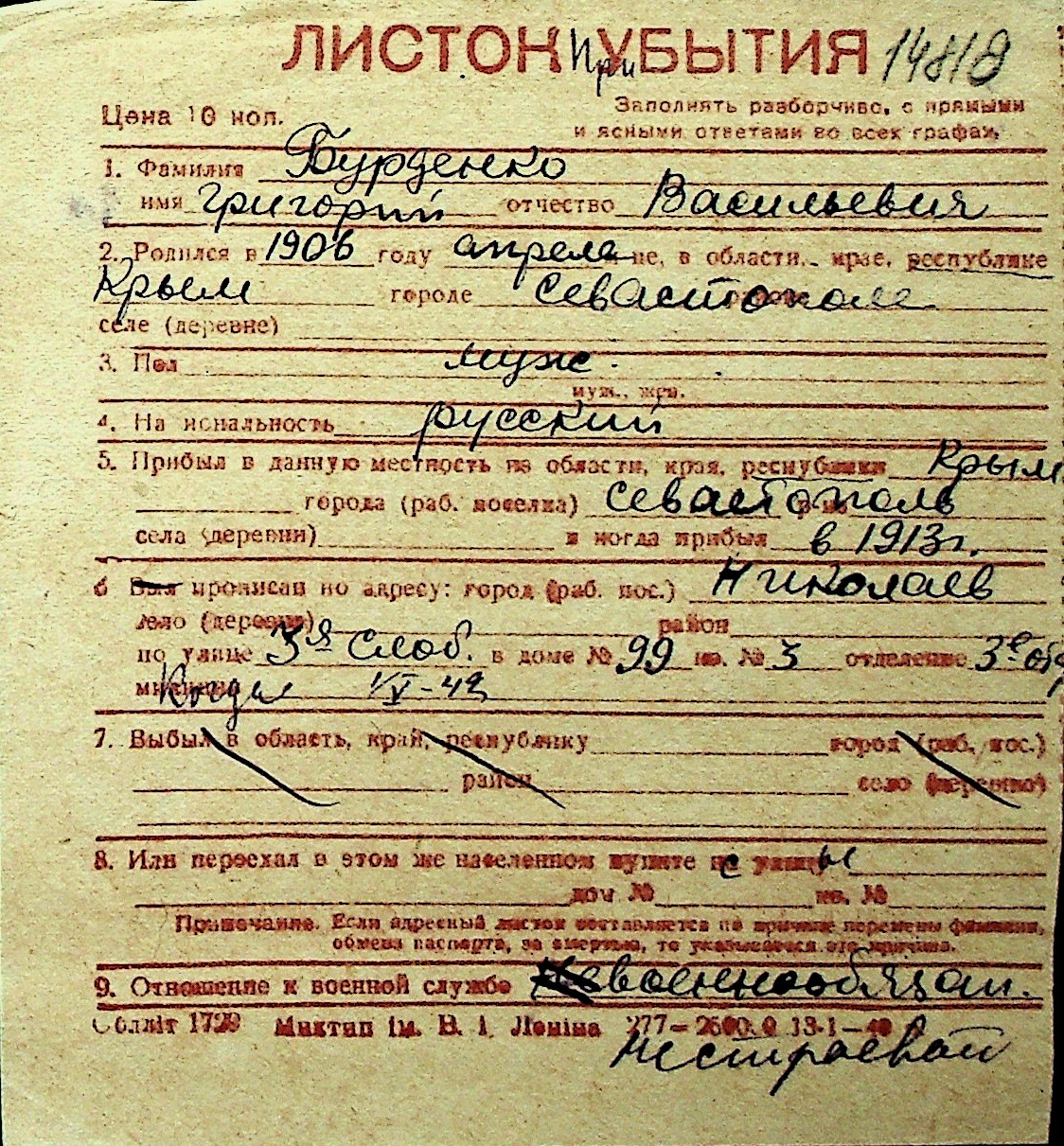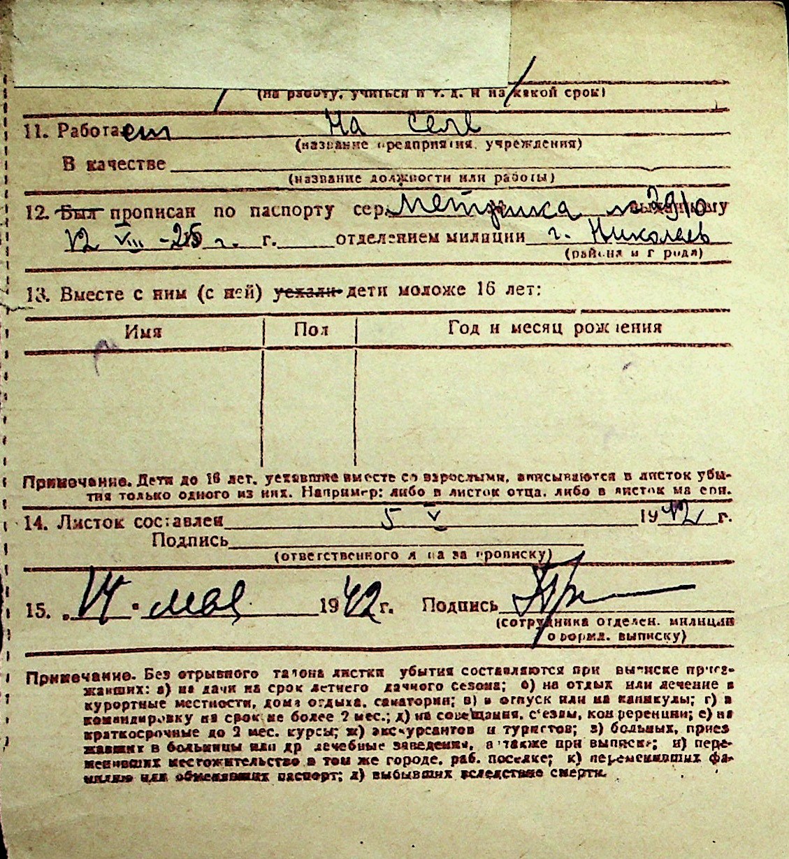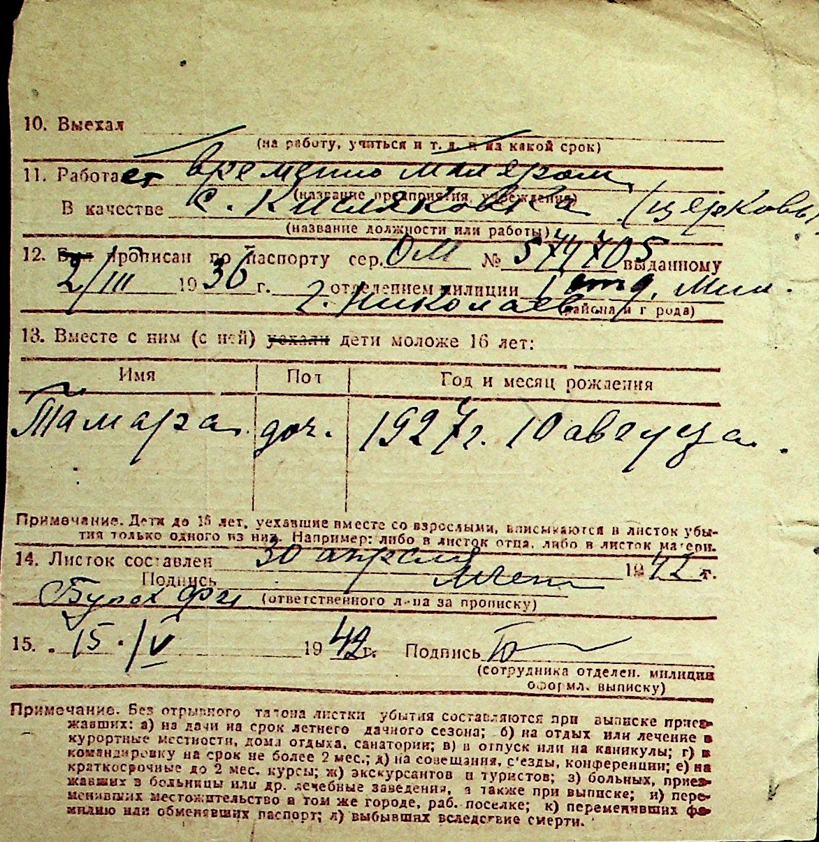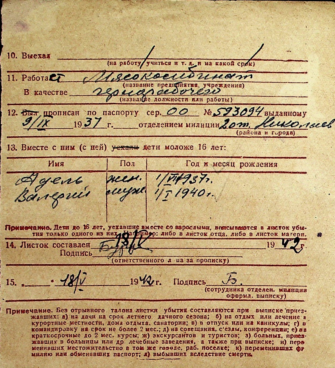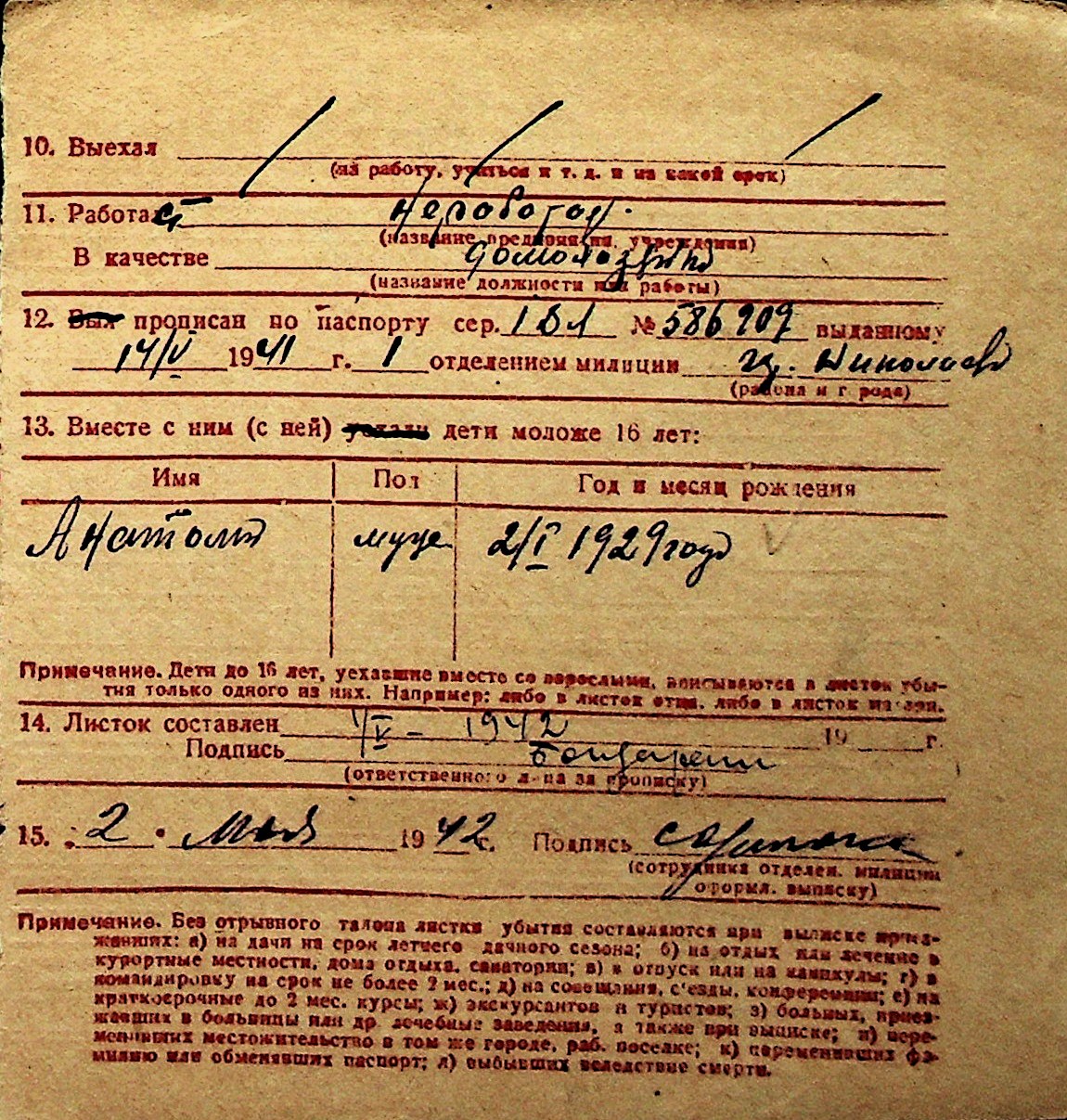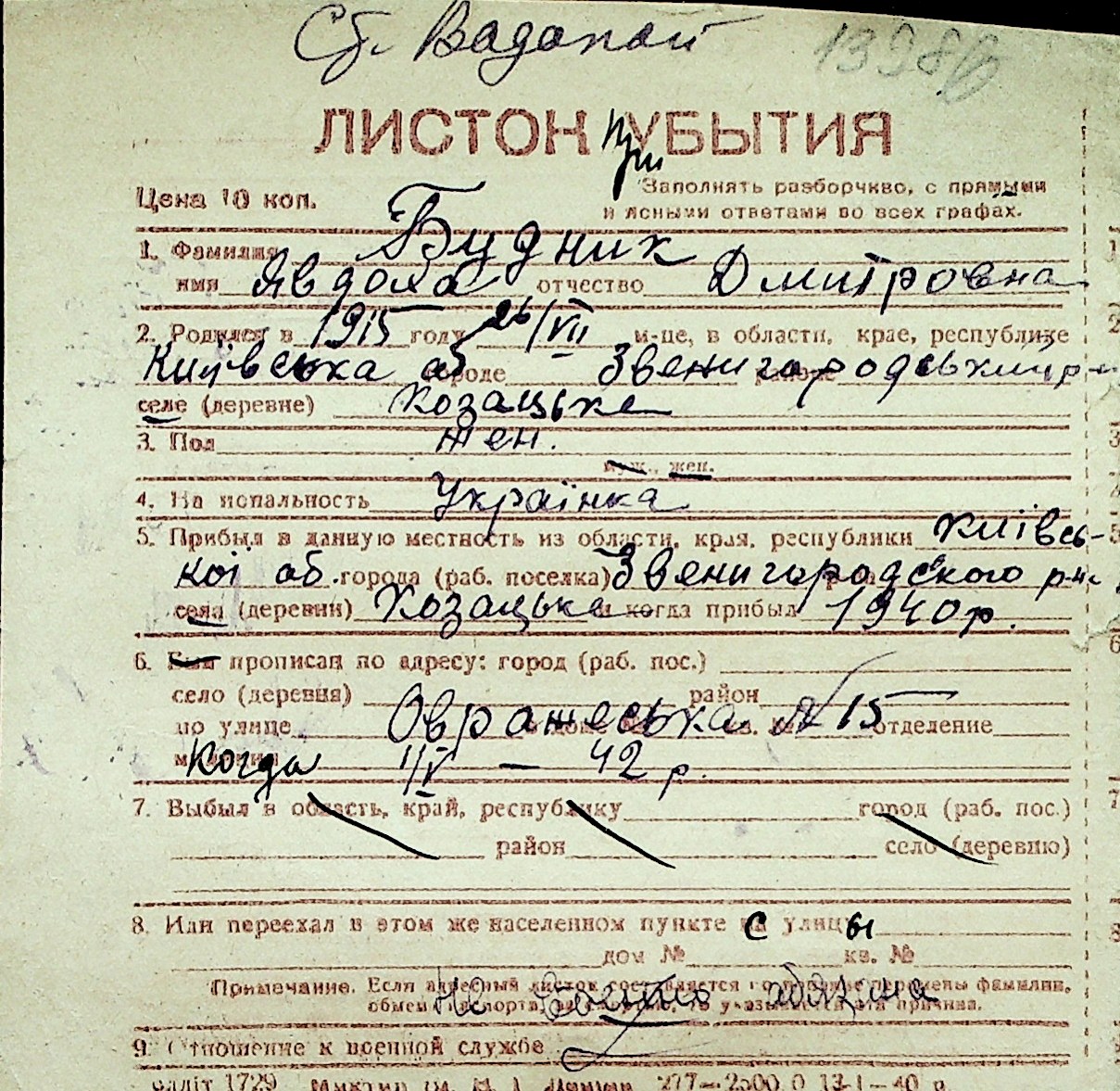 ◦ ◦ Перелік карток на осіб, які мешкали у м. Миколаїв у період окупації 1941–1944 років