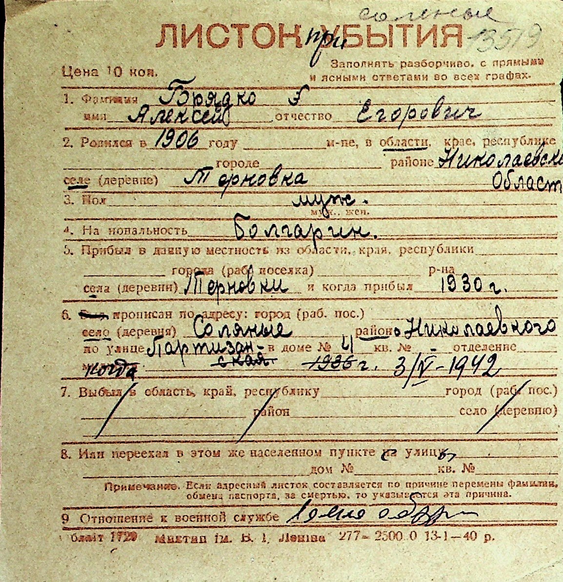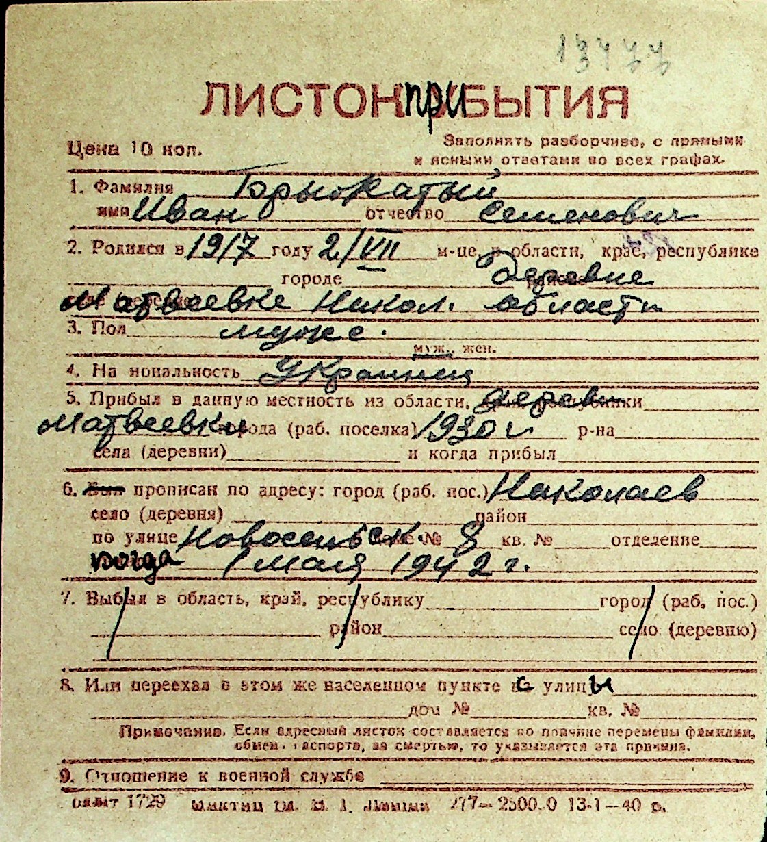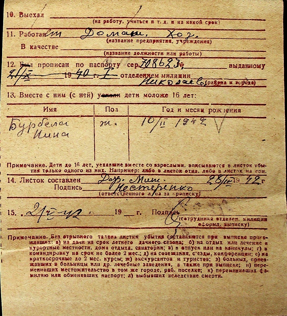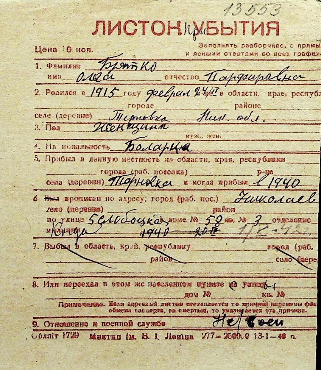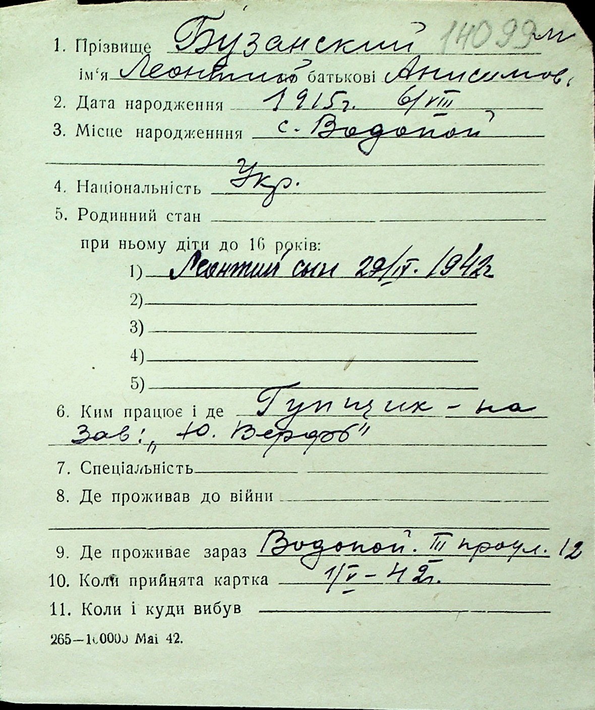 ◦ ◦ Перелік карток на осіб, які мешкали у м. Миколаїв у період окупації 1941–1944 років