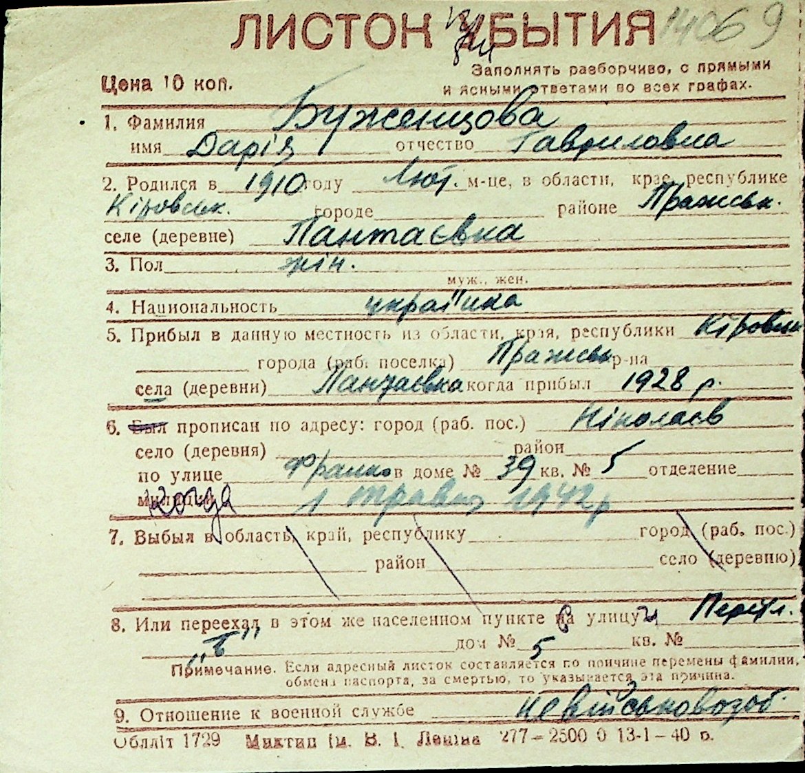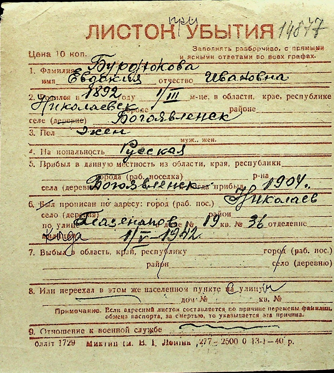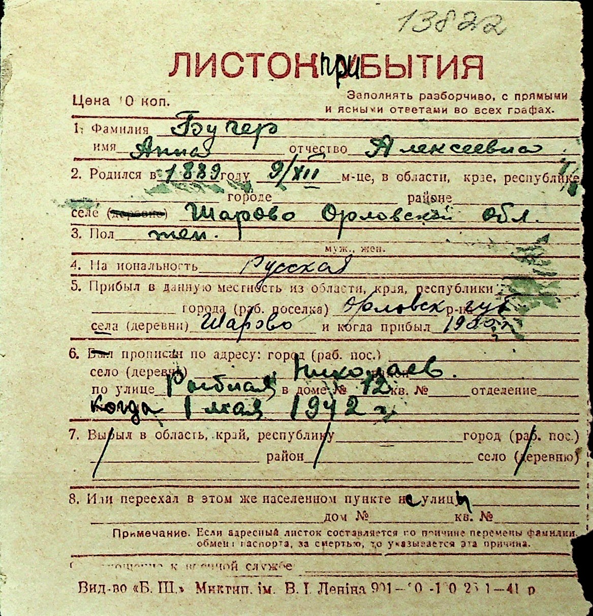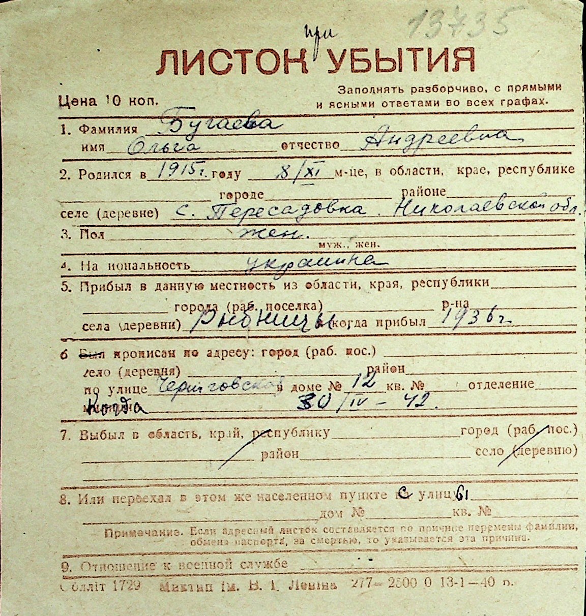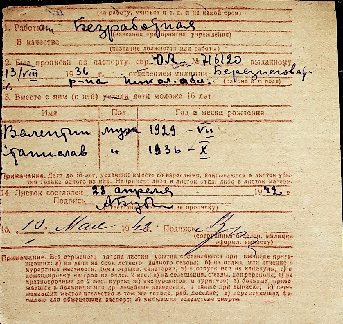 ◦ ◦ Перелік карток на осіб, які мешкали у м. Миколаїв у період окупації 1941–1944 років