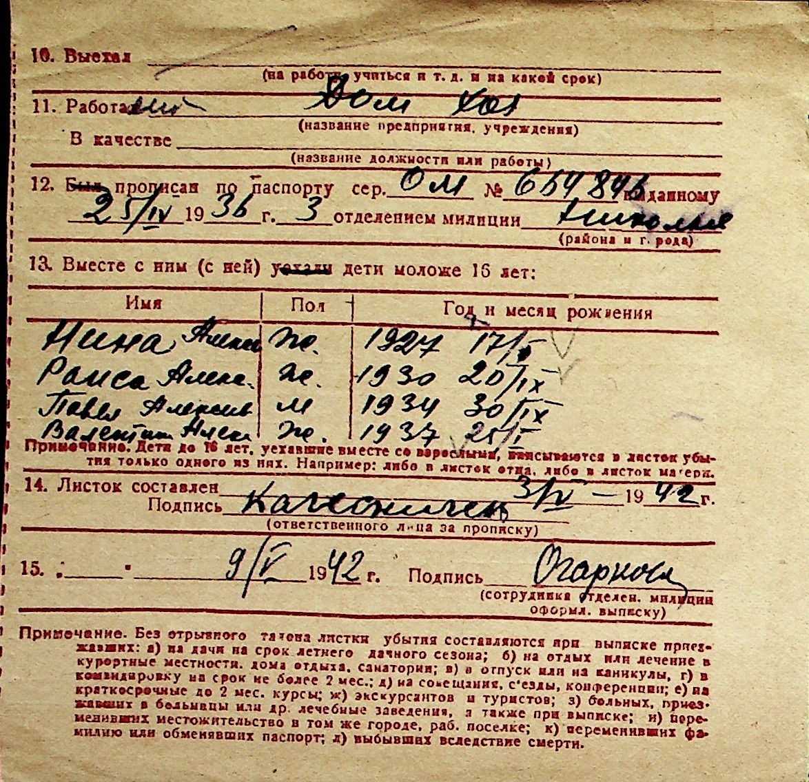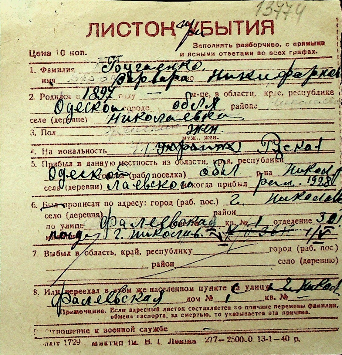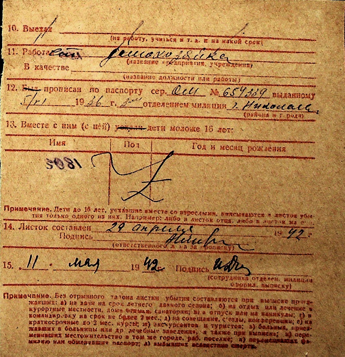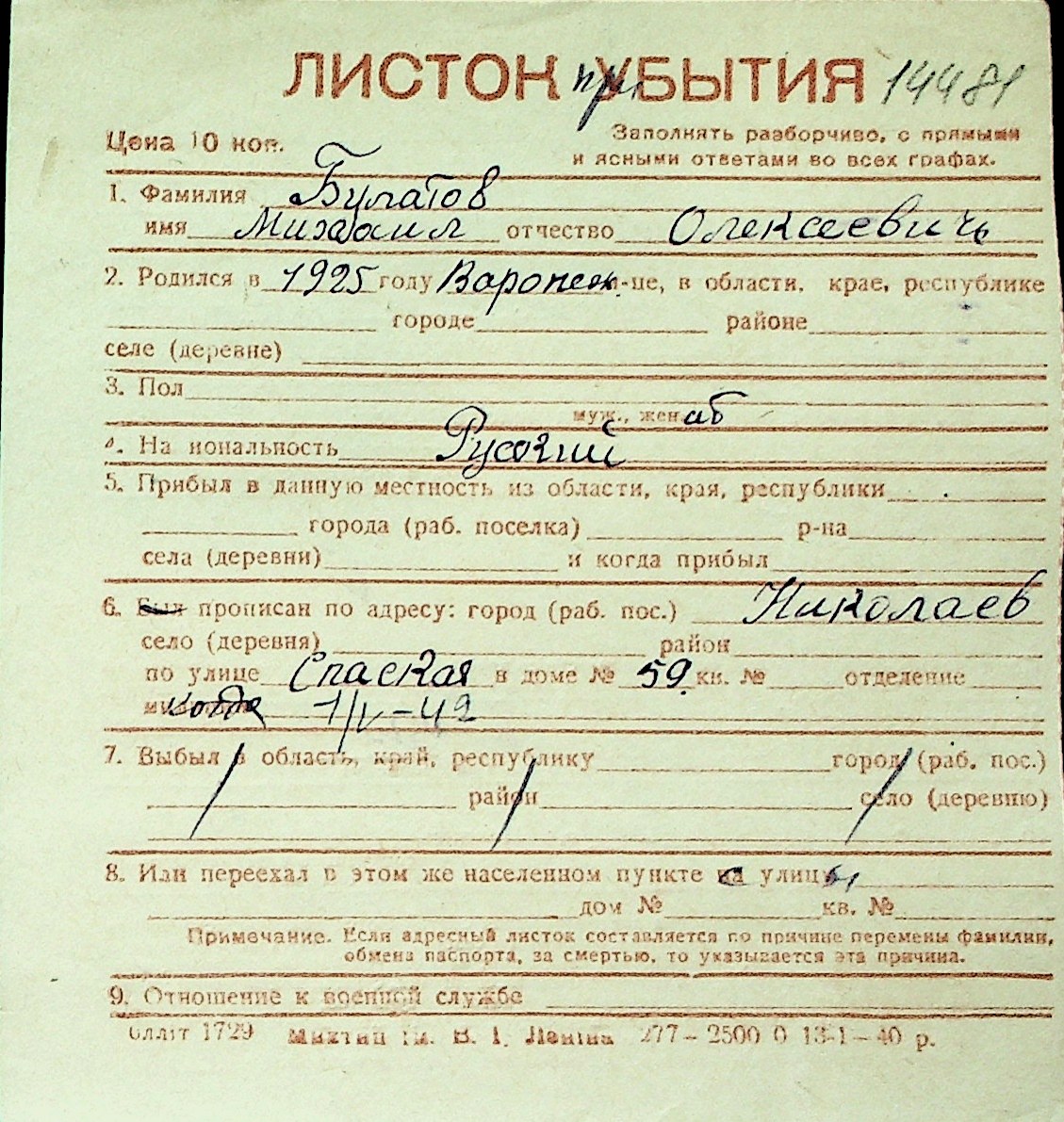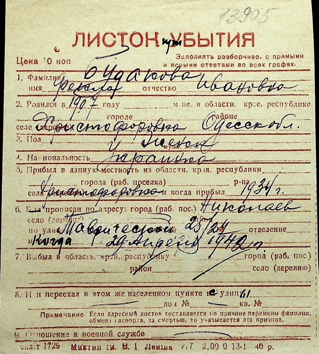 ◦ ◦ Перелік карток на осіб, які мешкали у м. Миколаїв у період окупації 1941–1944 років