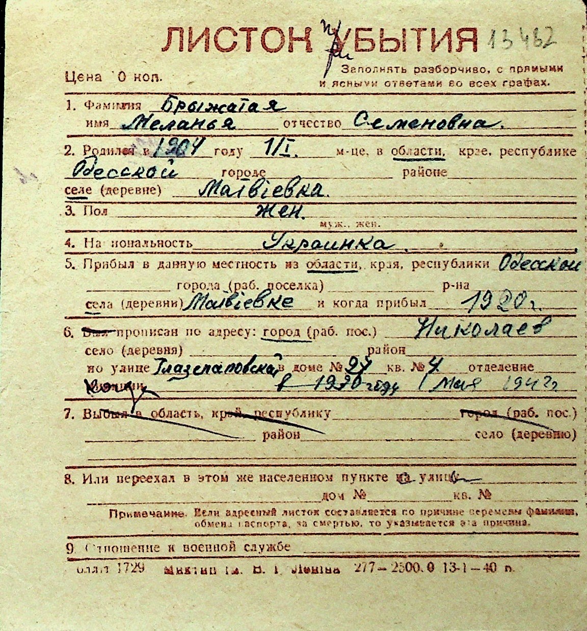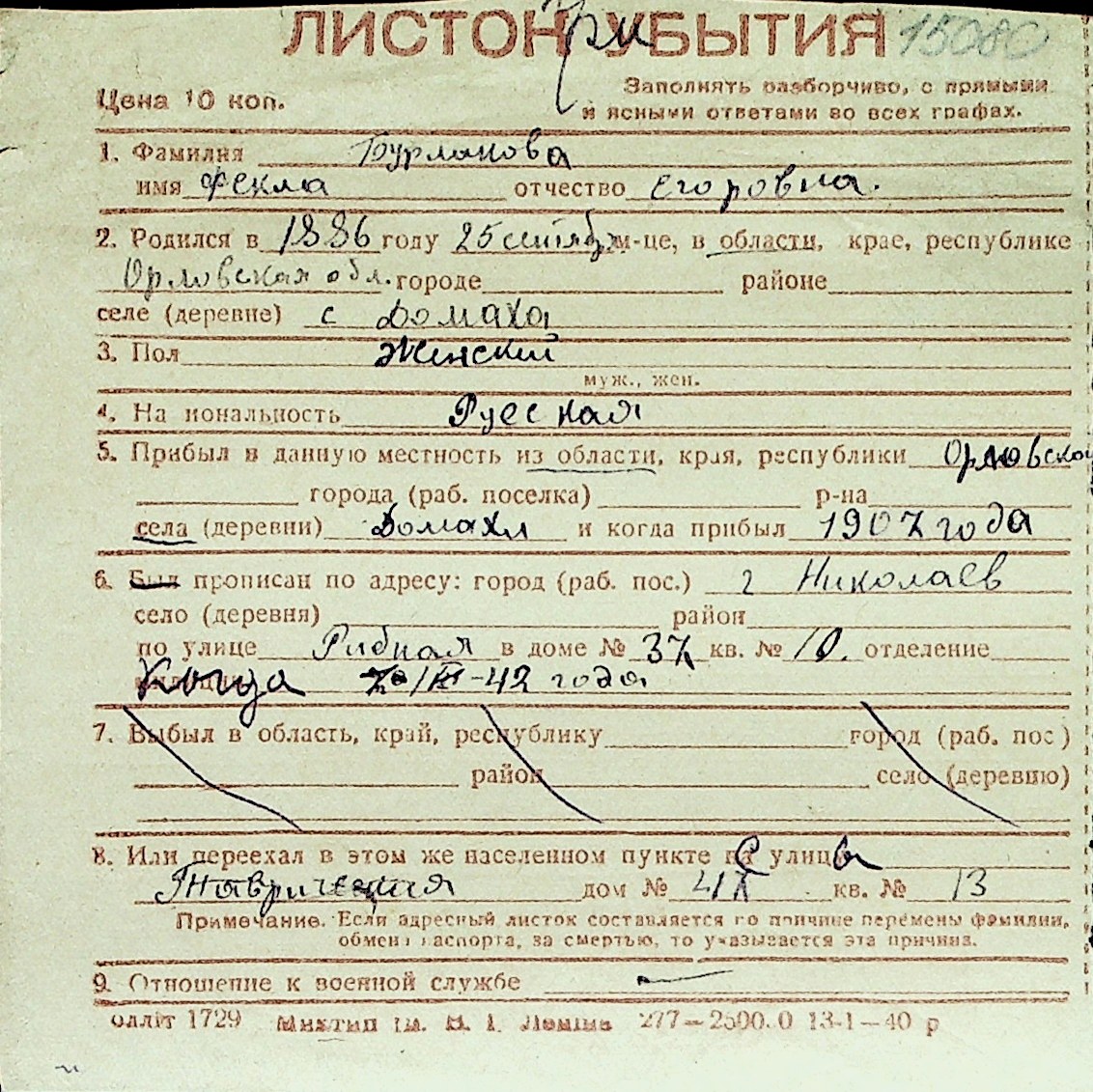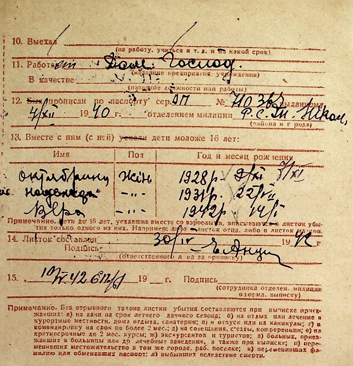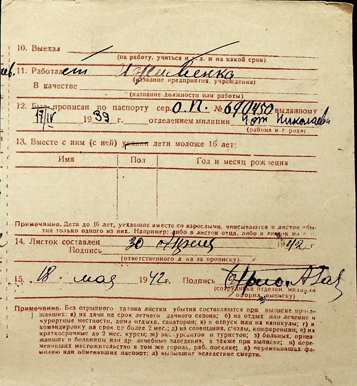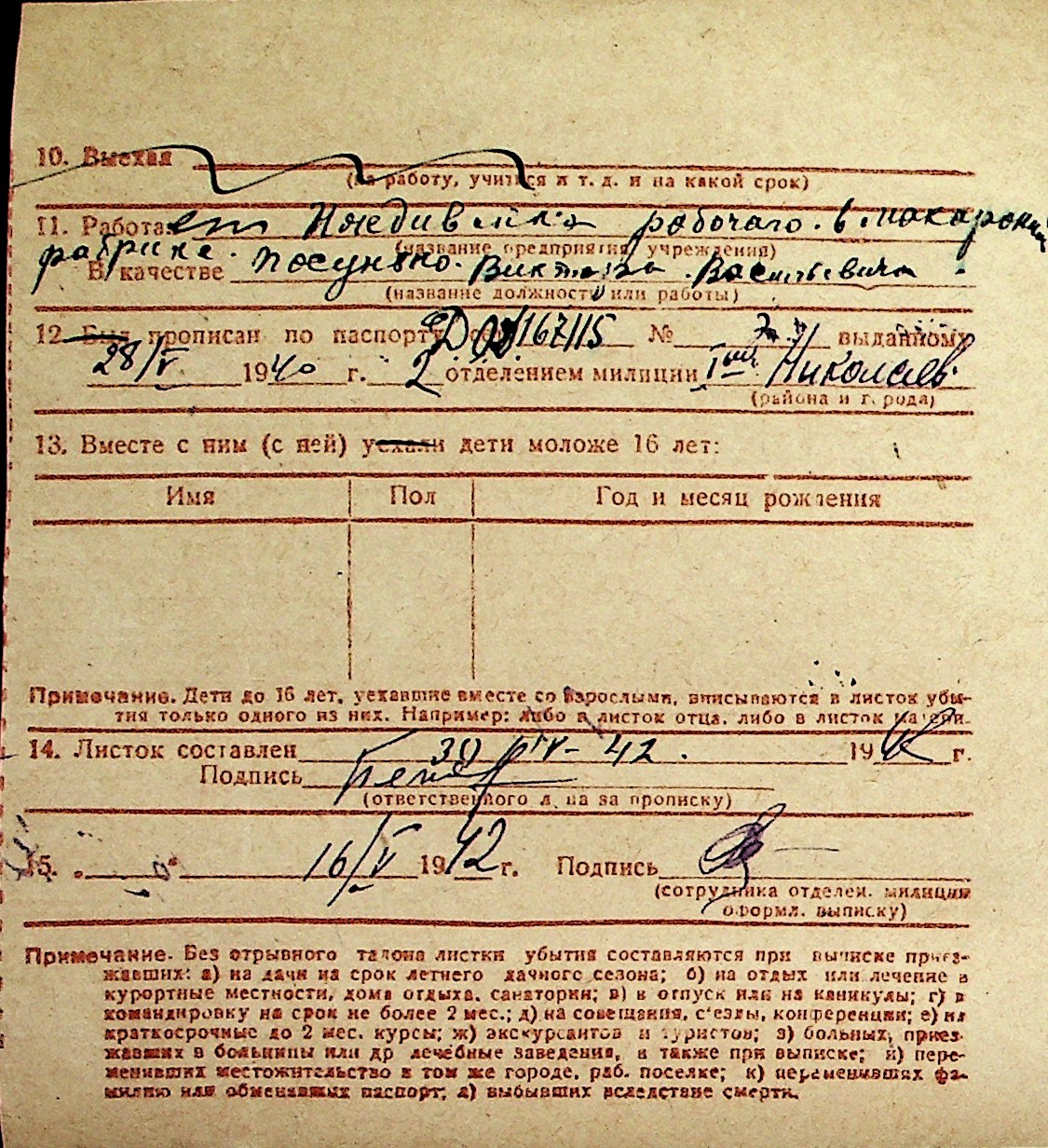 ◦ ◦ Перелік карток на осіб, які мешкали у м. Миколаїв у період окупації 1941–1944 років