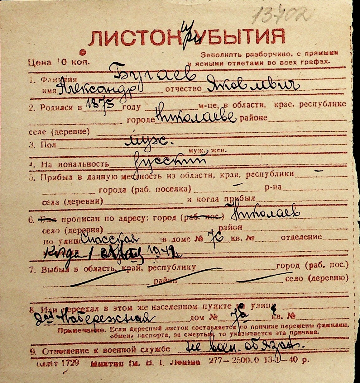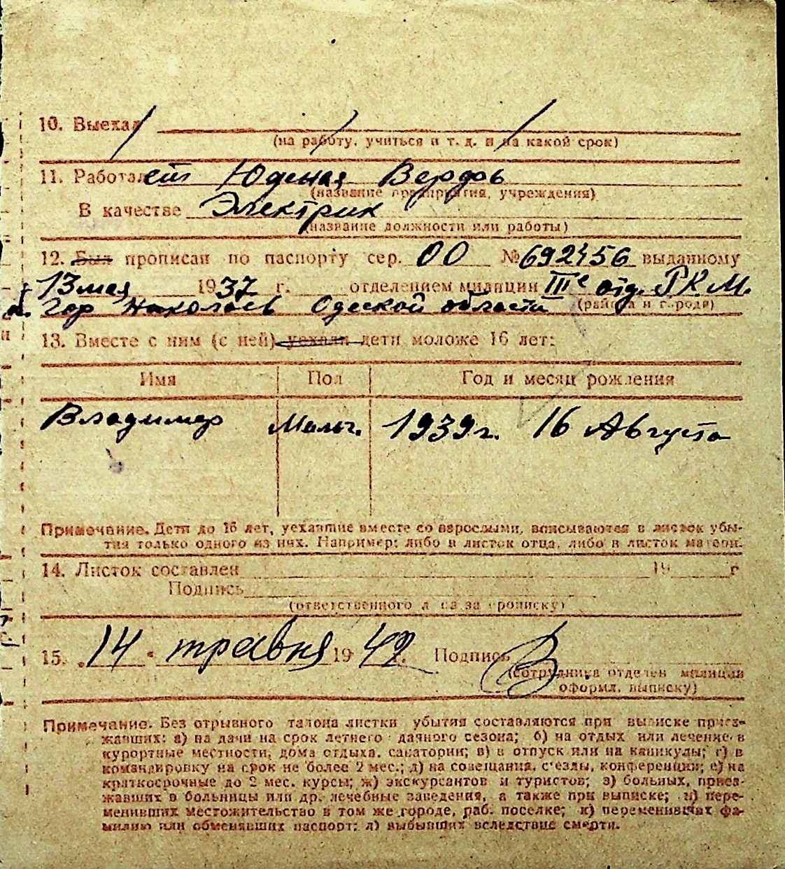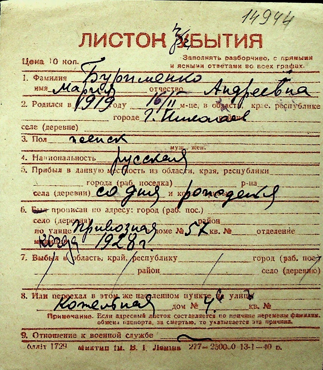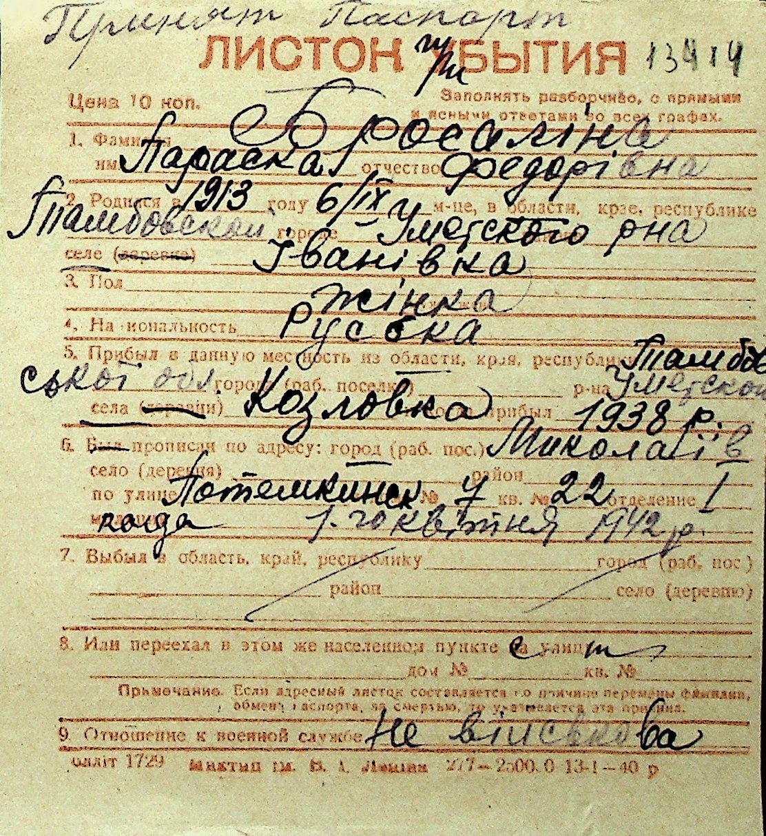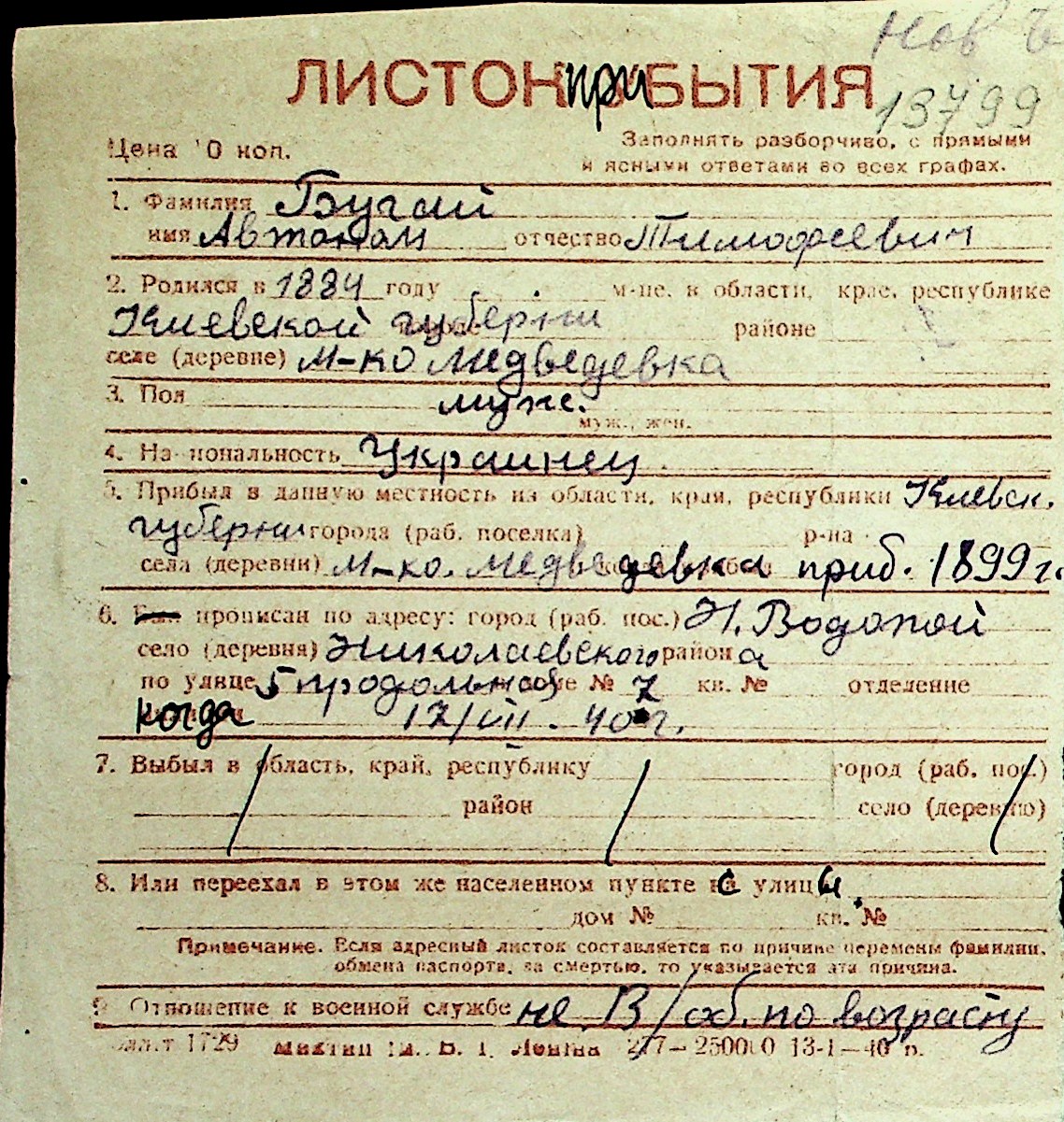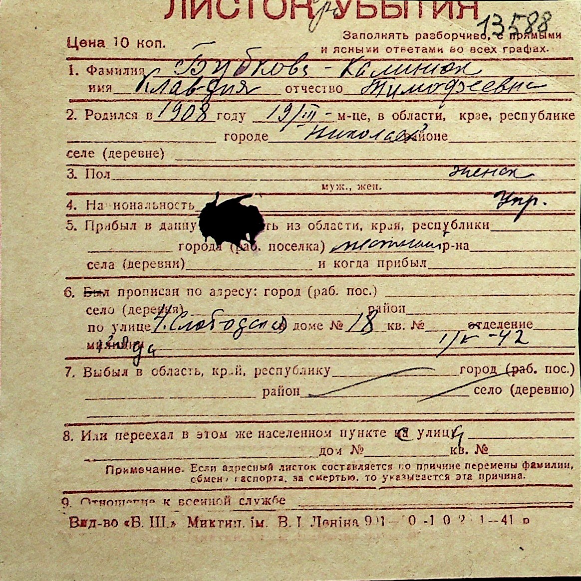 ◦ ◦ Перелік карток на осіб, які мешкали у м. Миколаїв у період окупації 1941–1944 років