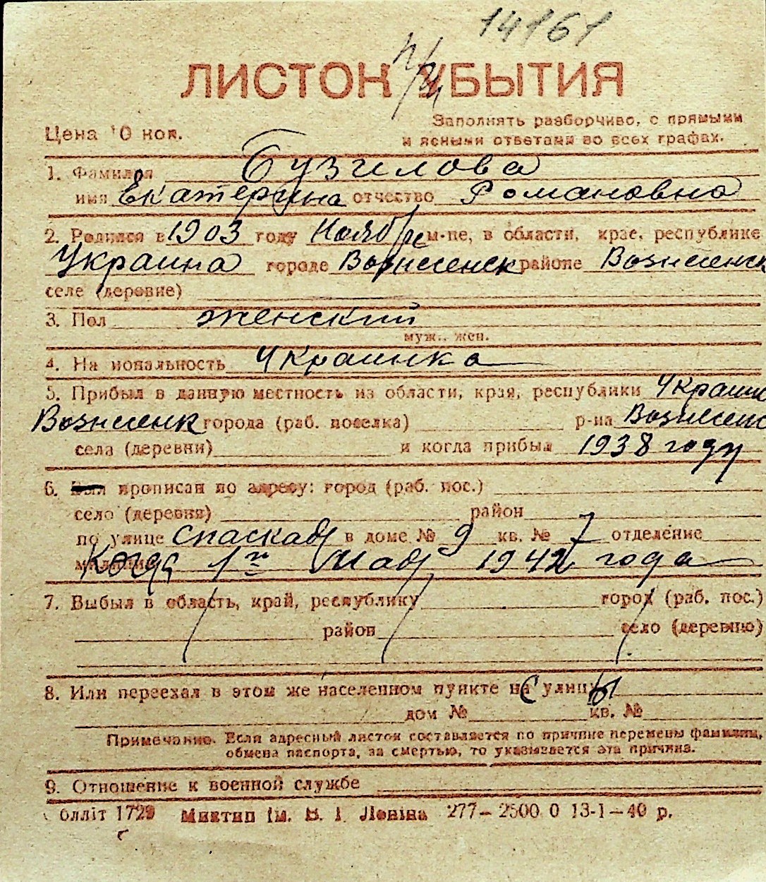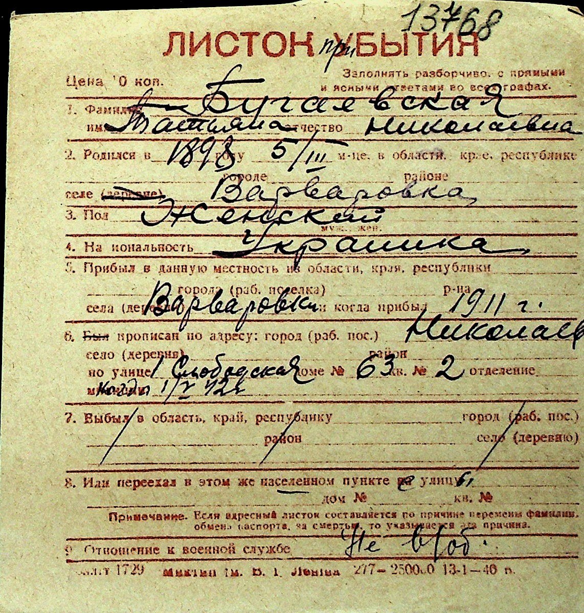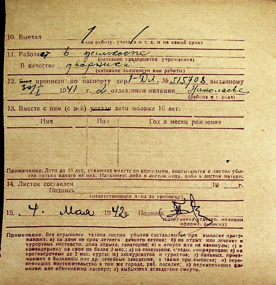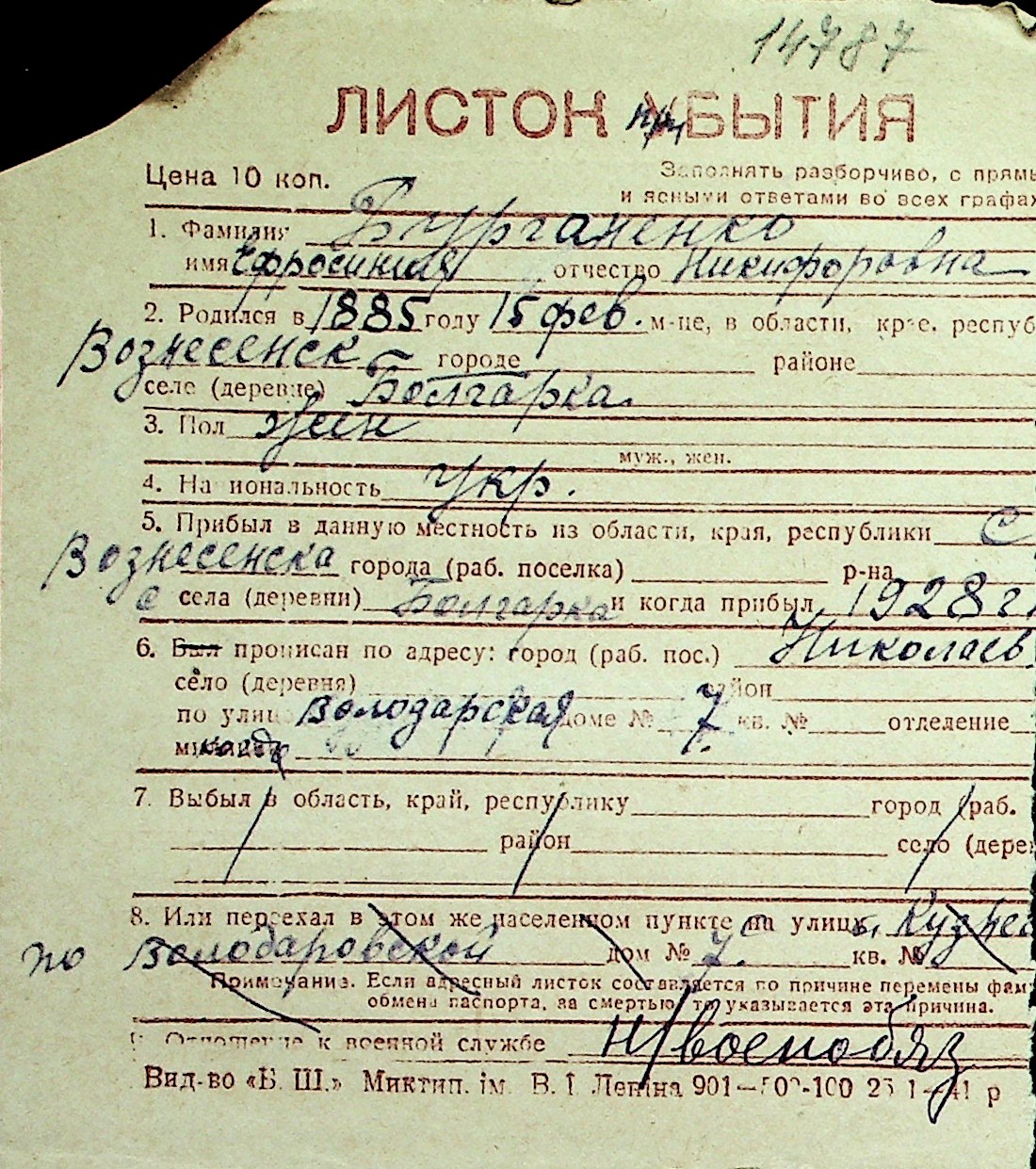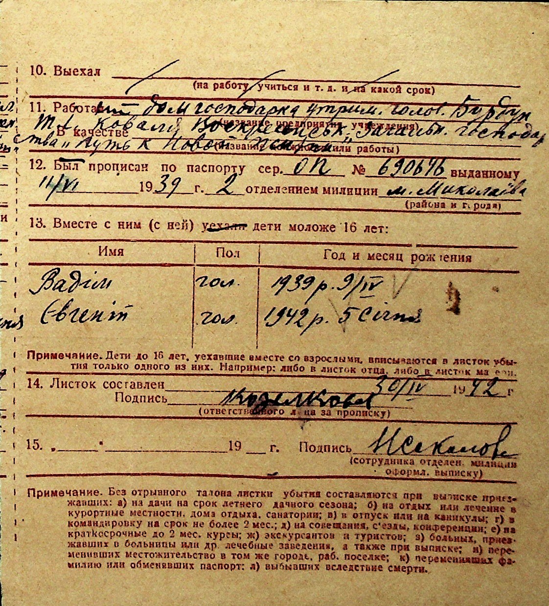 ◦ ◦ Перелік карток на осіб, які мешкали у м. Миколаїв у період окупації 1941–1944 років