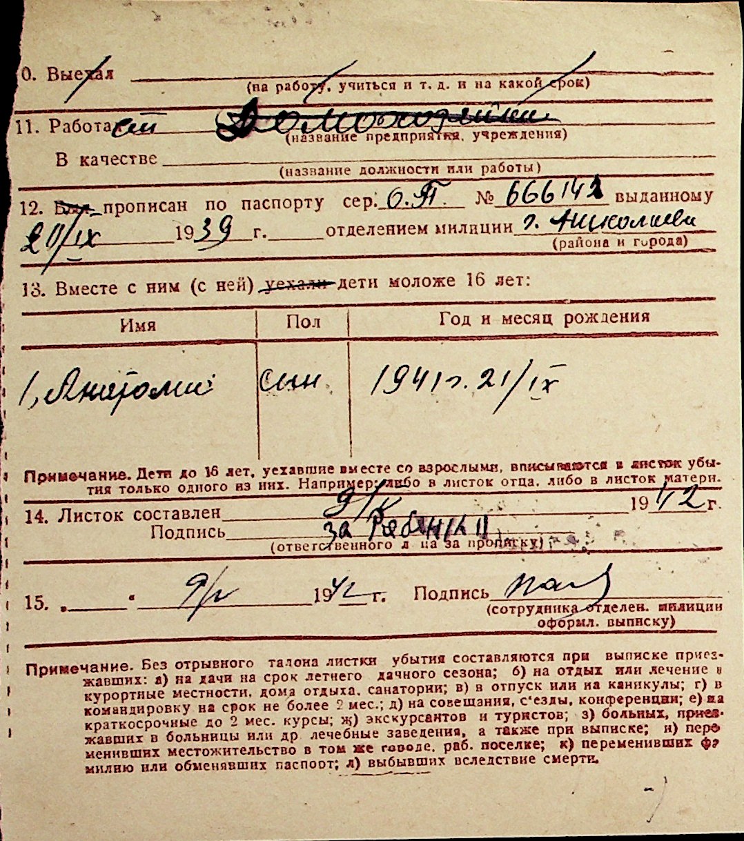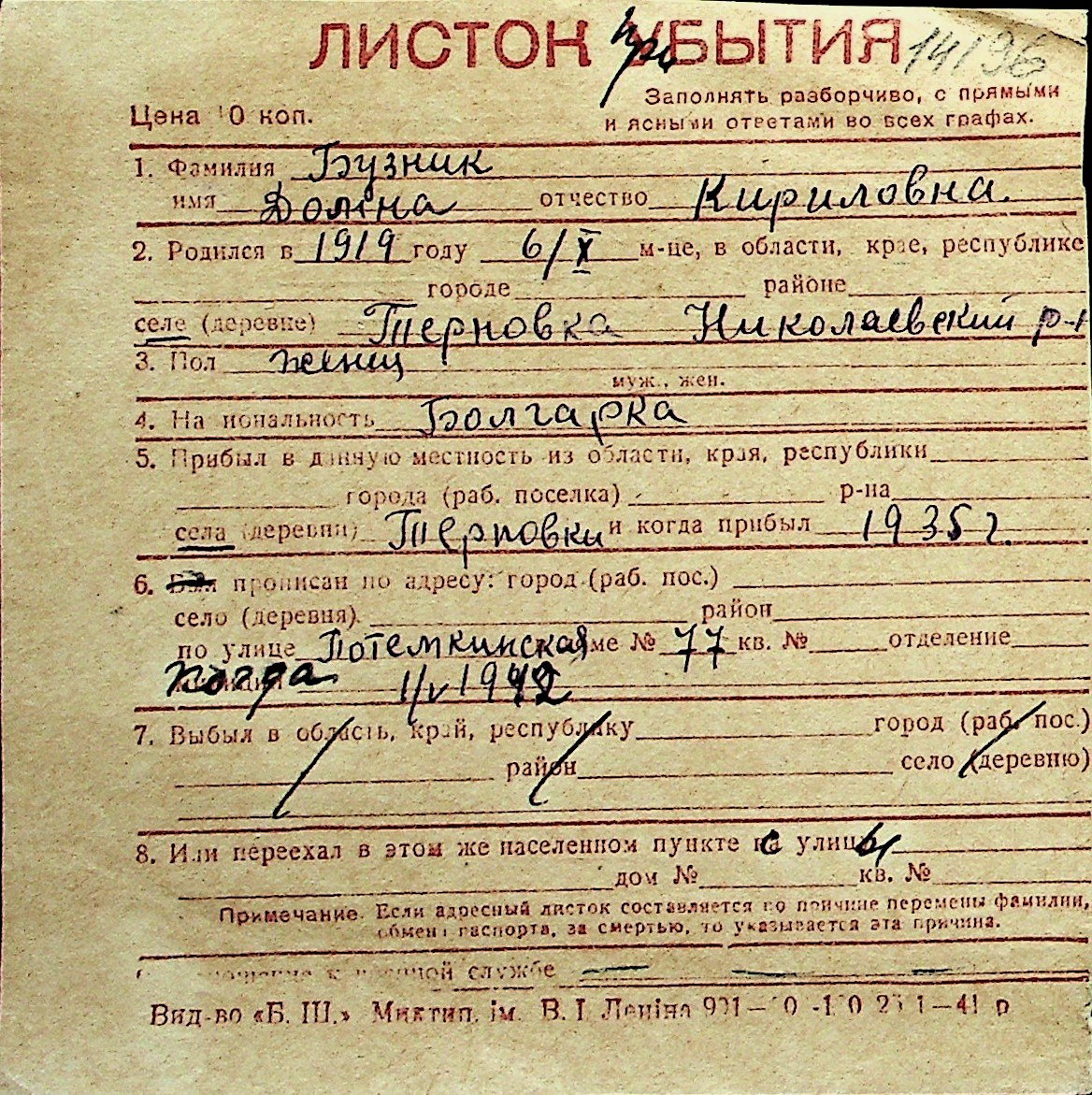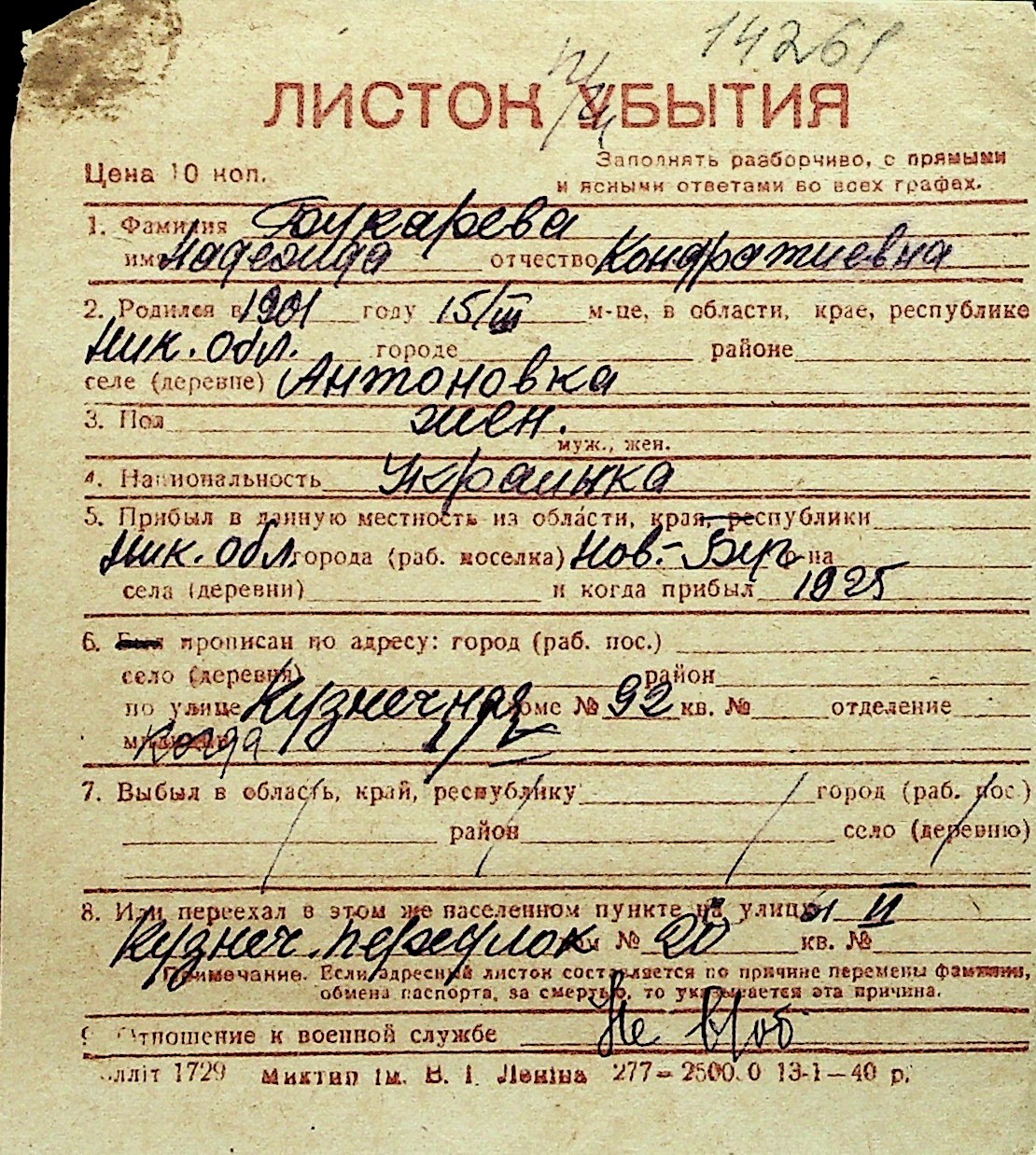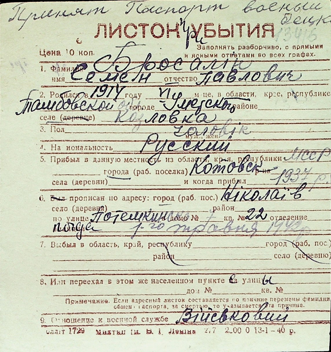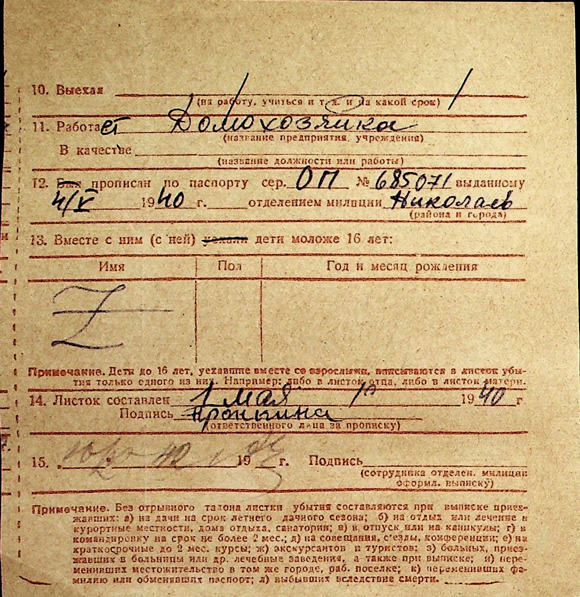 ◦ ◦ Перелік карток на осіб, які мешкали у м. Миколаїв у період окупації 1941–1944 років
