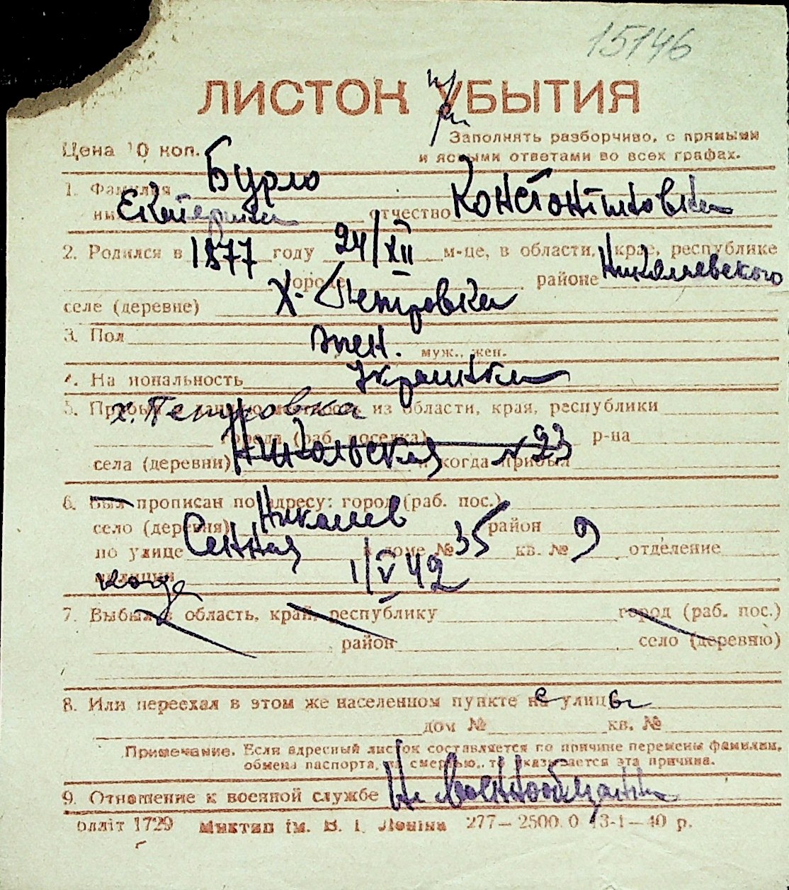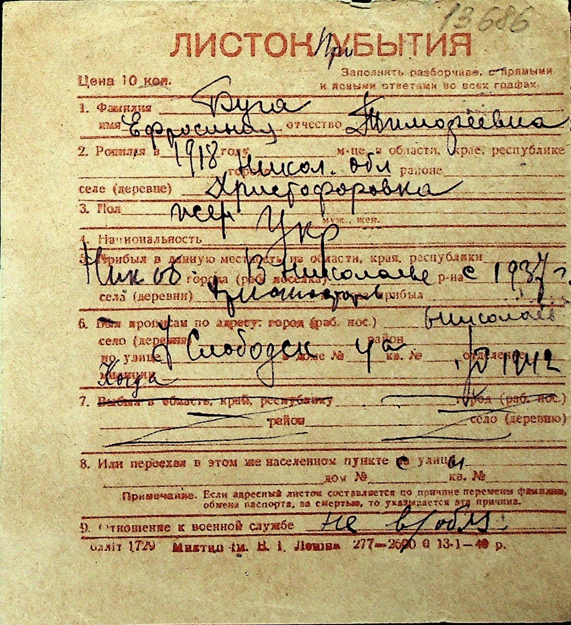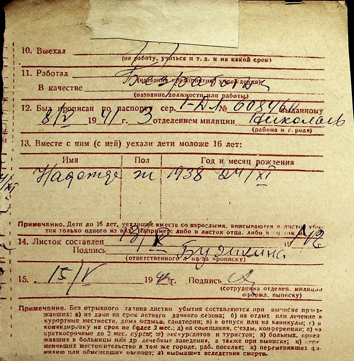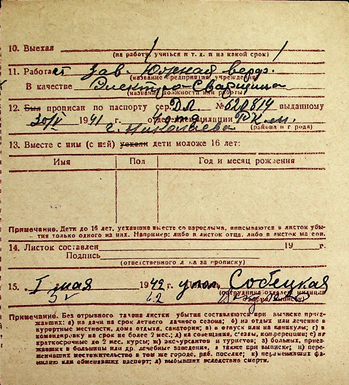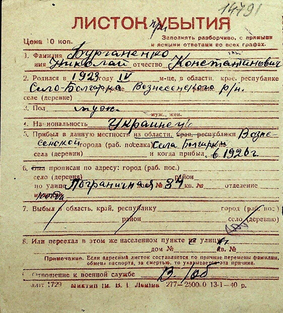 ◦ ◦ Перелік карток на осіб, які мешкали у м. Миколаїв у період окупації 1941–1944 років
