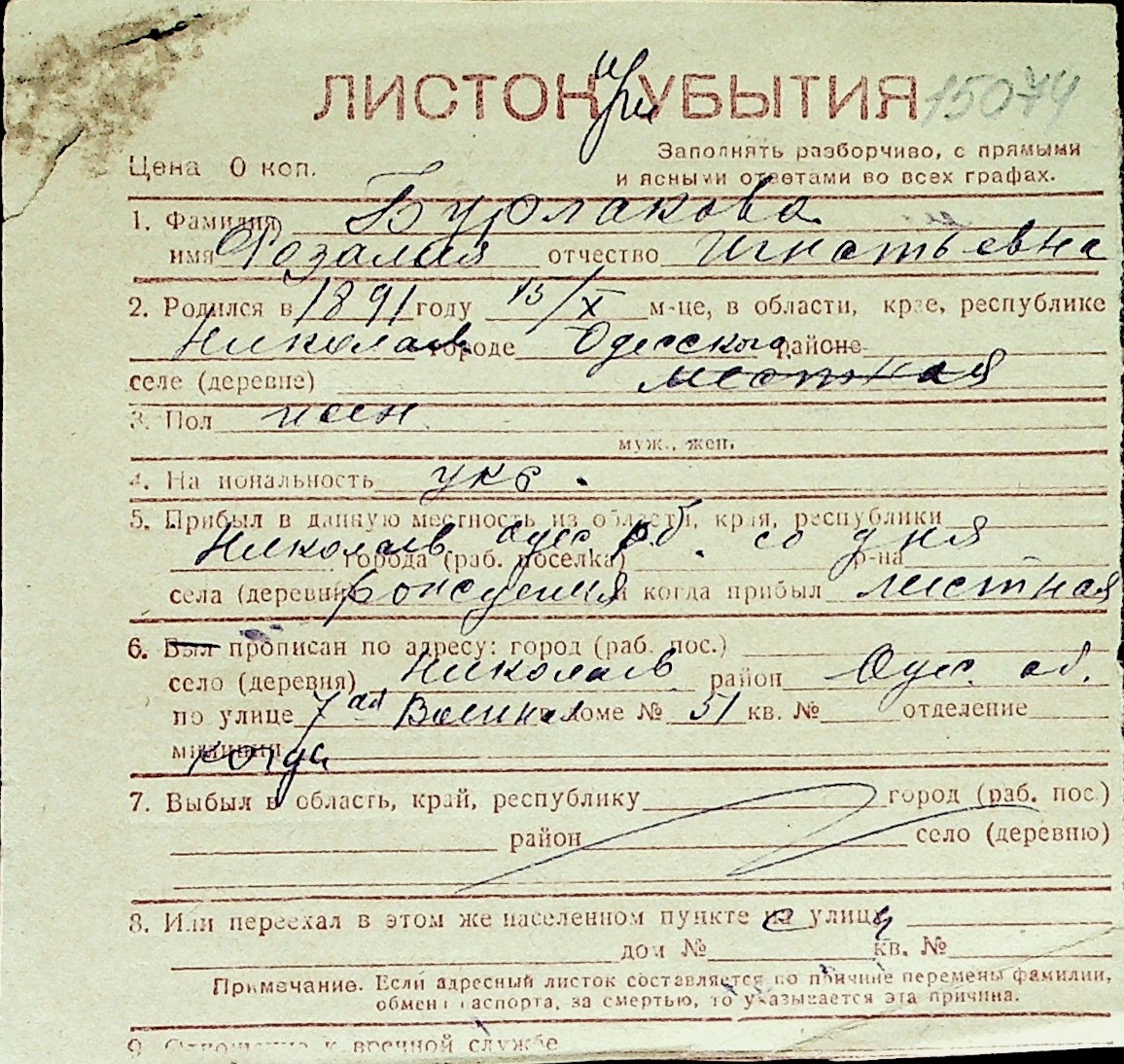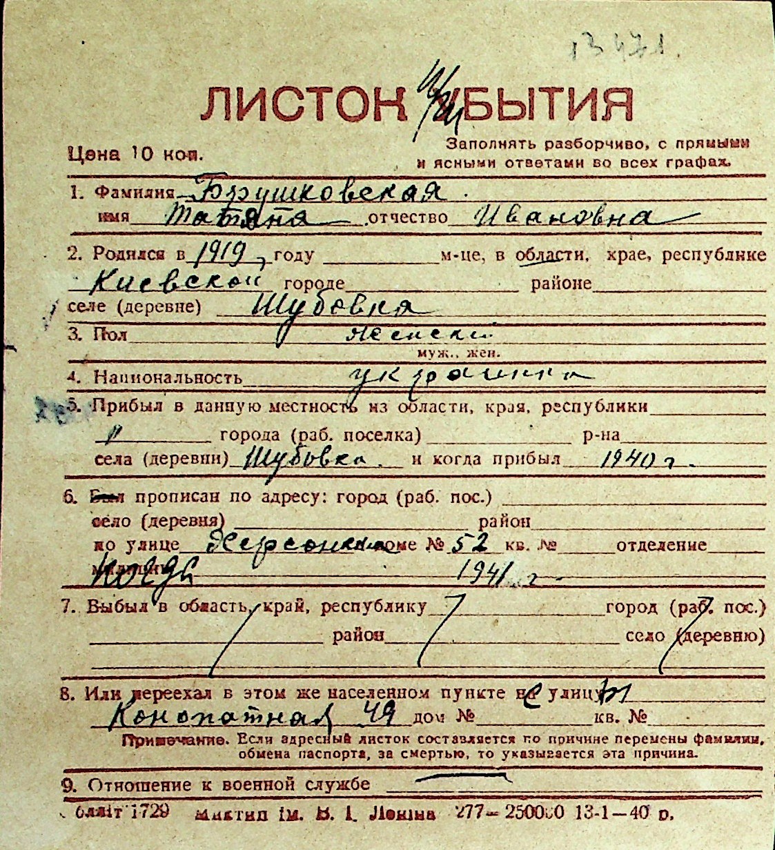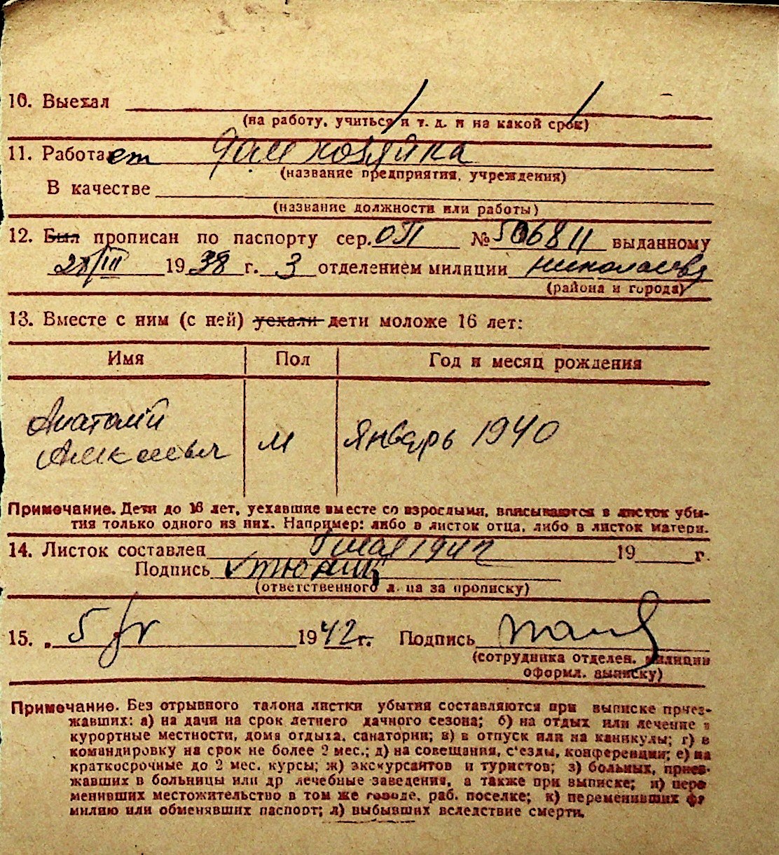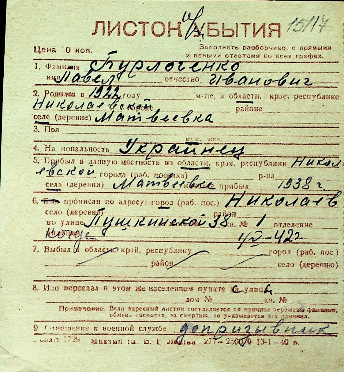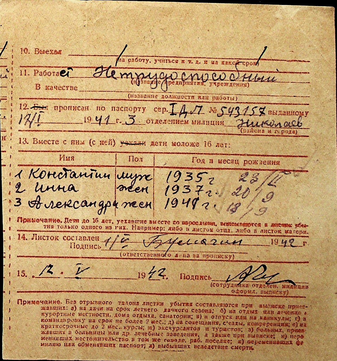 ◦ ◦ Перелік карток на осіб, які мешкали у м. Миколаїв у період окупації 1941–1944 років