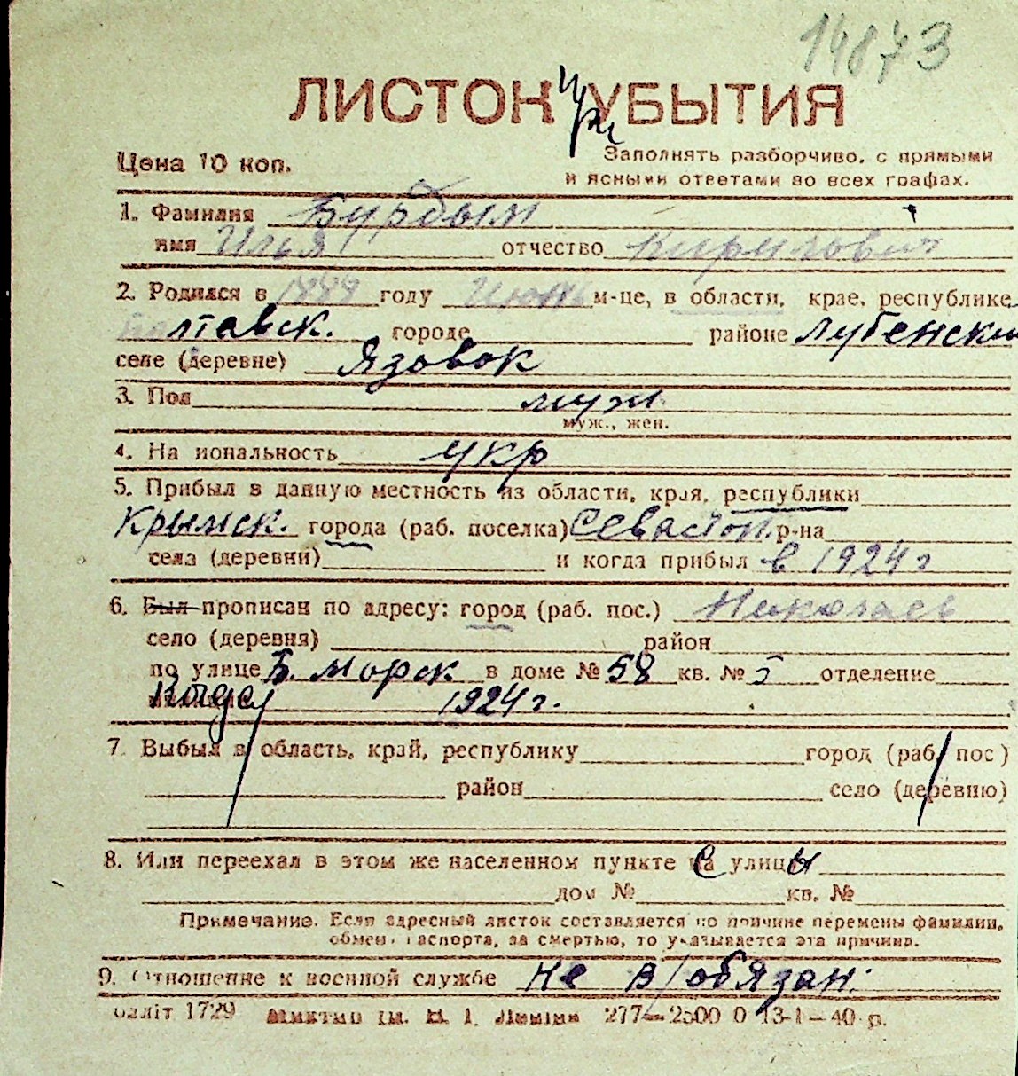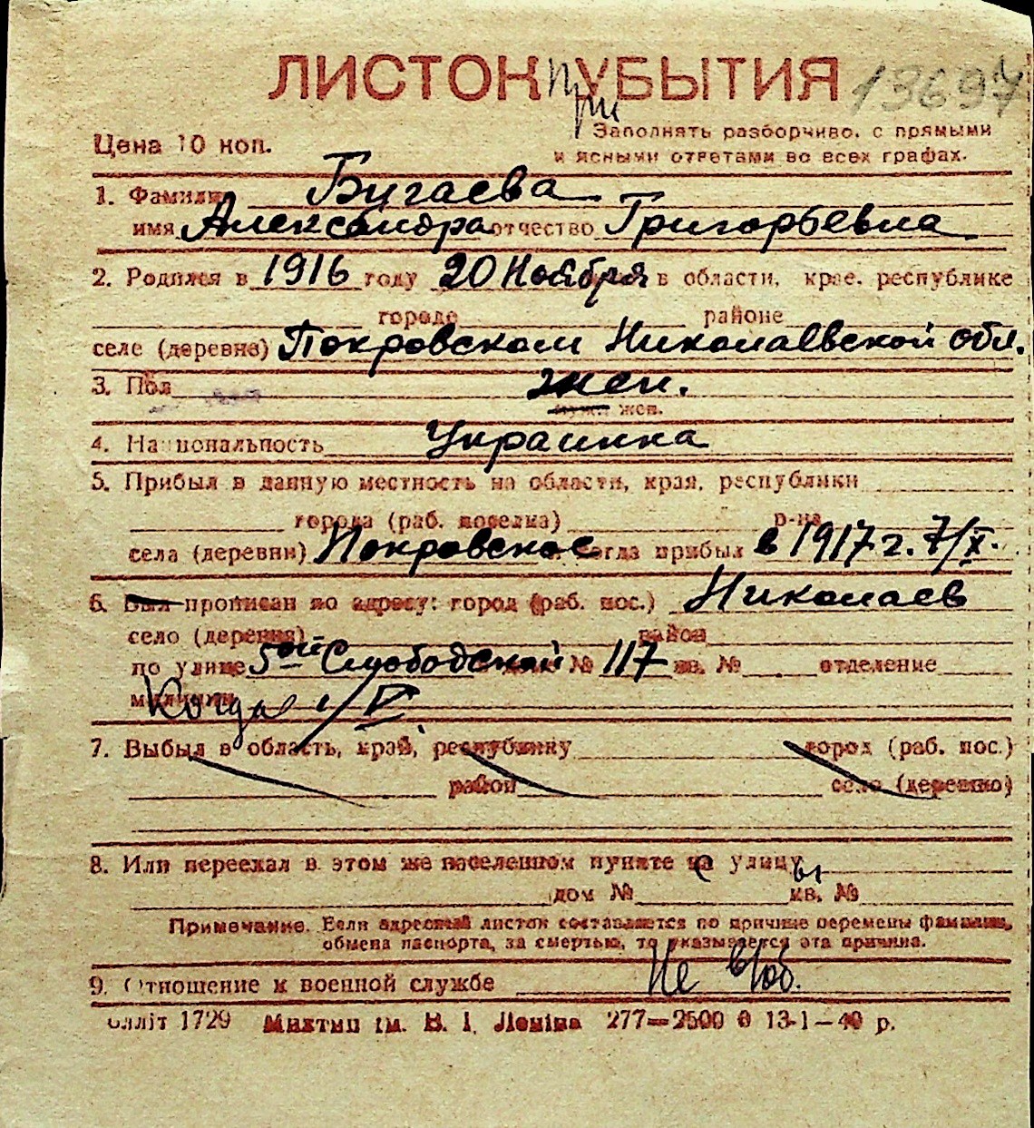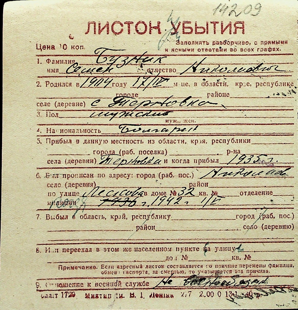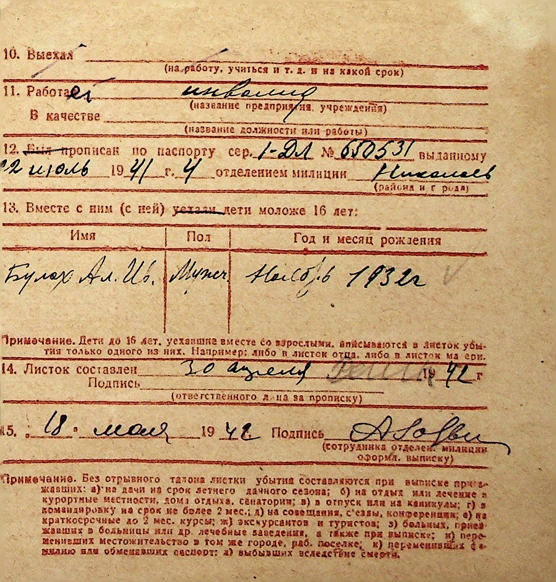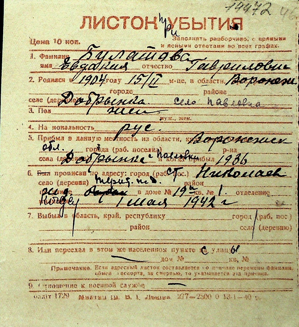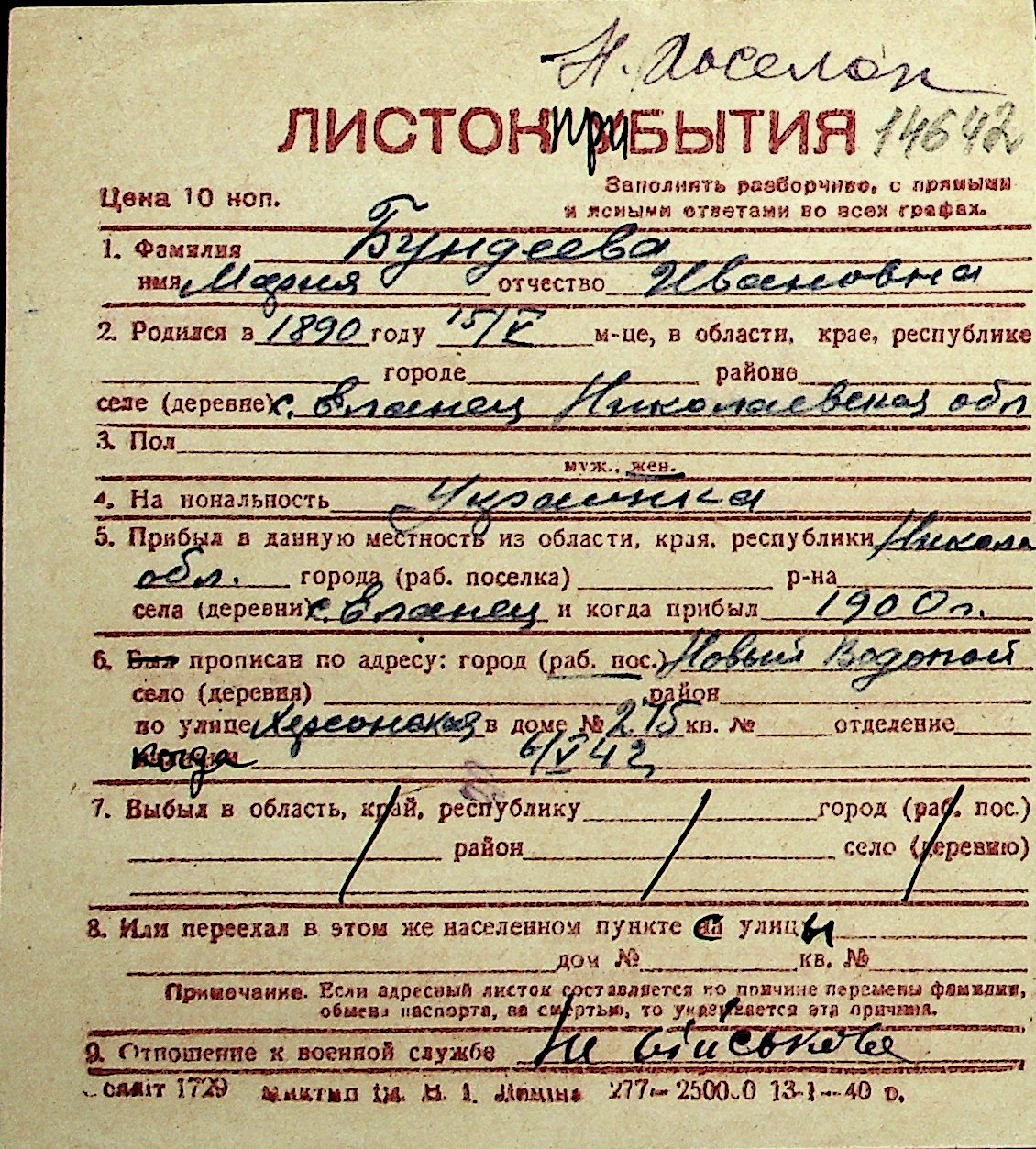 ◦ ◦ Перелік карток на осіб, які мешкали у м. Миколаїв у період окупації 1941–1944 років