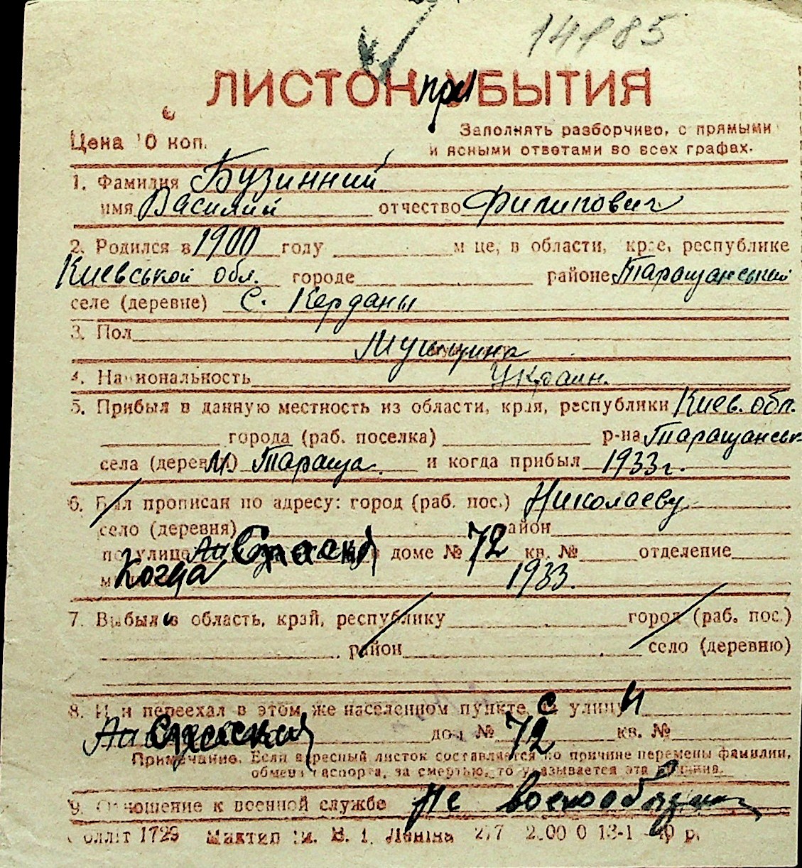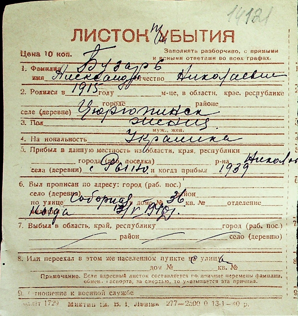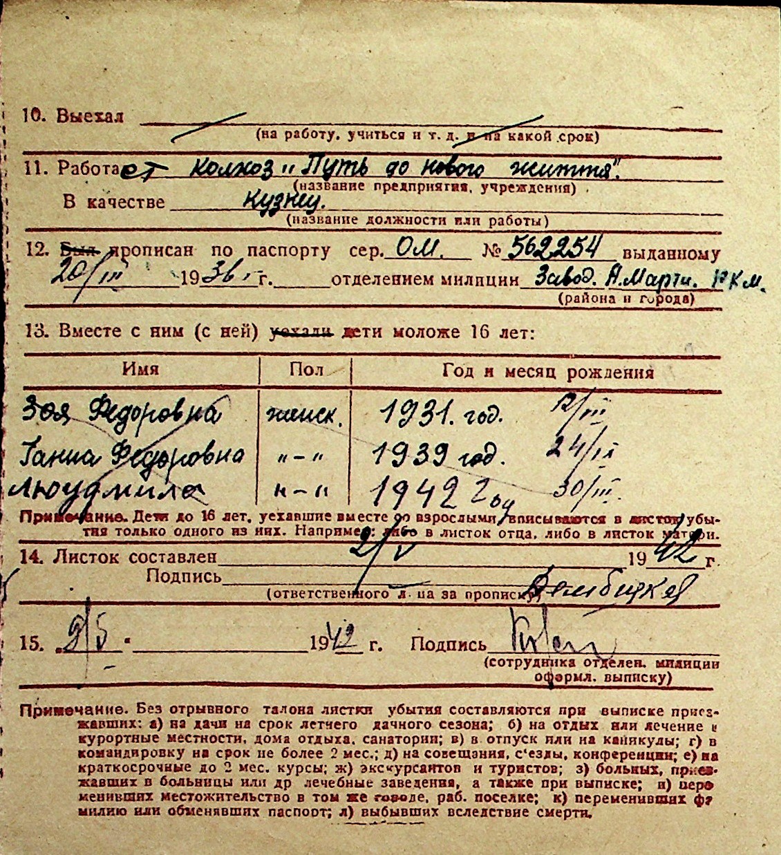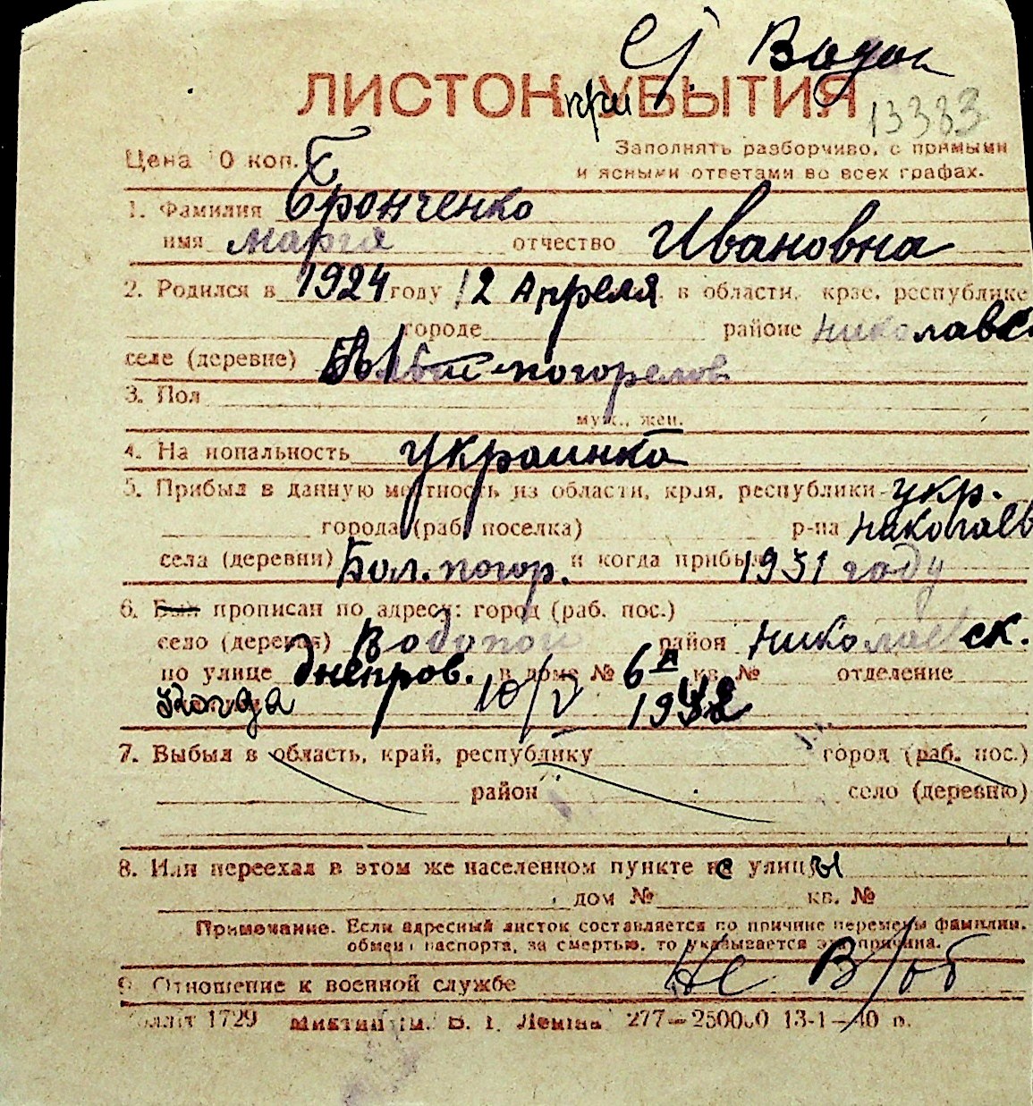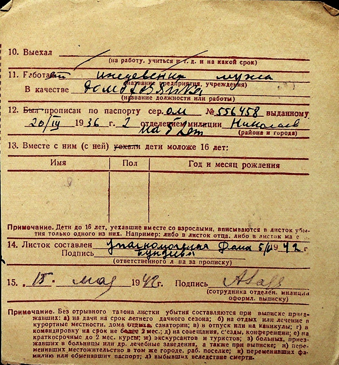 ◦ ◦ Перелік карток на осіб, які мешкали у м. Миколаїв у період окупації 1941–1944 років