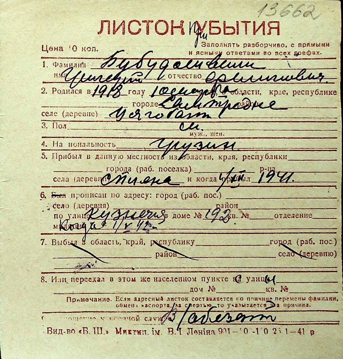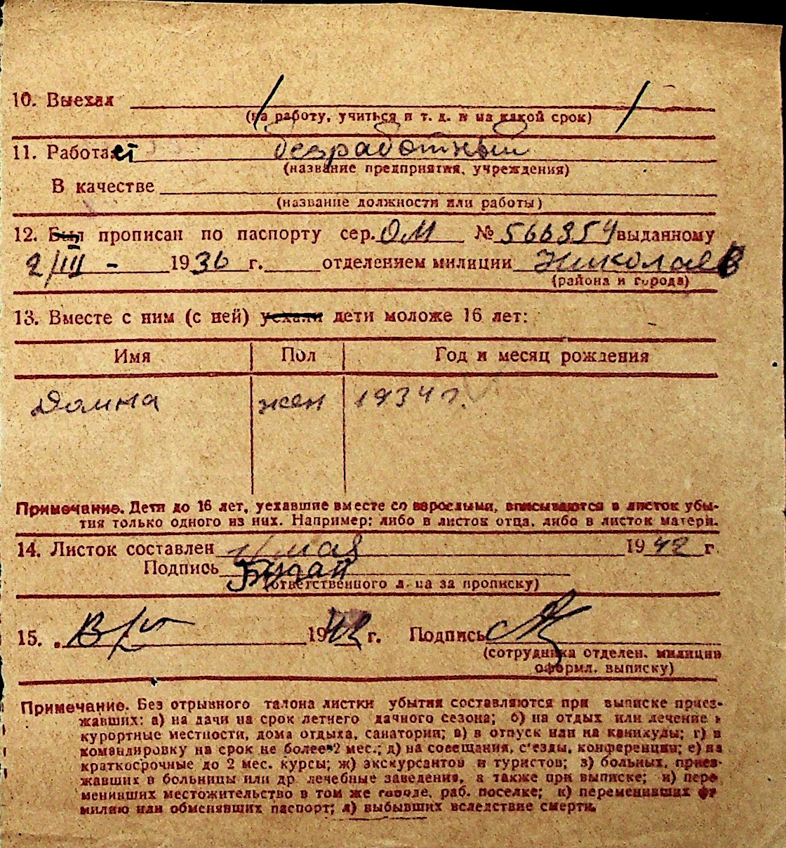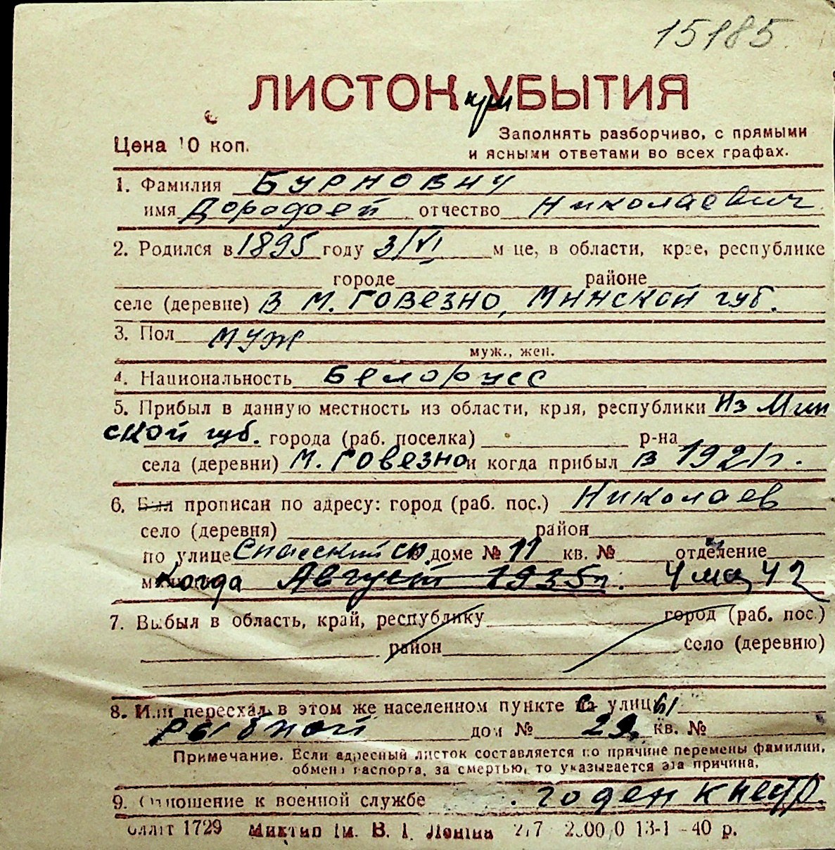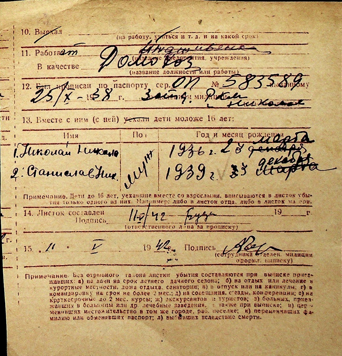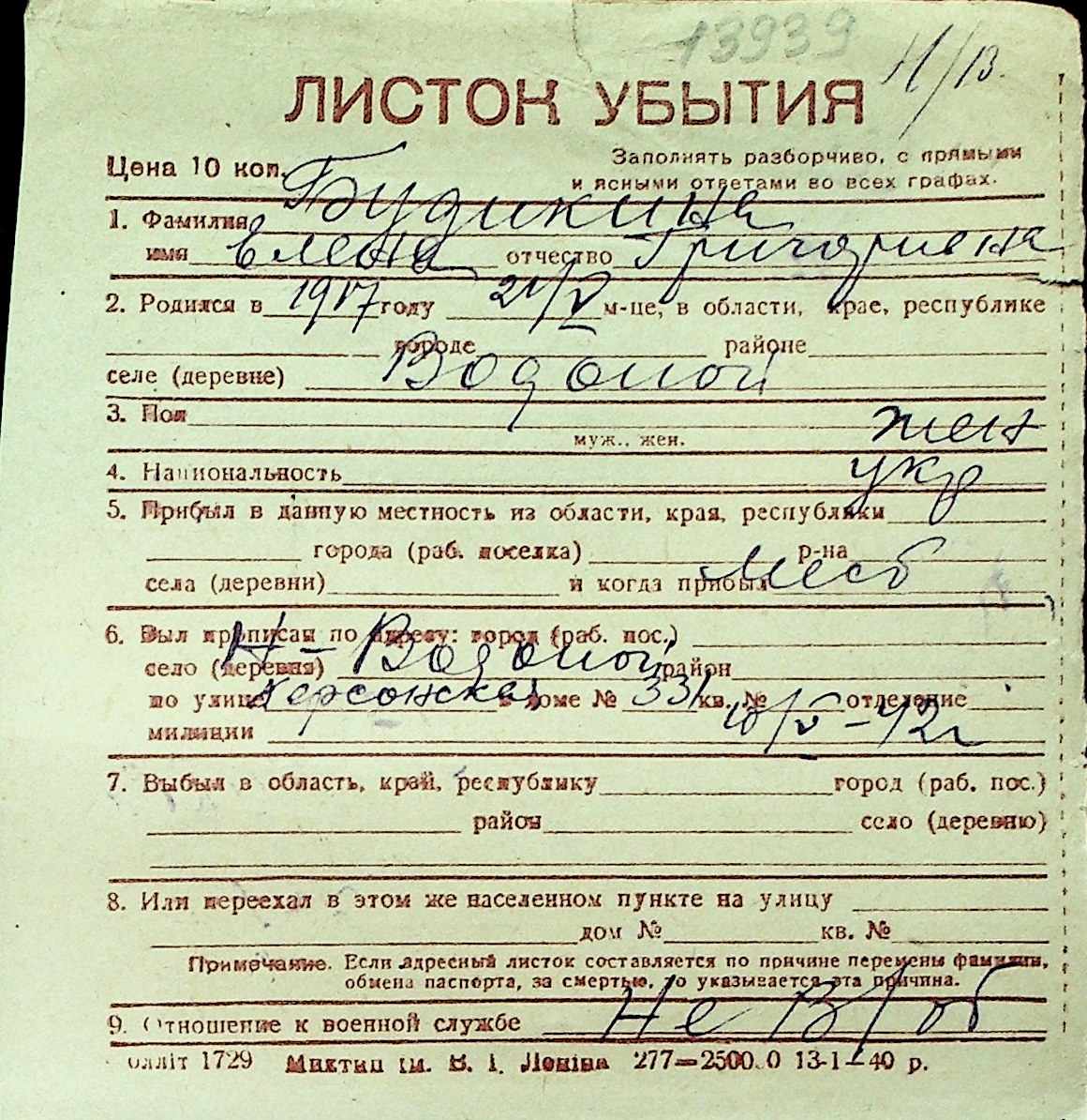 ◦ ◦ Перелік карток на осіб, які мешкали у м. Миколаїв у період окупації 1941–1944 років