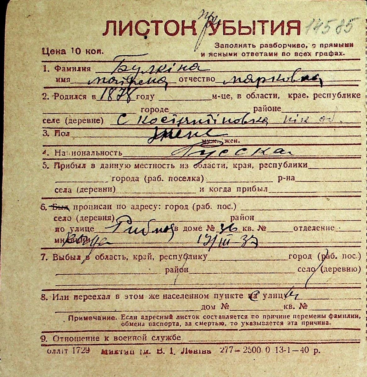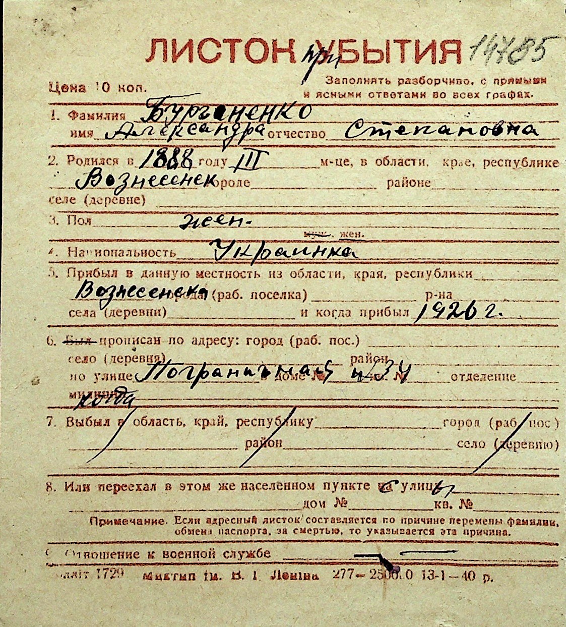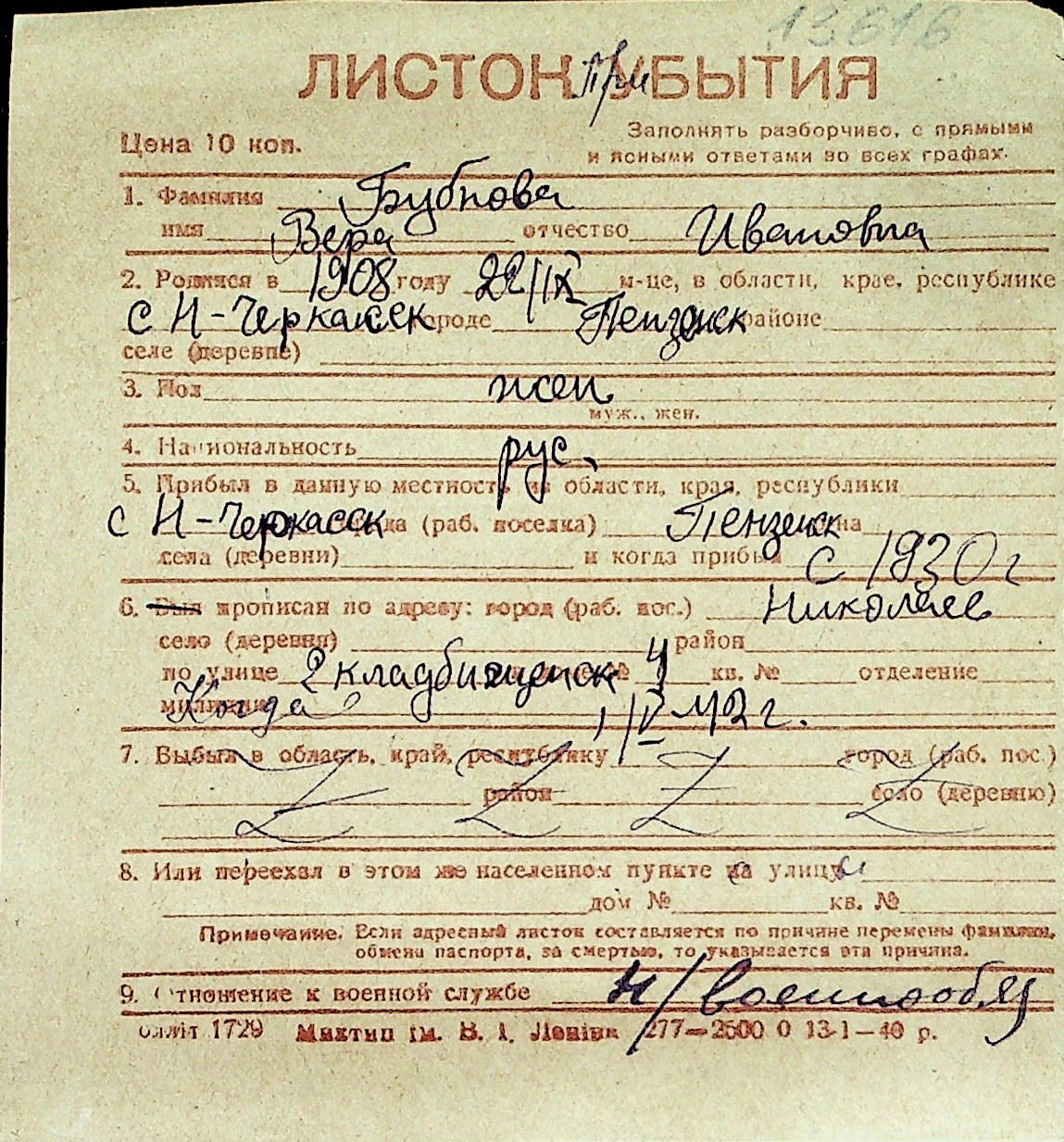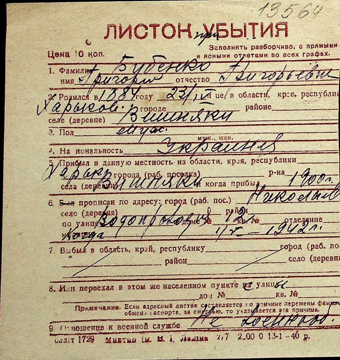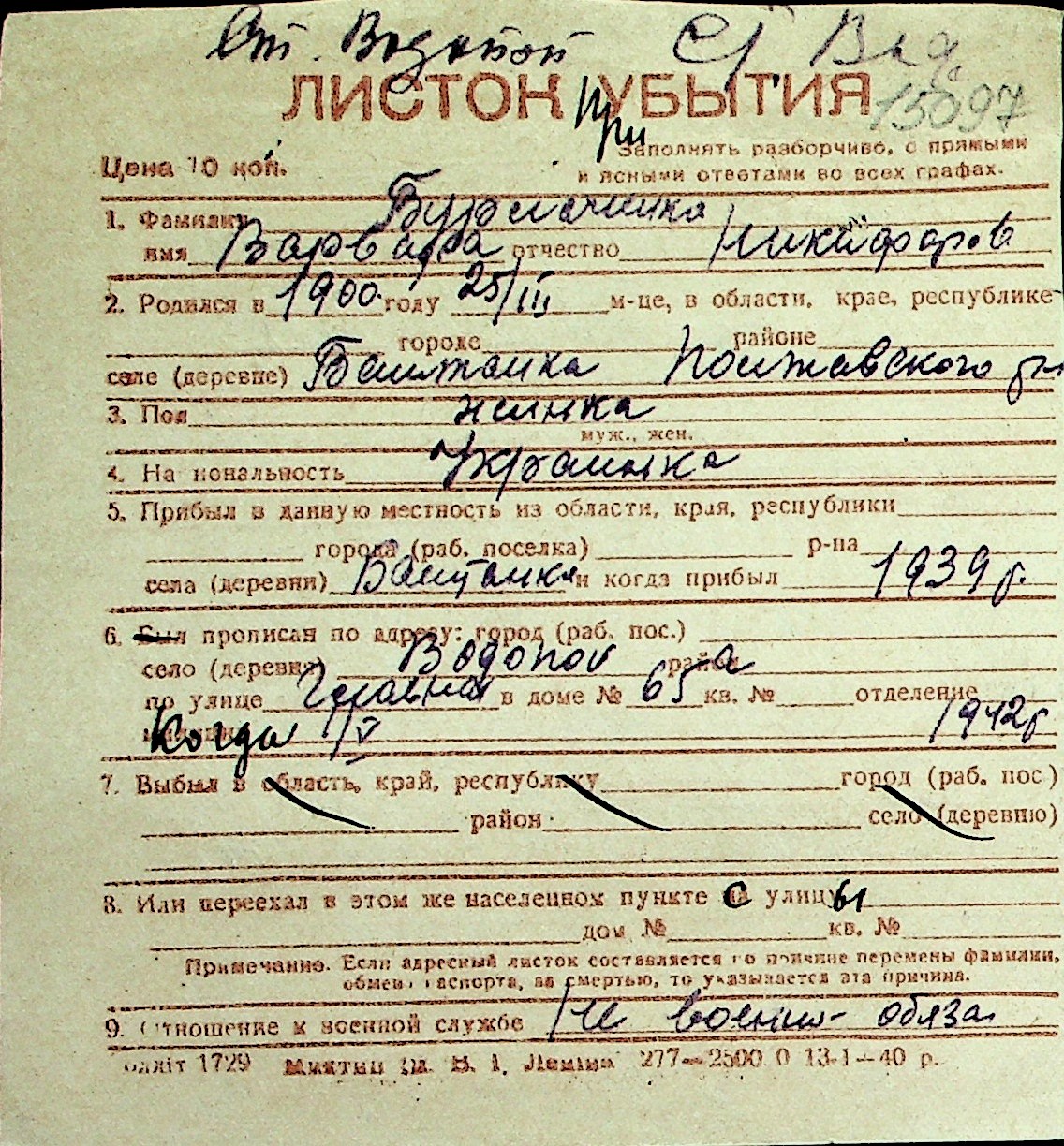 ◦ ◦ Перелік карток на осіб, які мешкали у м. Миколаїв у період окупації 1941–1944 років