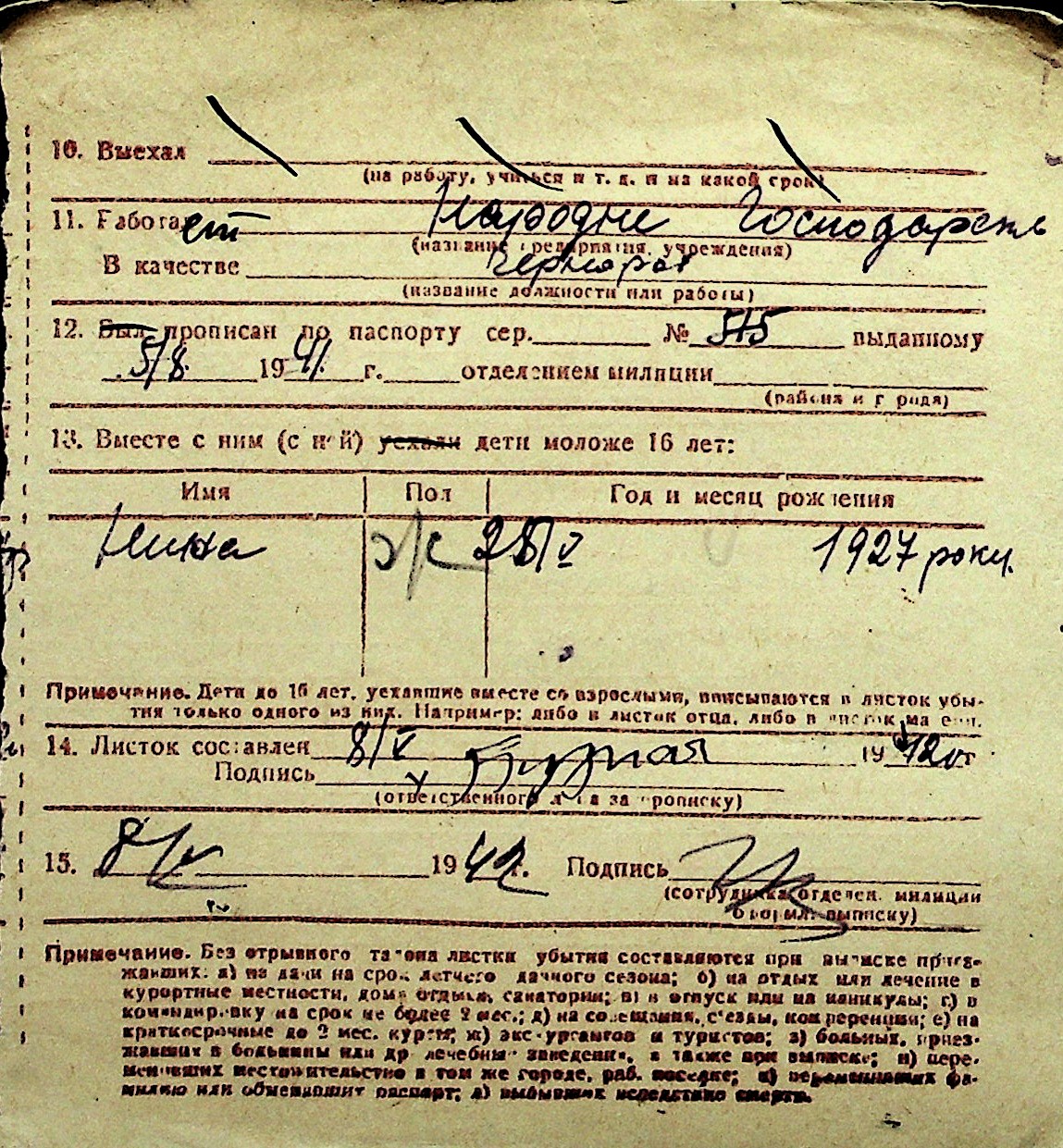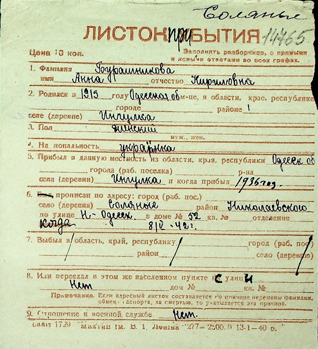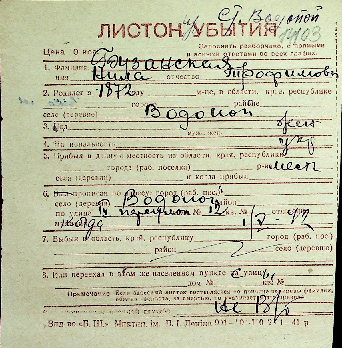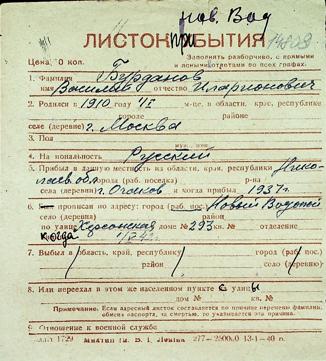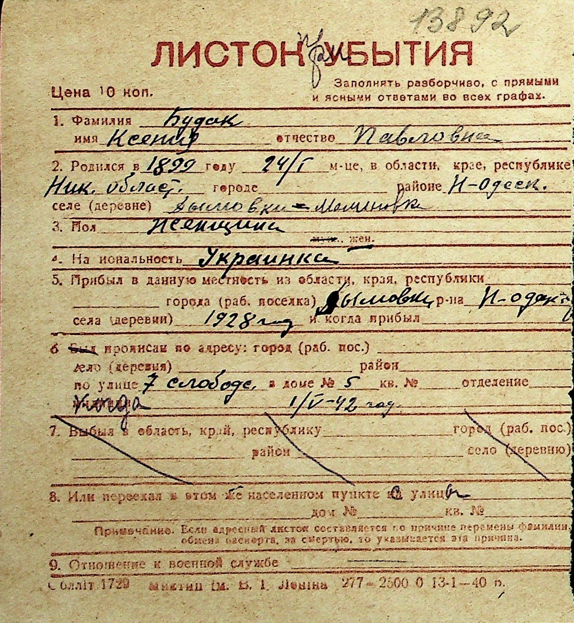 ◦ ◦ Перелік карток на осіб, які мешкали у м. Миколаїв у період окупації 1941–1944 років