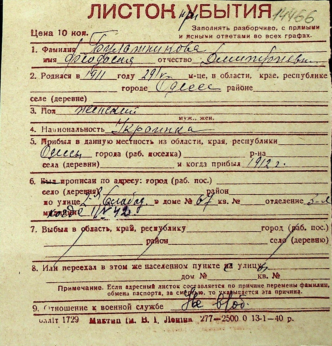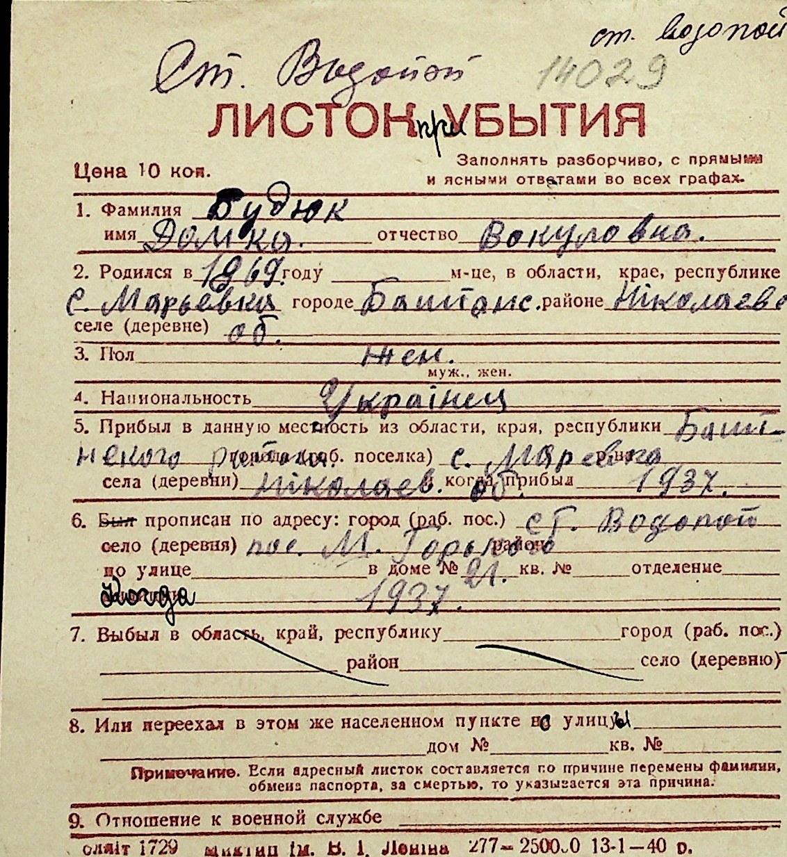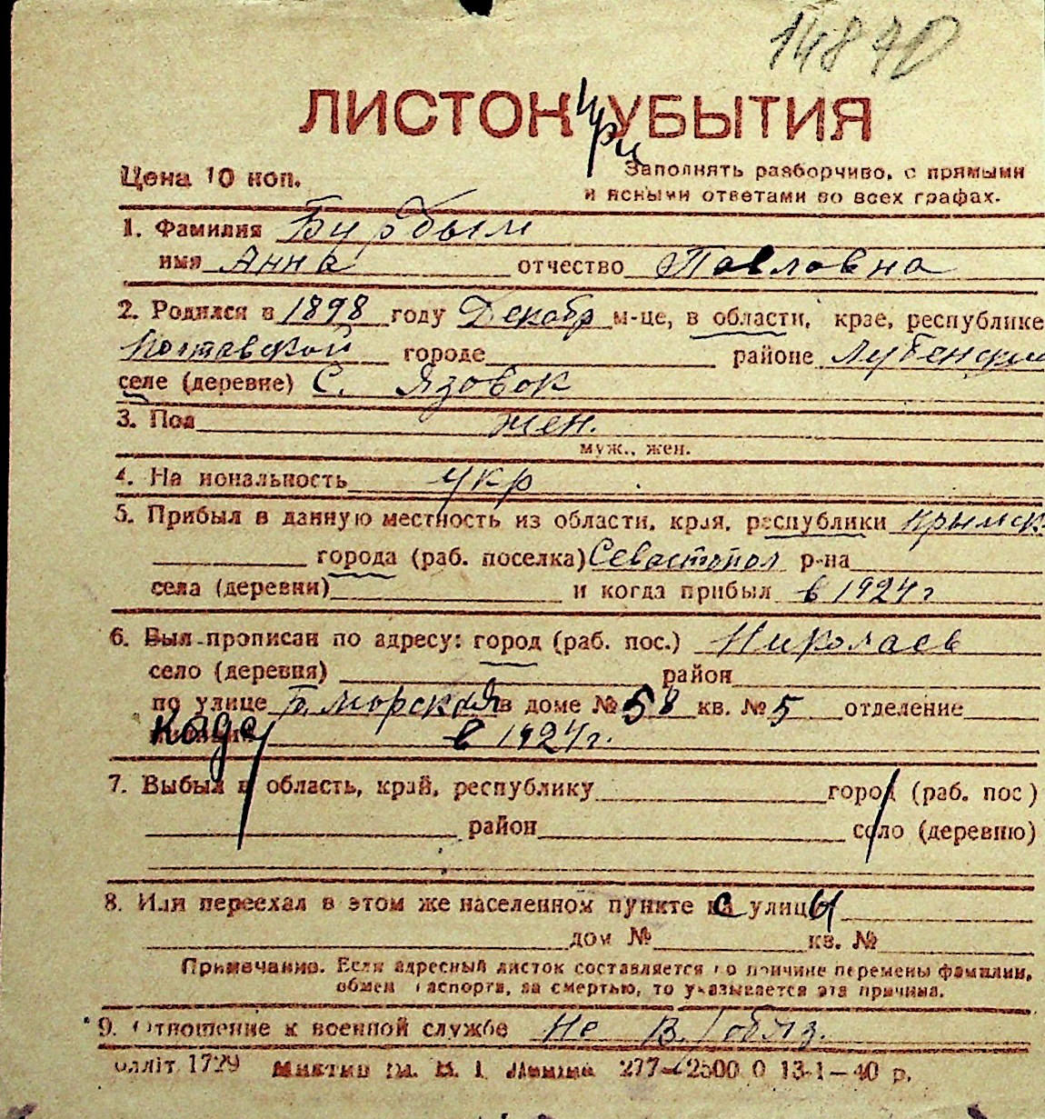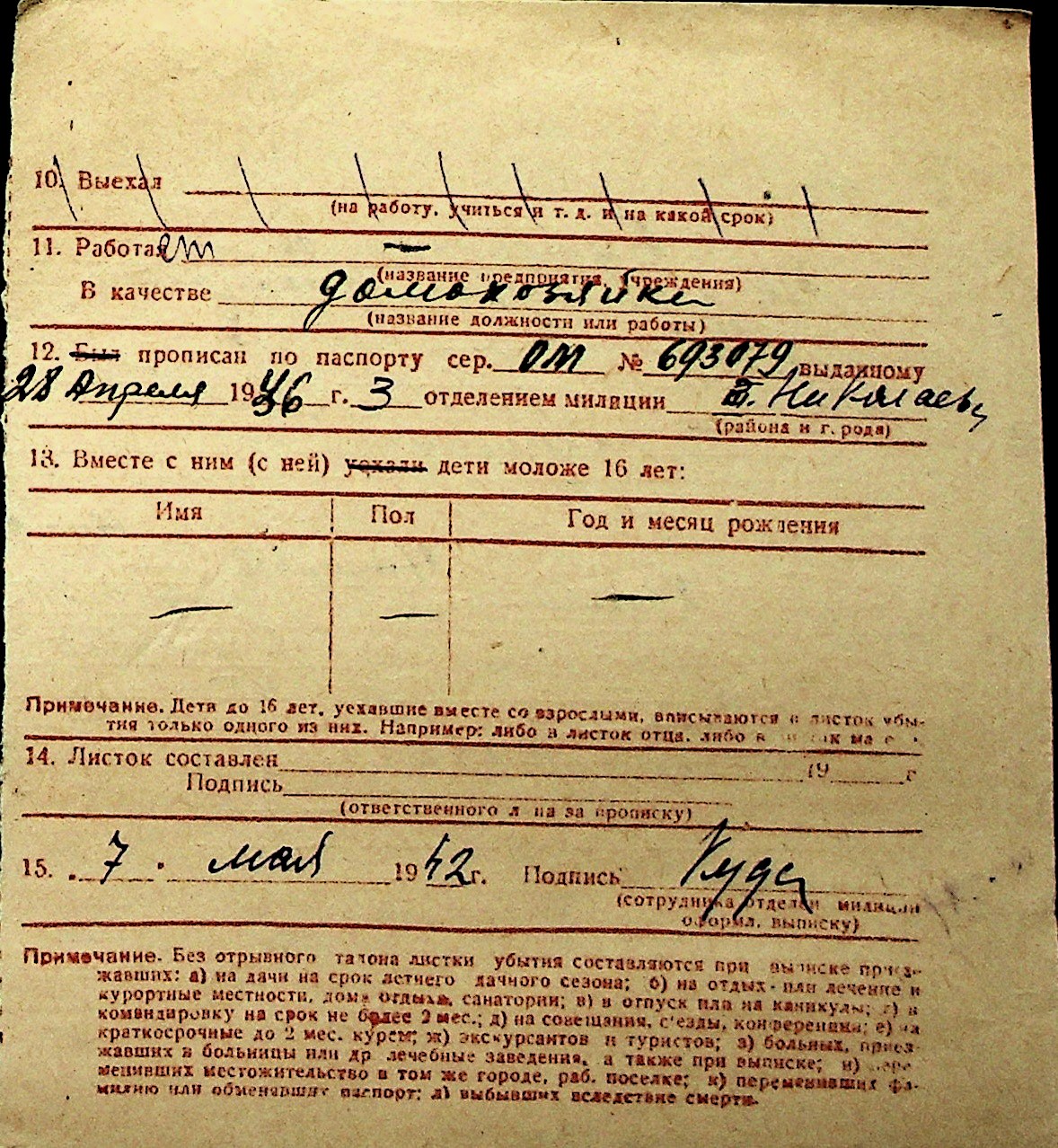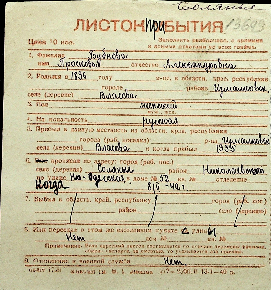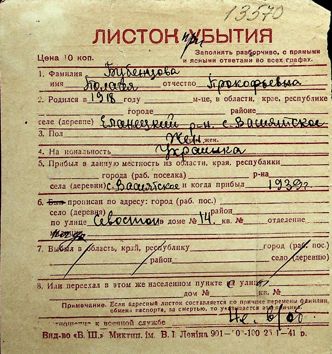 ◦ ◦ Перелік карток на осіб, які мешкали у м. Миколаїв у період окупації 1941–1944 років