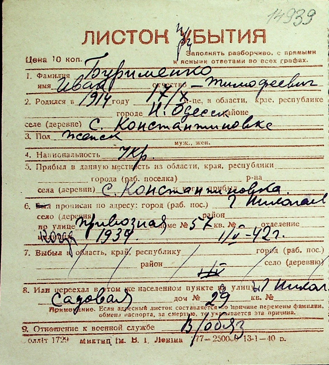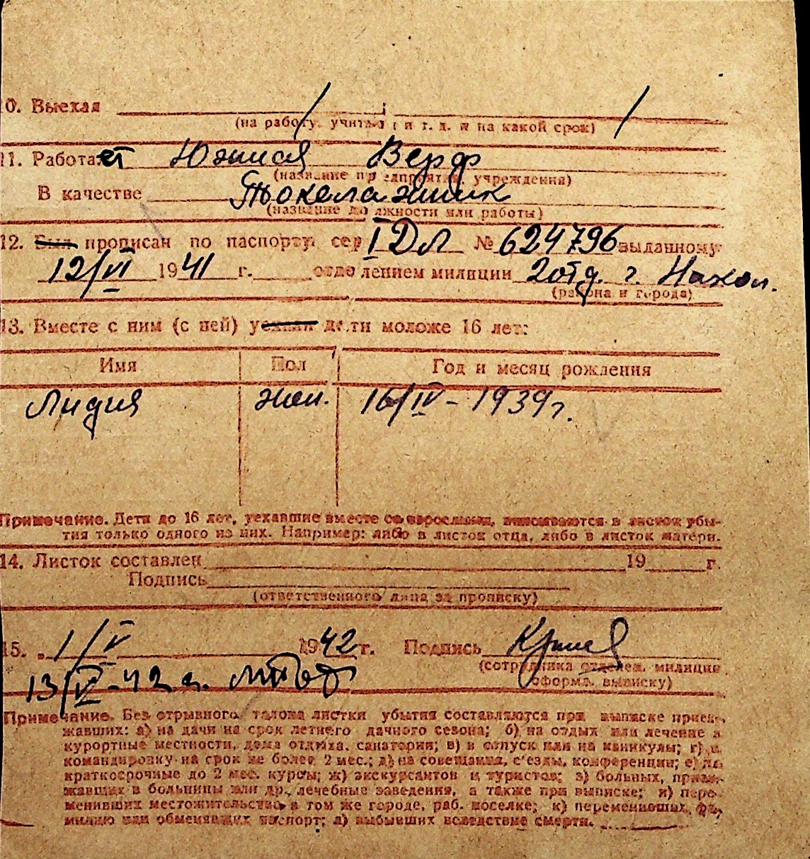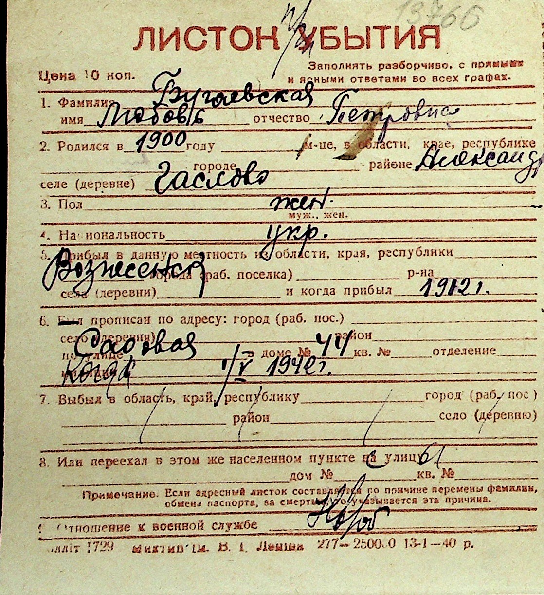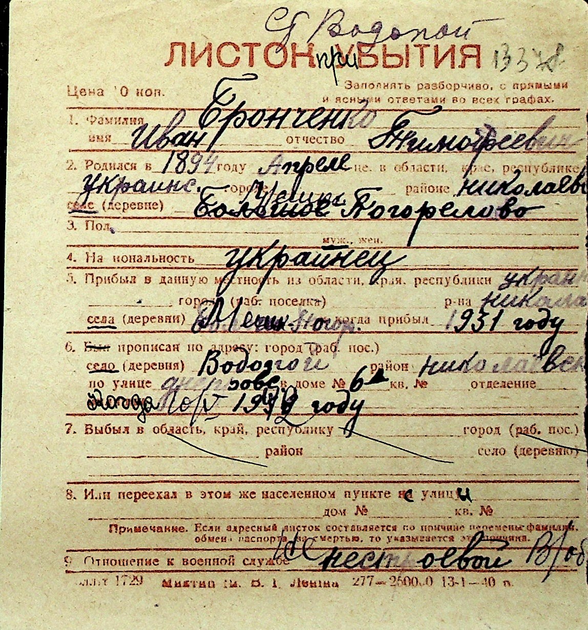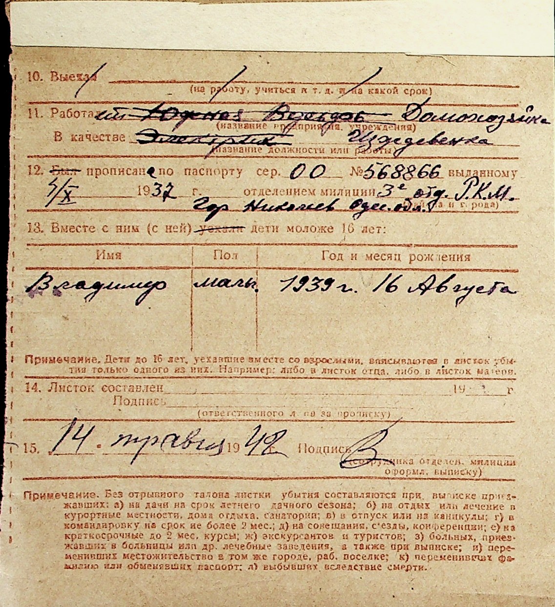 ◦ ◦ Перелік карток на осіб, які мешкали у м. Миколаїв у період окупації 1941–1944 років