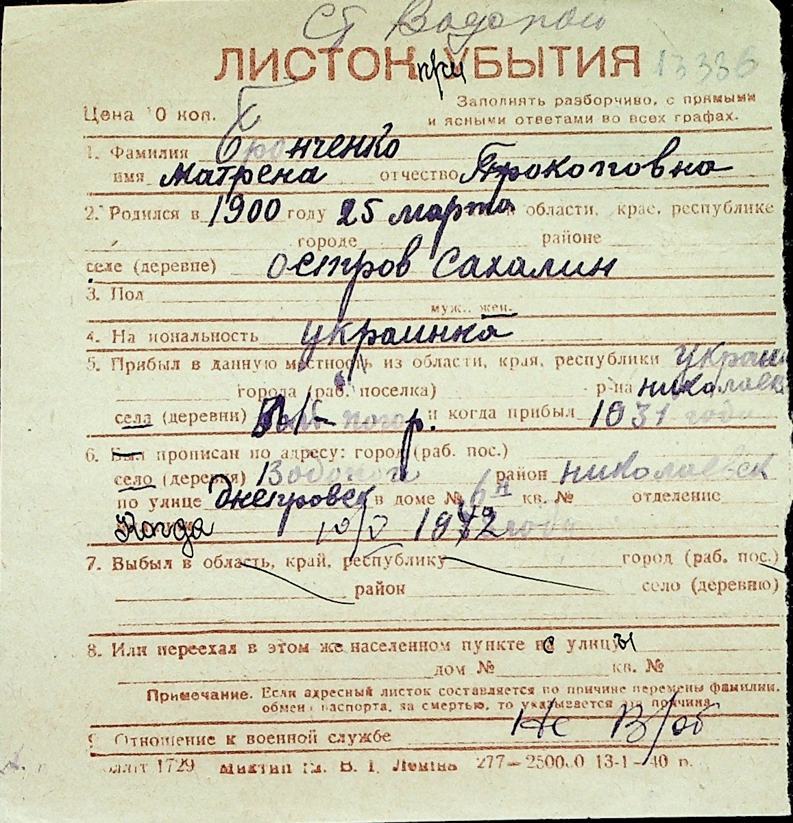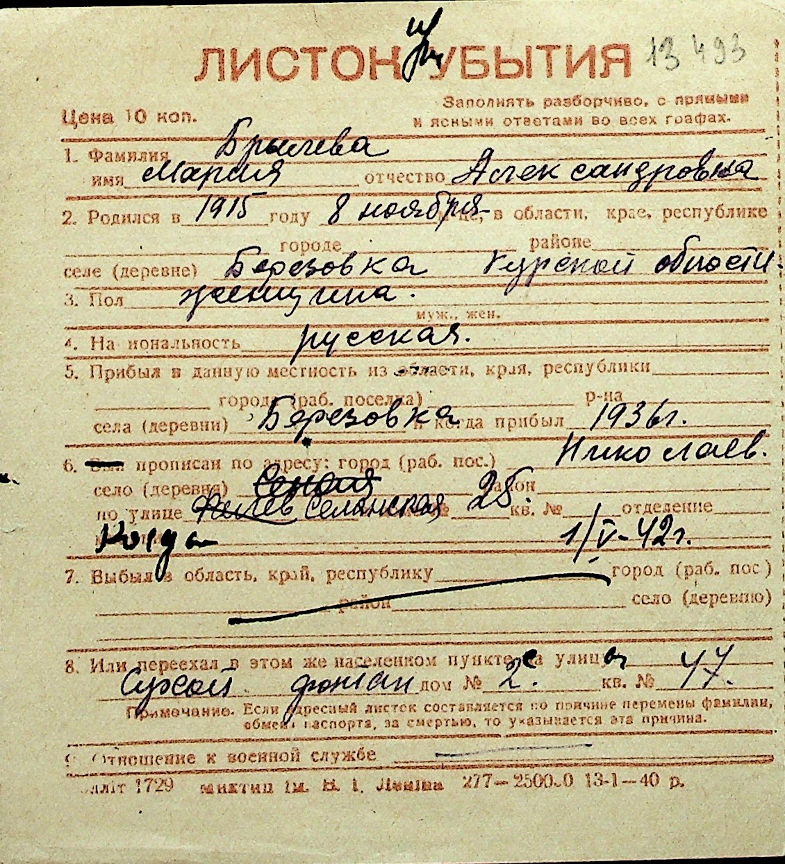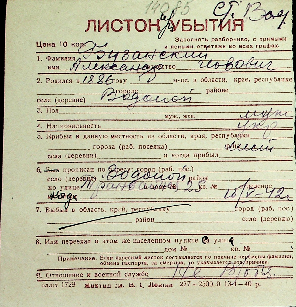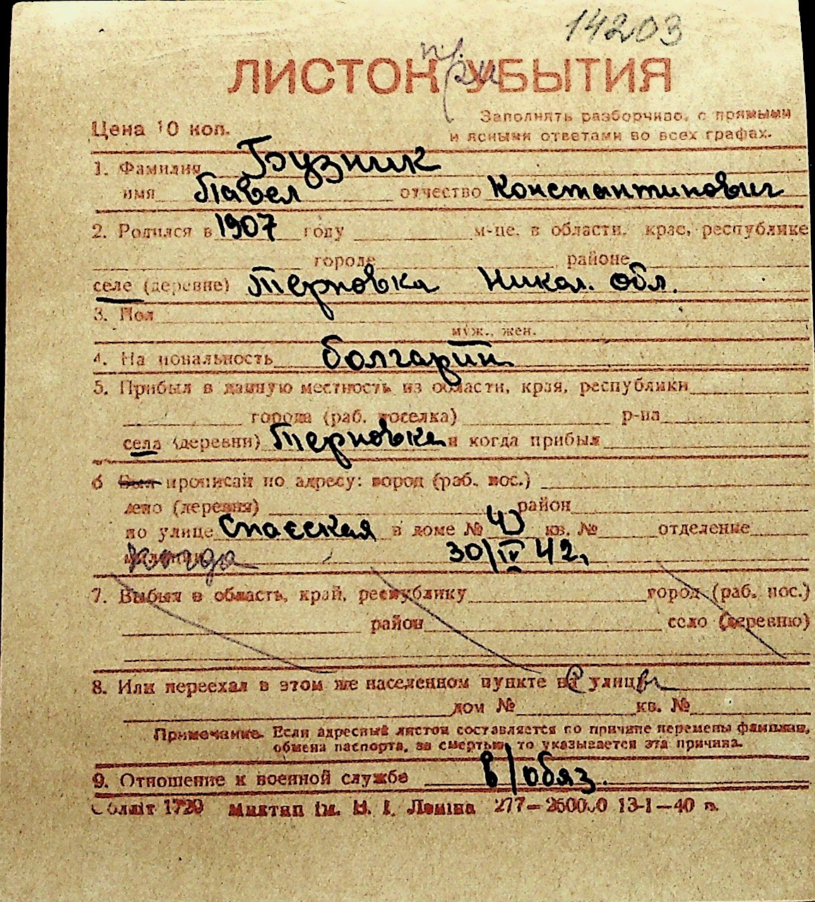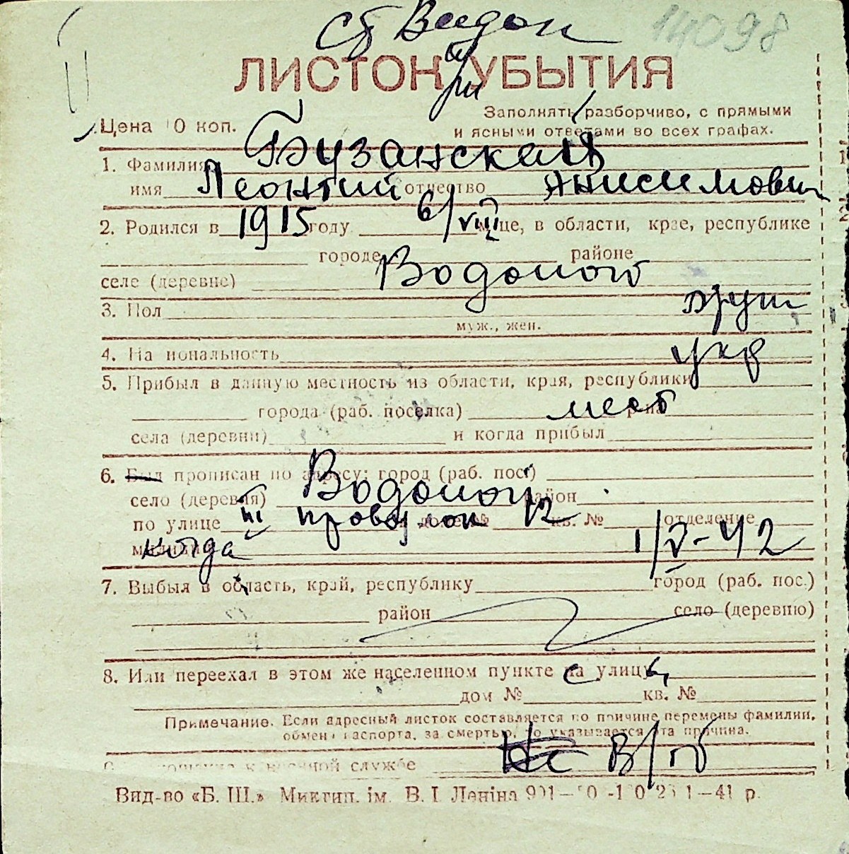 ◦ ◦ Перелік карток на осіб, які мешкали у м. Миколаїв у період окупації 1941–1944 років