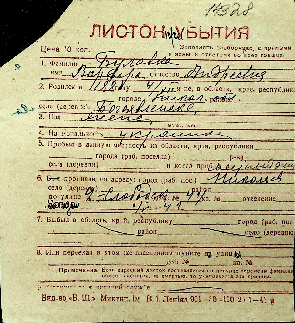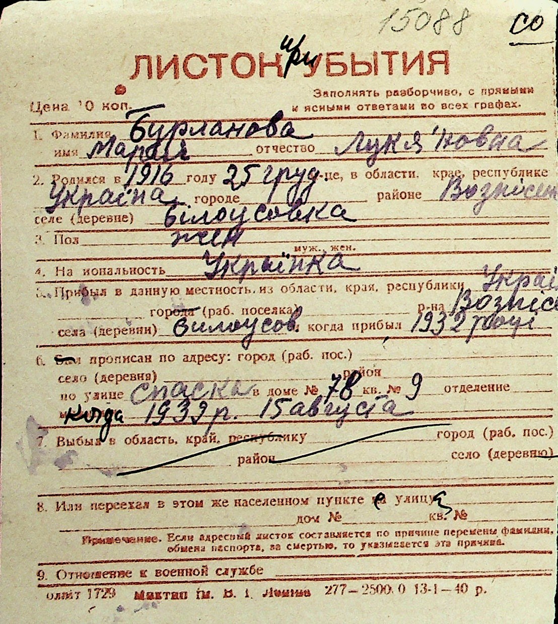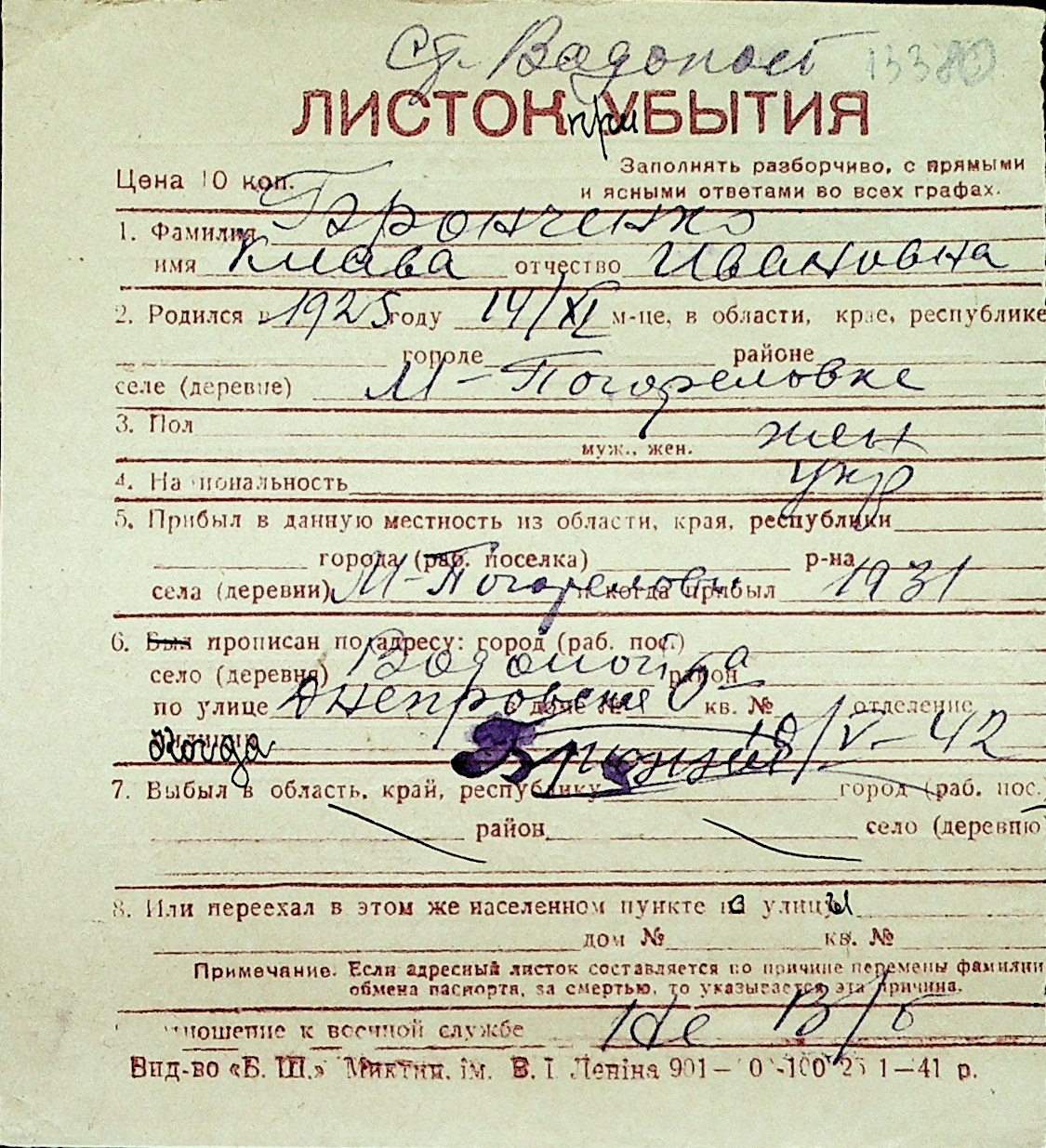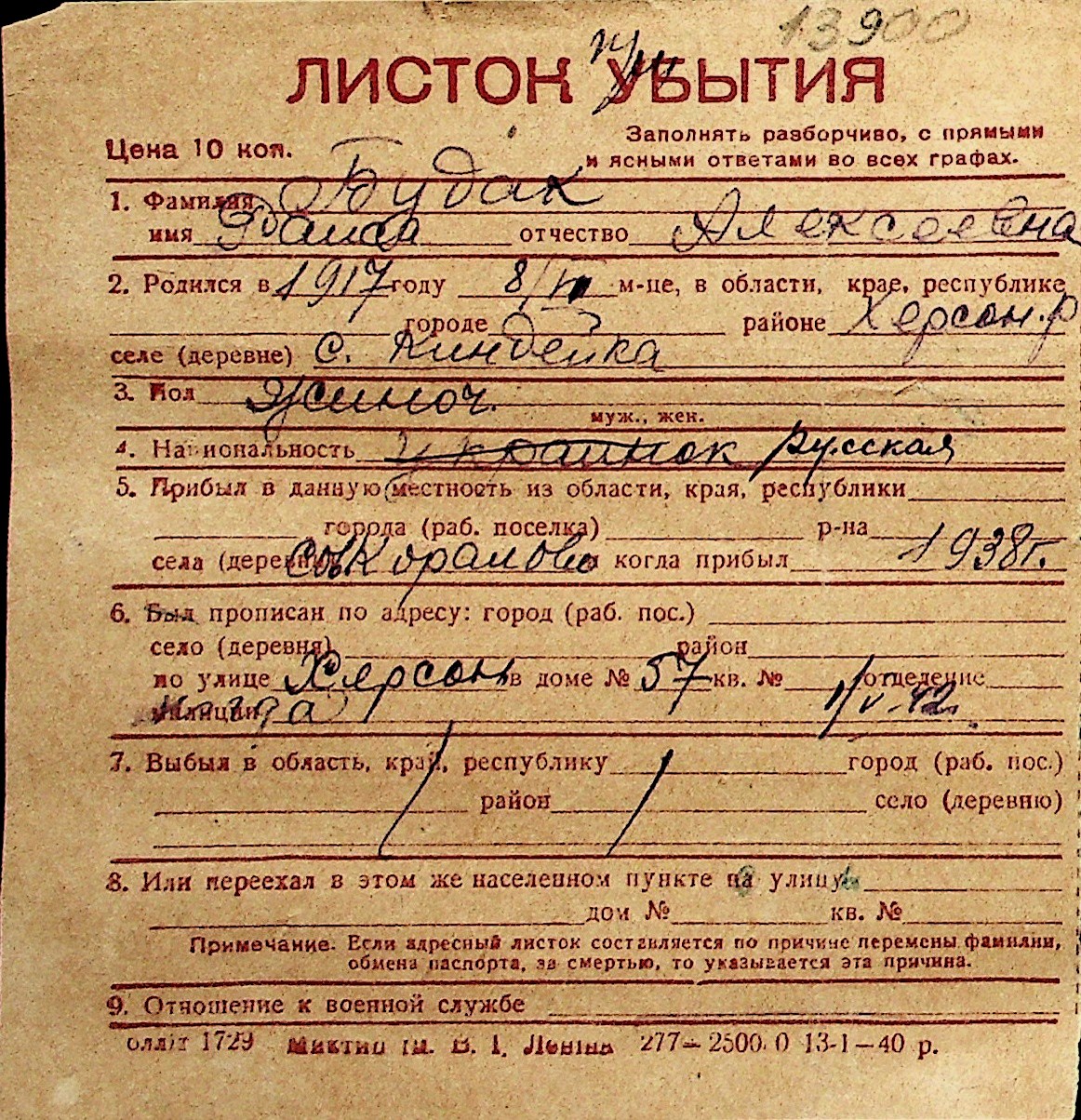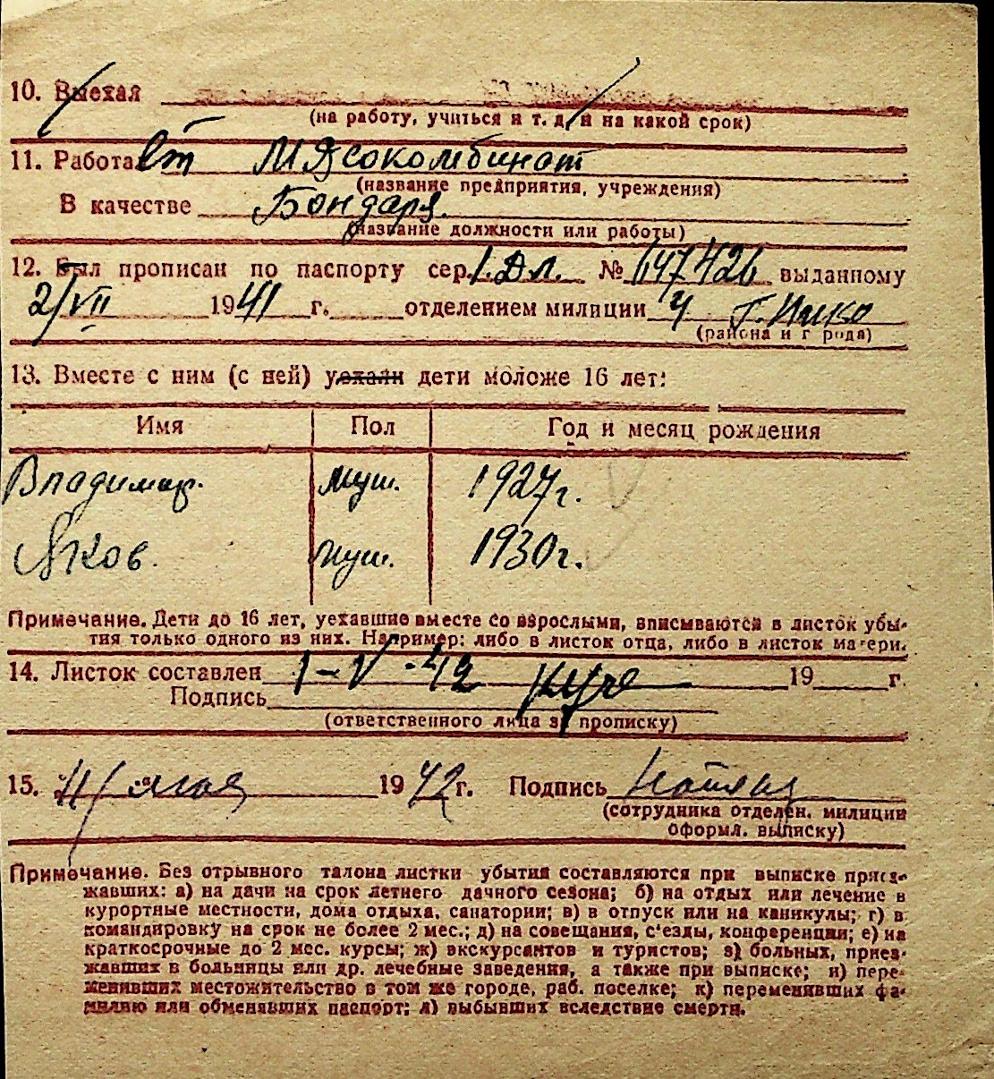 ◦ ◦ Перелік карток на осіб, які мешкали у м. Миколаїв у період окупації 1941–1944 років