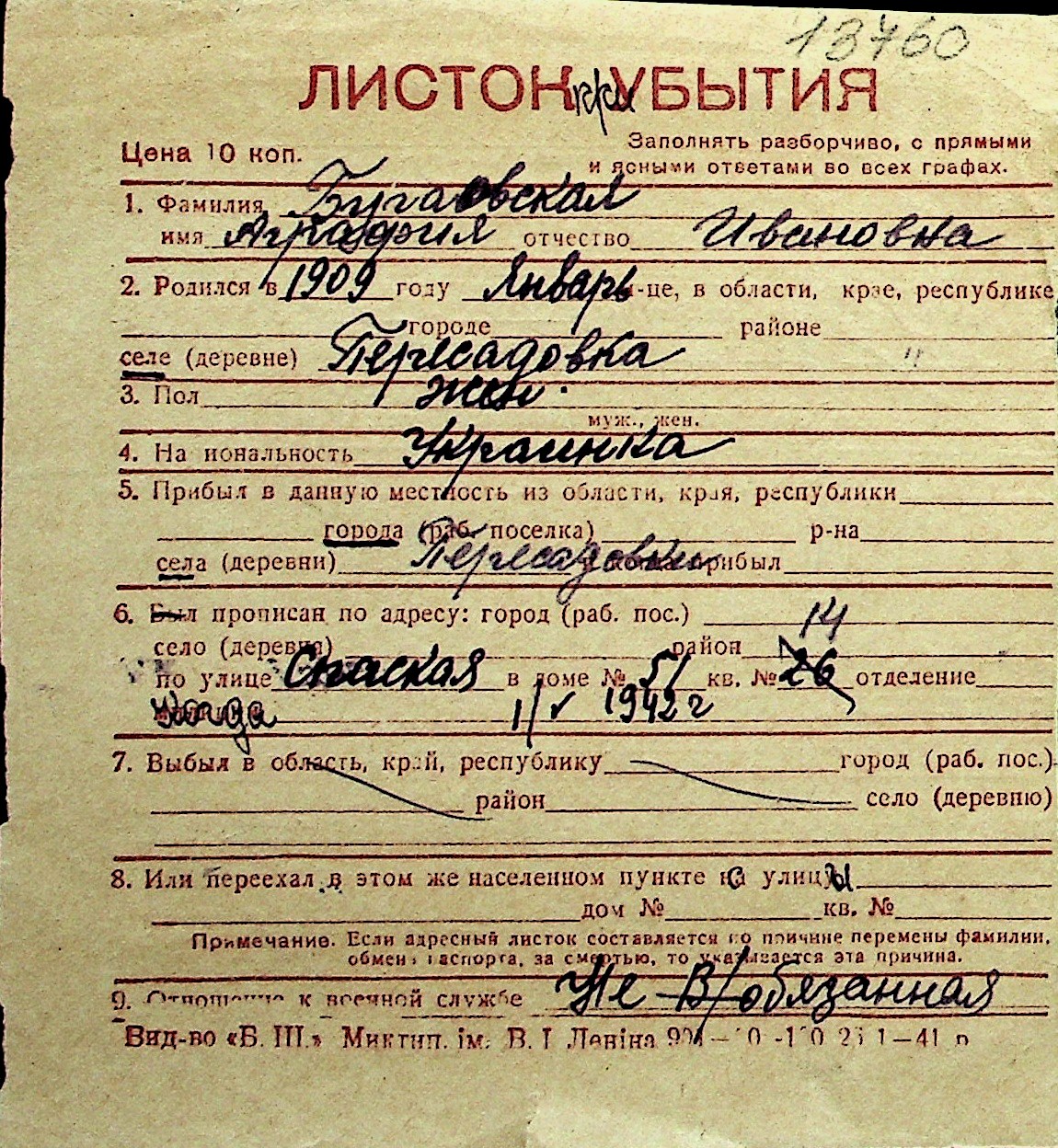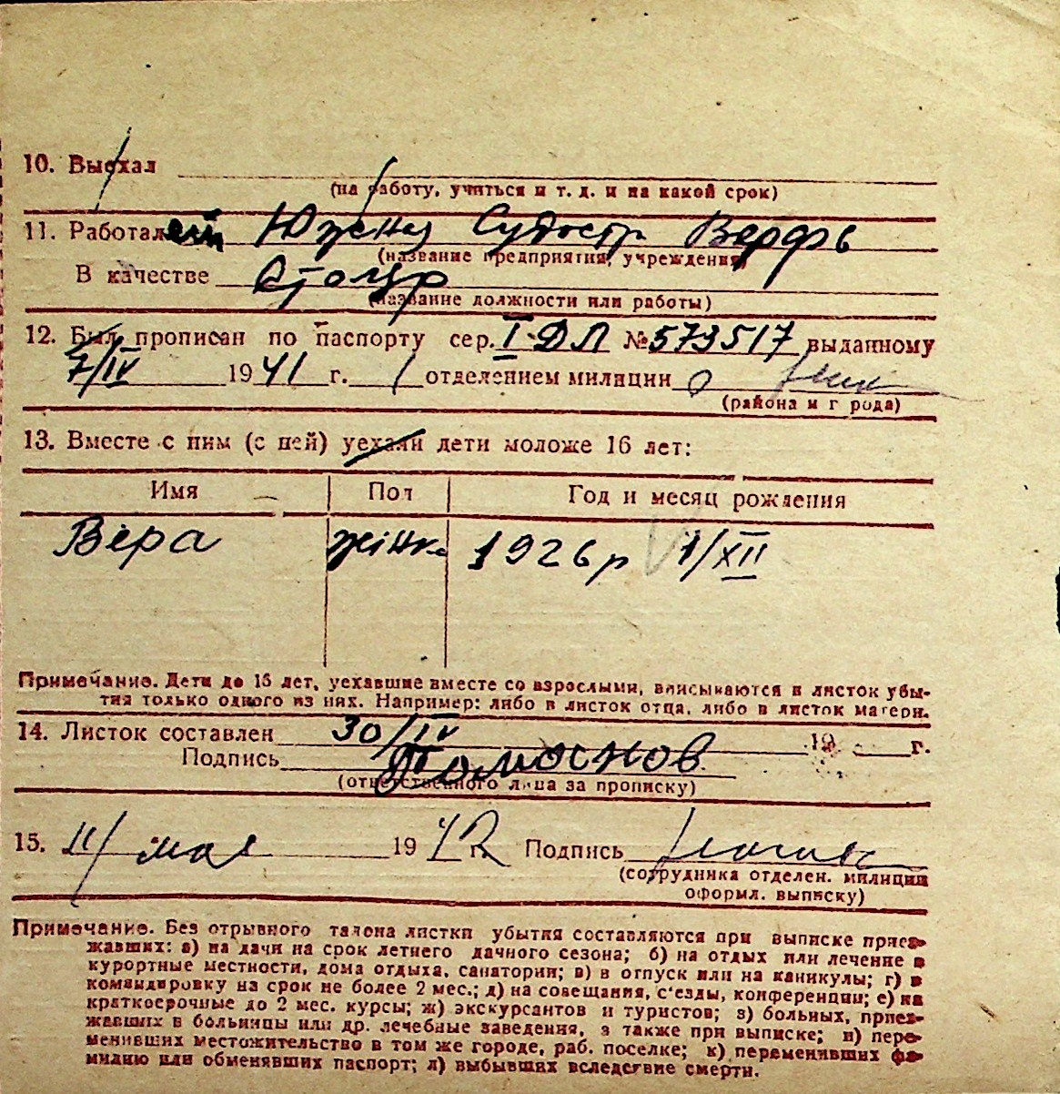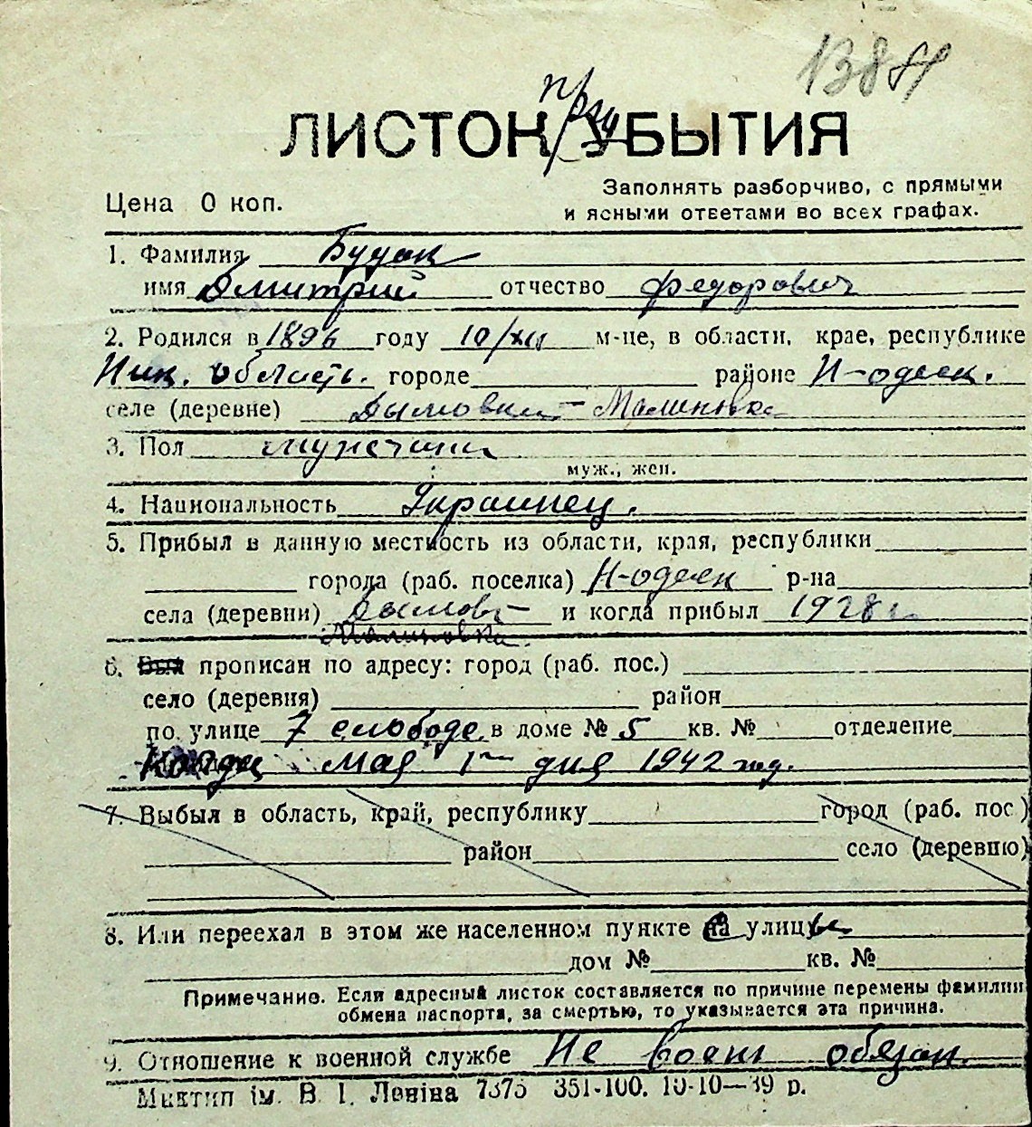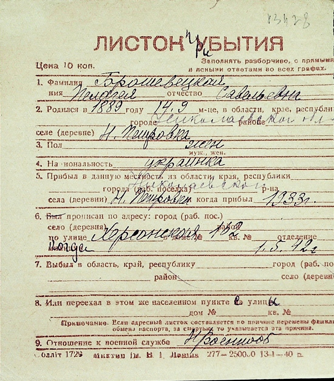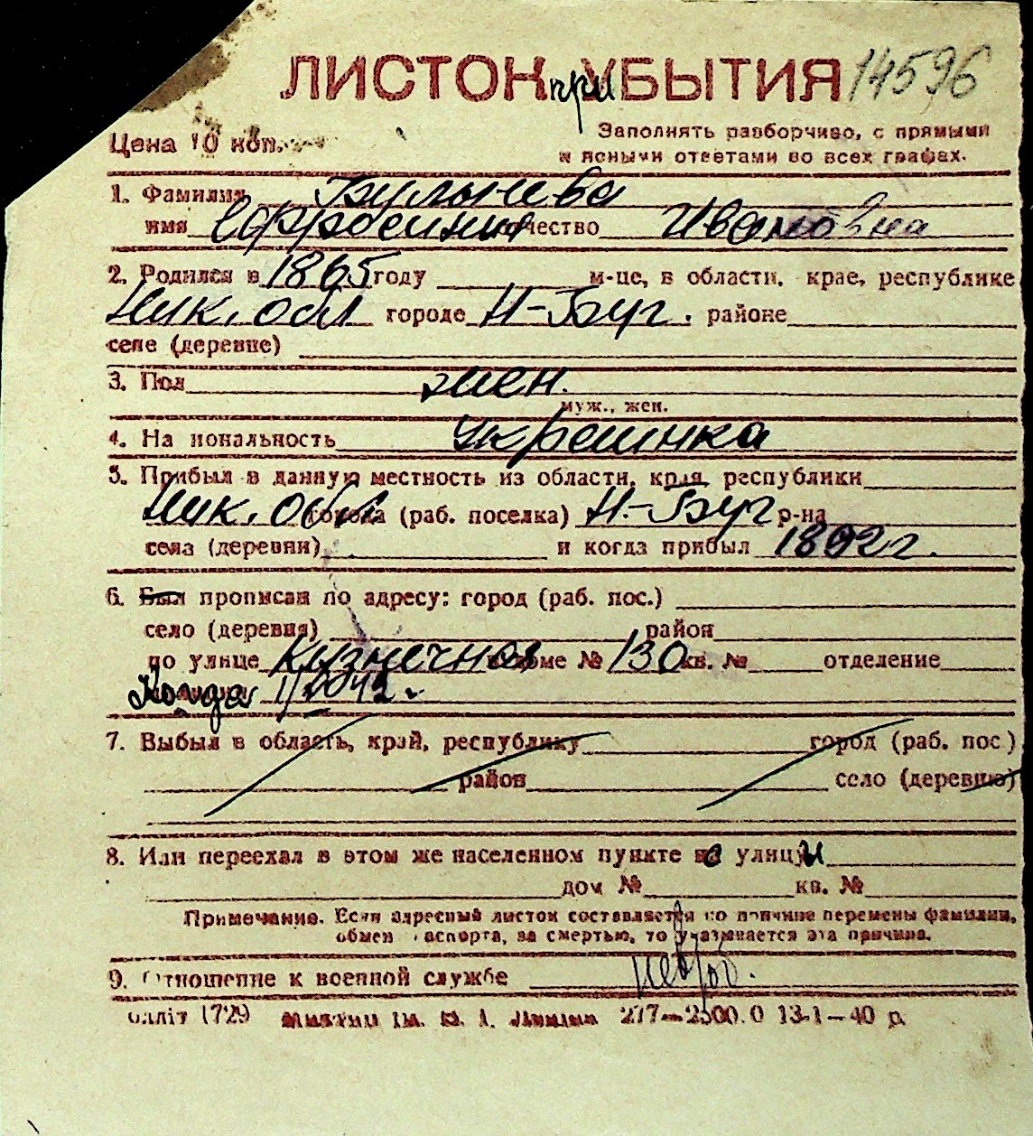 ◦ ◦ Перелік карток на осіб, які мешкали у м. Миколаїв у період окупації 1941–1944 років