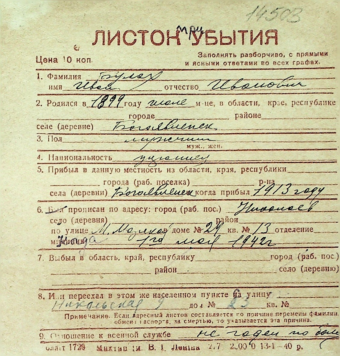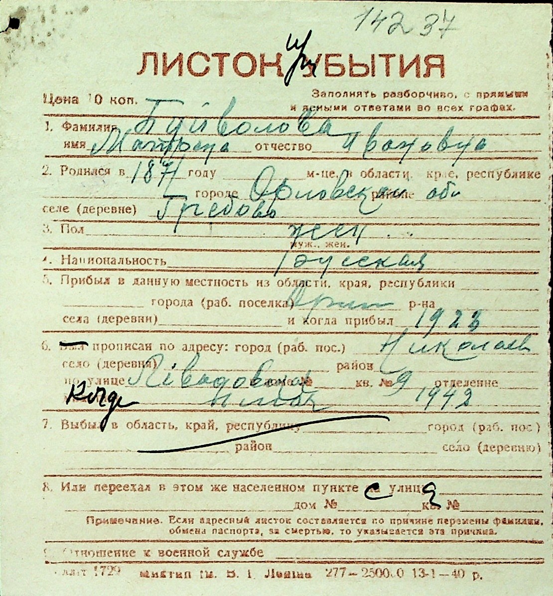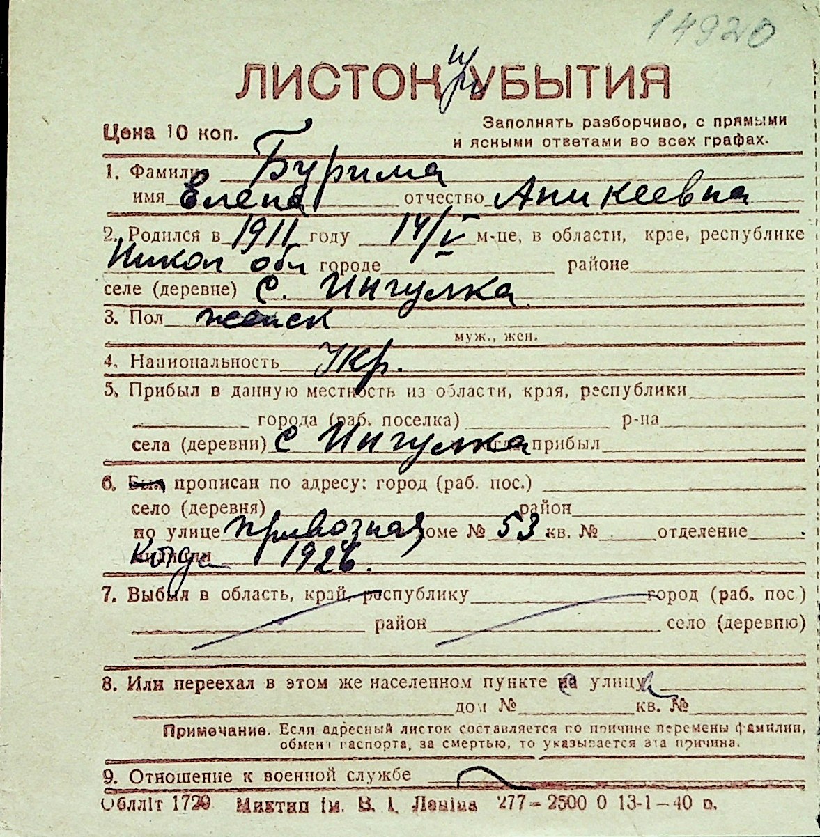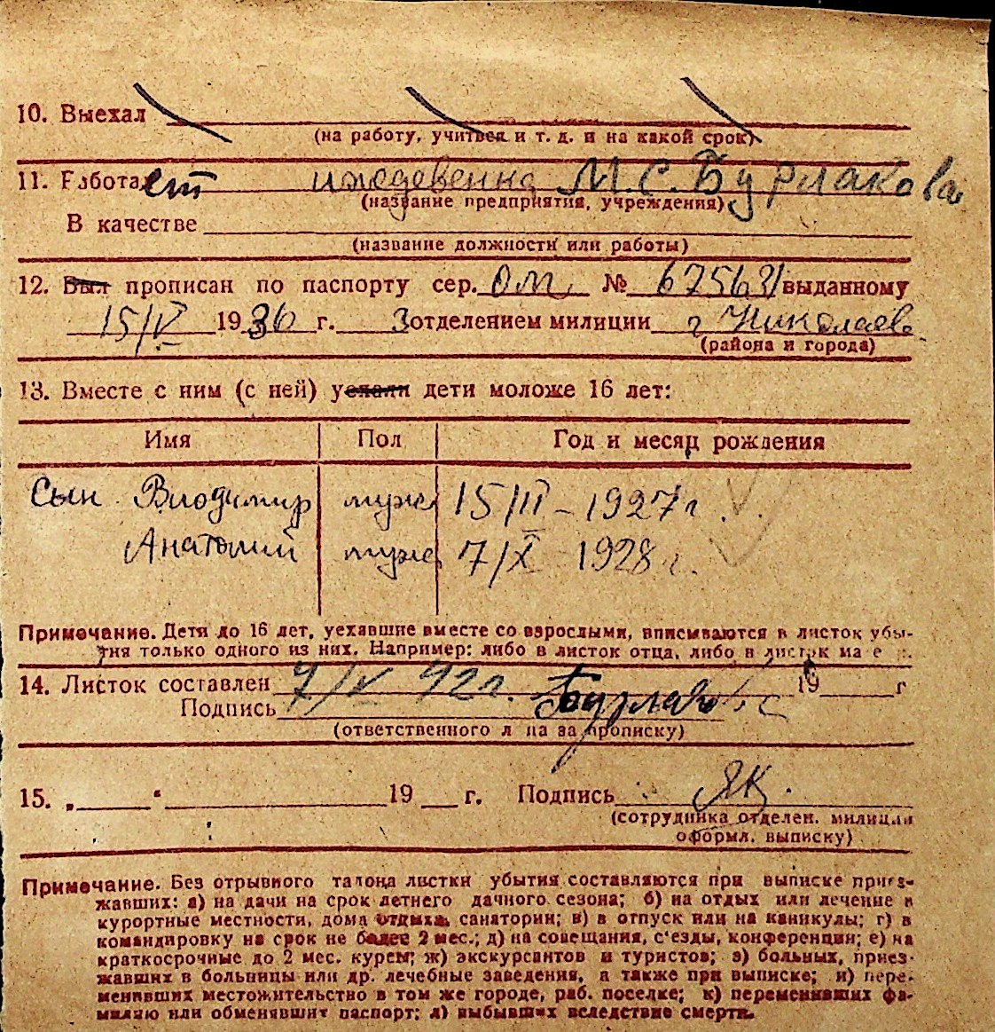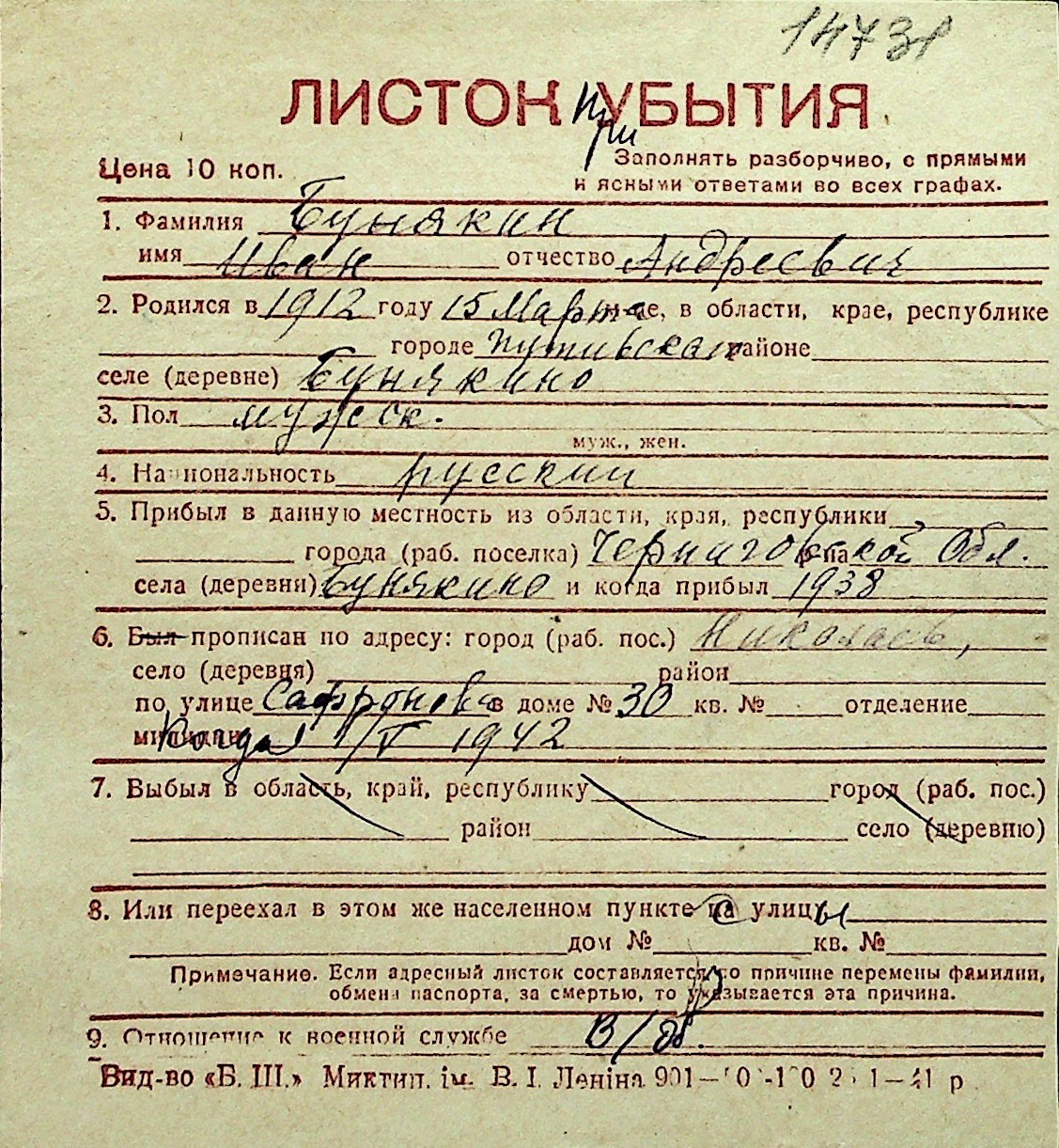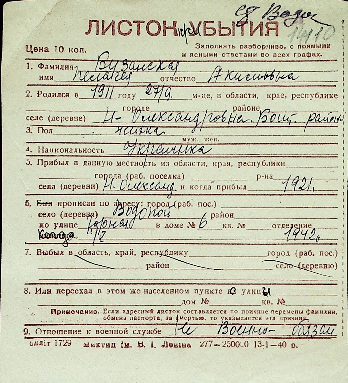 ◦ ◦ Перелік карток на осіб, які мешкали у м. Миколаїв у період окупації 1941–1944 років