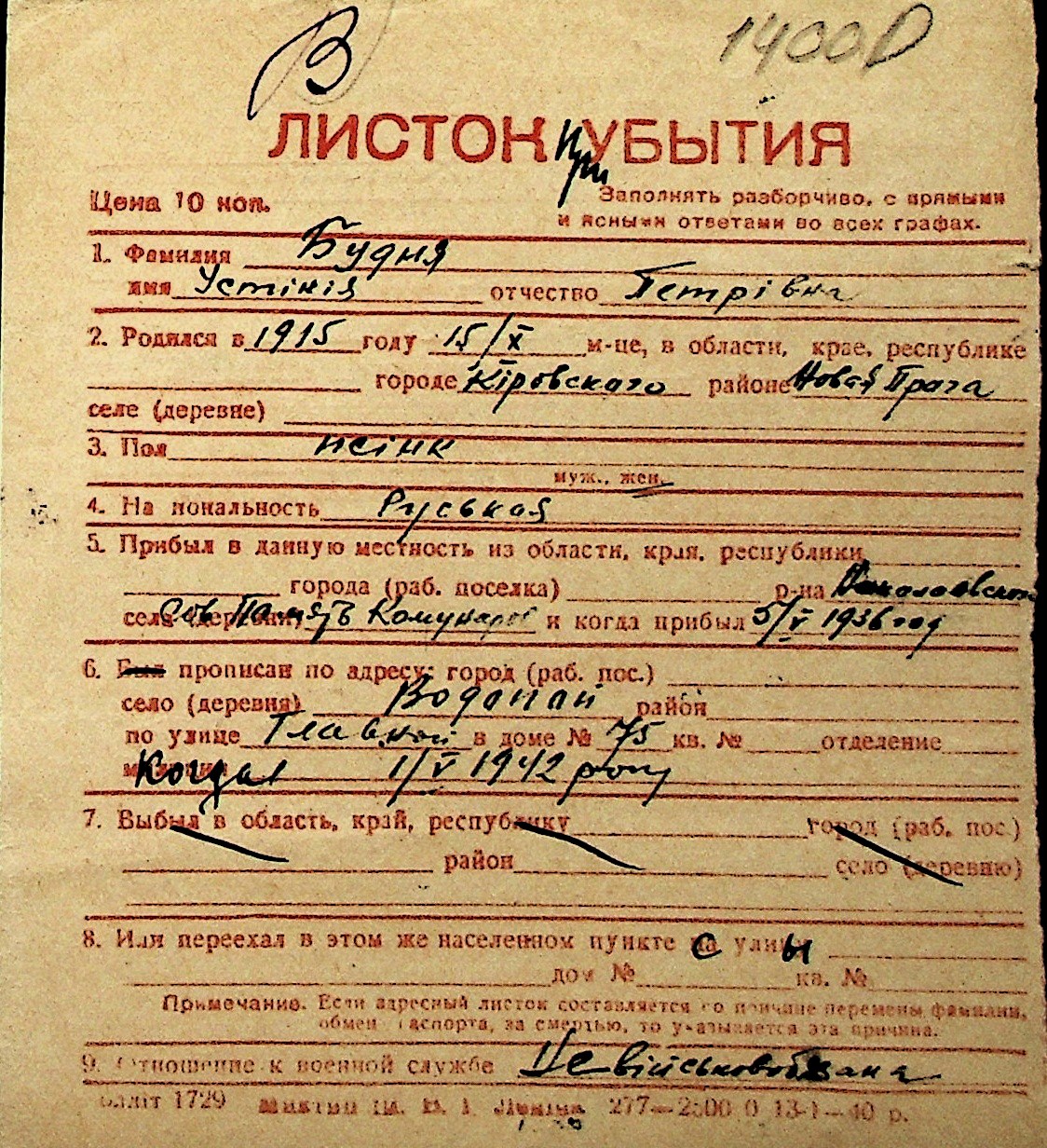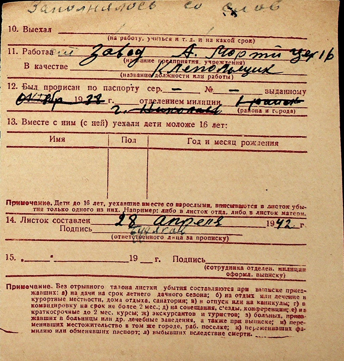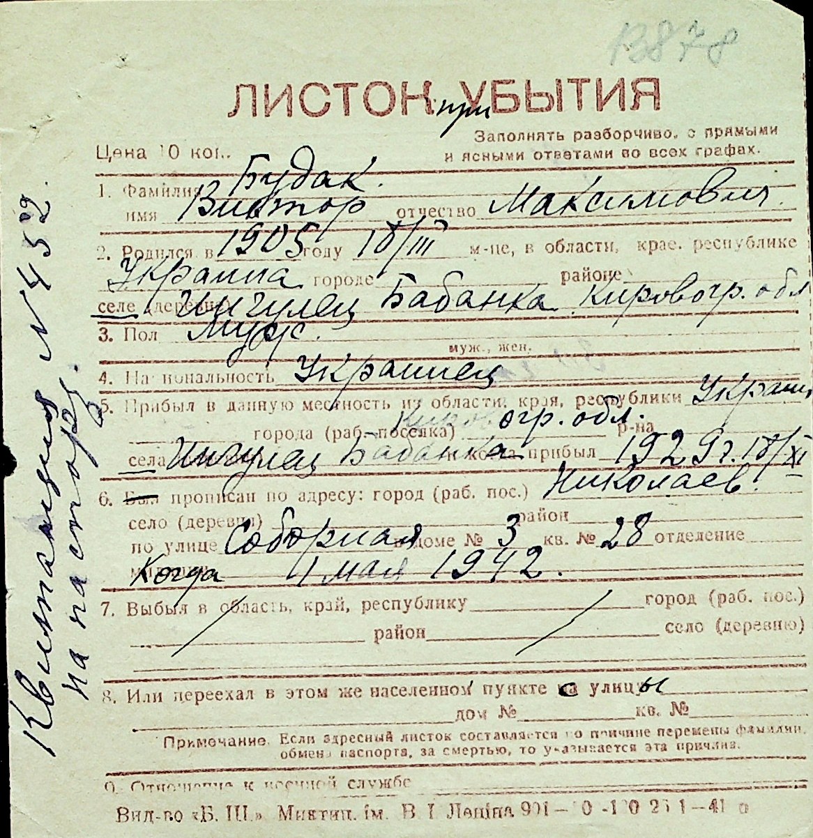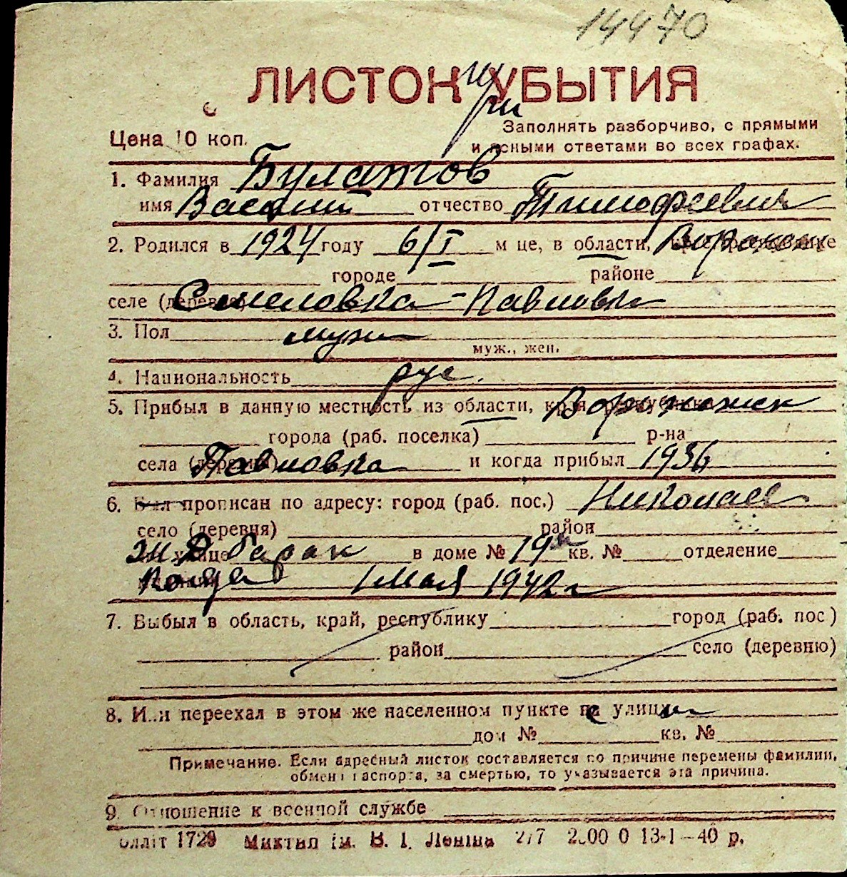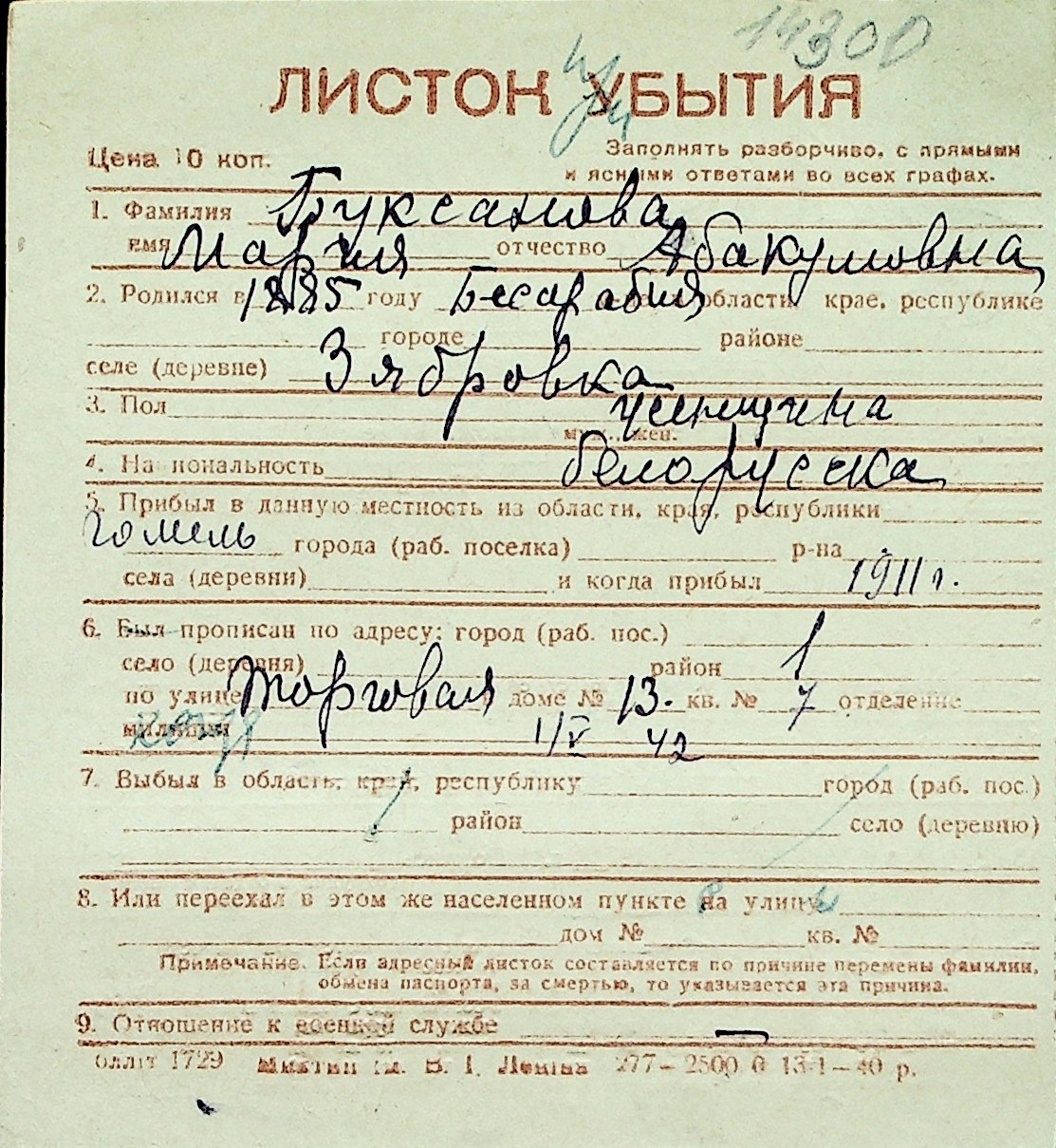 ◦ ◦ Перелік карток на осіб, які мешкали у м. Миколаїв у період окупації 1941–1944 років