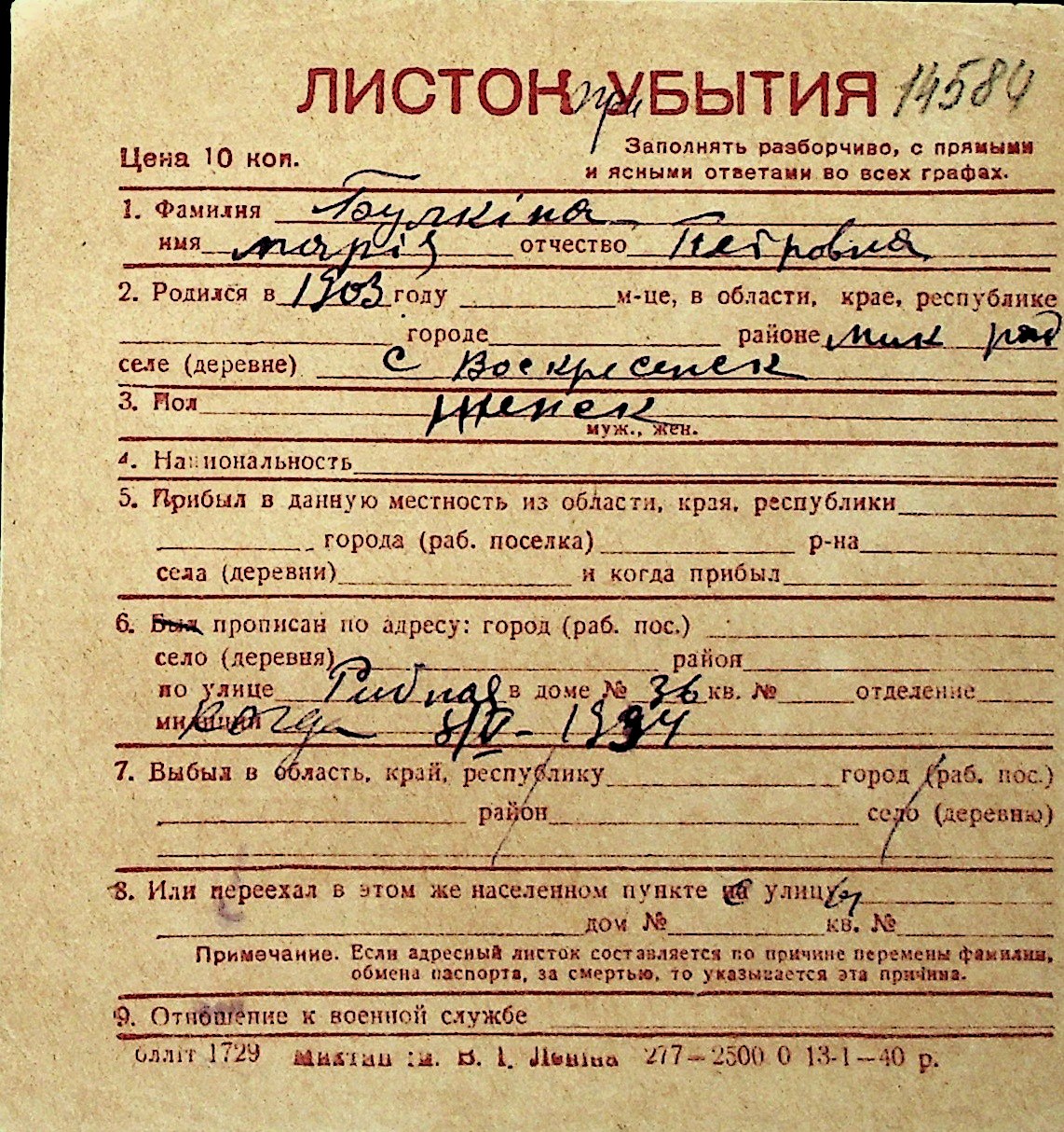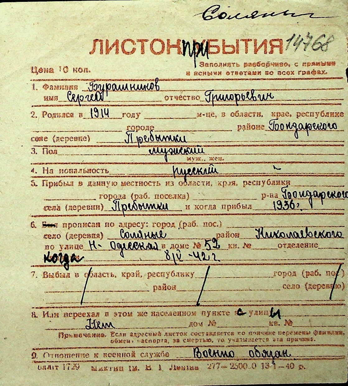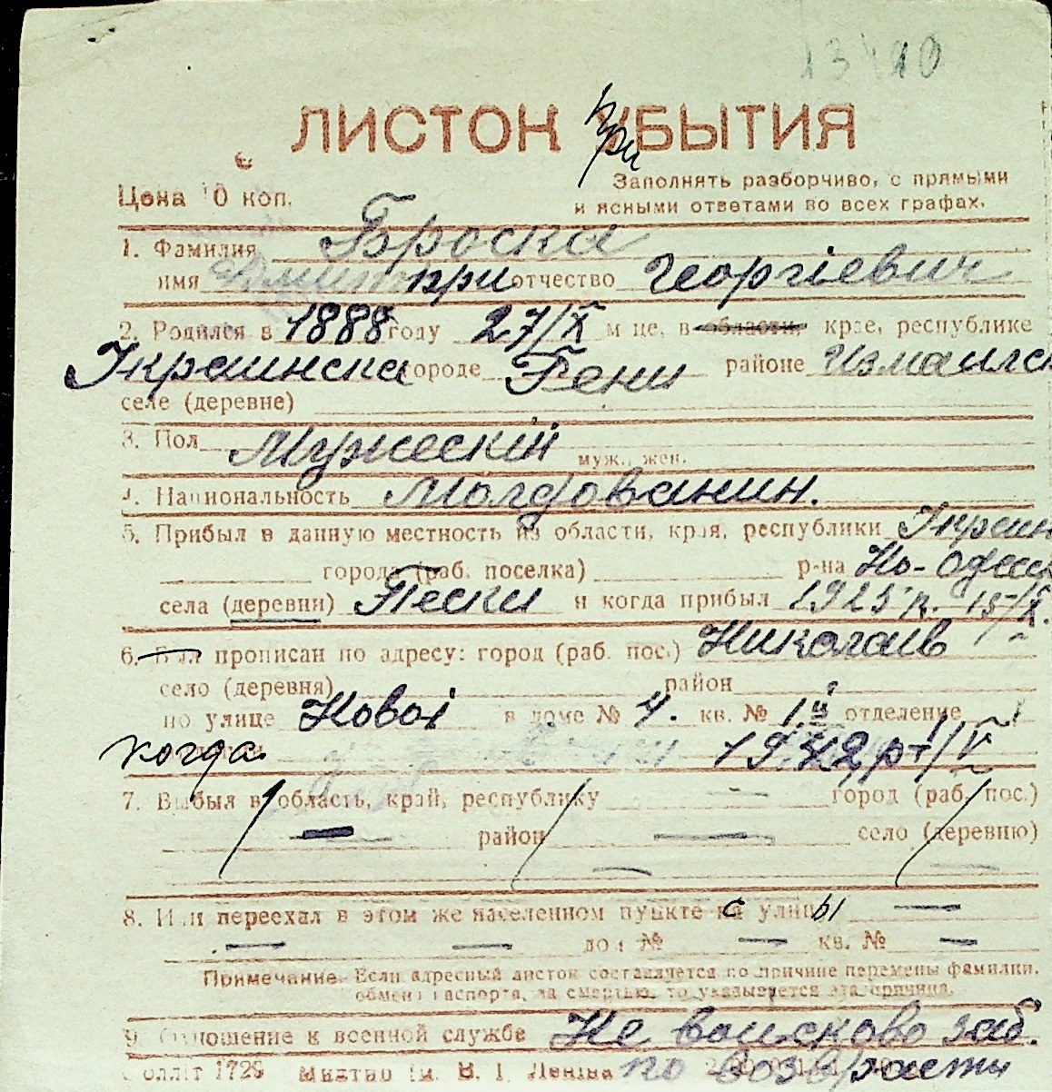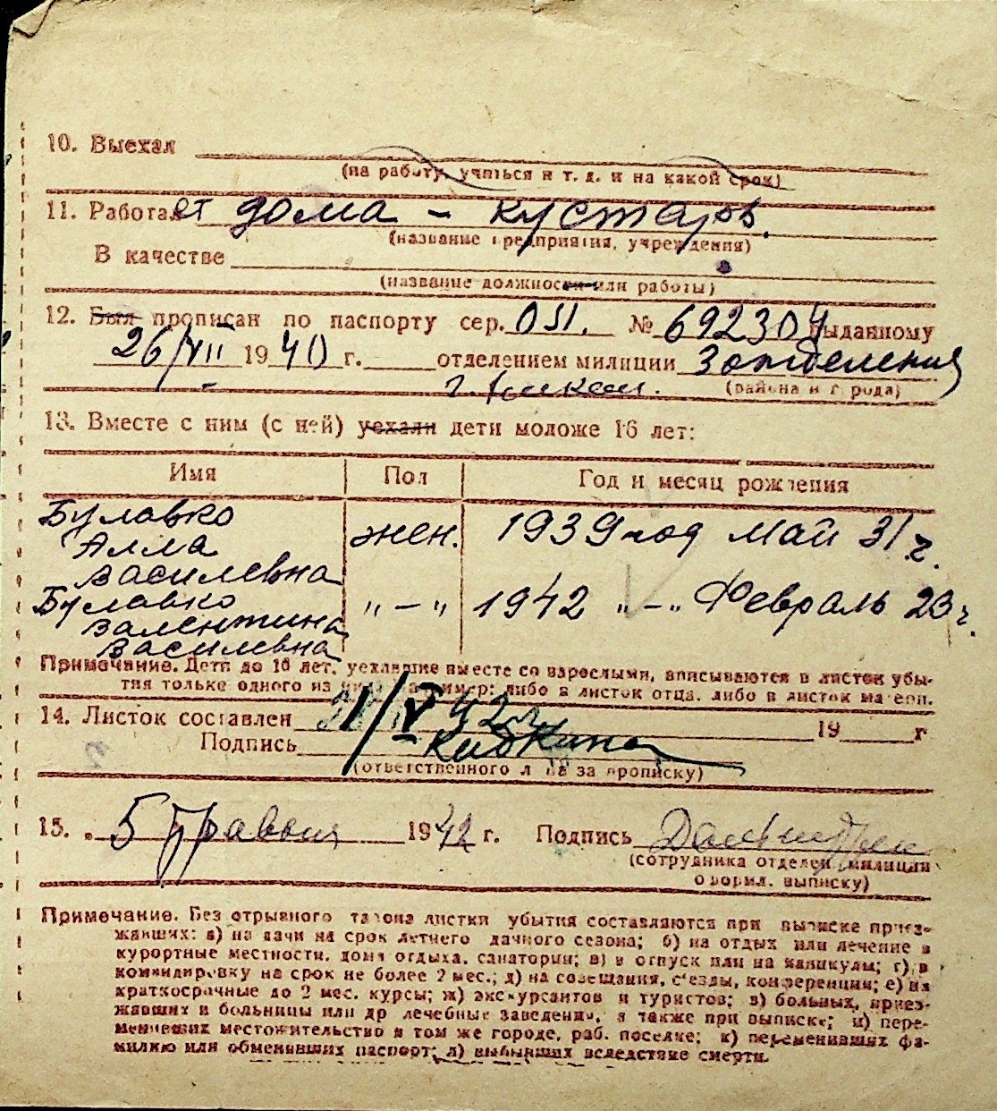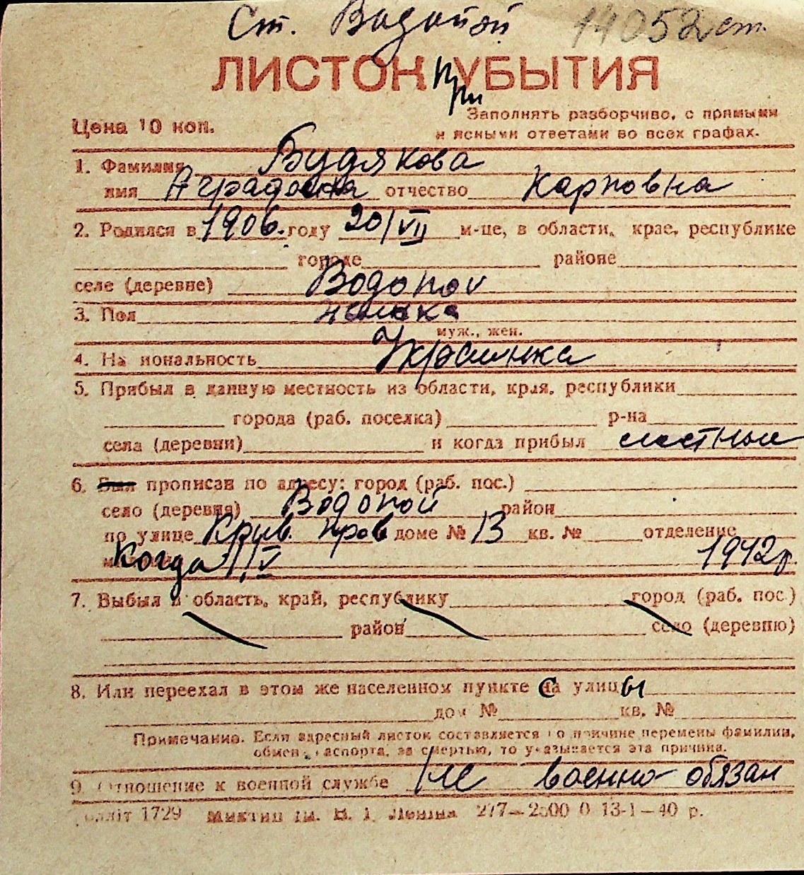 ◦ ◦ Перелік карток на осіб, які мешкали у м. Миколаїв у період окупації 1941–1944 років