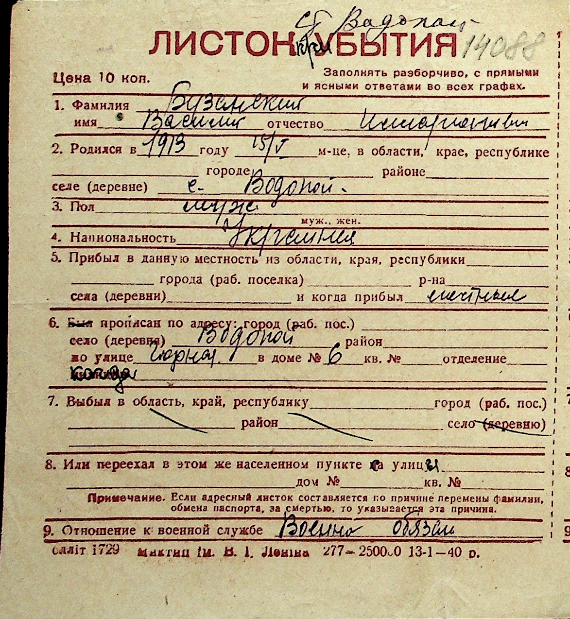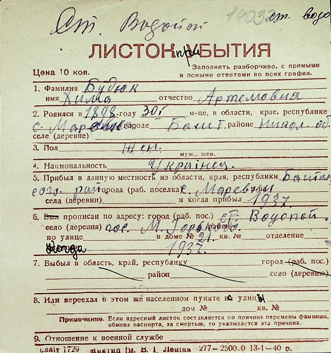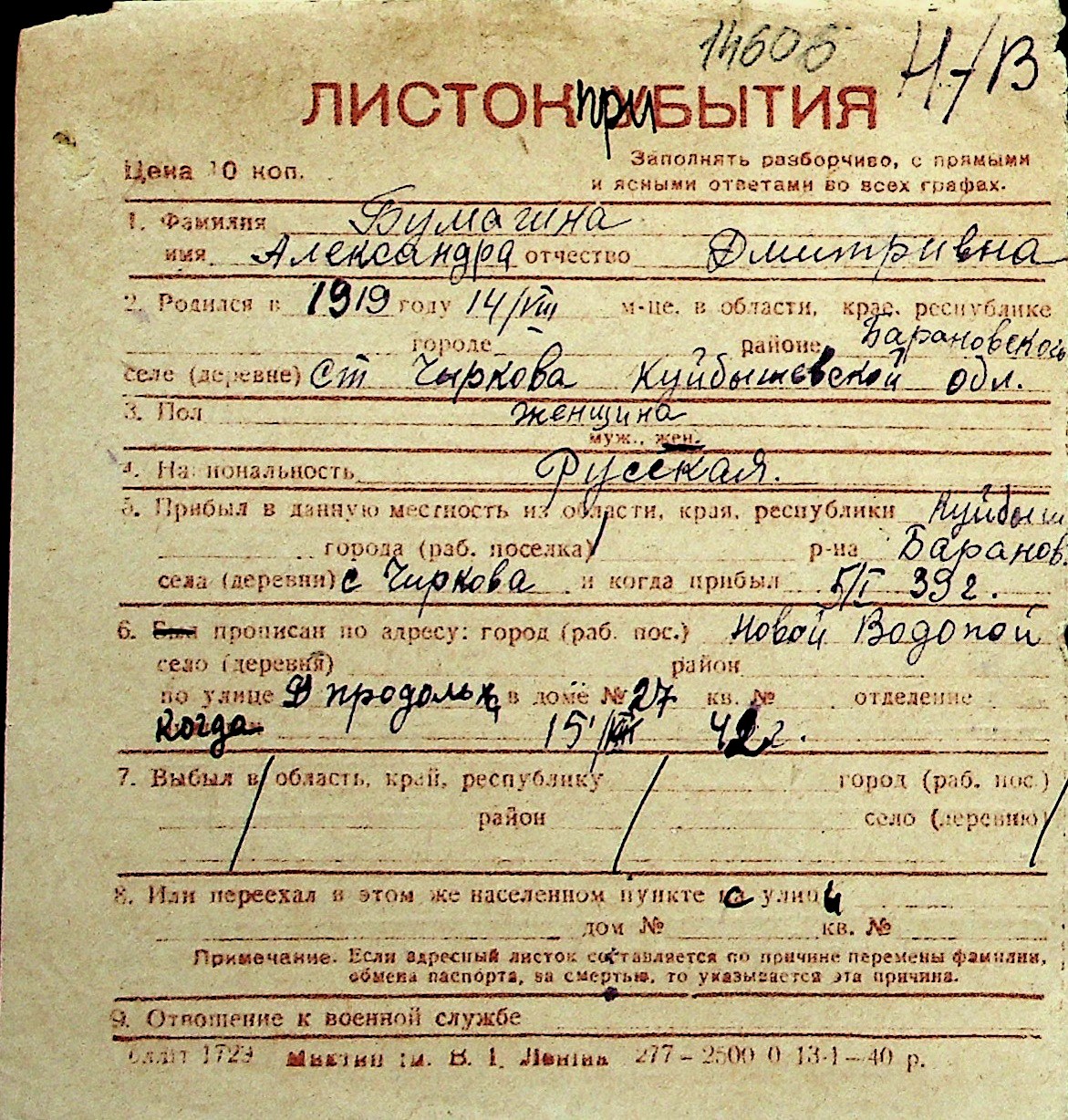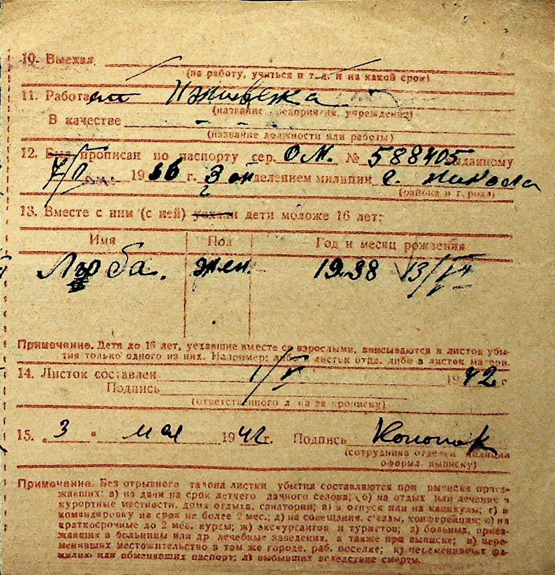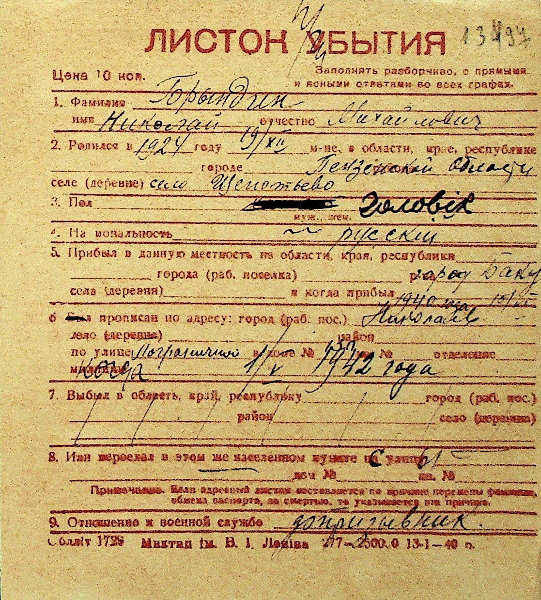 ◦ ◦ Перелік карток на осіб, які мешкали у м. Миколаїв у період окупації 1941–1944 років