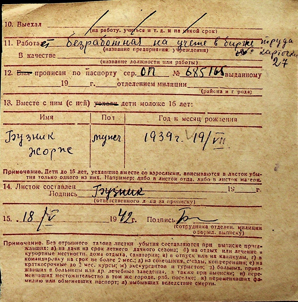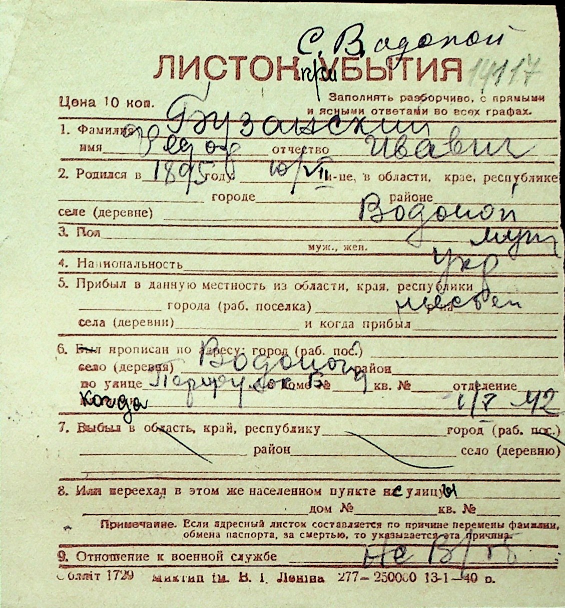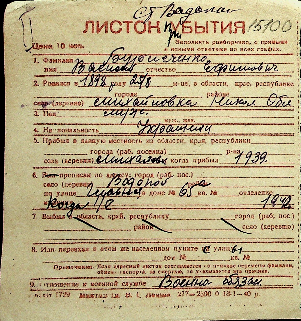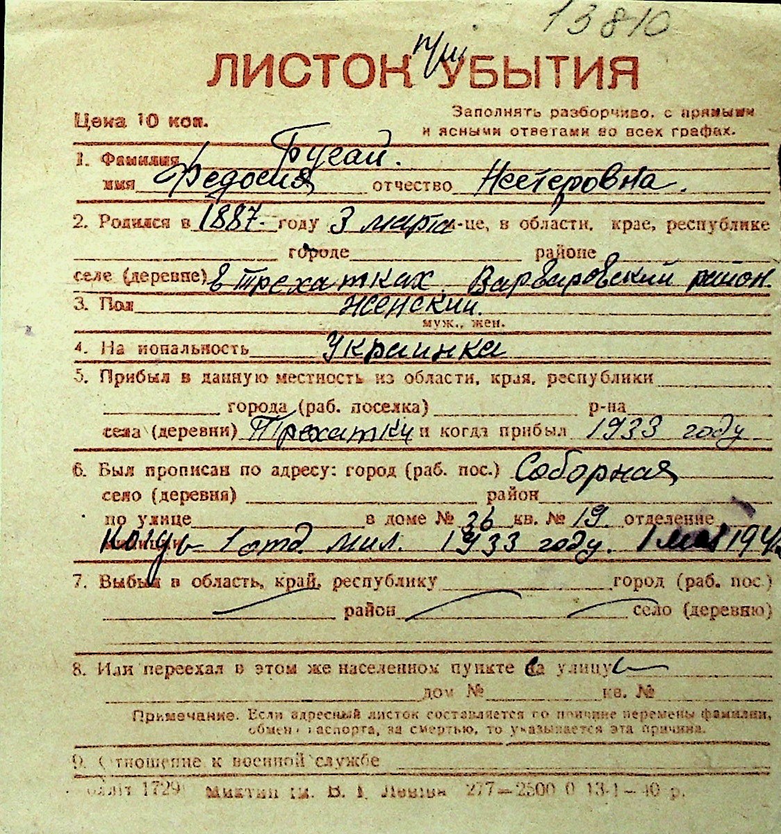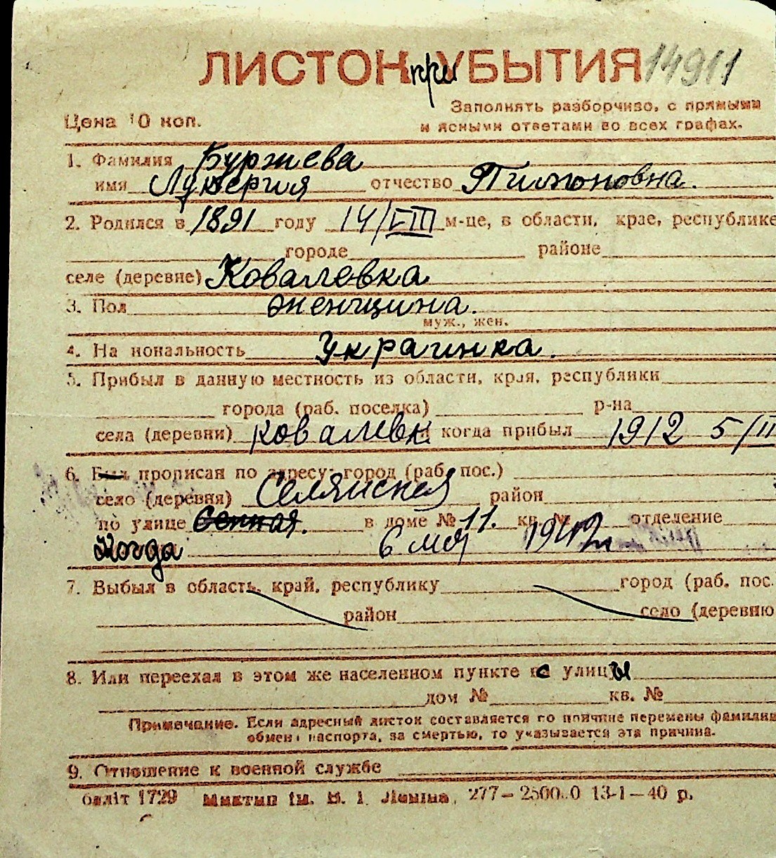 ◦ ◦ Перелік карток на осіб, які мешкали у м. Миколаїв у період окупації 1941–1944 років