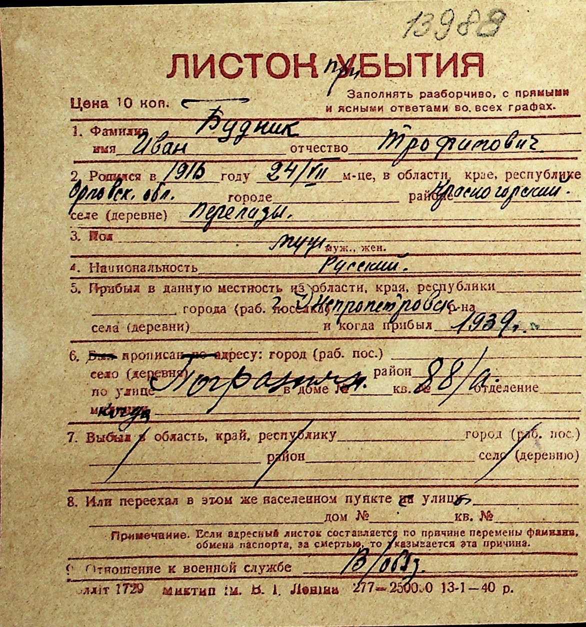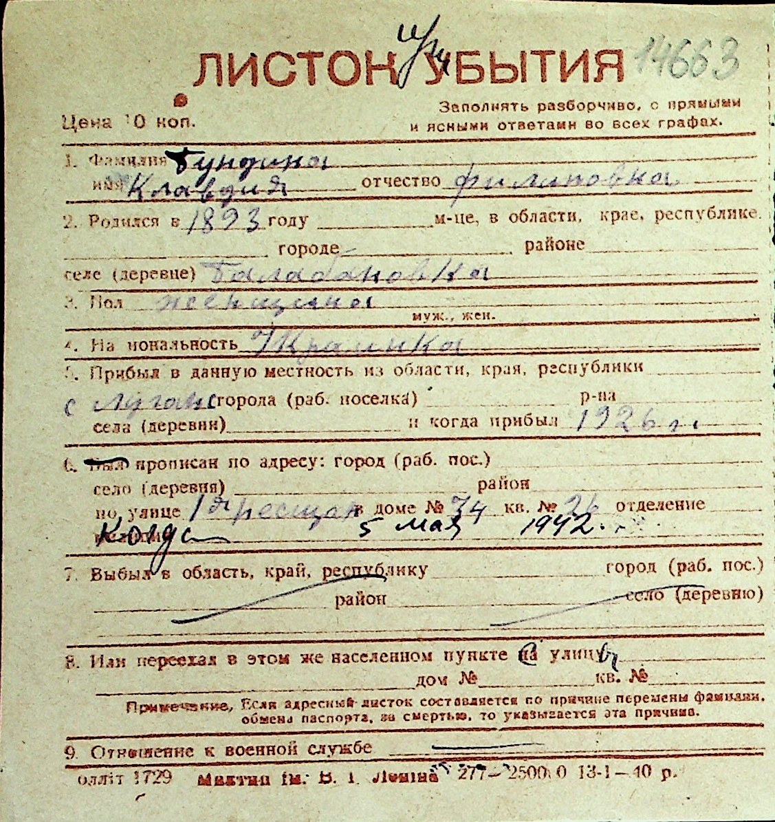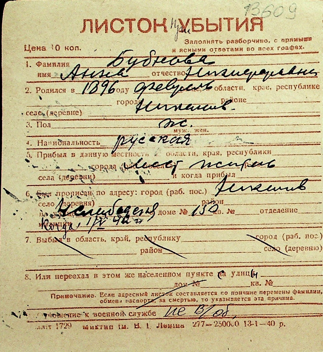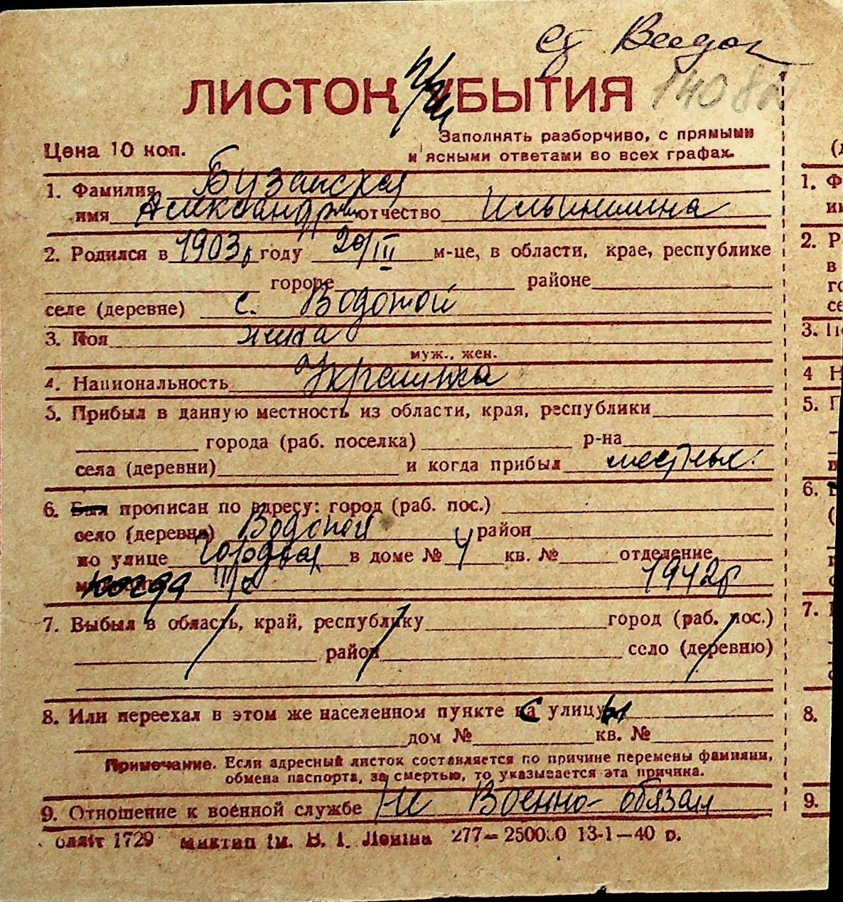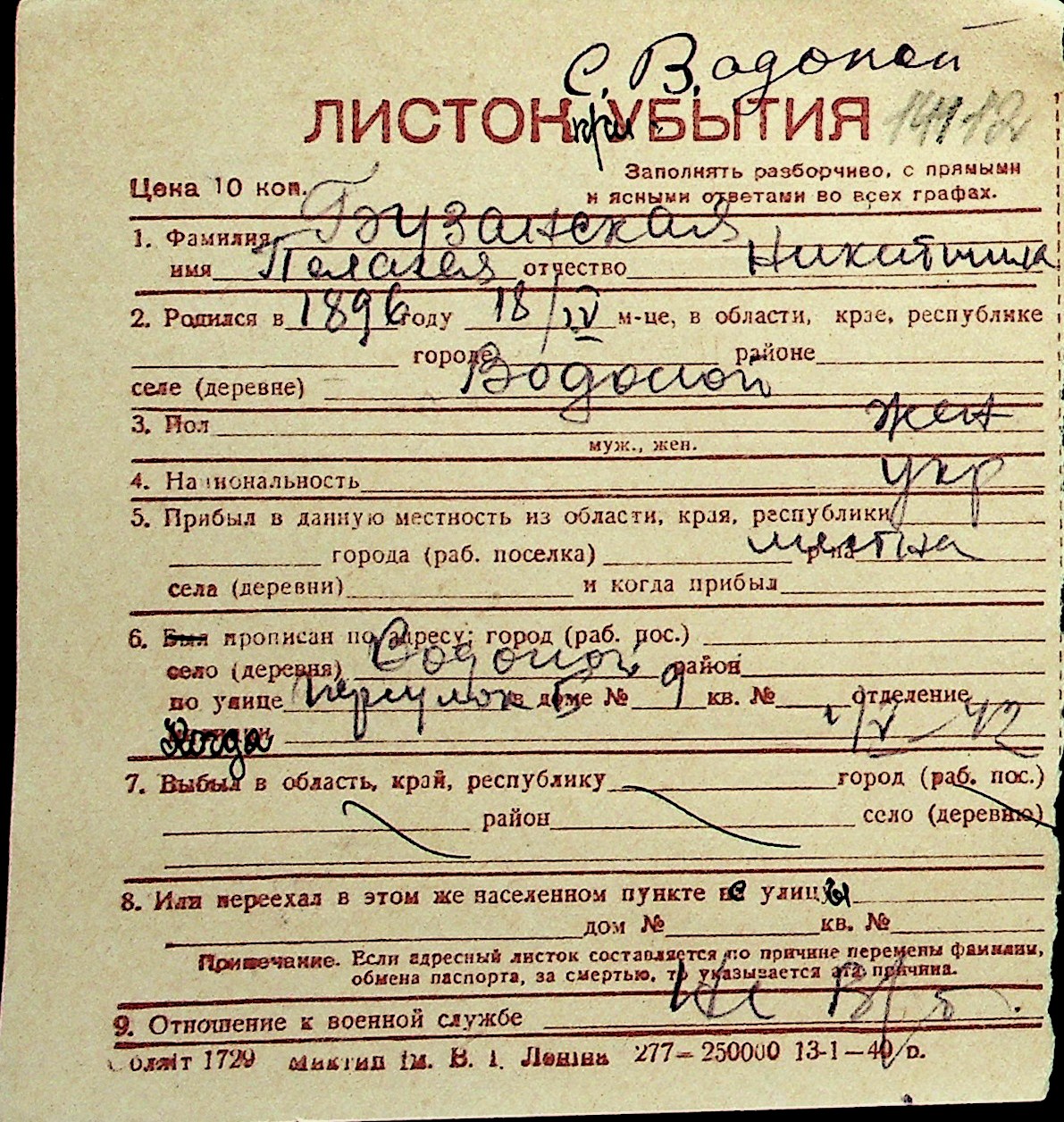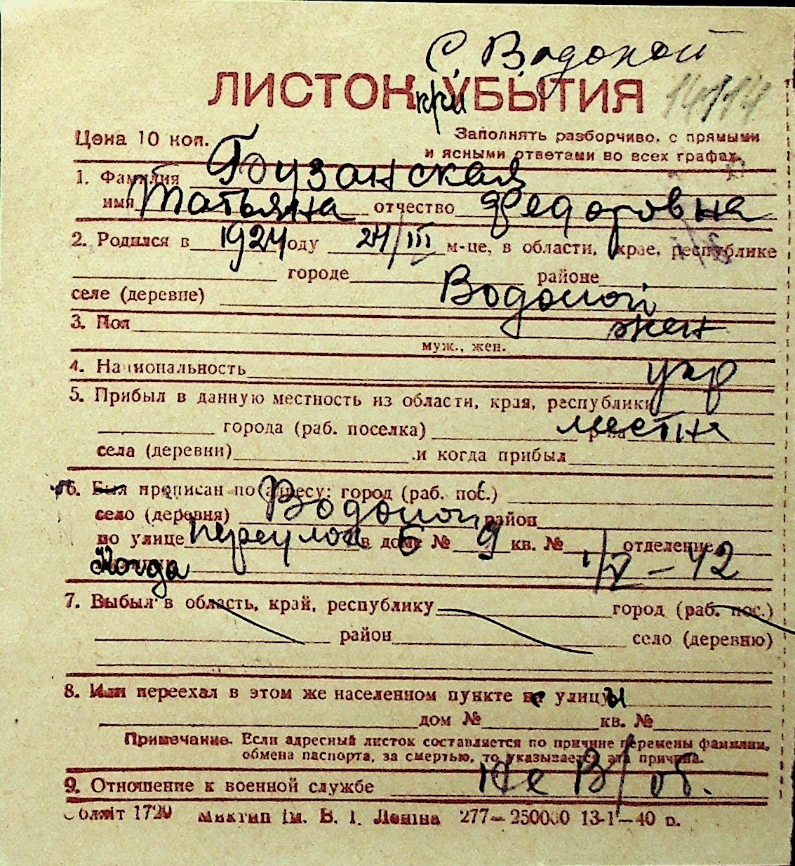 ◦ ◦ Перелік карток на осіб, які мешкали у м. Миколаїв у період окупації 1941–1944 років
