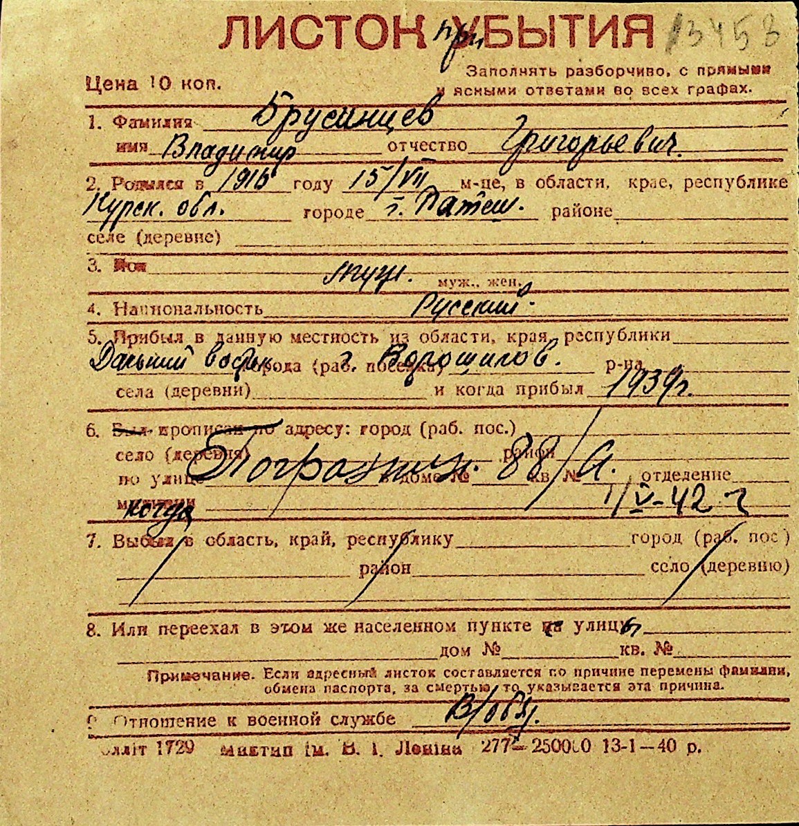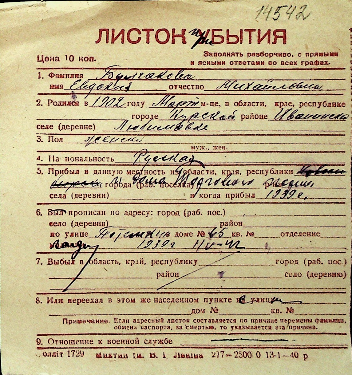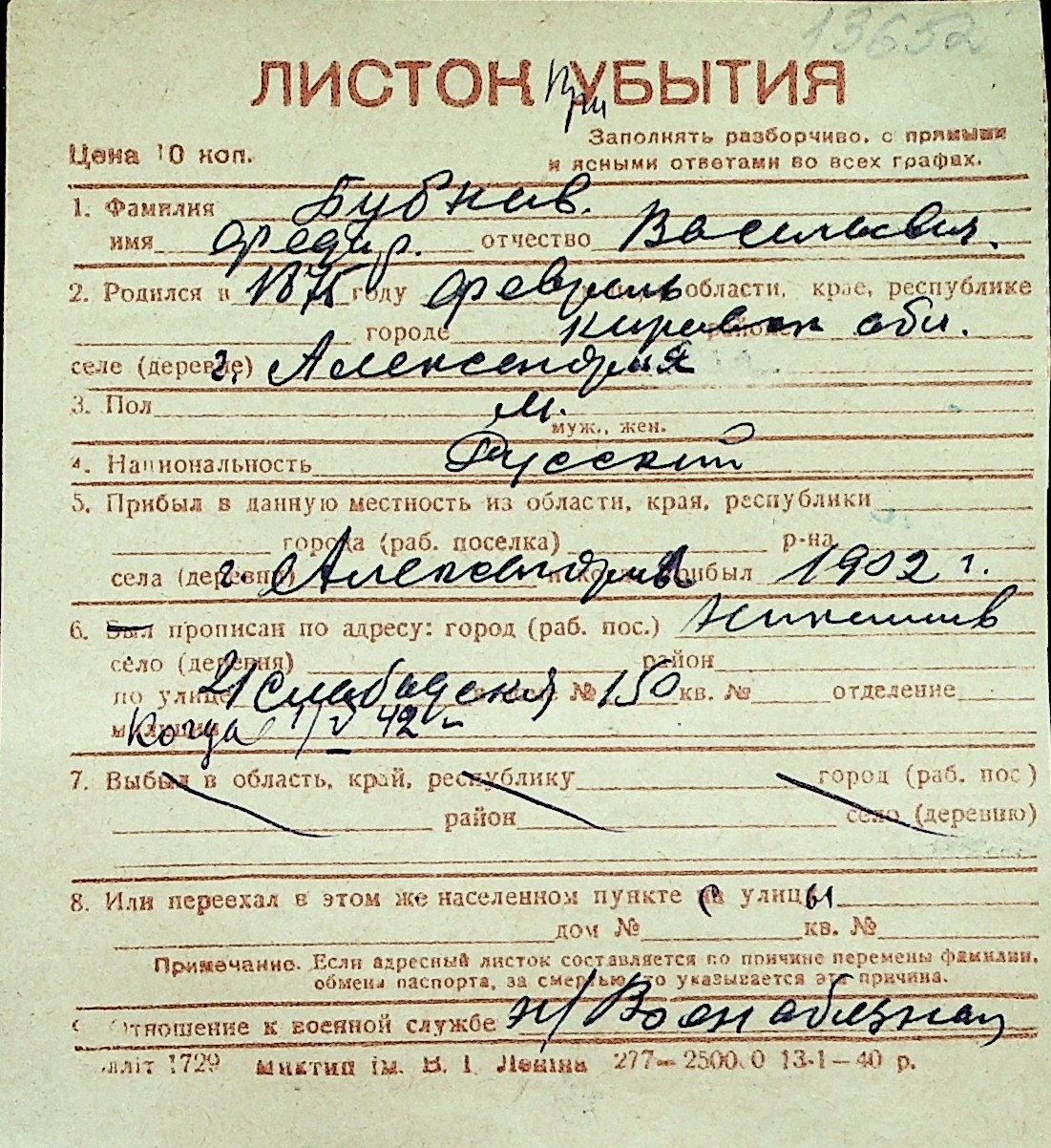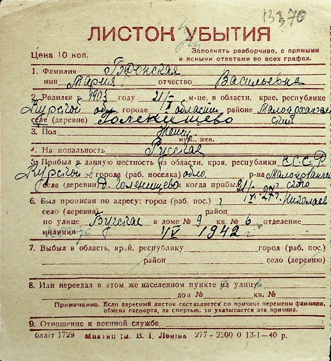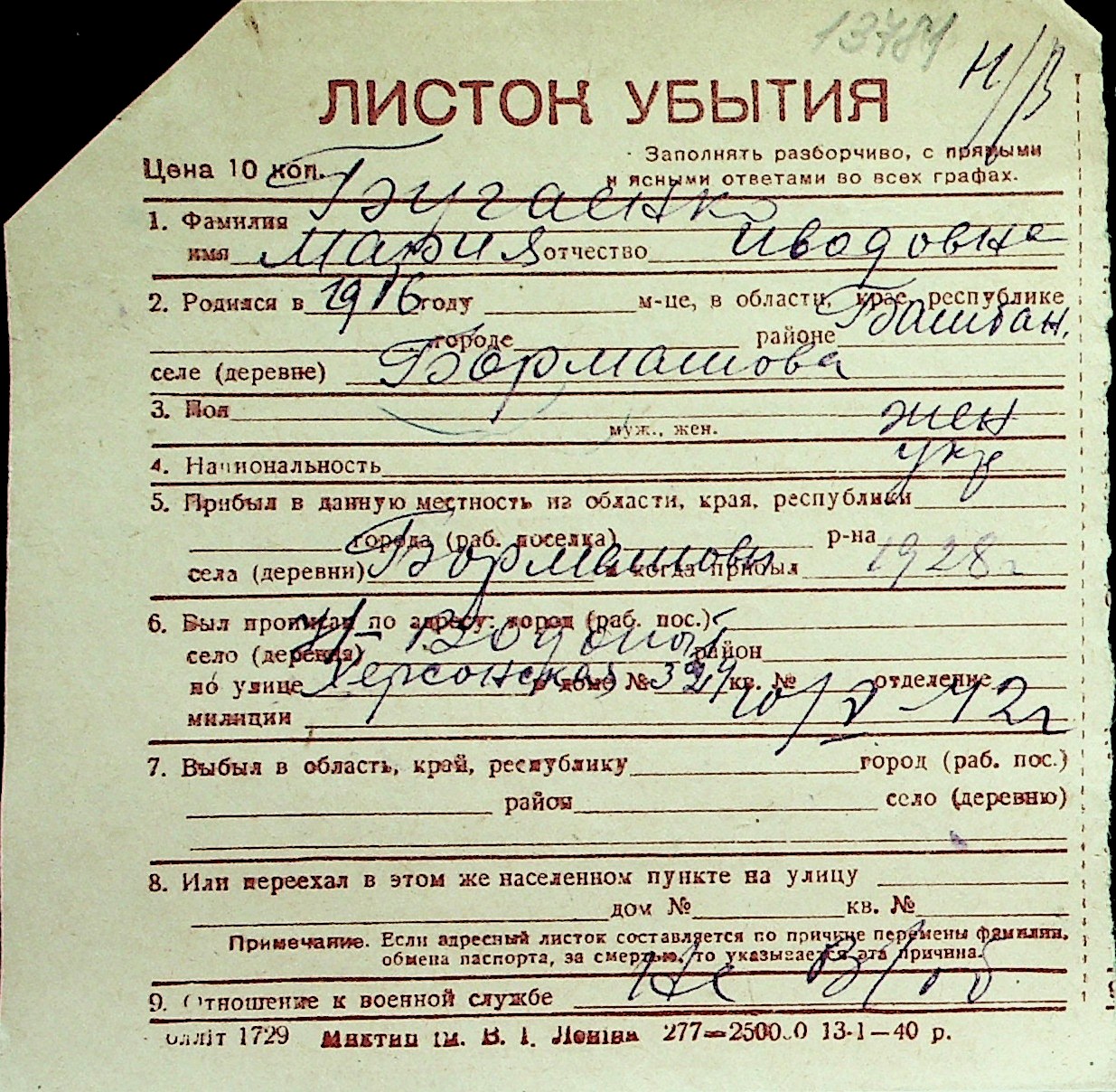 ◦ ◦ Перелік карток на осіб, які мешкали у м. Миколаїв у період окупації 1941–1944 років