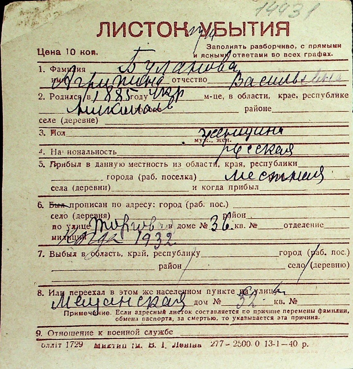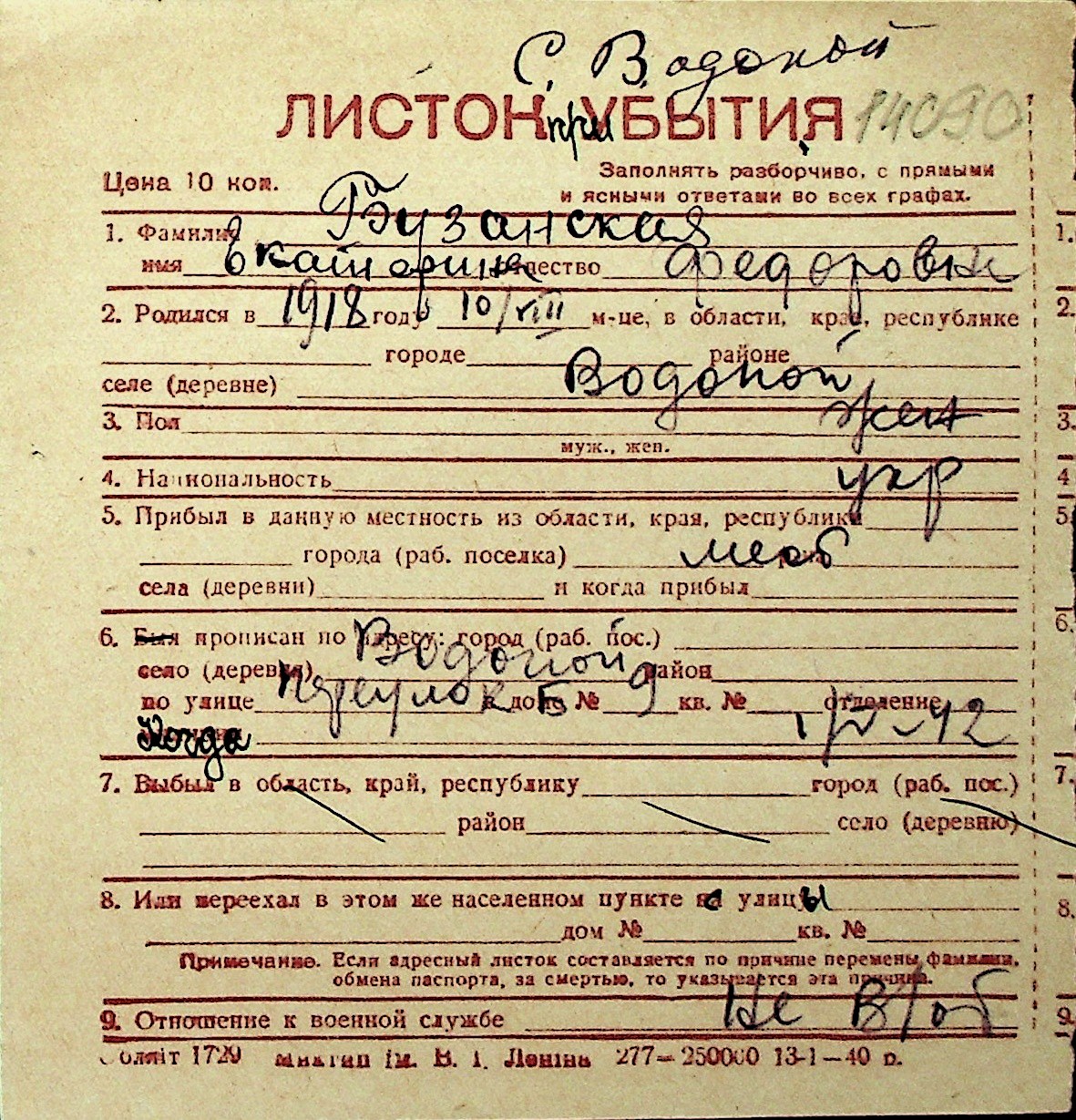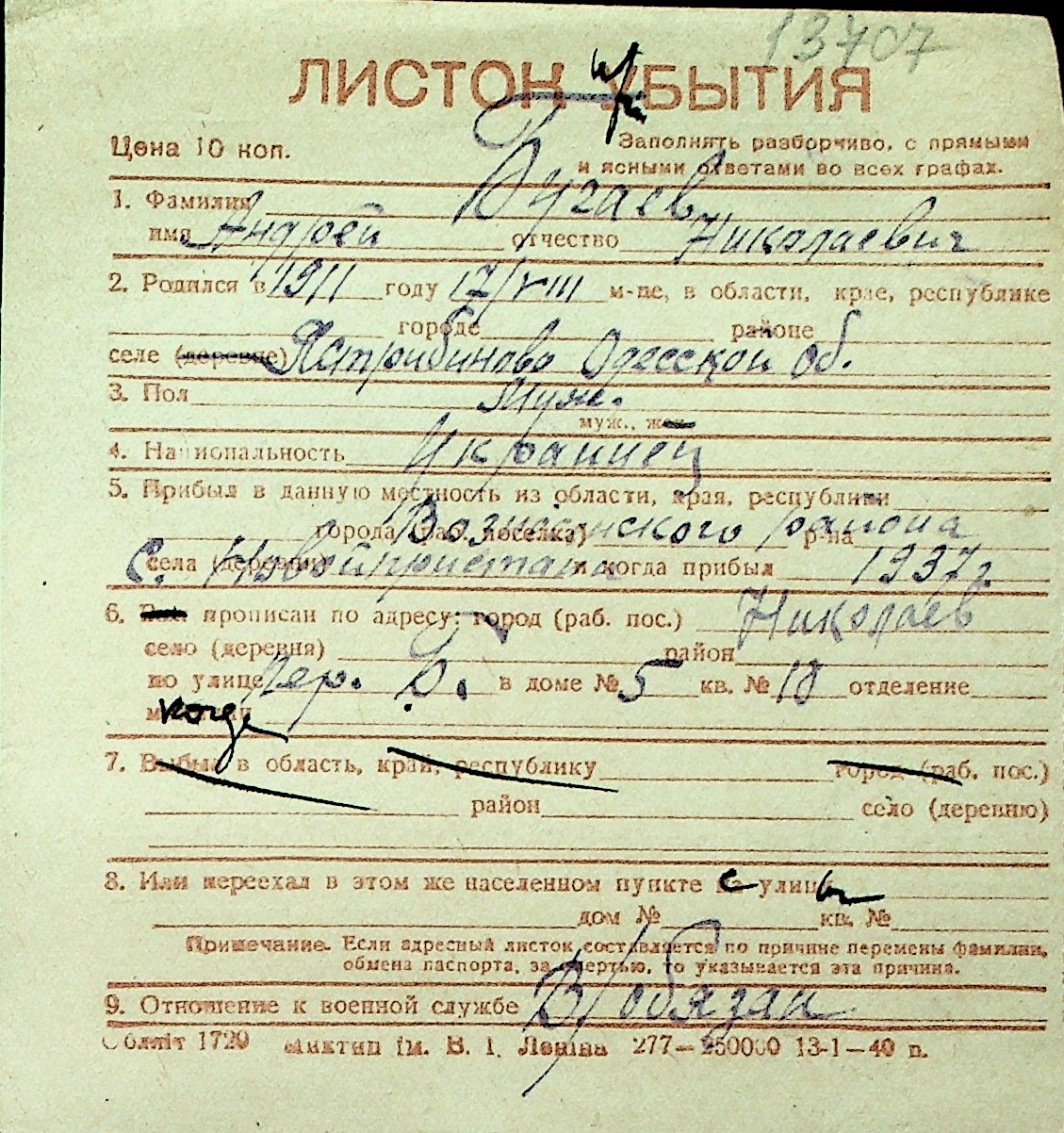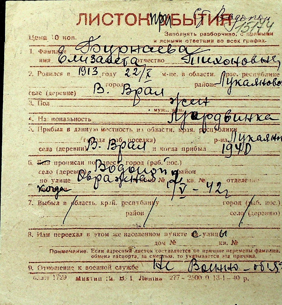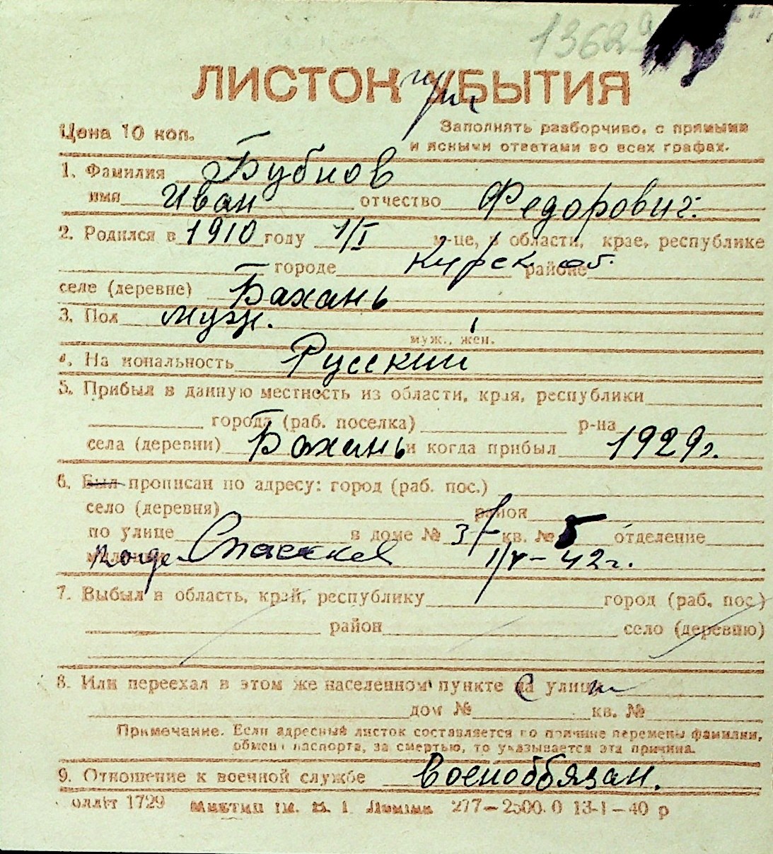 ◦ ◦ Перелік карток на осіб, які мешкали у м. Миколаїв у період окупації 1941–1944 років