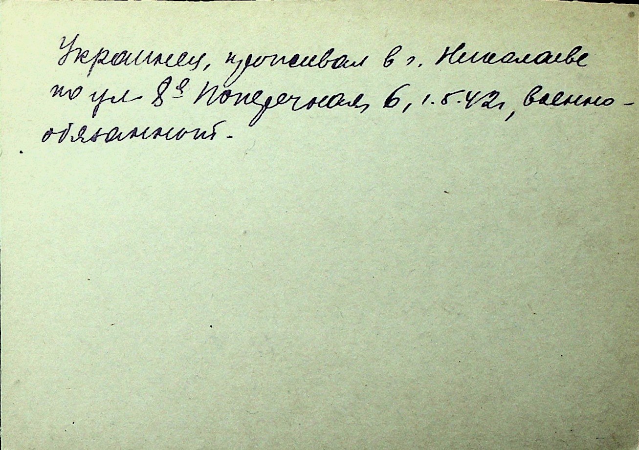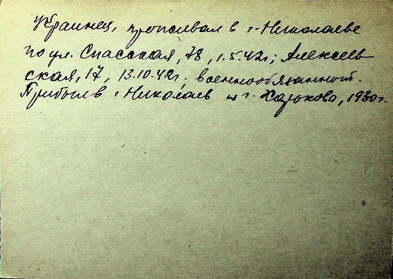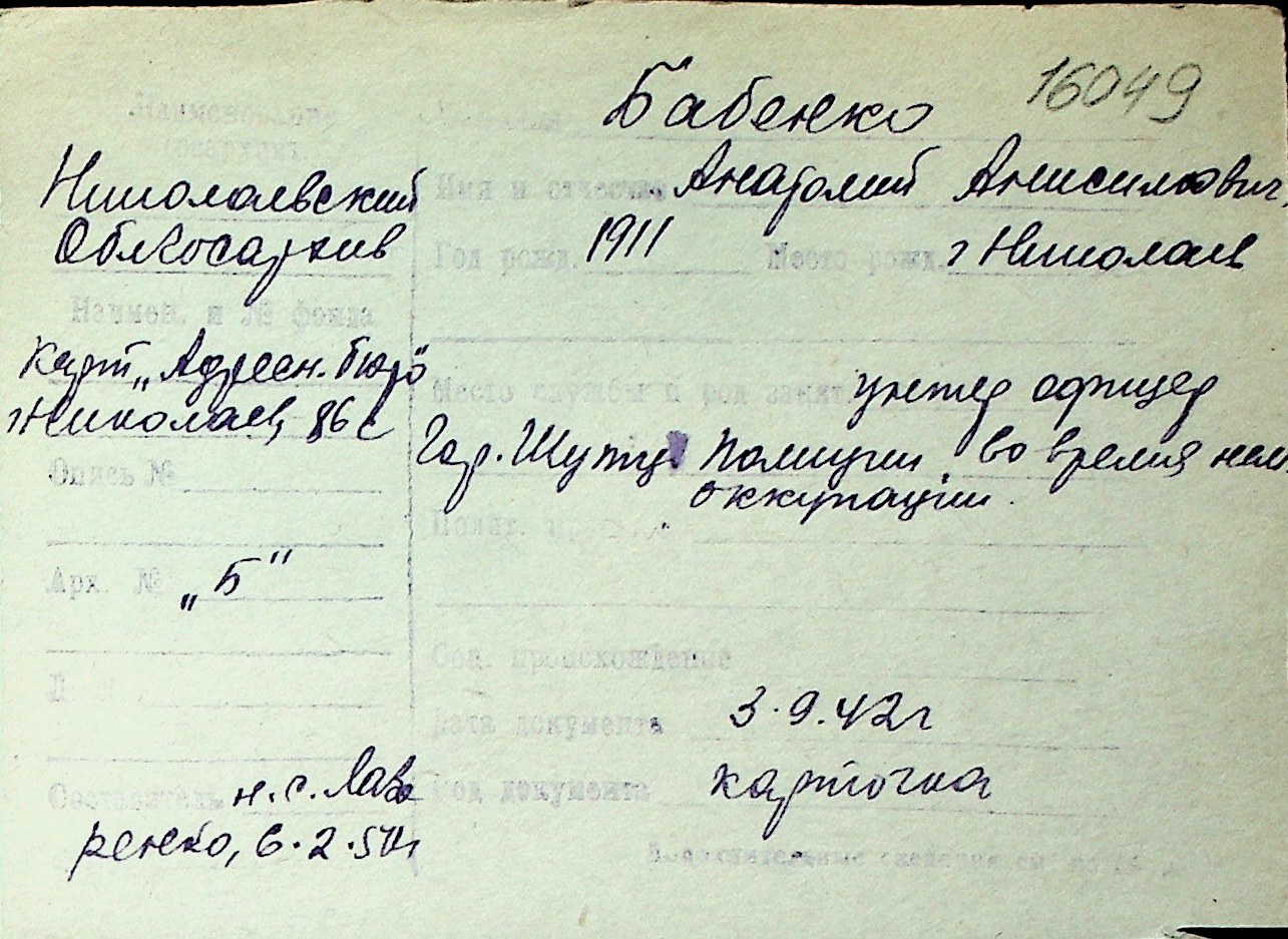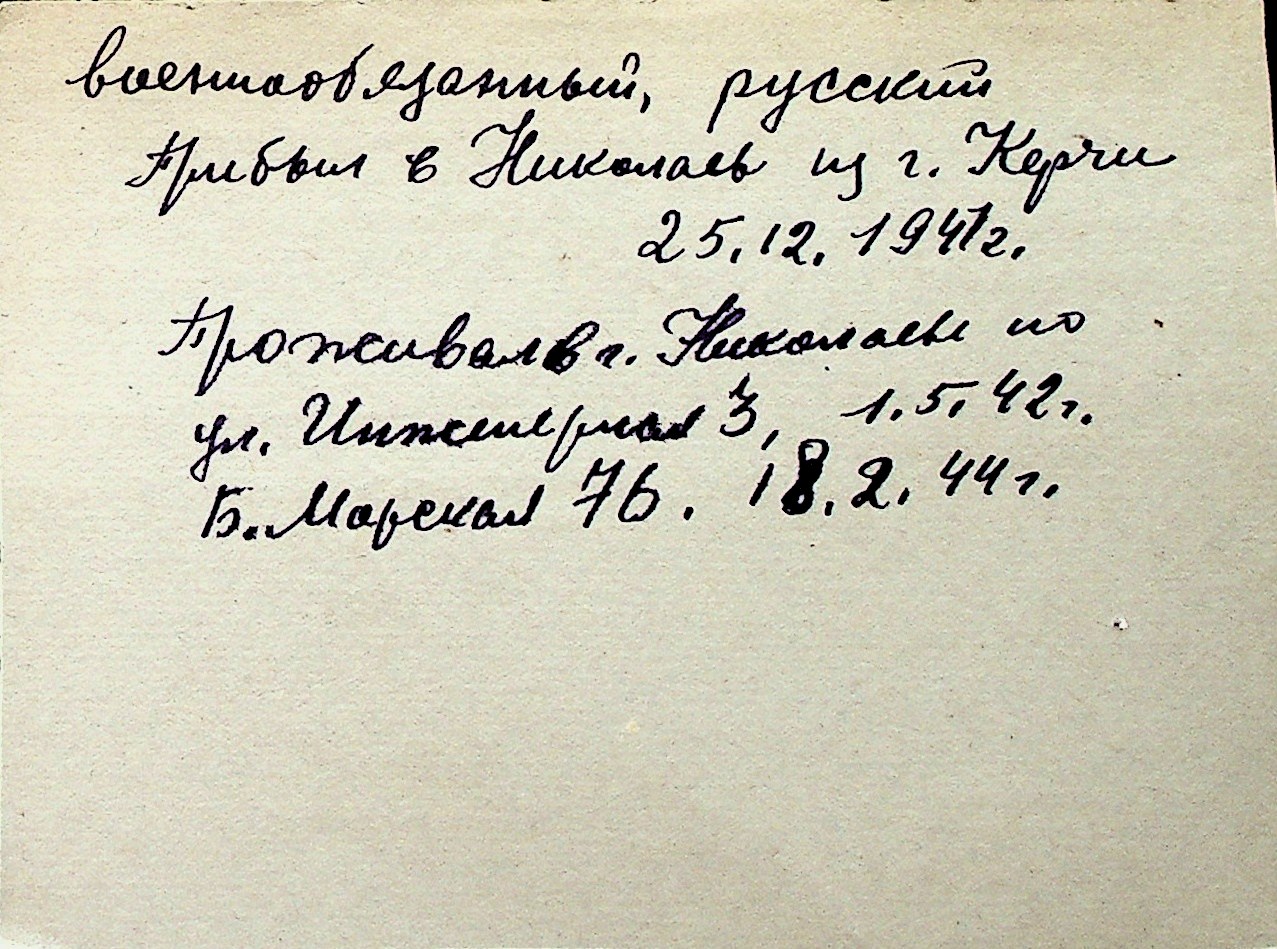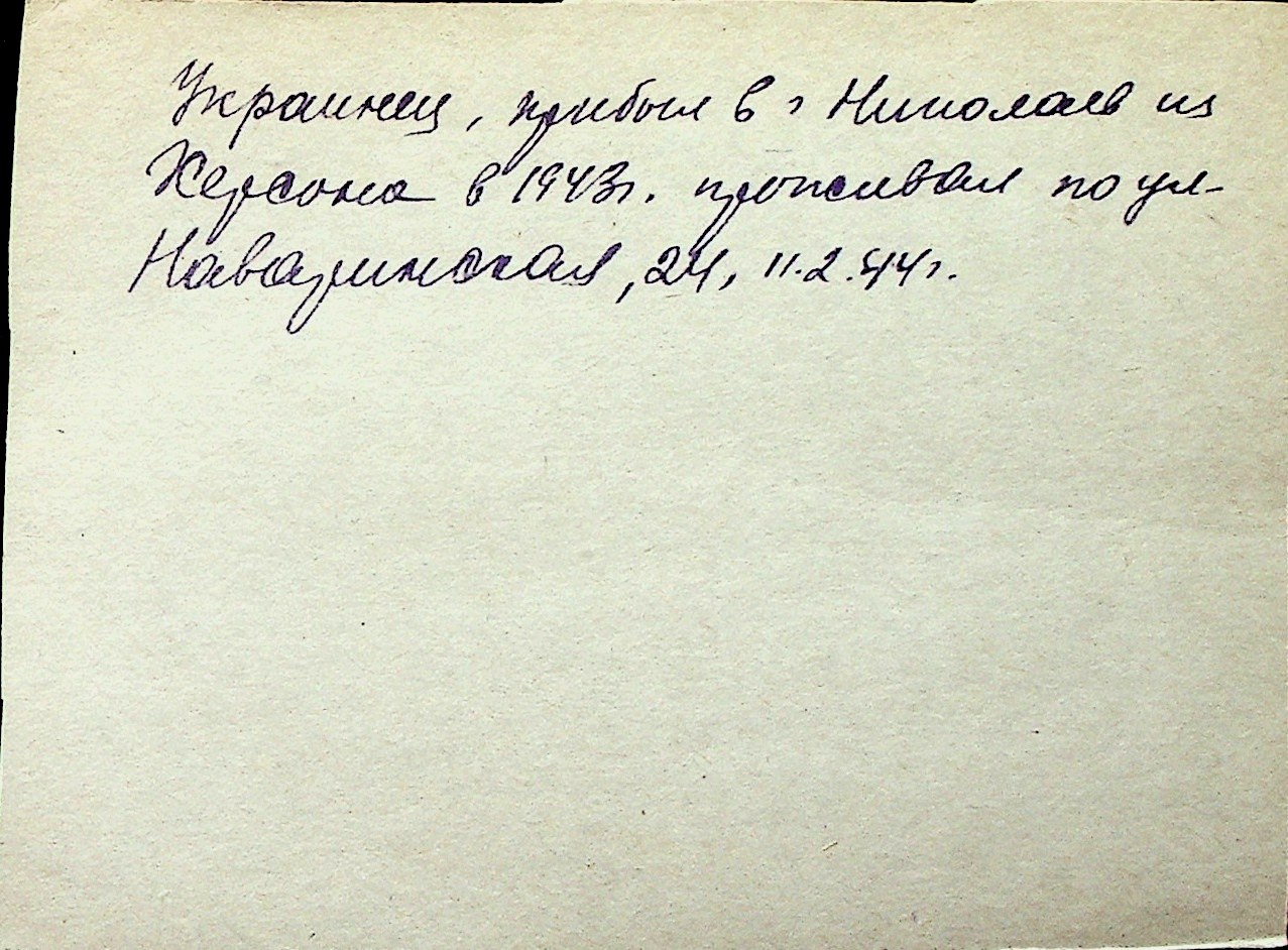 ◦ ◦ Перелік карток на осіб, які мешкали у м. Миколаїв у період окупації 1941–1944 років