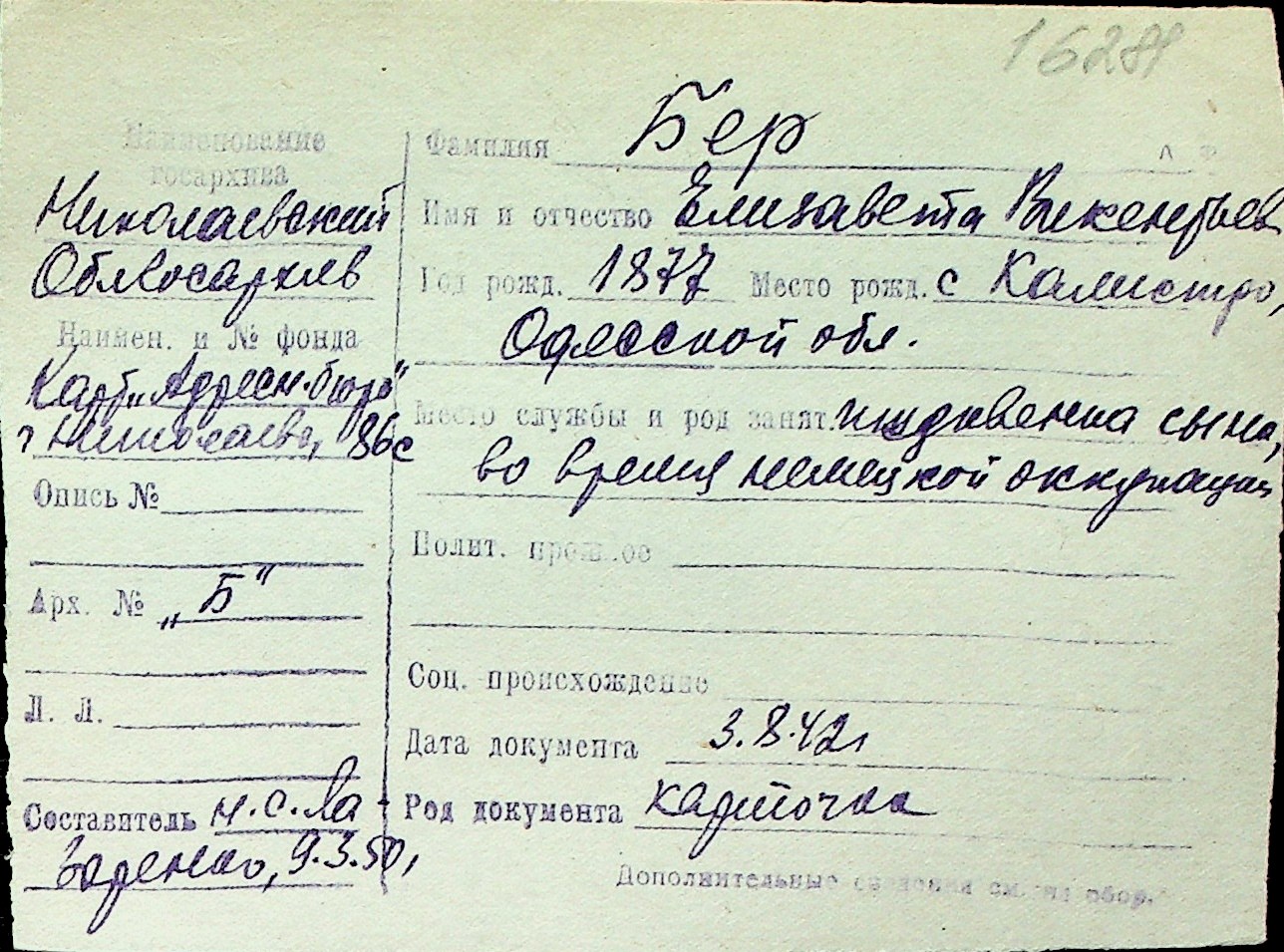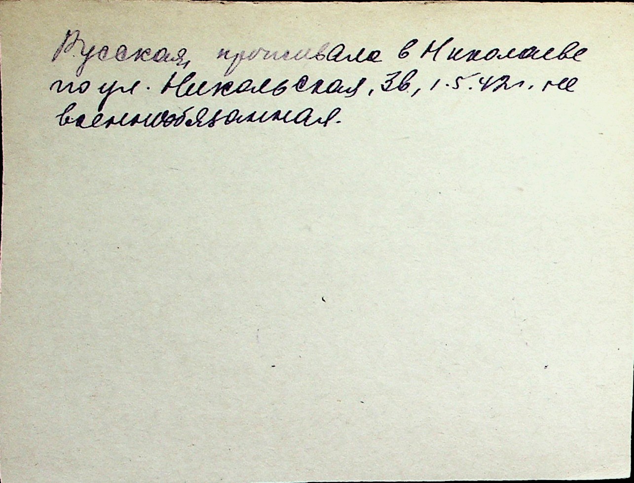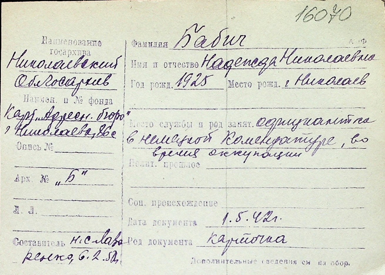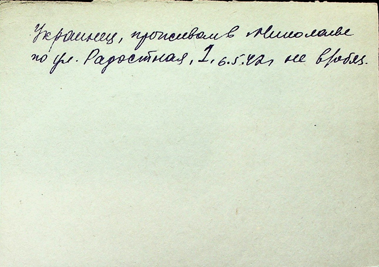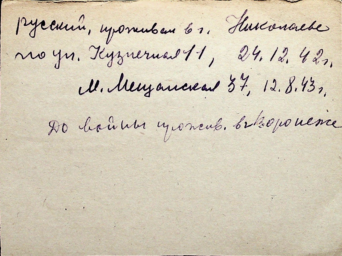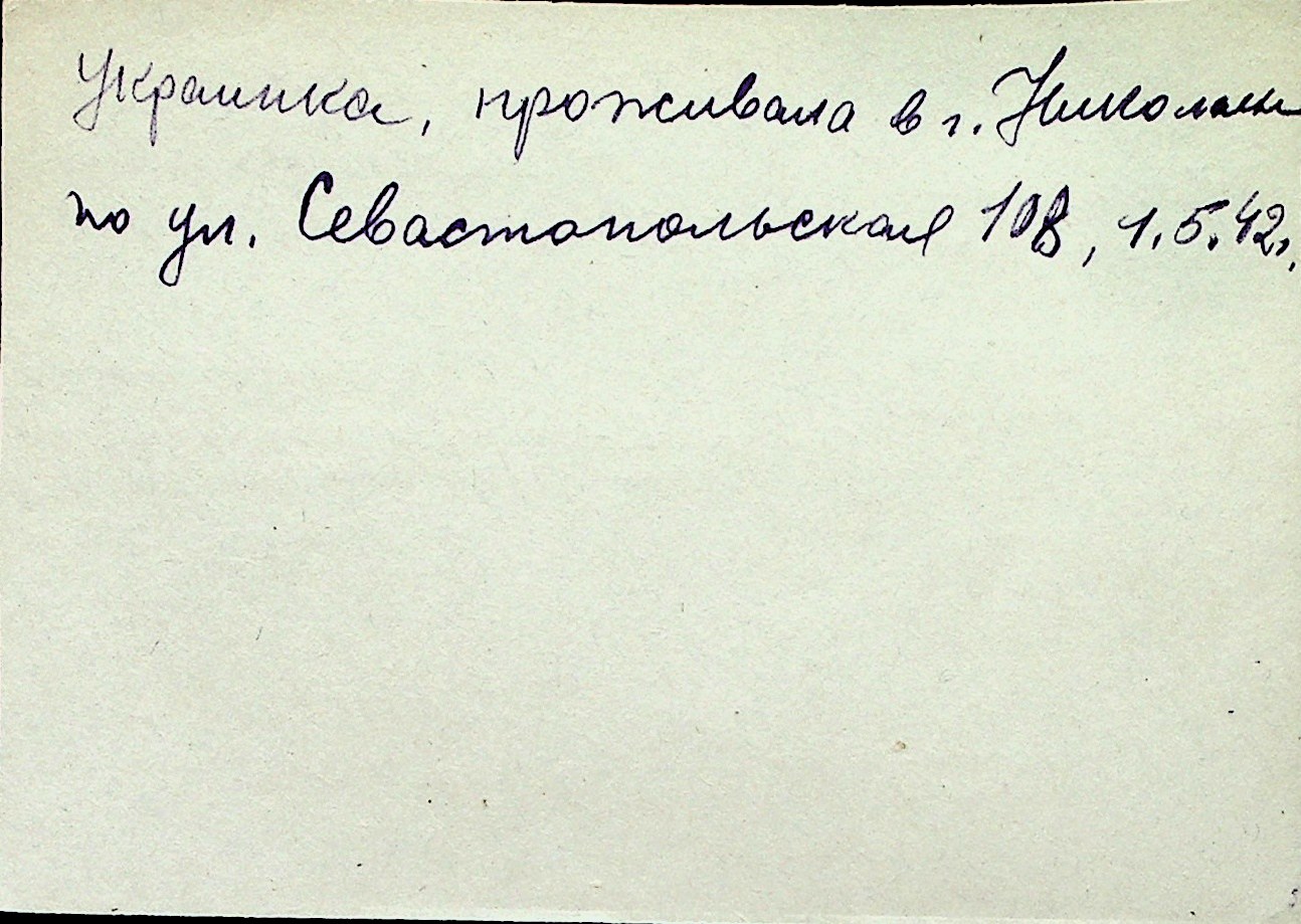 ◦ ◦ Перелік карток на осіб, які мешкали у м. Миколаїв у період окупації 1941–1944 років