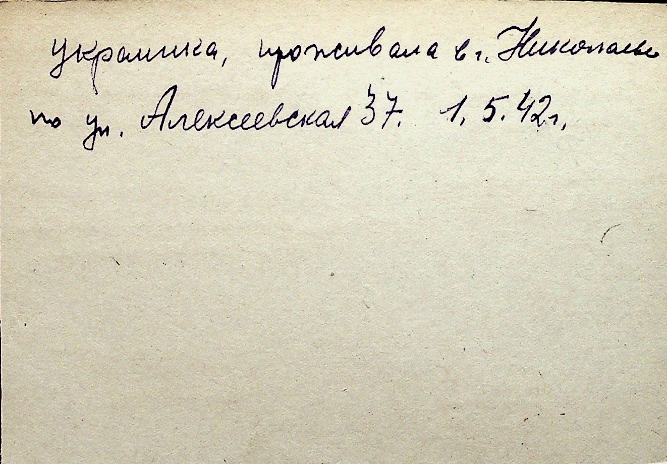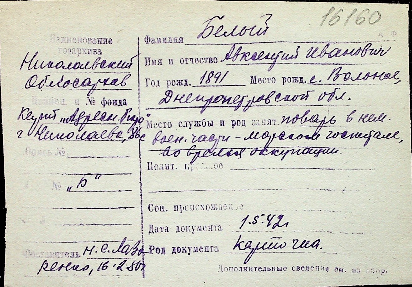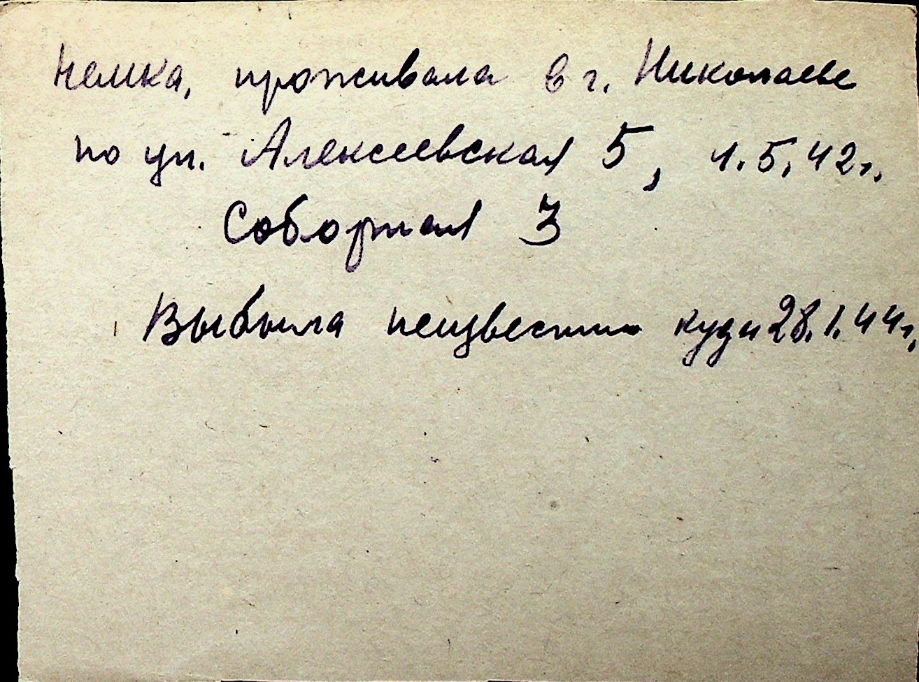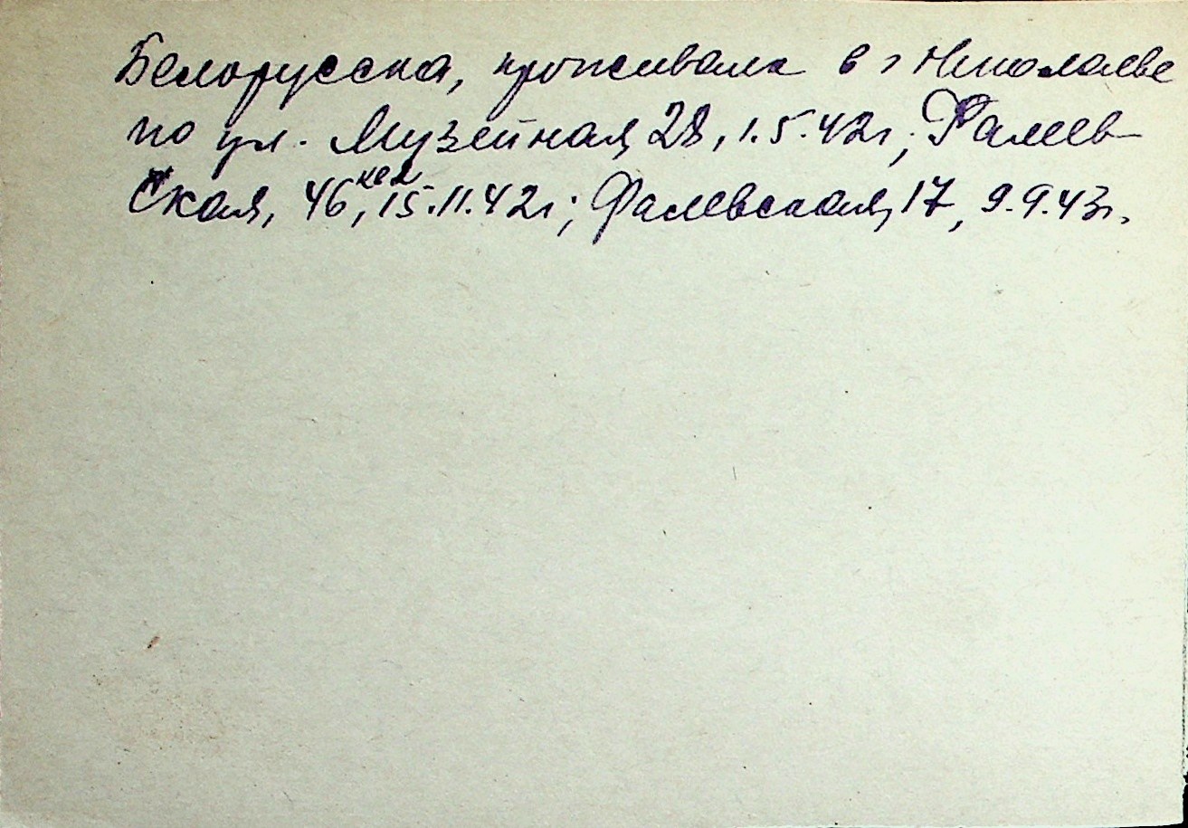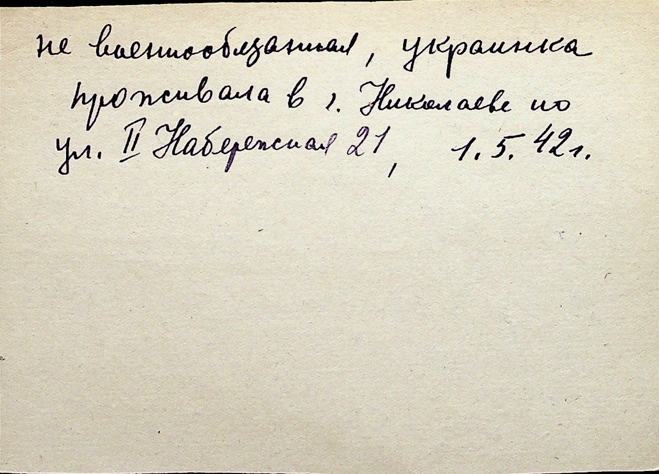 ◦ ◦ Перелік карток на осіб, які мешкали у м. Миколаїв у період окупації 1941–1944 років