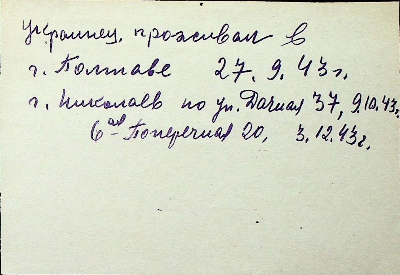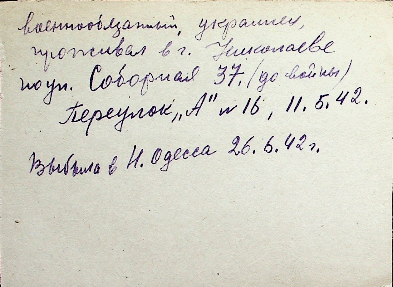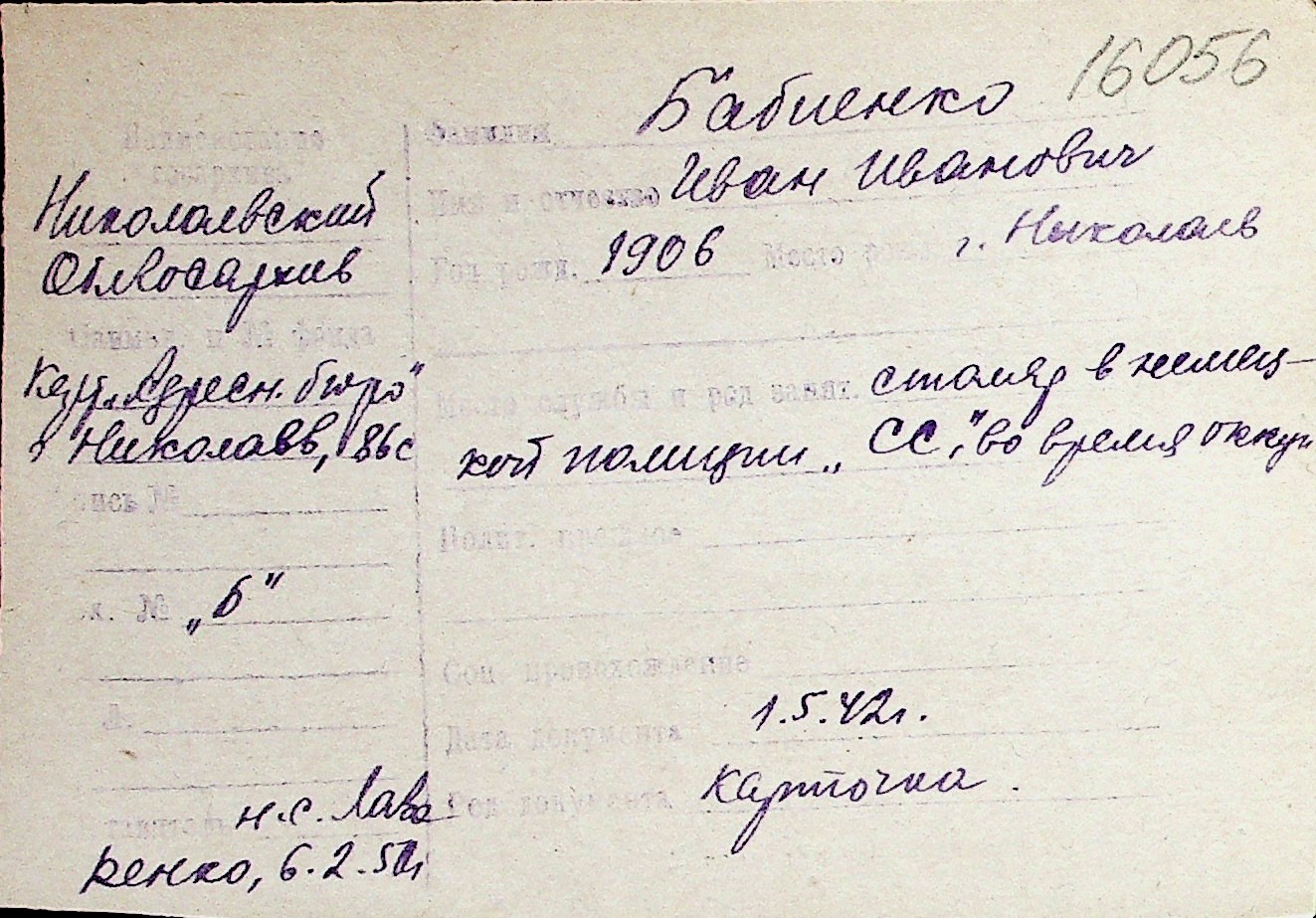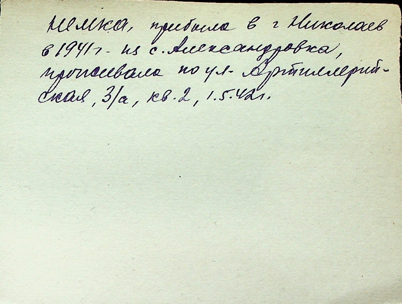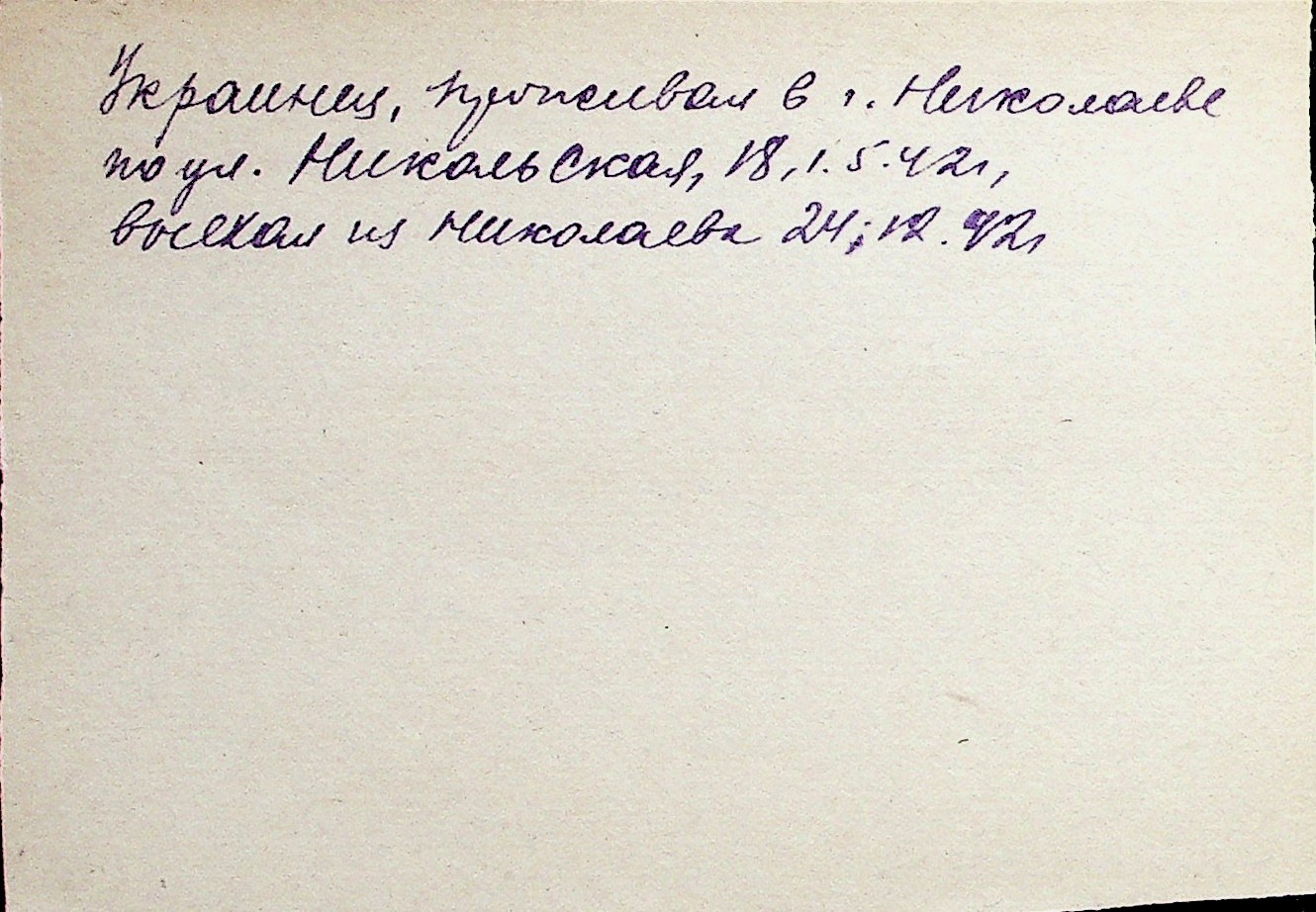 ◦ ◦ Перелік карток на осіб, які мешкали у м. Миколаїв у період окупації 1941–1944 років