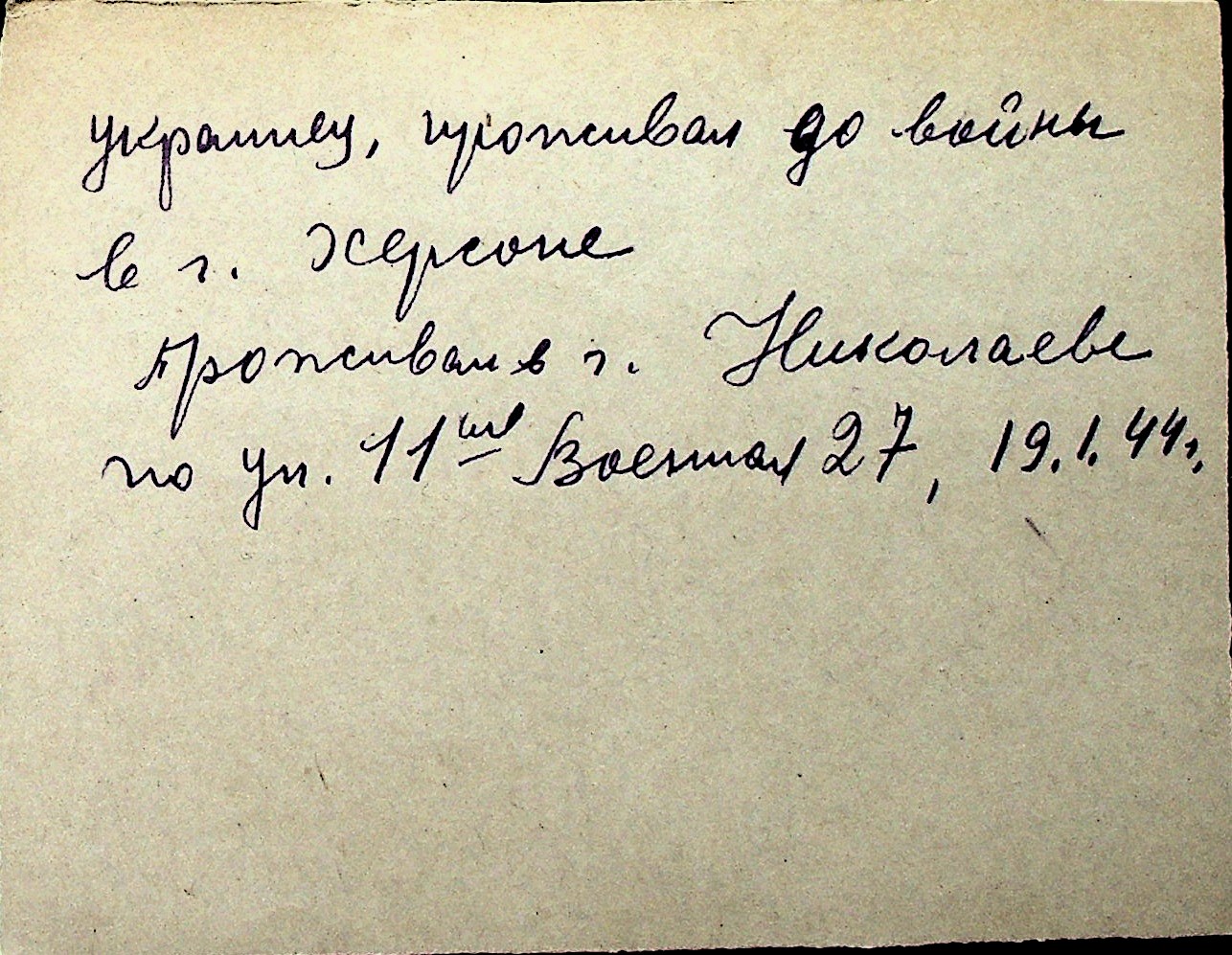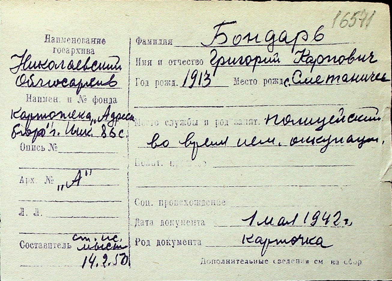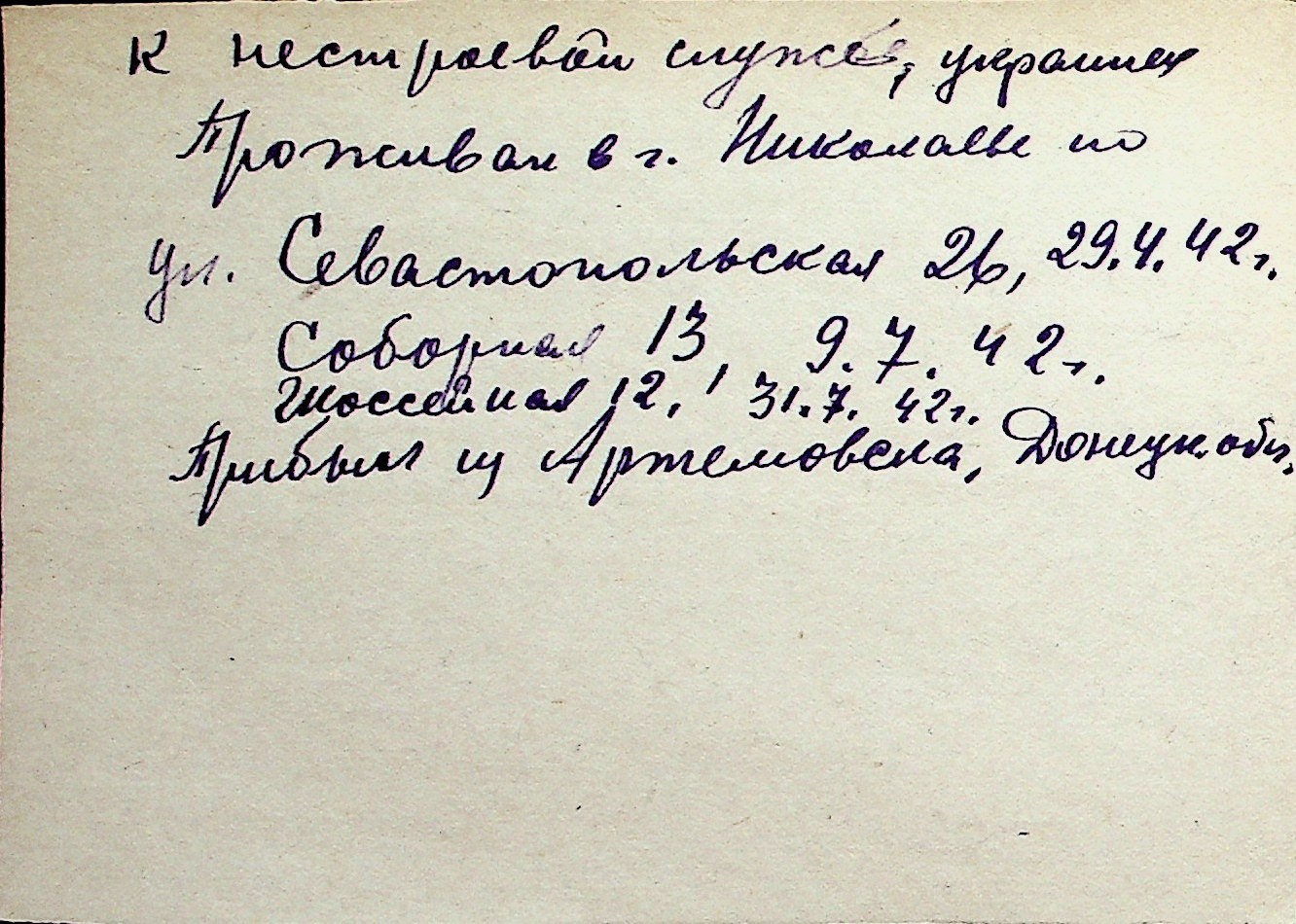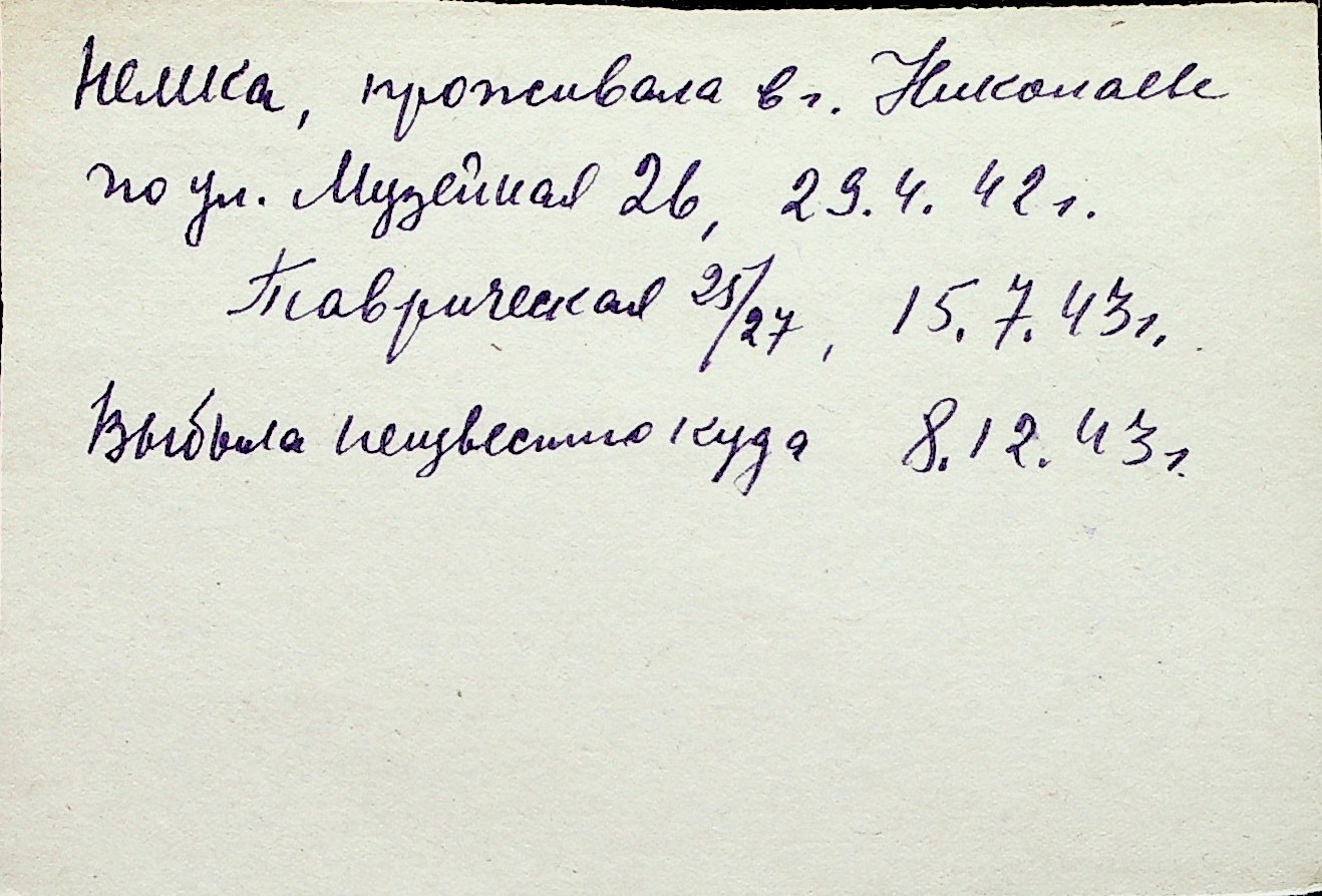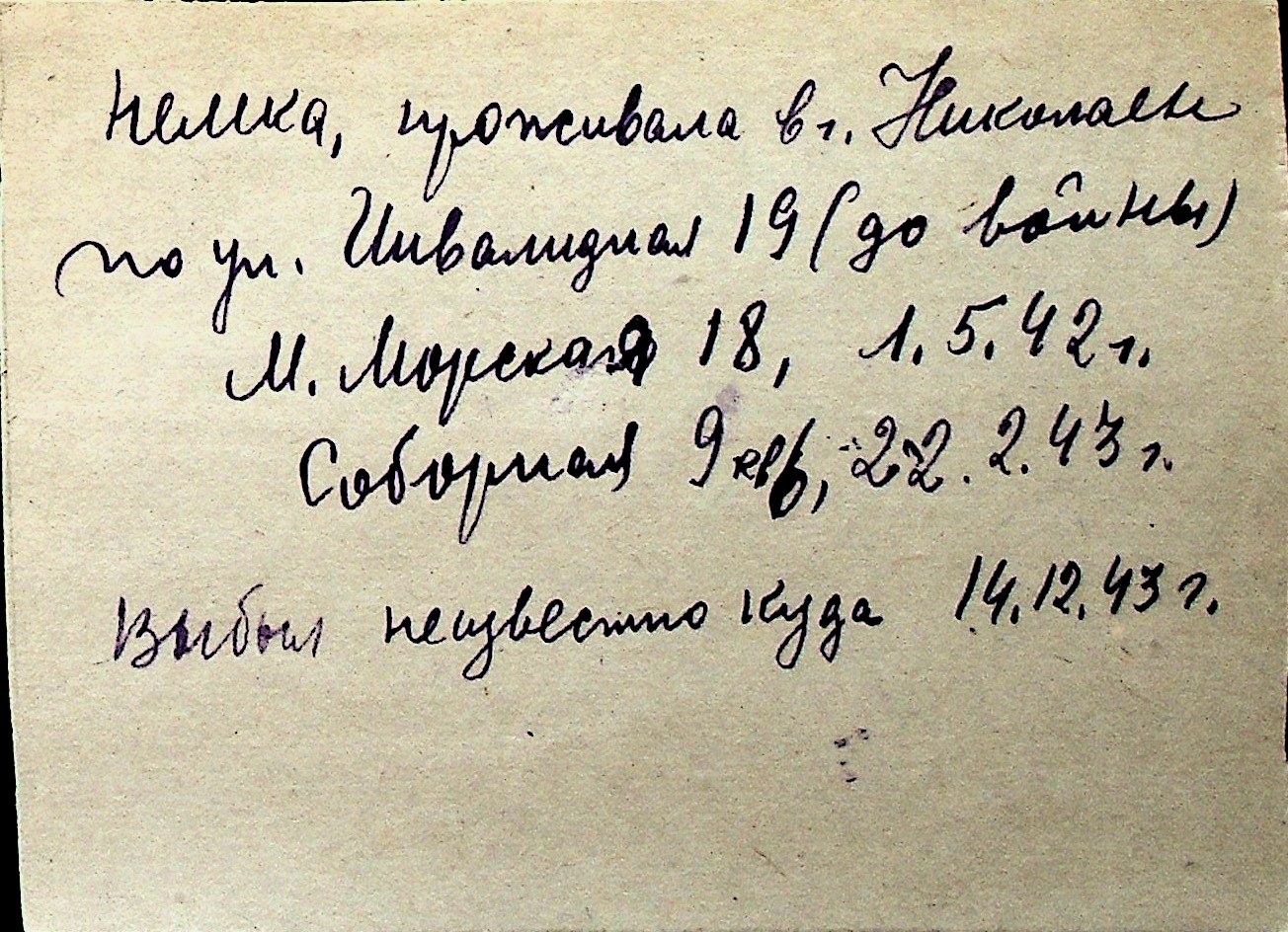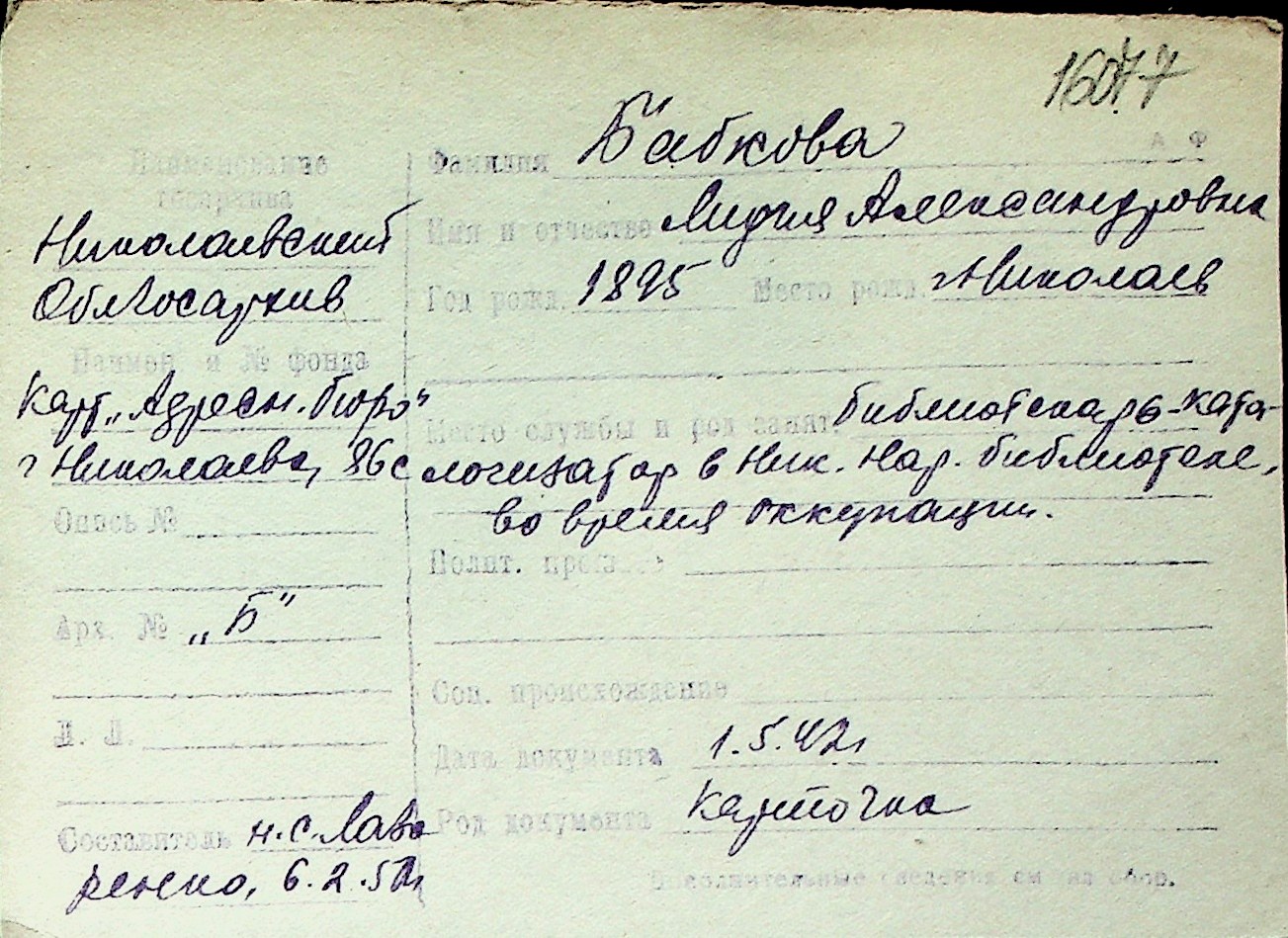 ◦ ◦ Перелік карток на осіб, які мешкали у м. Миколаїв у період окупації 1941–1944 років