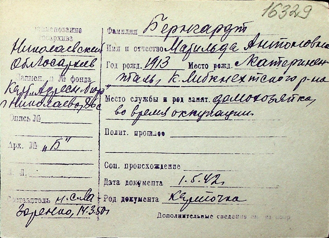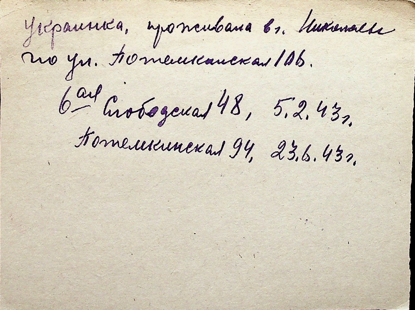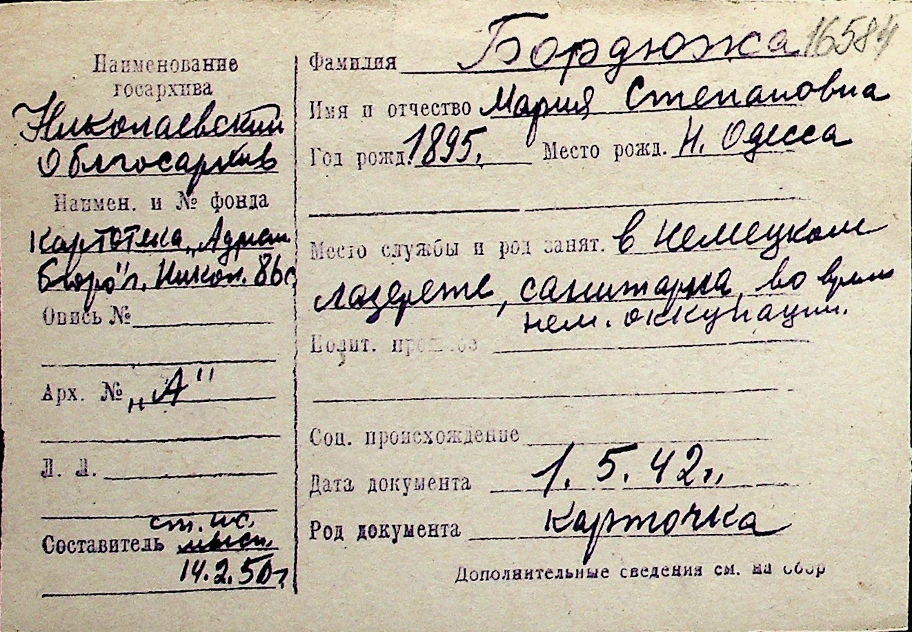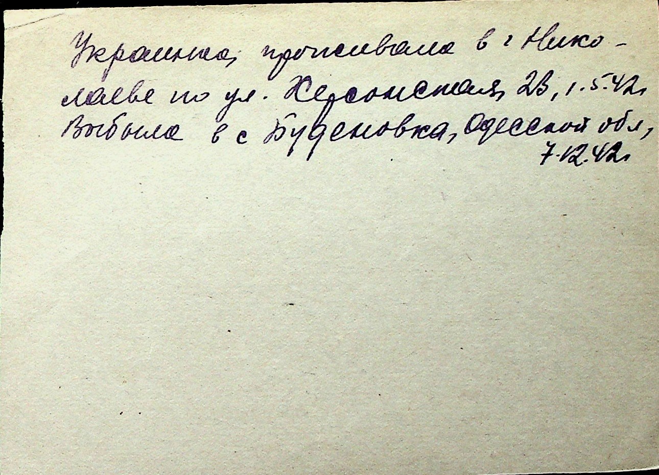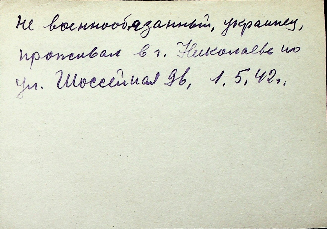 ◦ ◦ Перелік карток на осіб, які мешкали у м. Миколаїв у період окупації 1941–1944 років