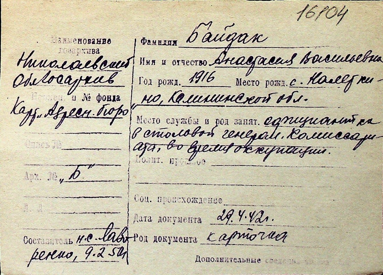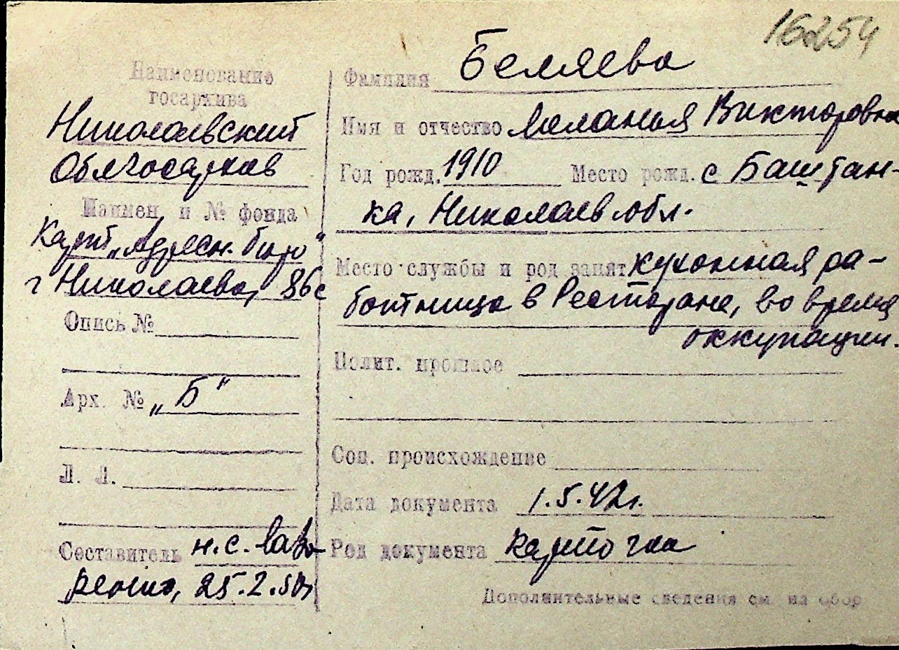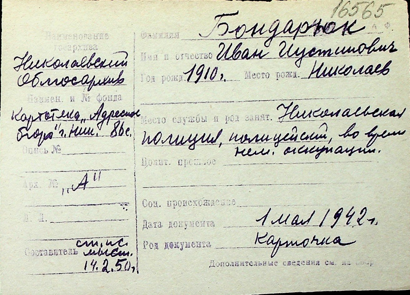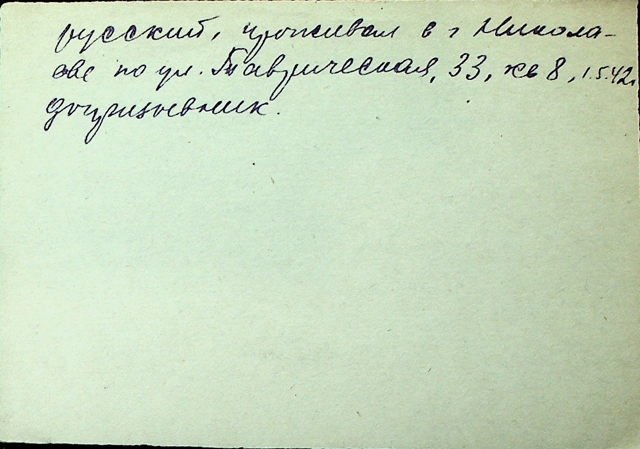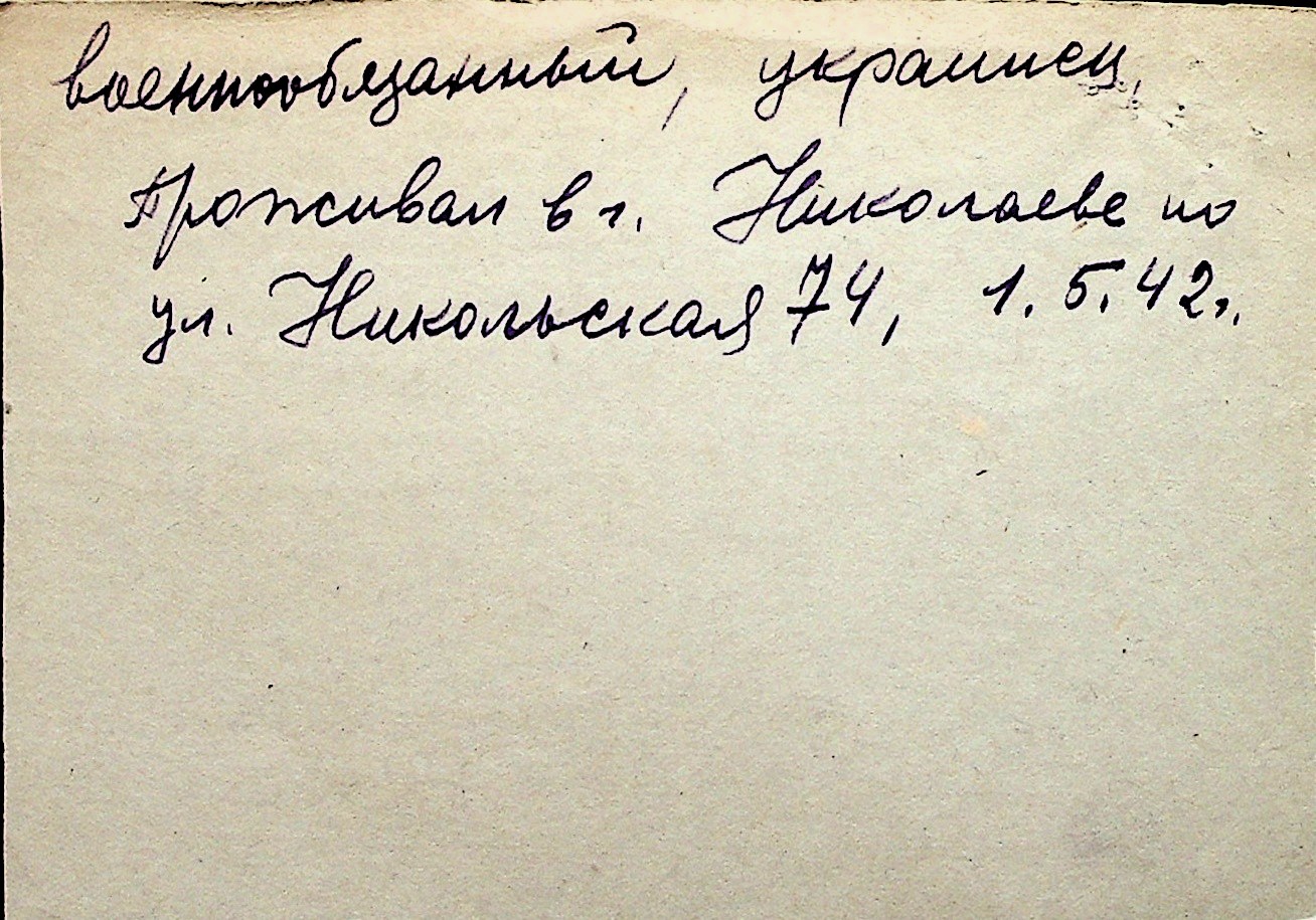 ◦ ◦ Перелік карток на осіб, які мешкали у м. Миколаїв у період окупації 1941–1944 років