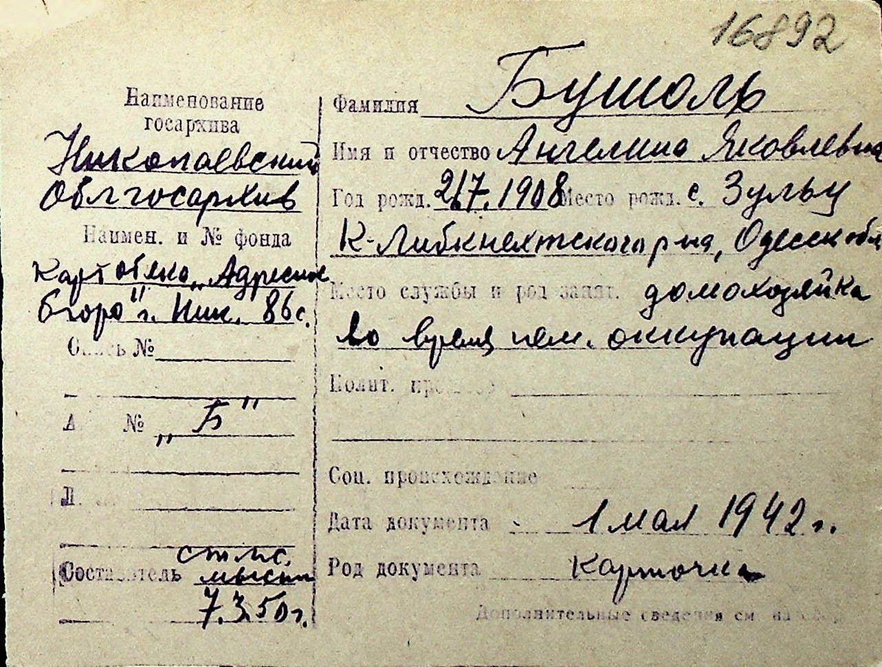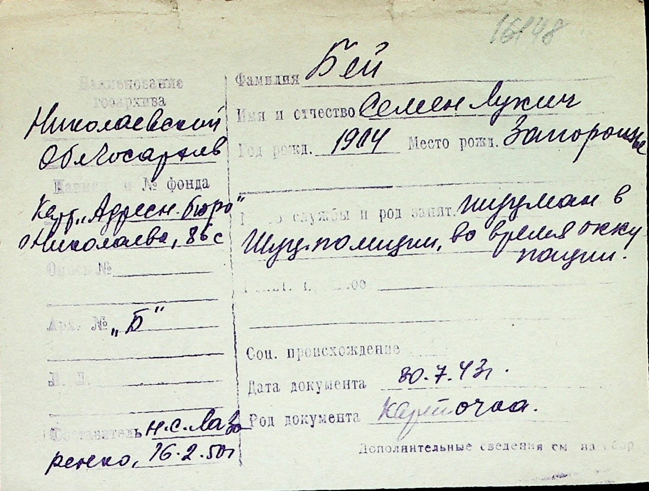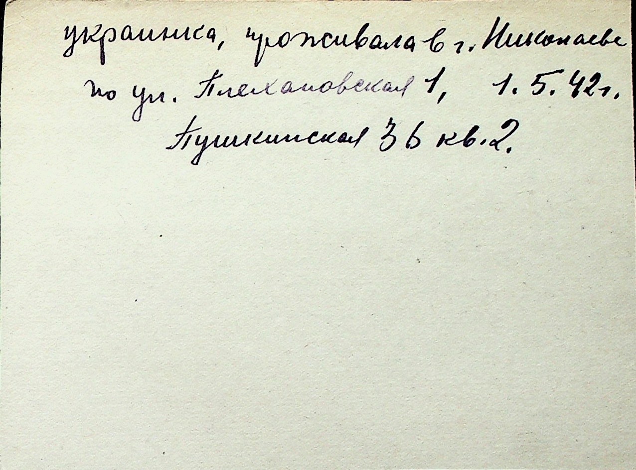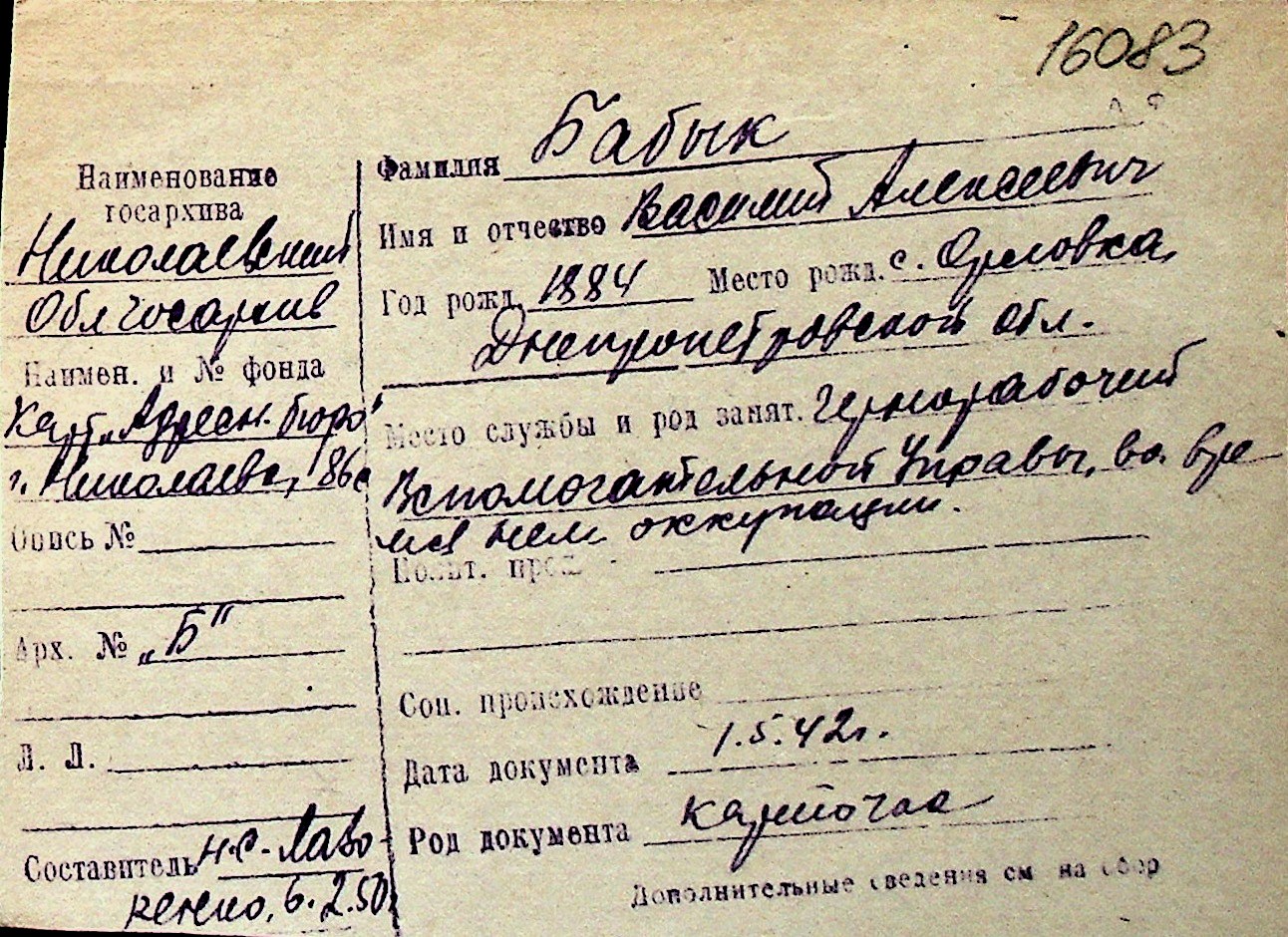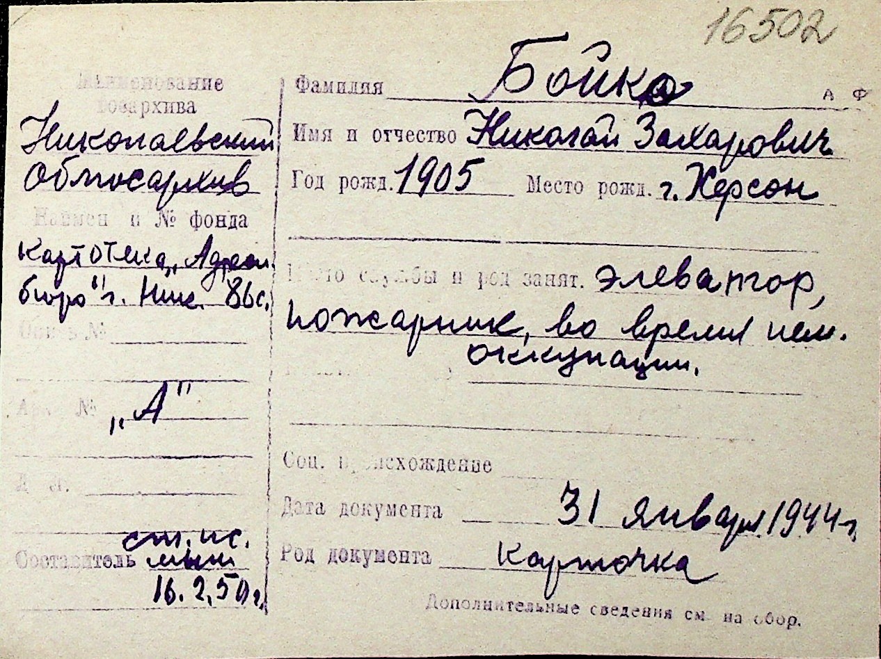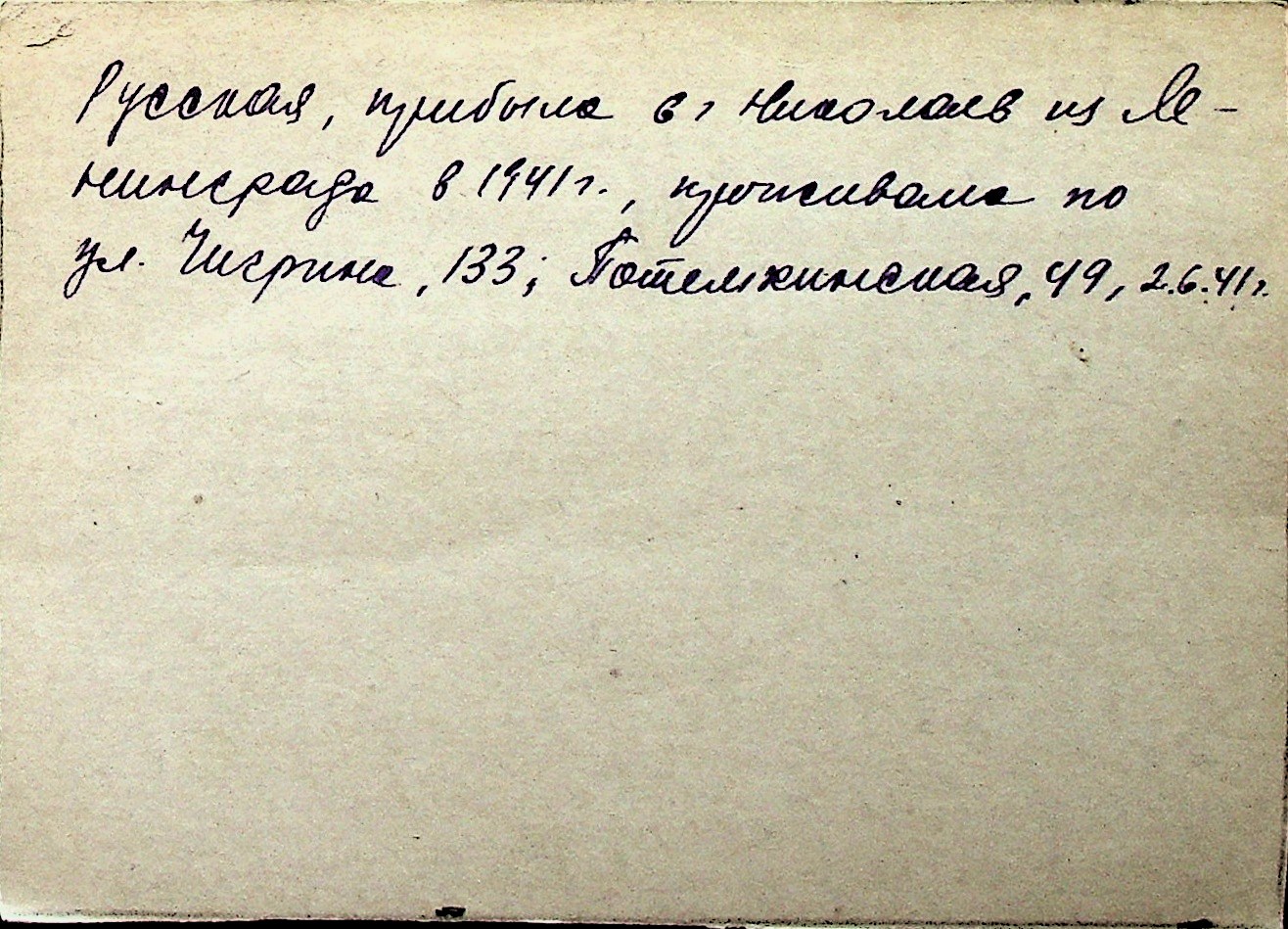◦ ◦ Перелік карток на осіб, які мешкали у м. Миколаїв у період окупації 1941–1944 років