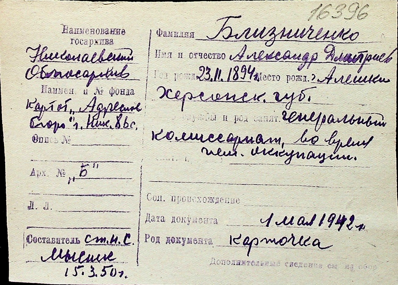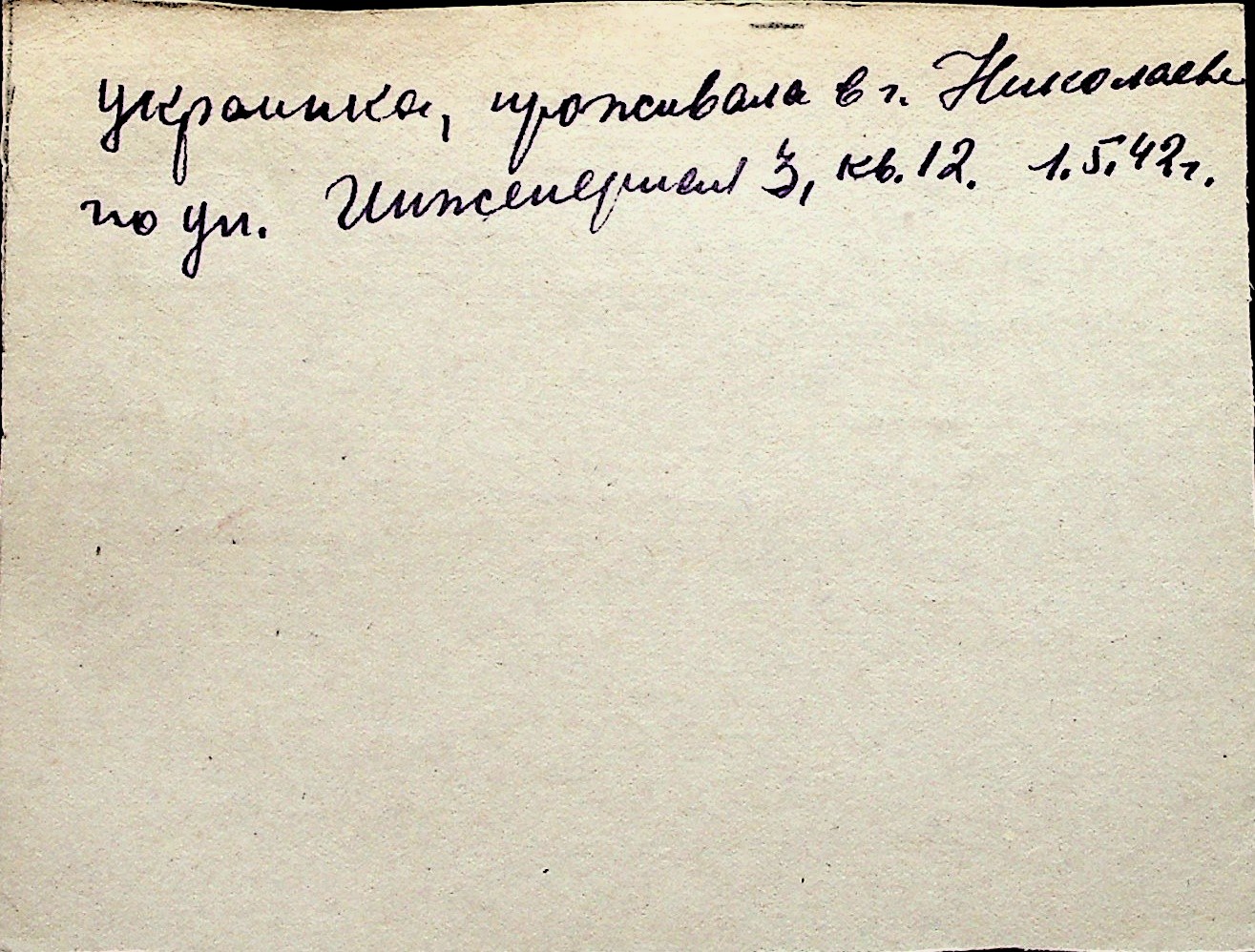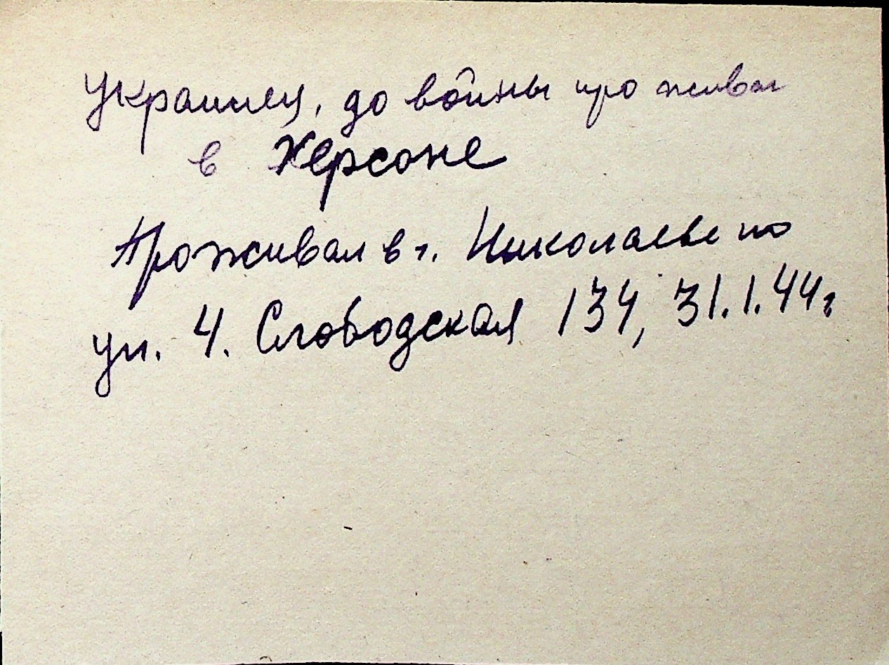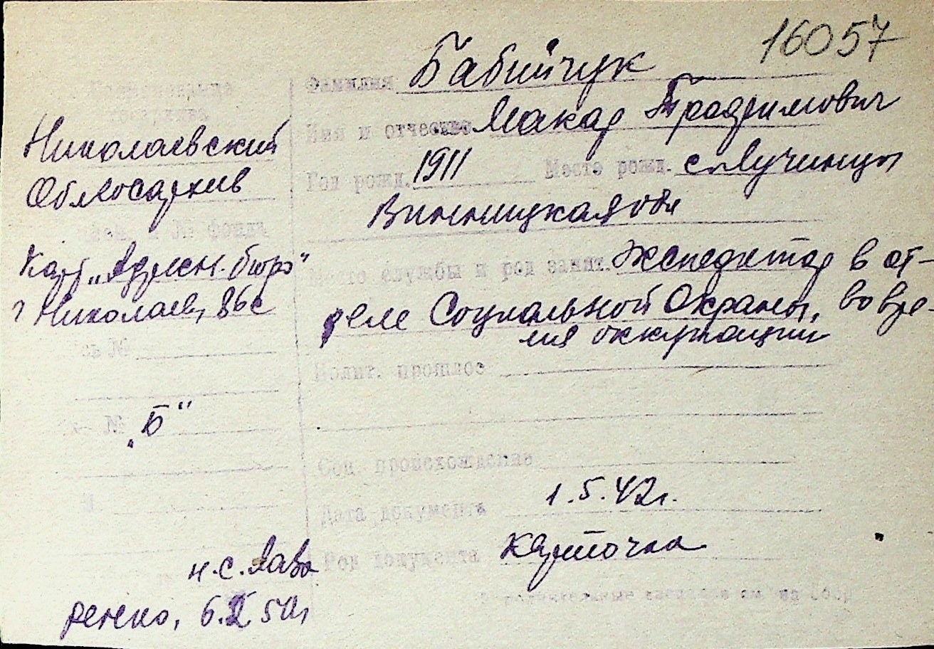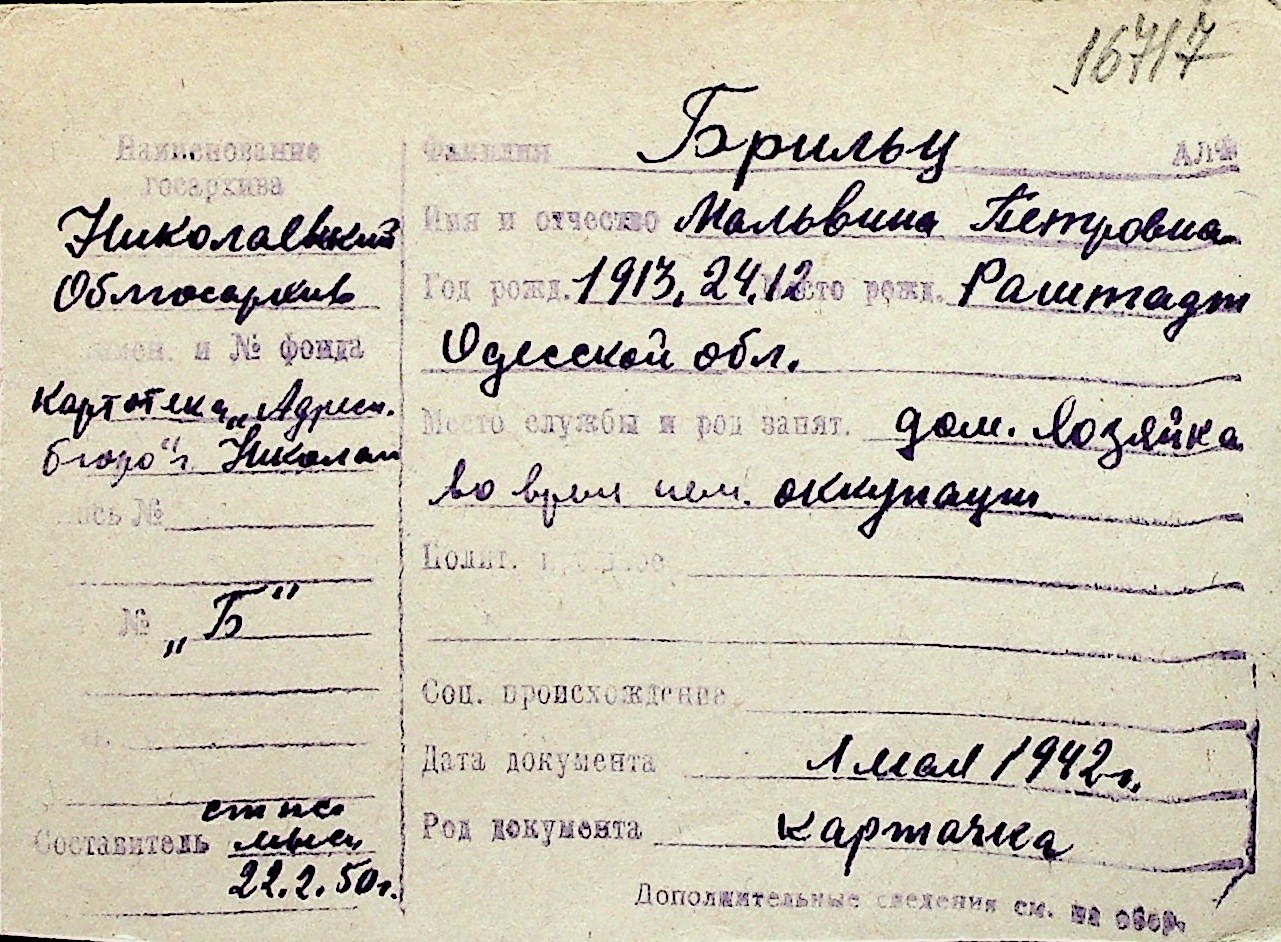◦ ◦ Перелік карток на осіб, які мешкали у м. Миколаїв у період окупації 1941–1944 років