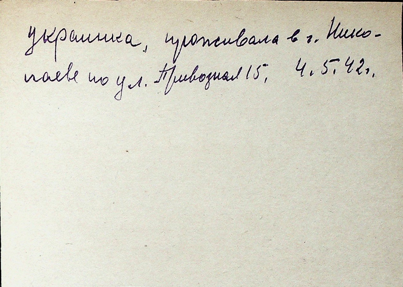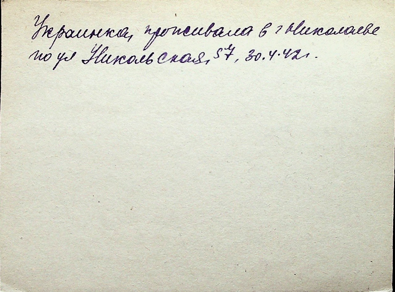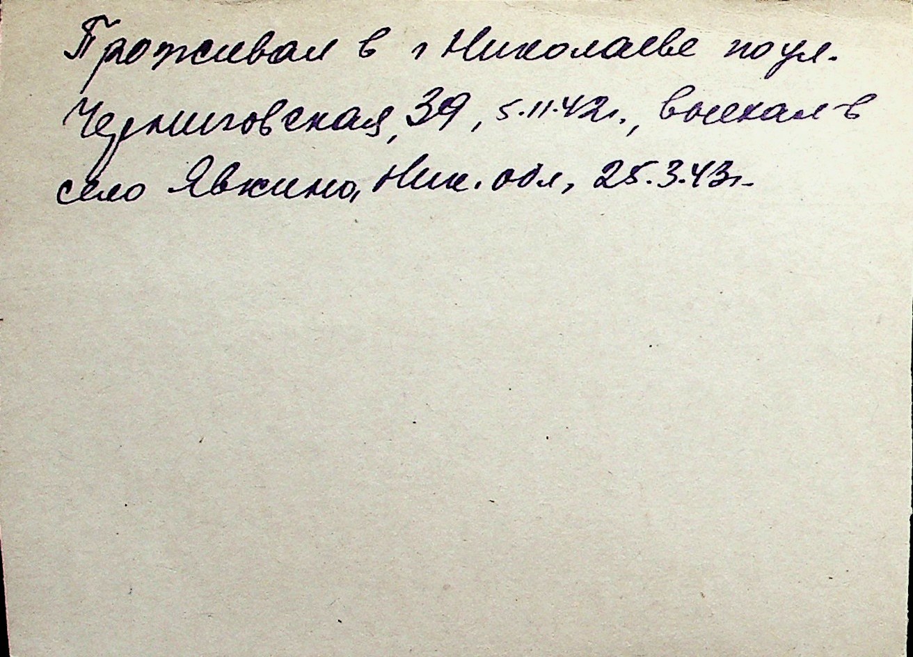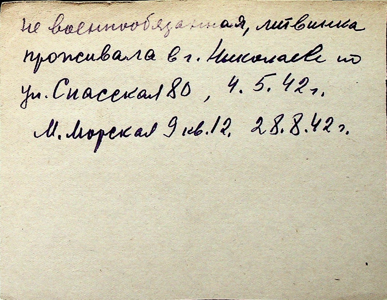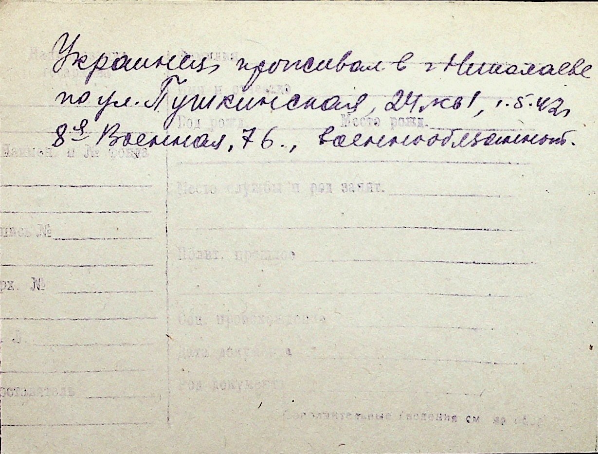 ◦ ◦ Перелік карток на осіб, які мешкали у м. Миколаїв у період окупації 1941–1944 років